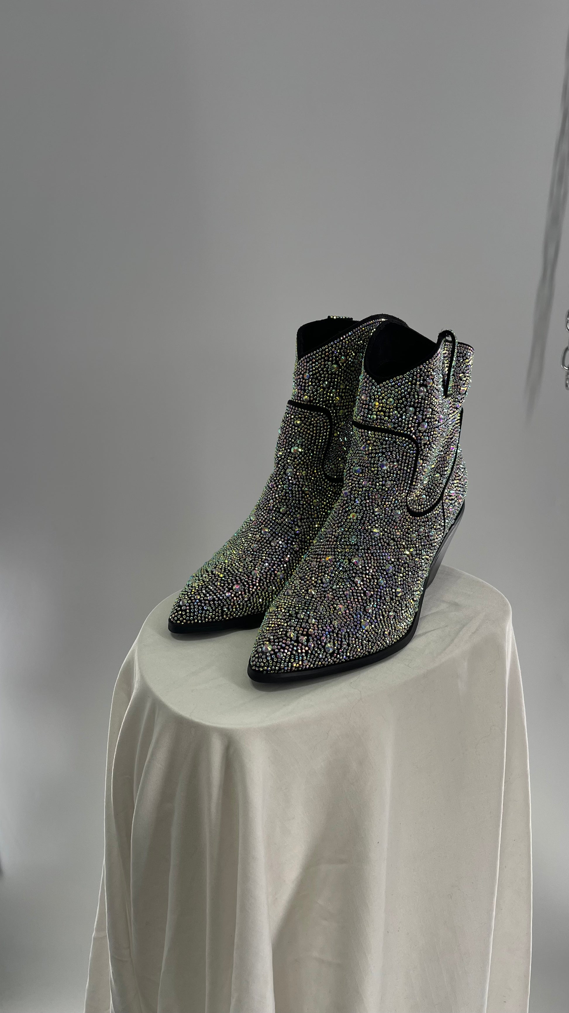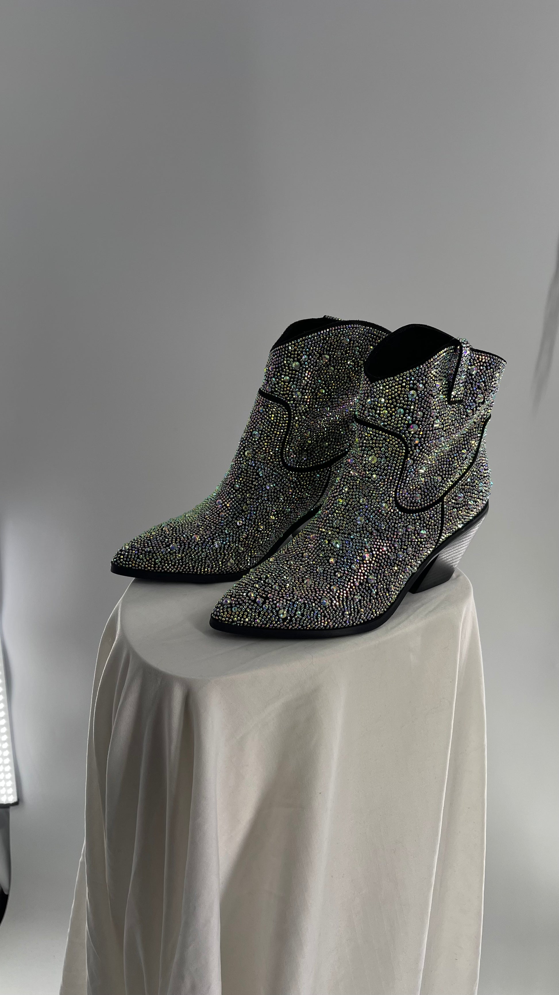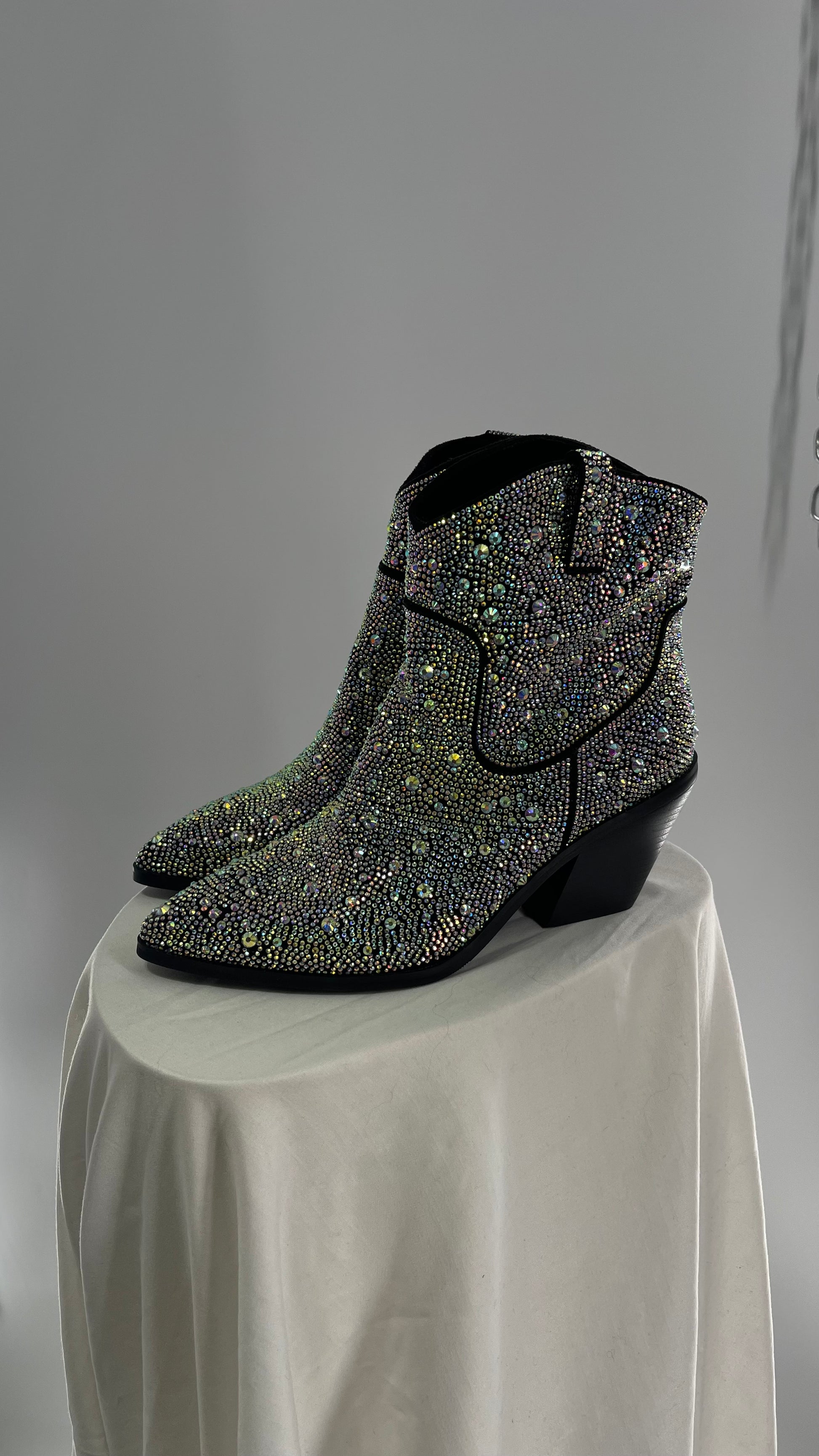Black Iridescent All Over Rhinestone Cowboy Boots