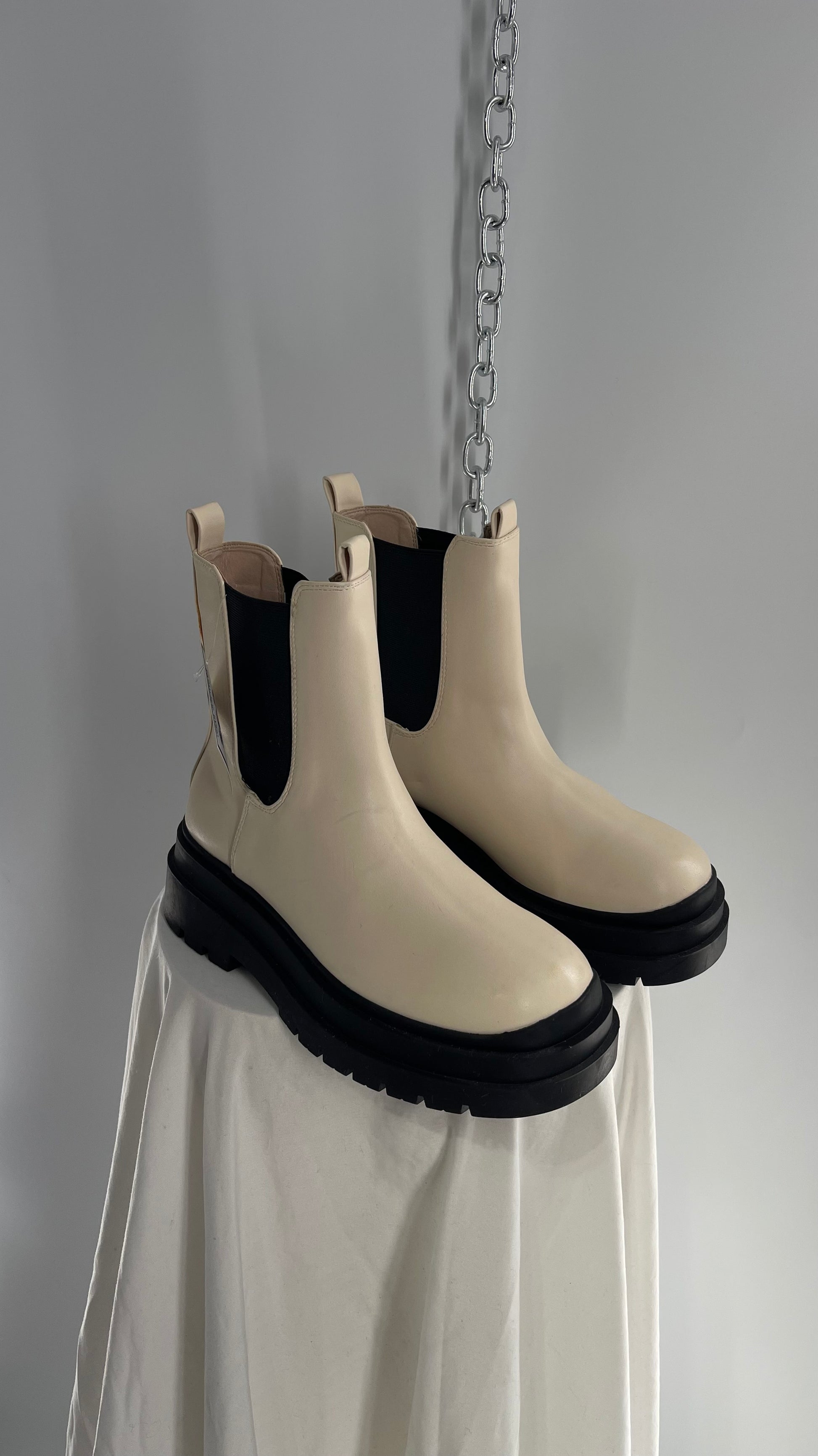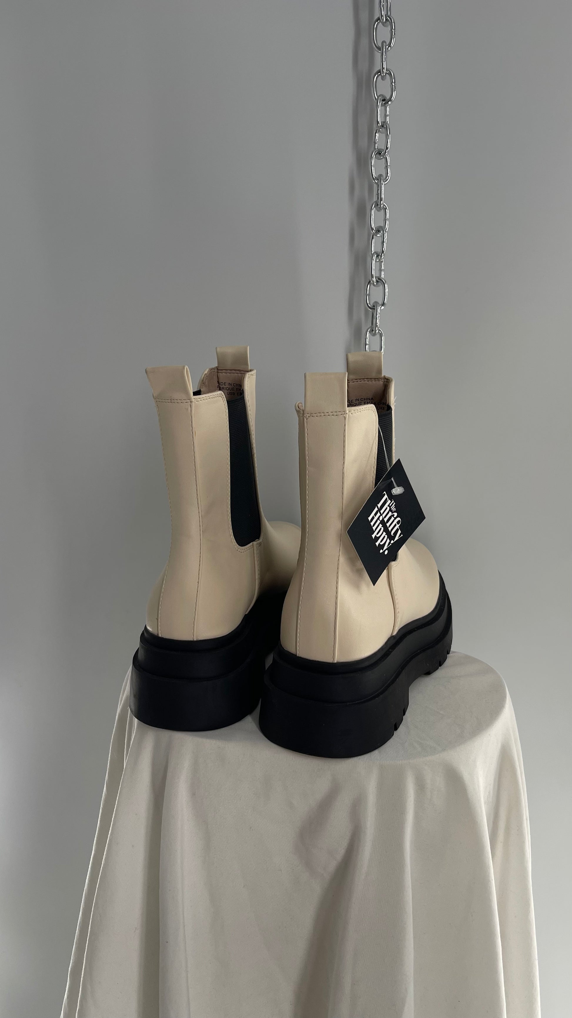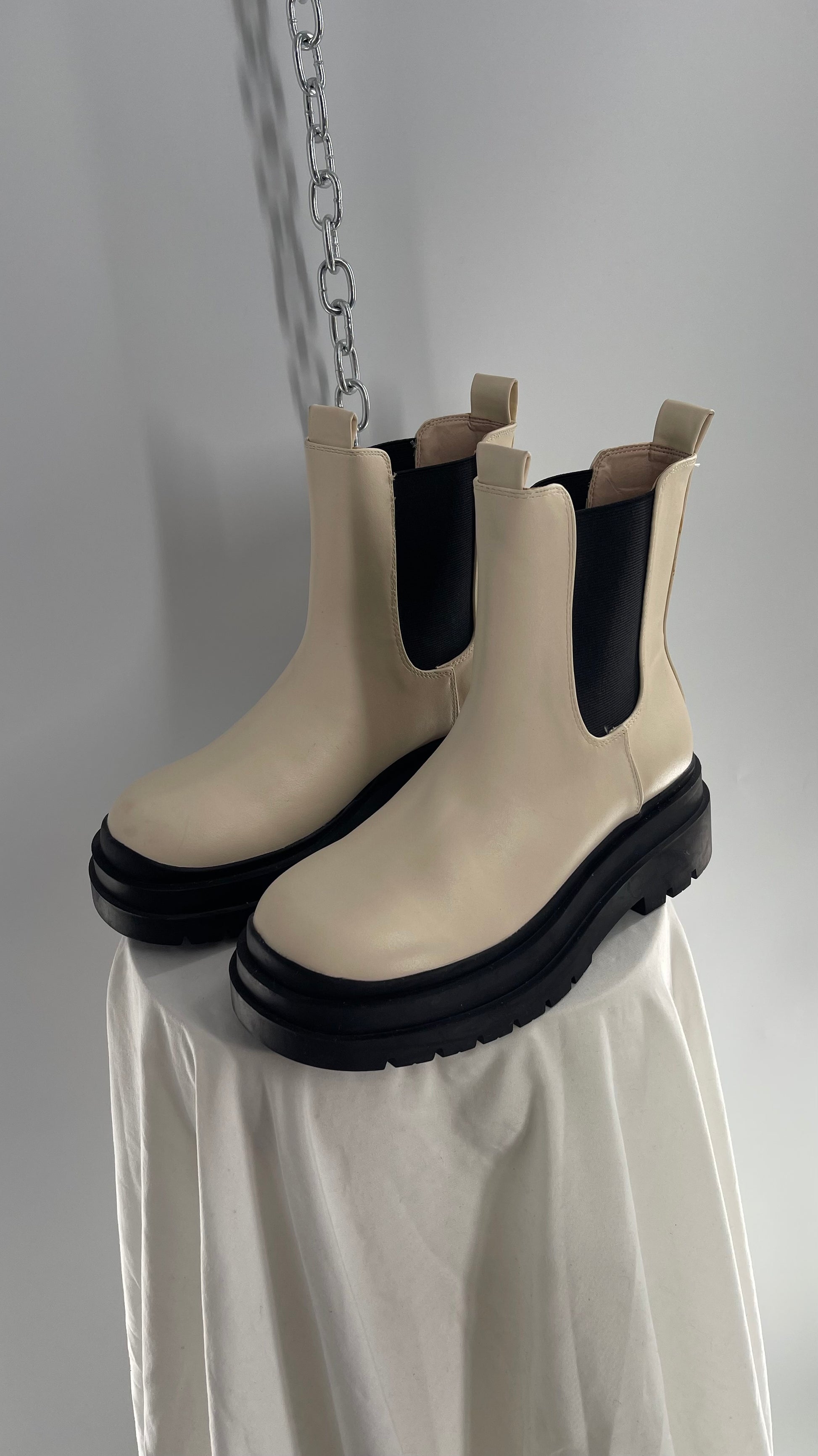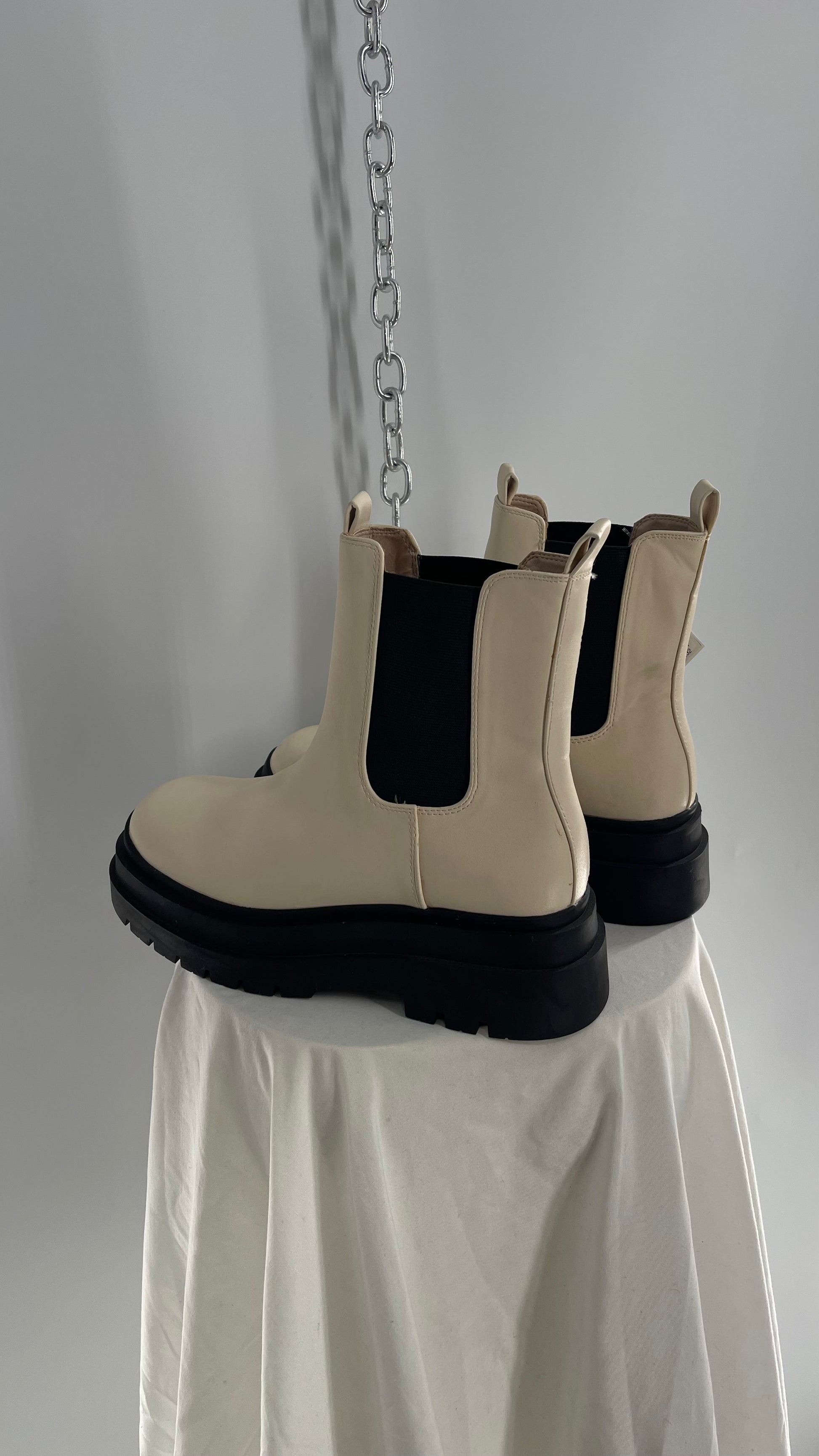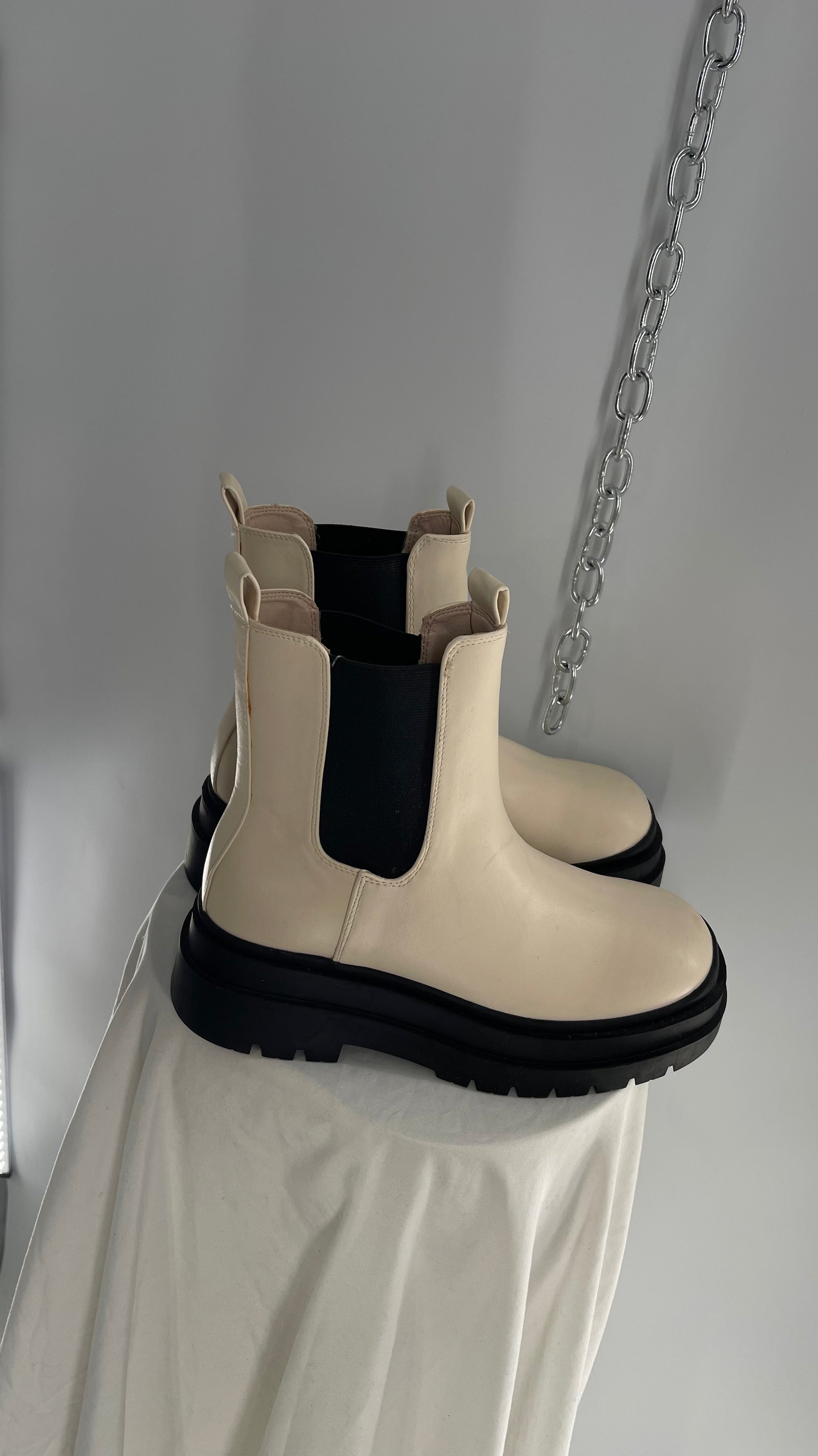 Urban Outfitters off White Chelsea Boot with Black sole and elastic siding