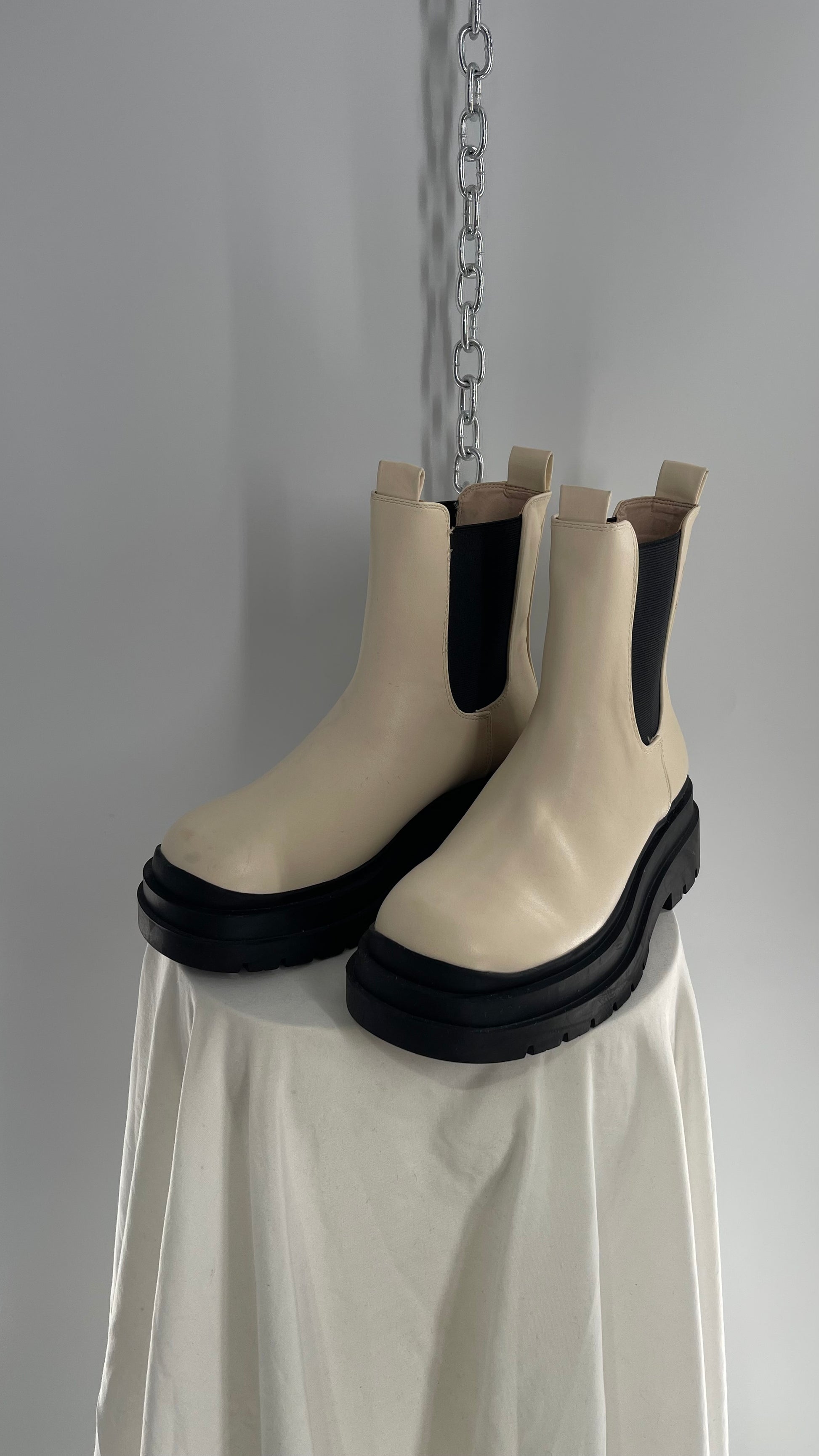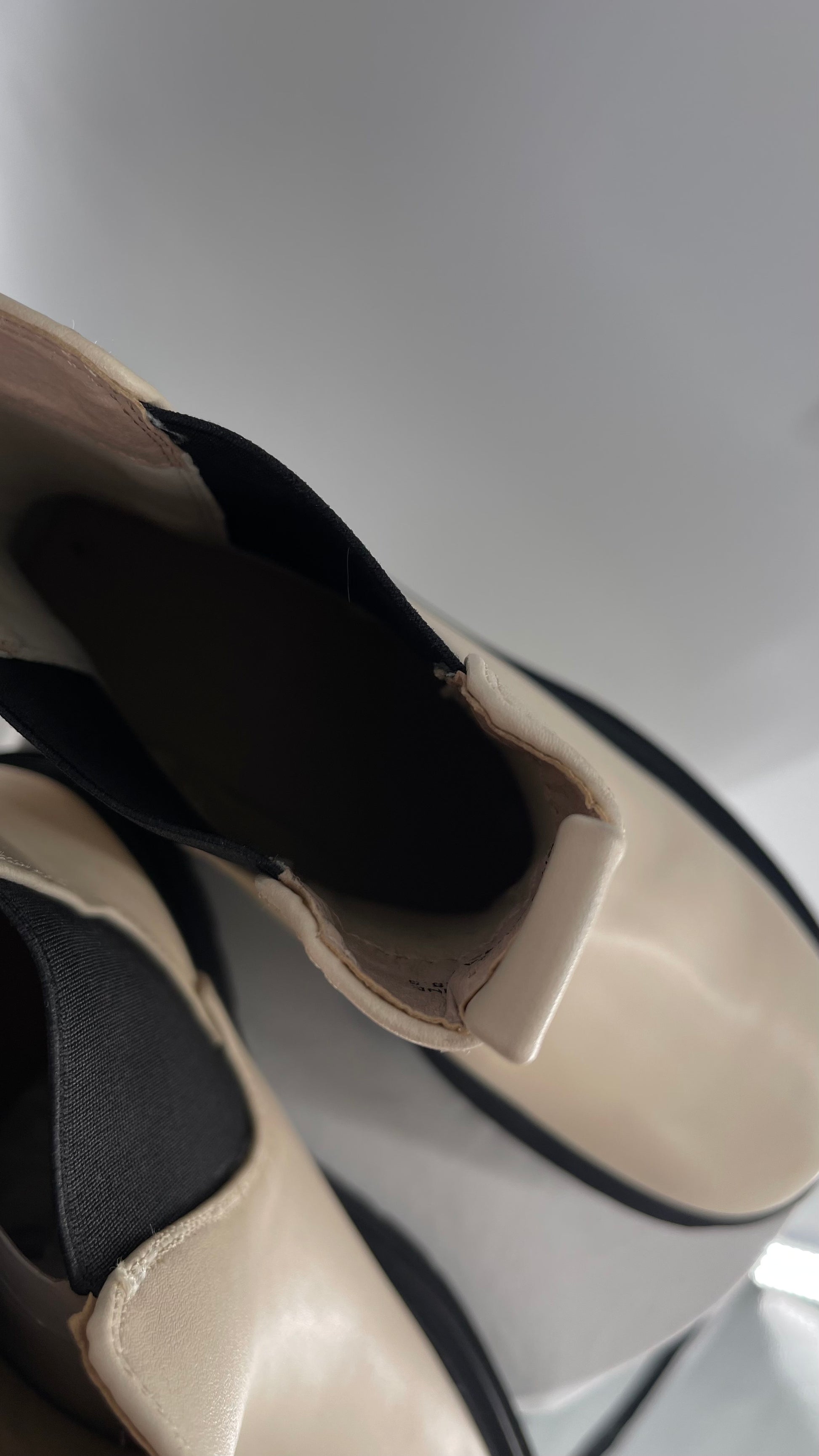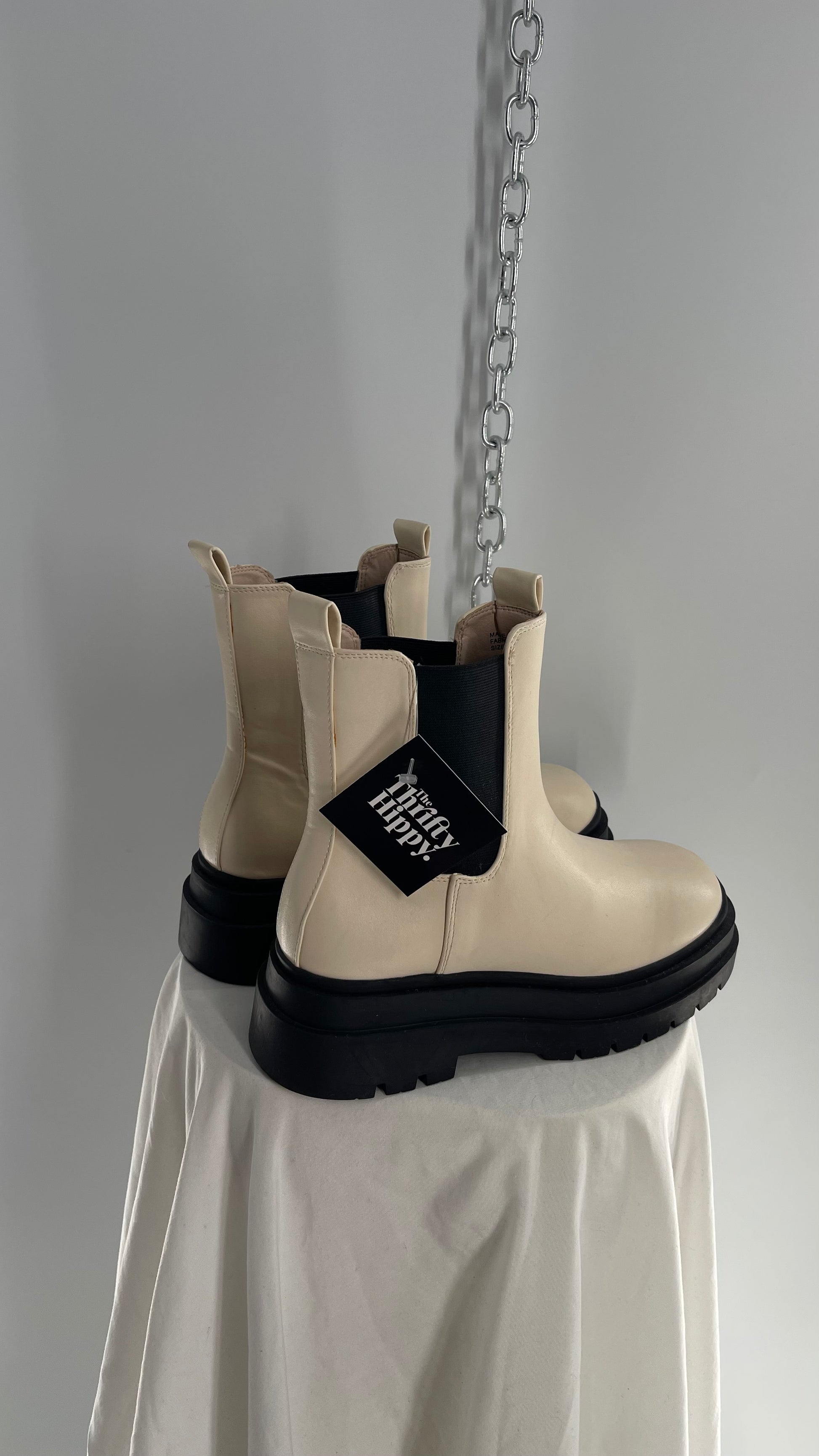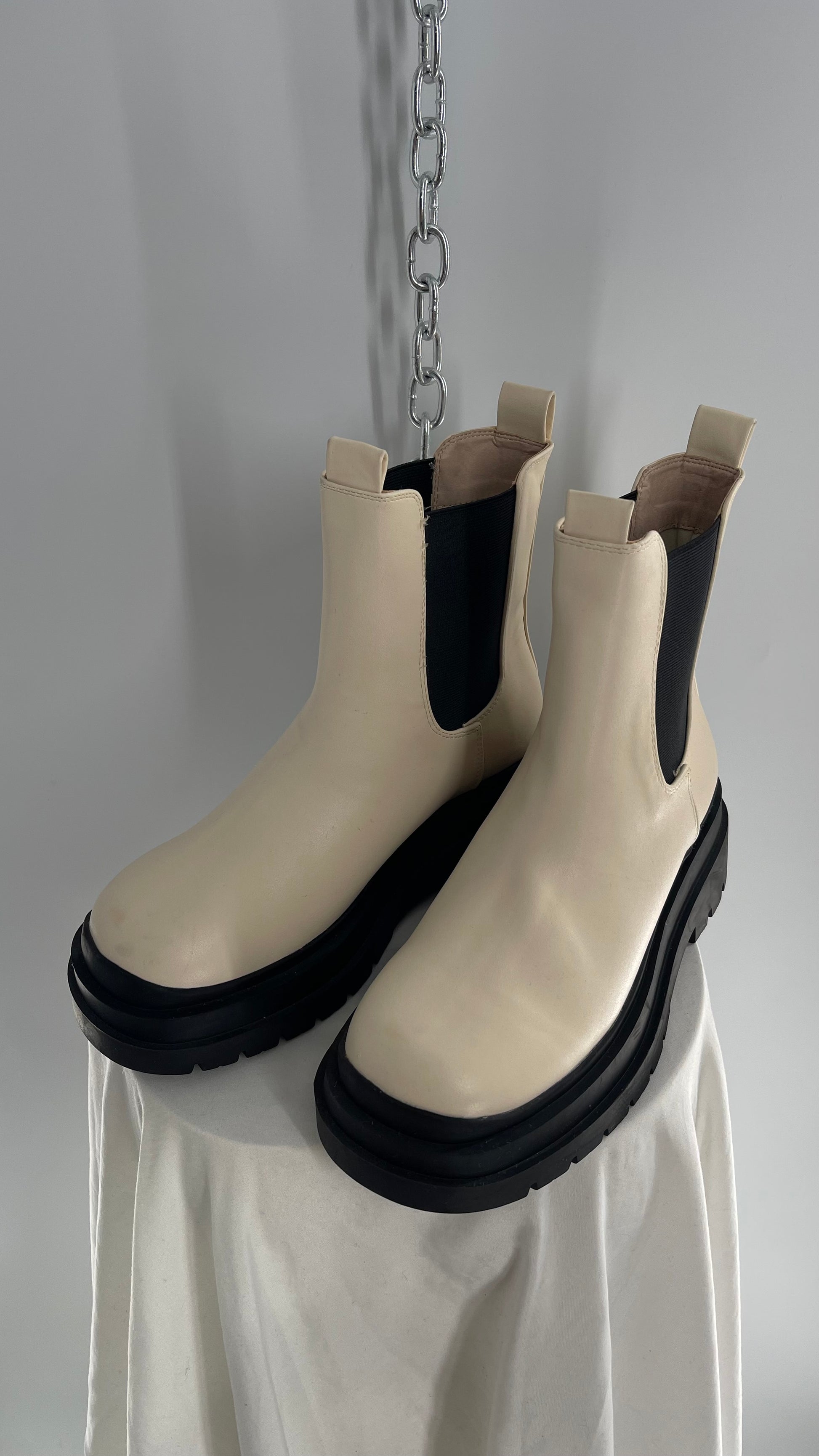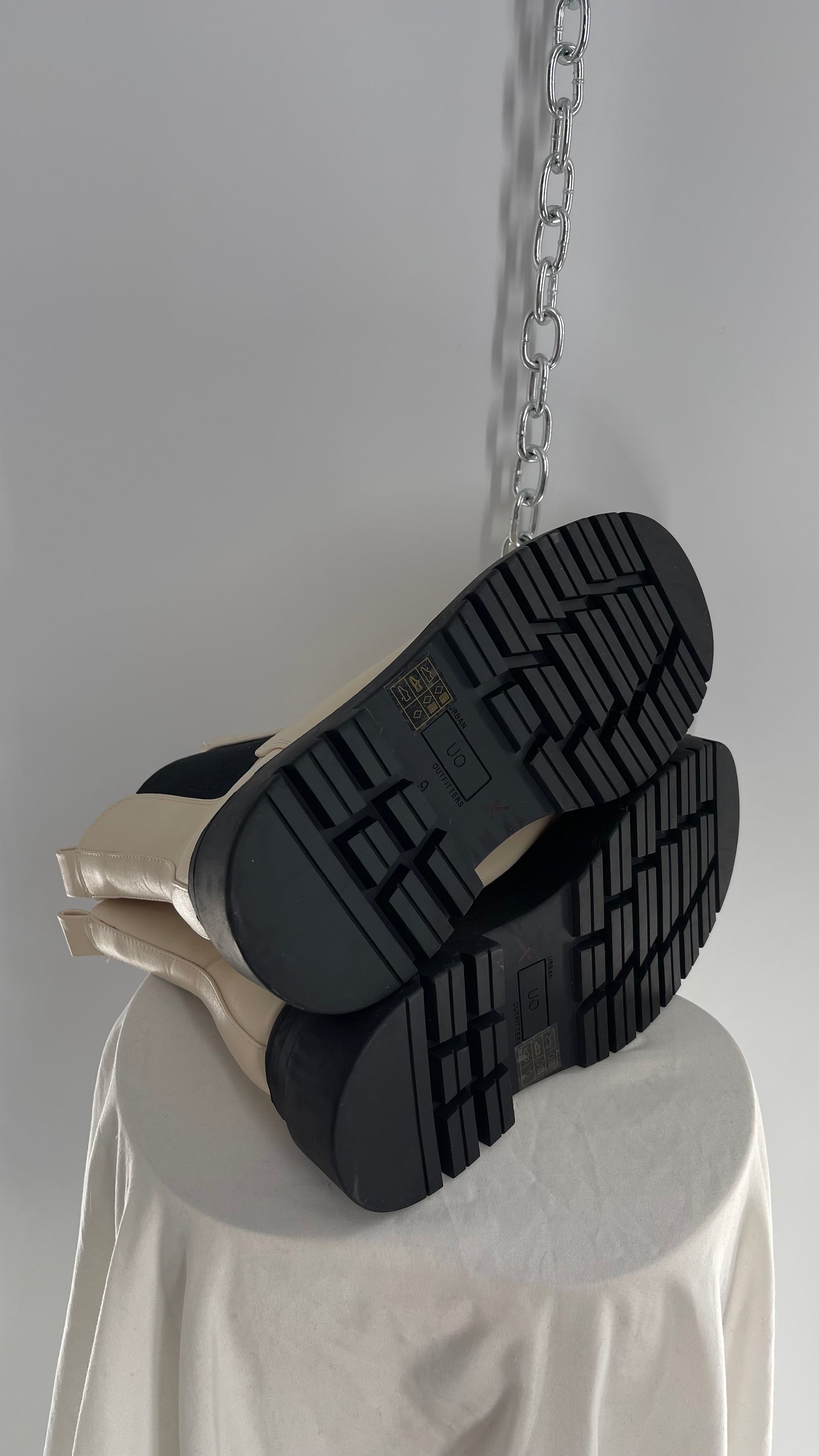 Urban Outfitters off White Chelsea Boot with Black sole and elastic siding