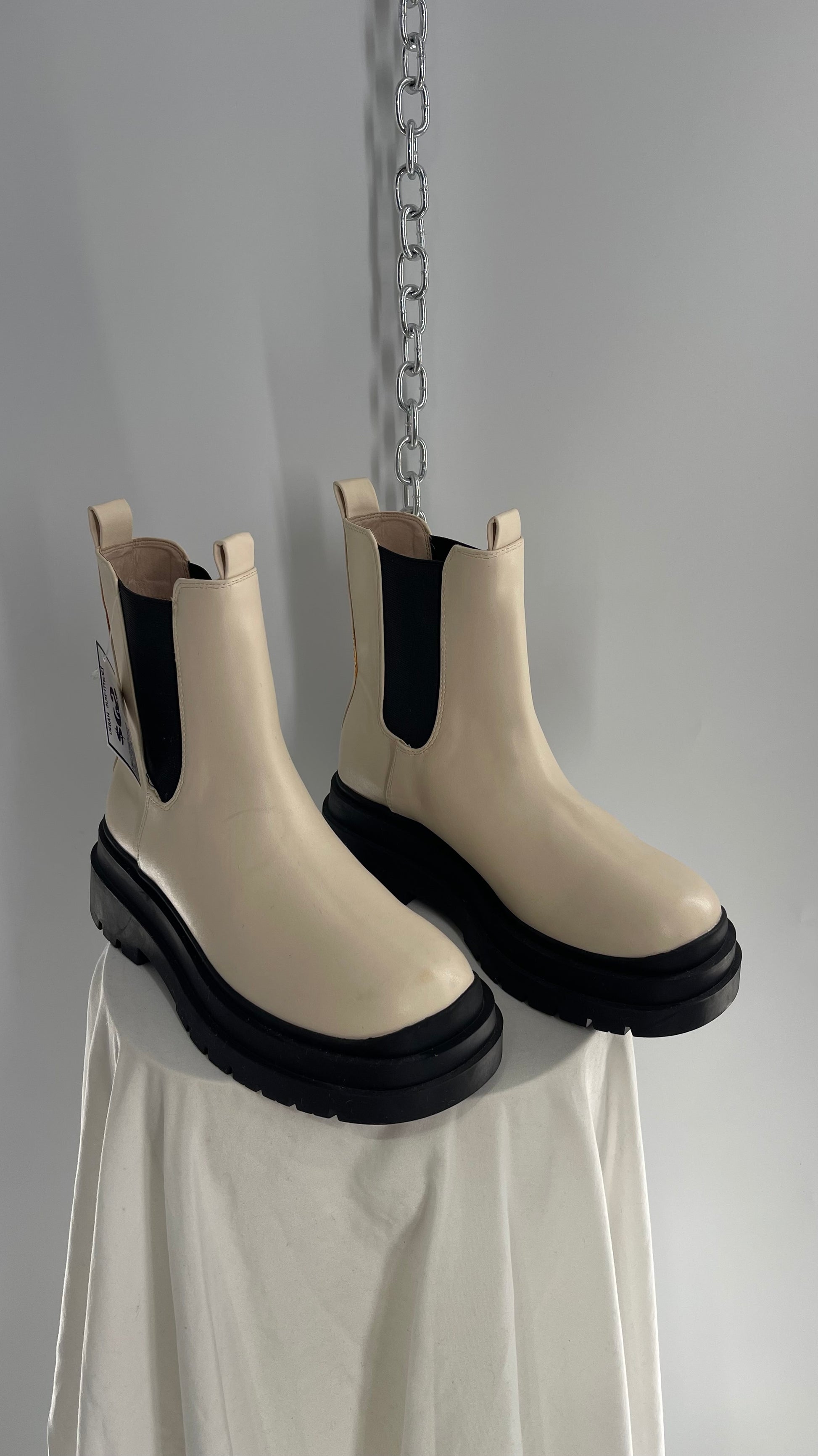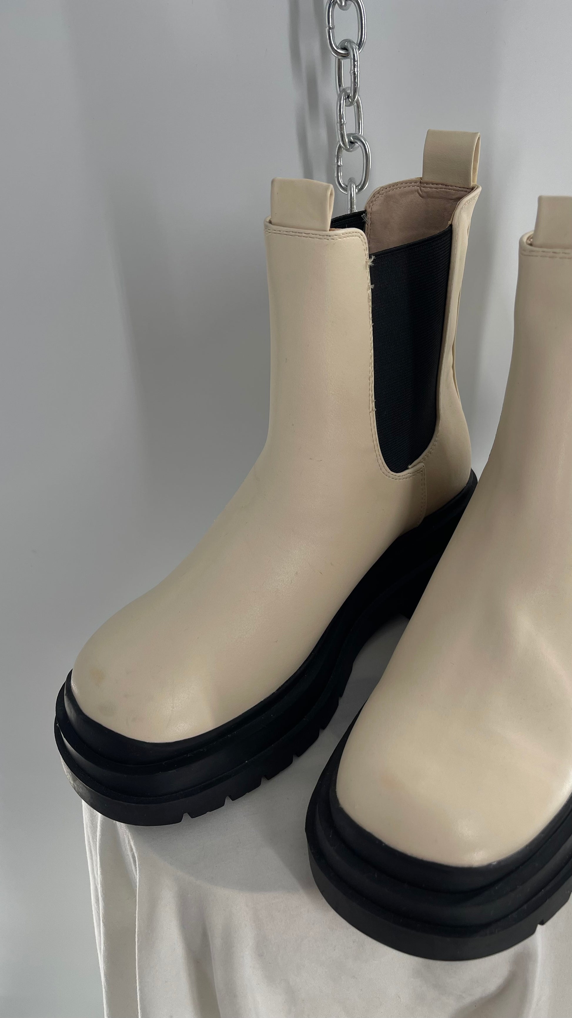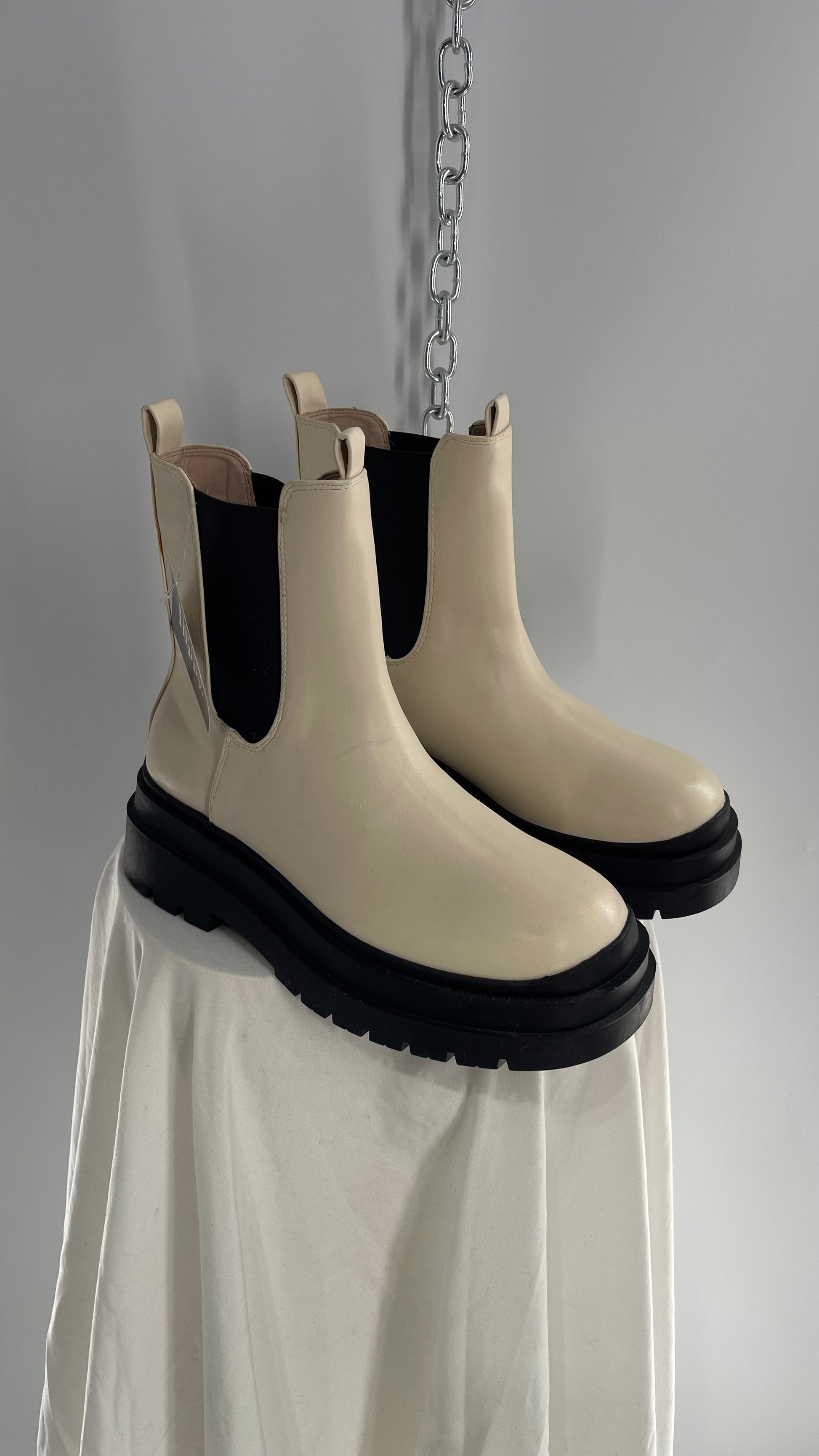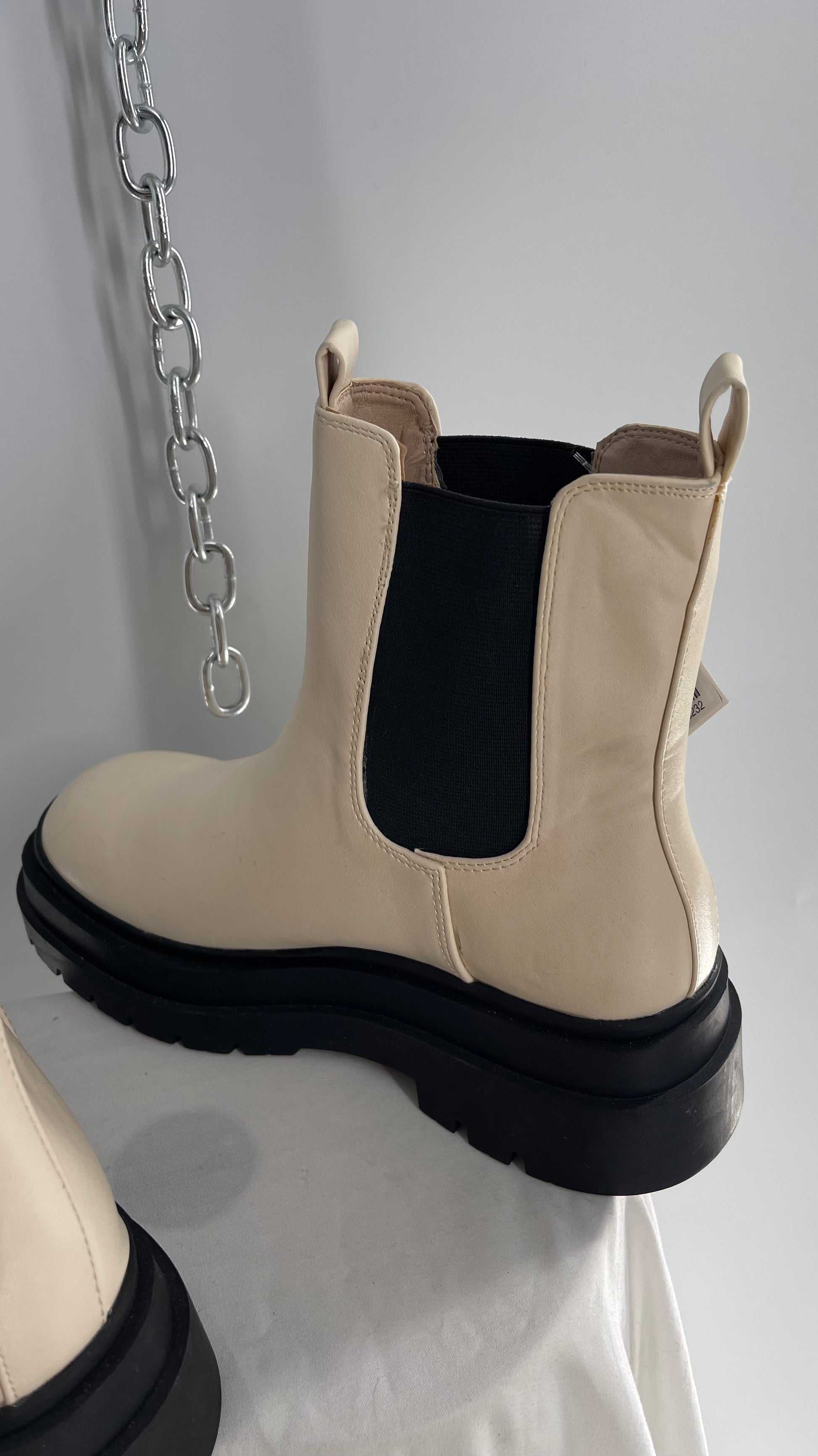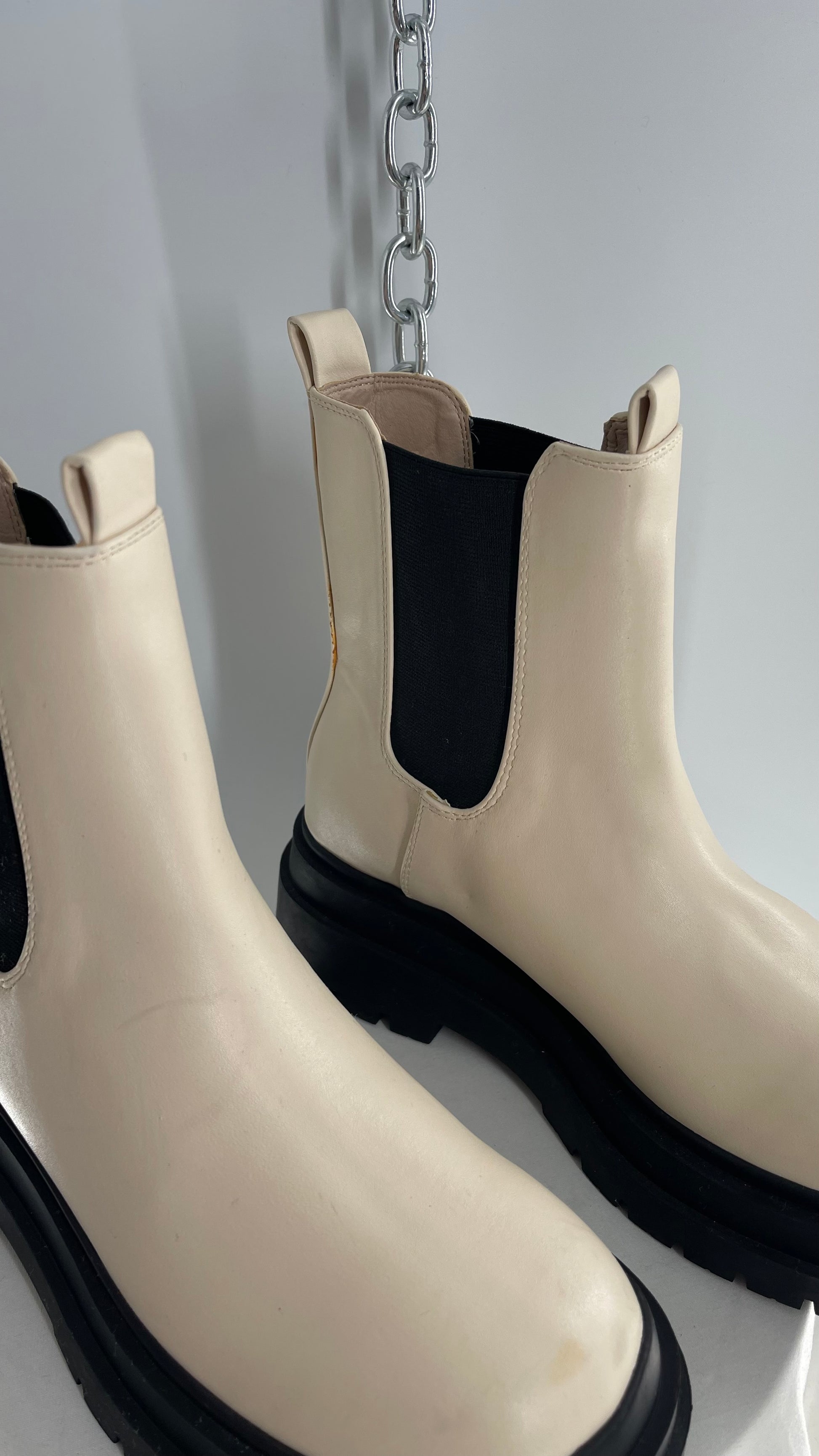 Urban Outfitters off White Chelsea Boot with Black sole and elastic siding