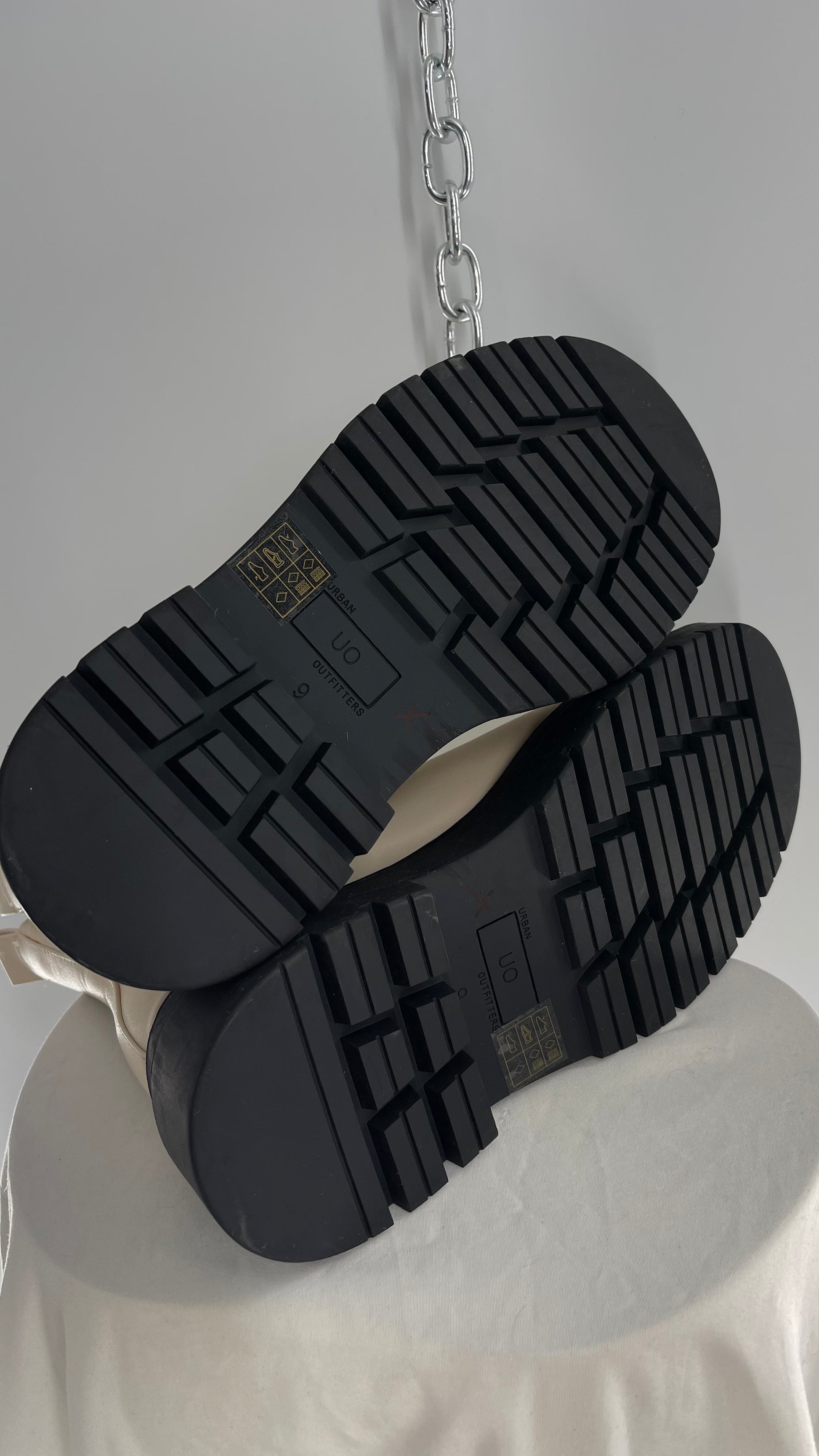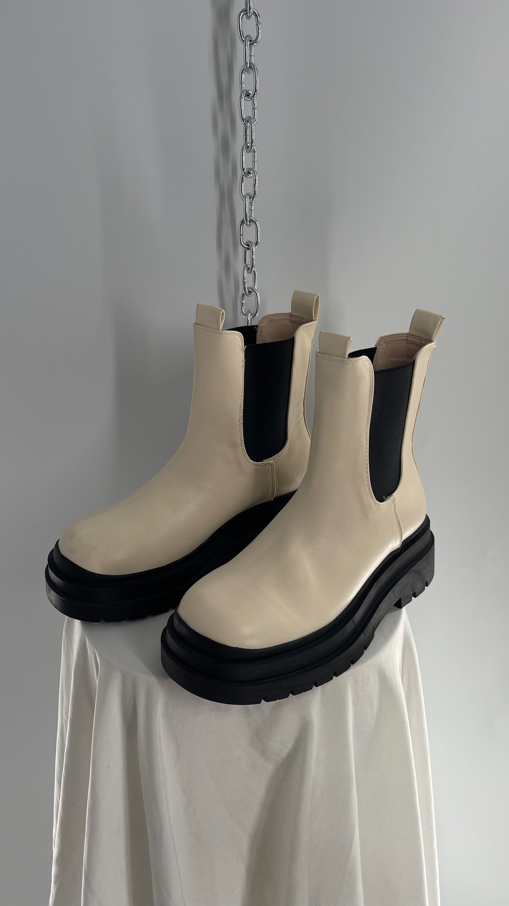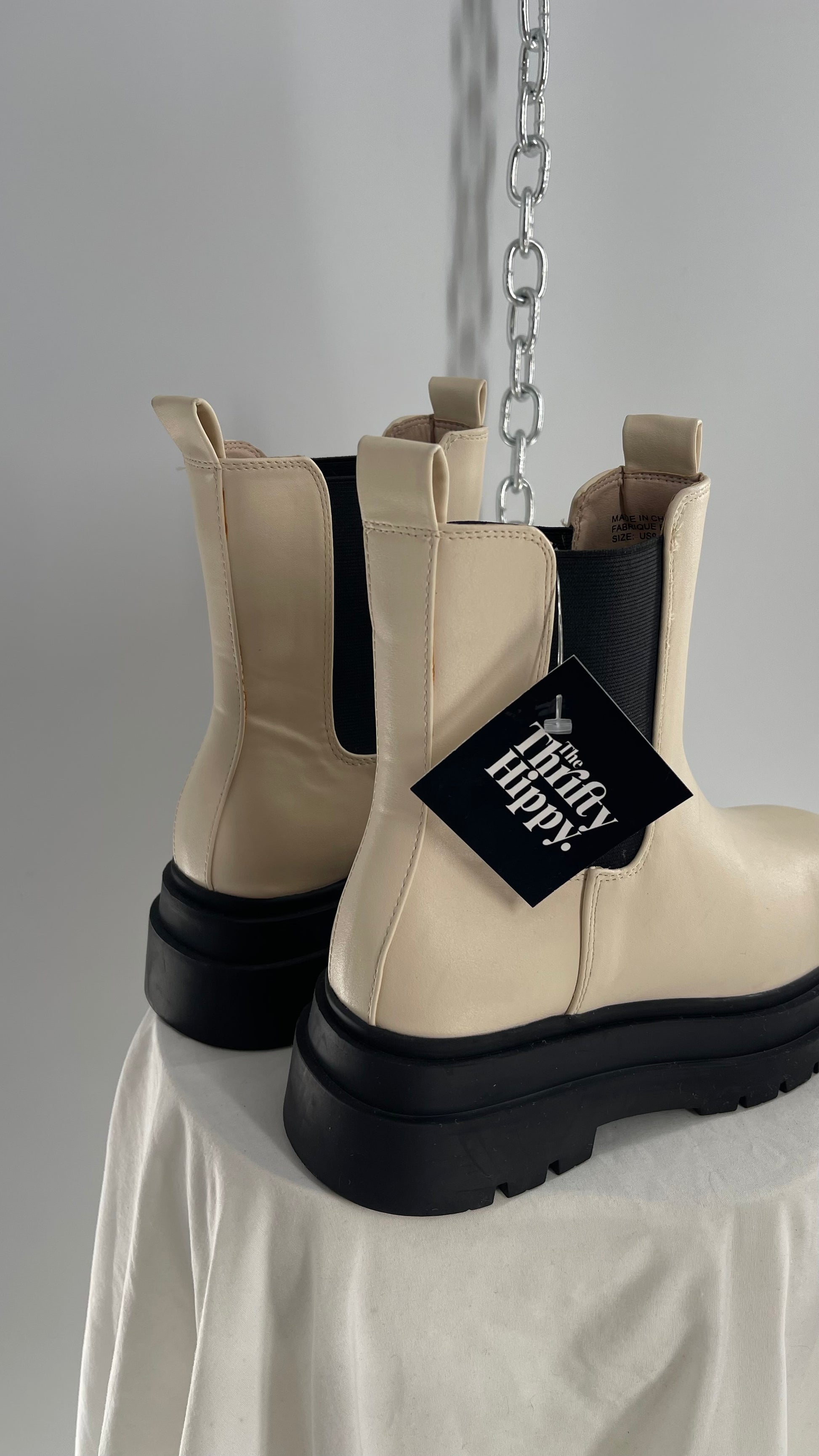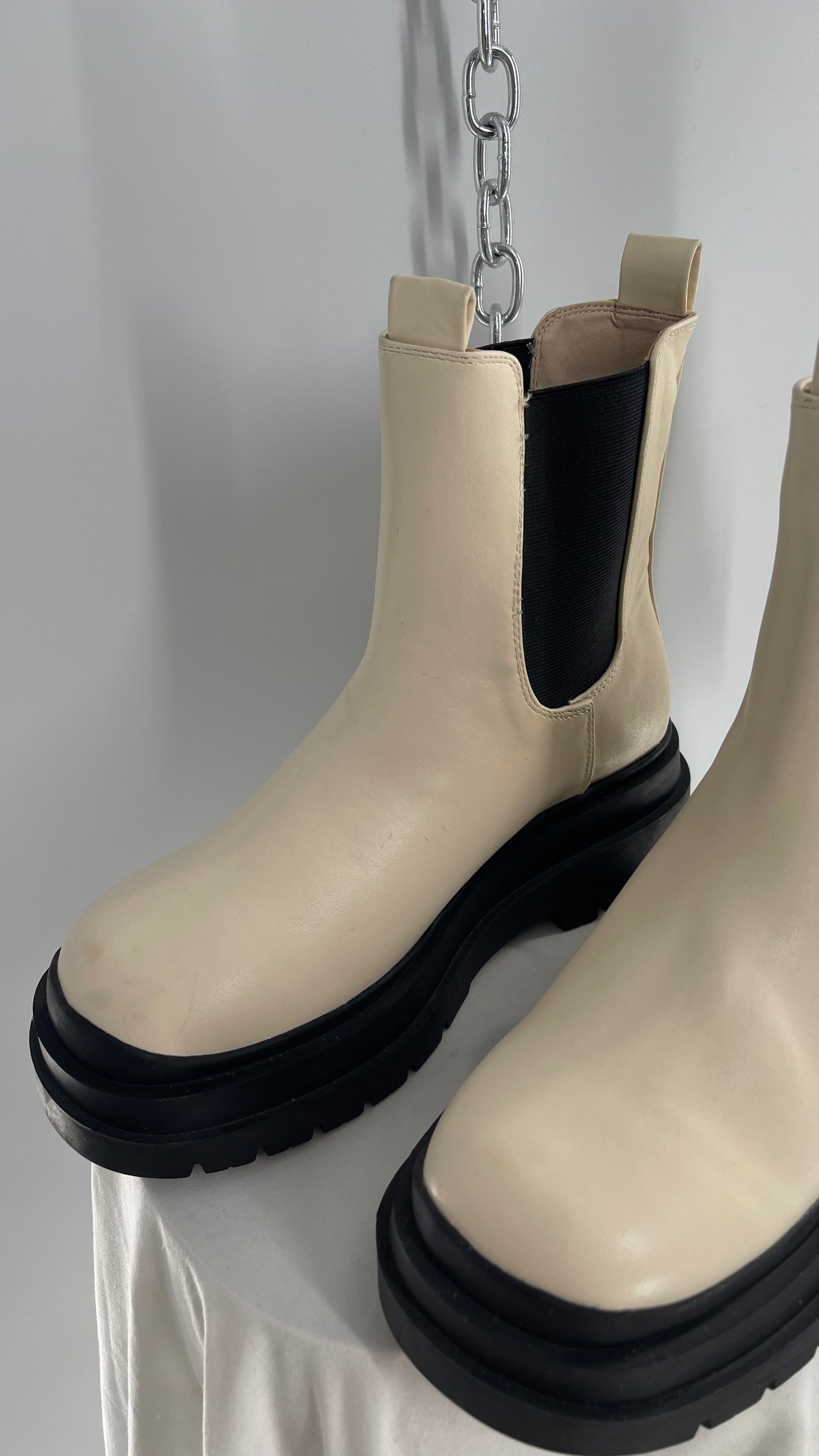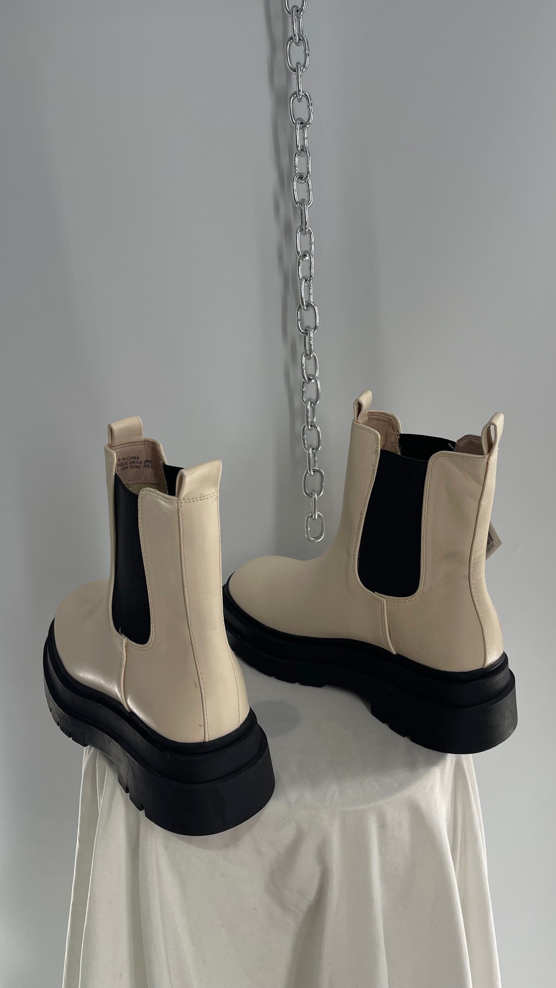 Urban Outfitters off White Chelsea Boot with Black sole and elastic siding