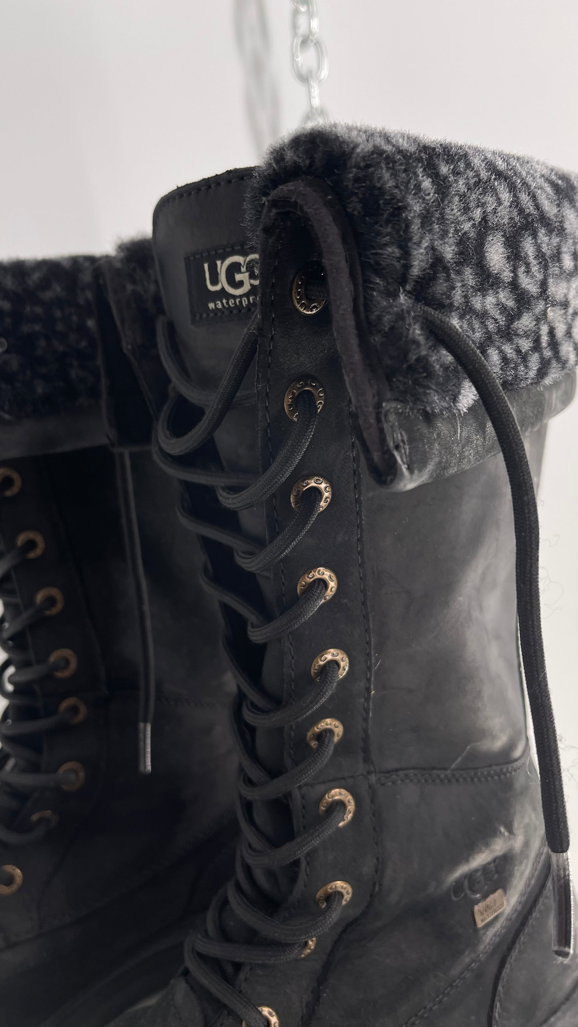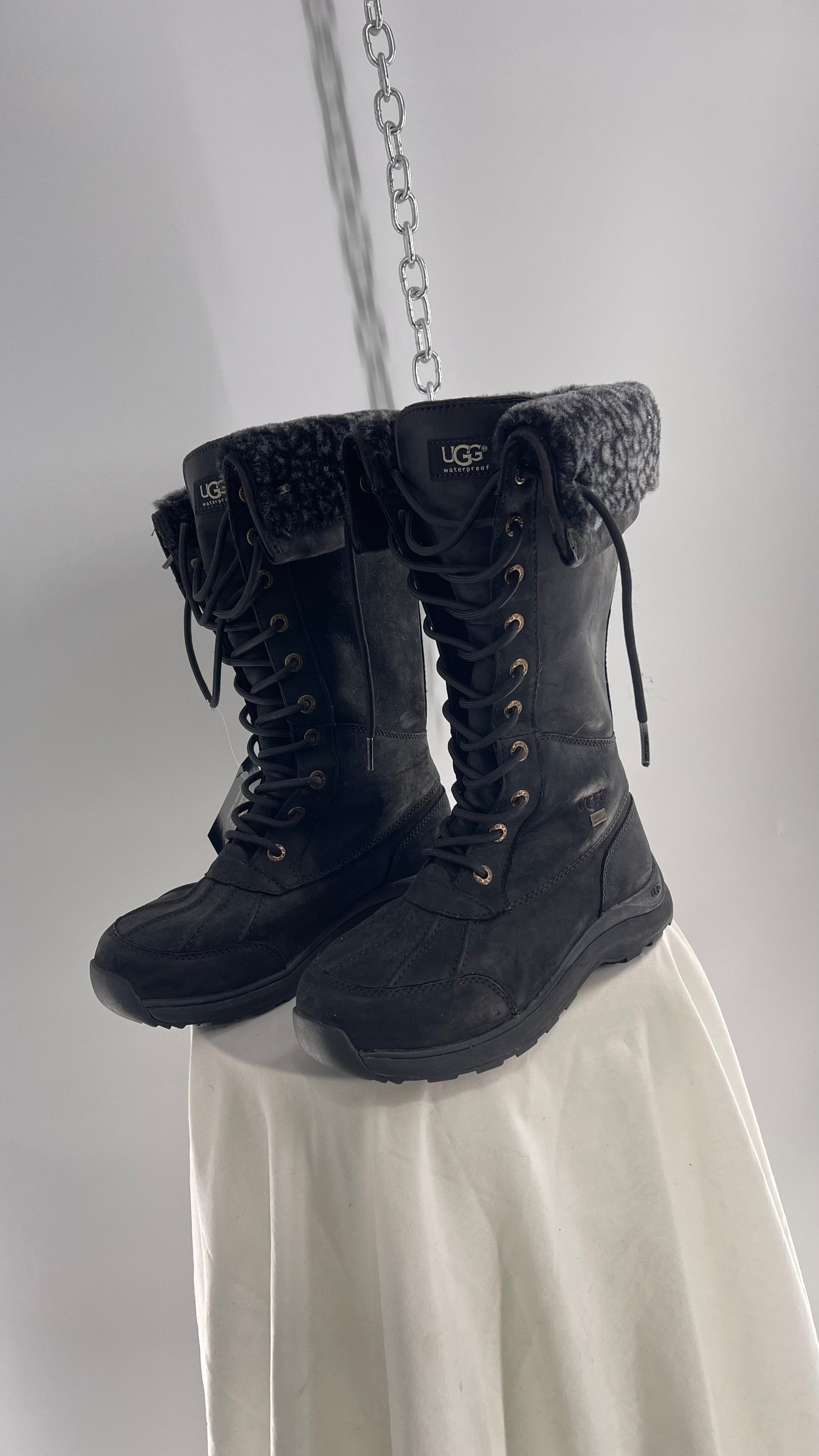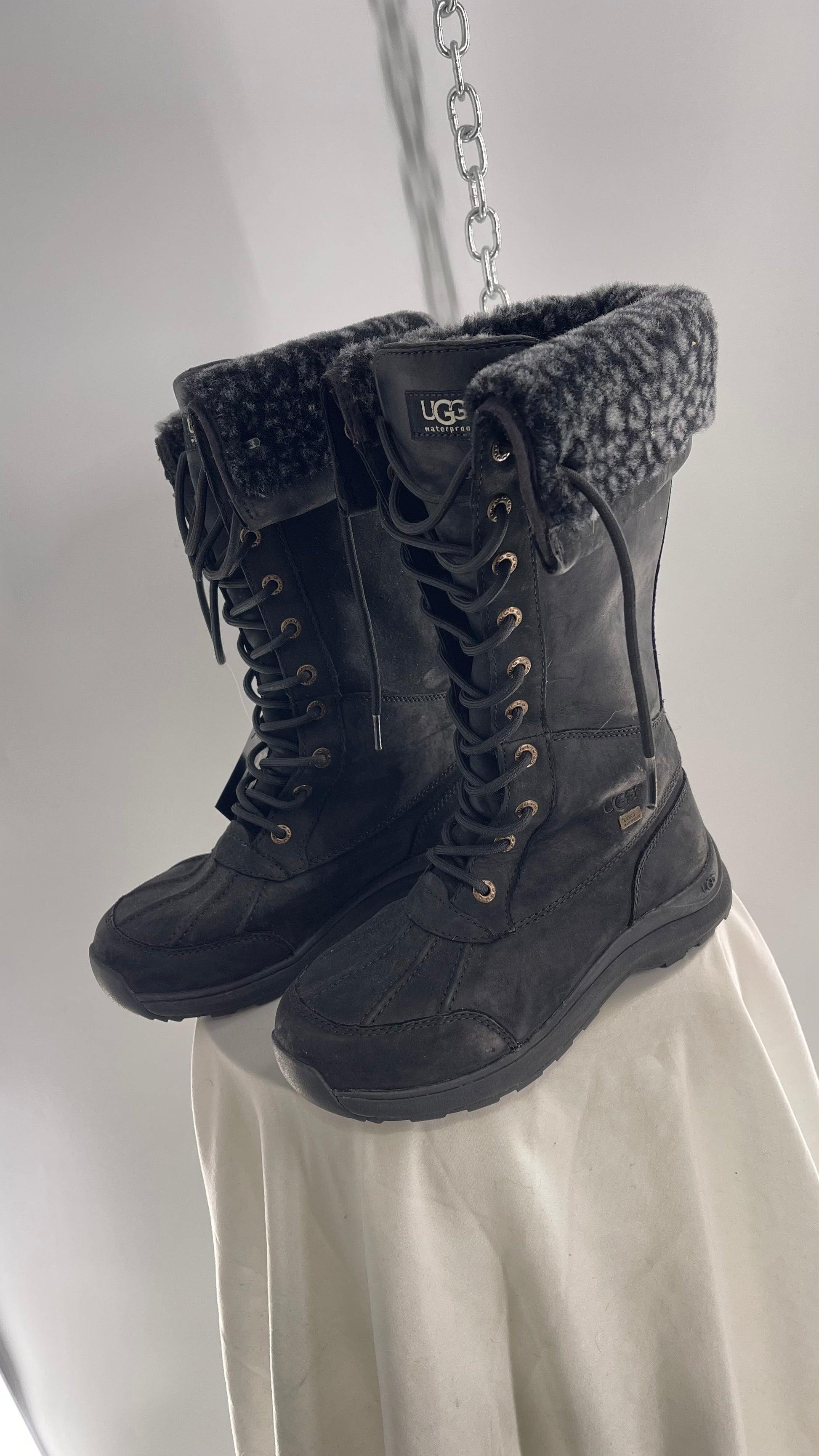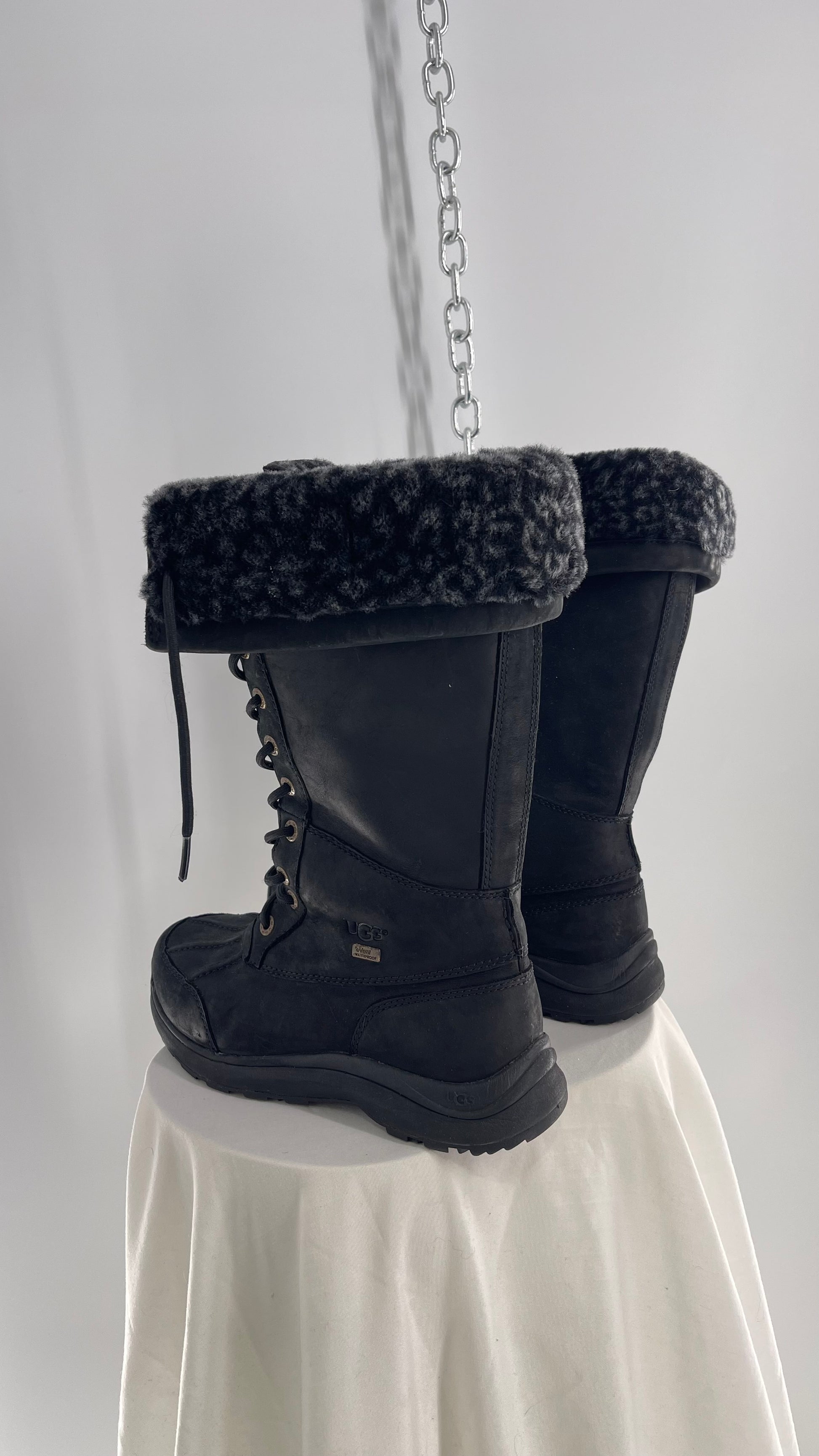 UGG Rare Black Tall Waterproof Adirondack Boots with Leather and Sherpa Lining (6)
