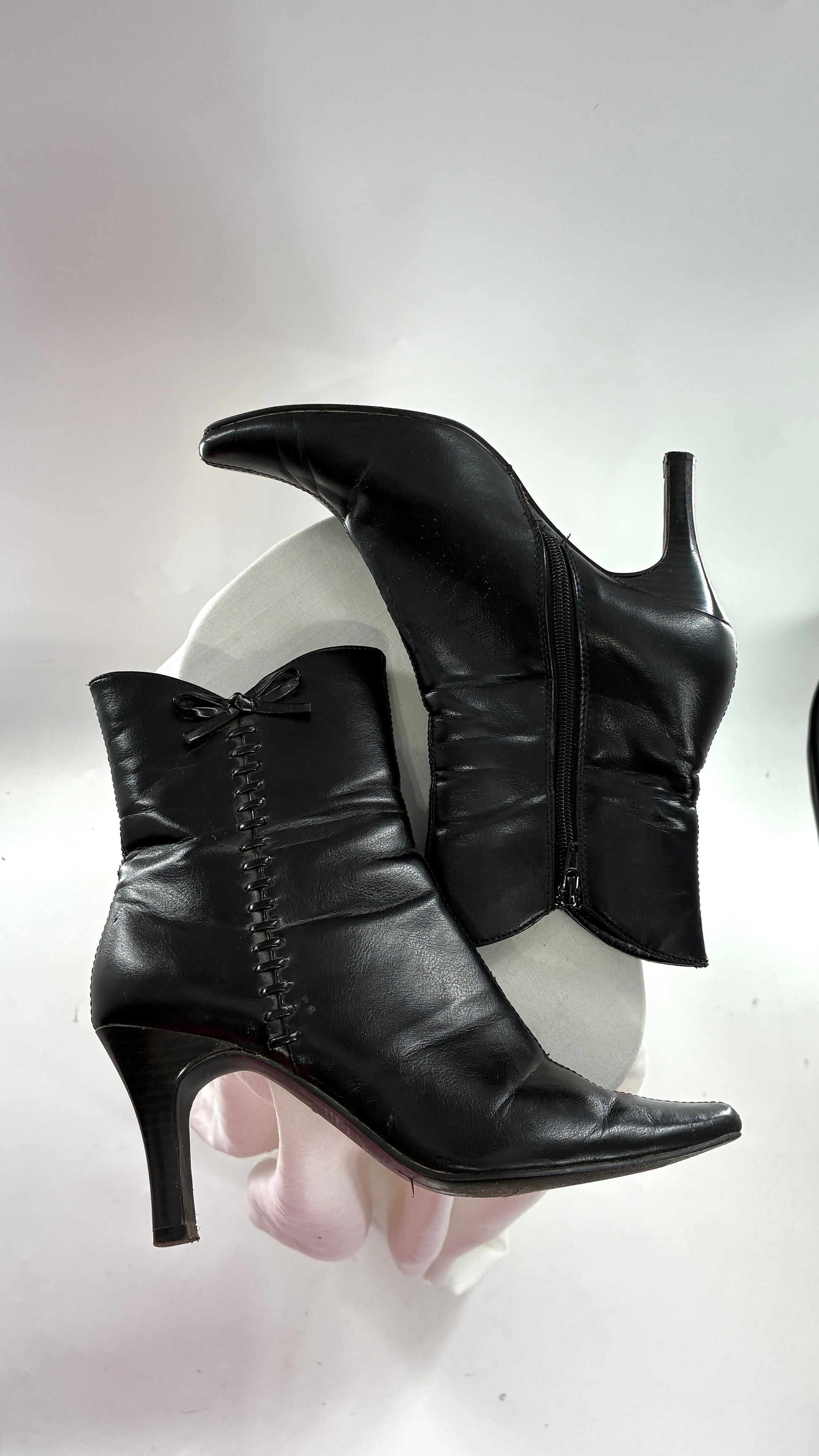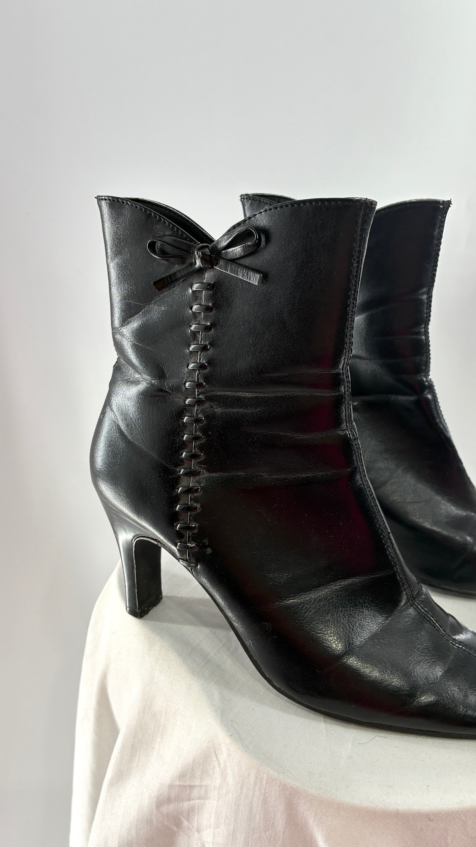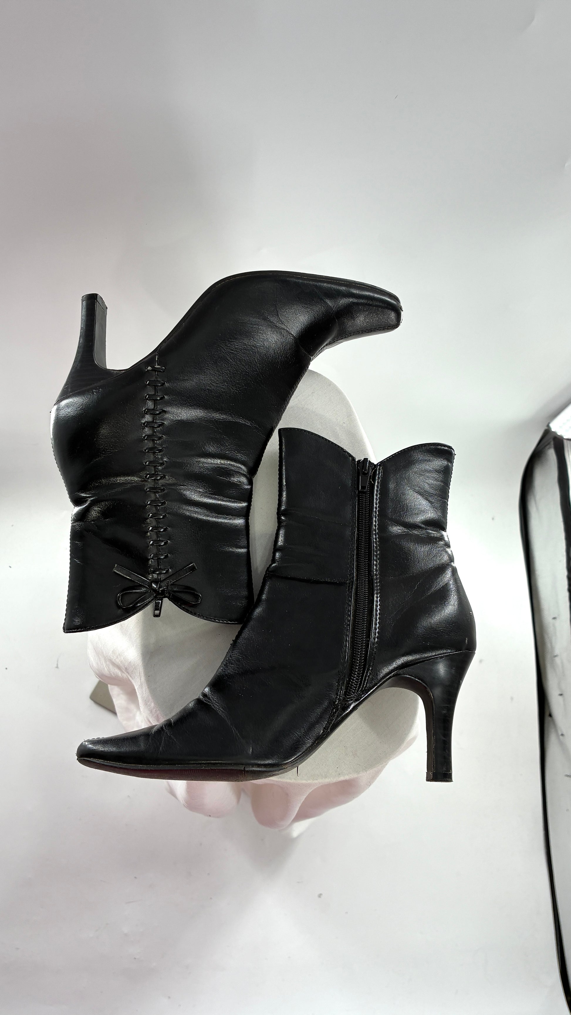 Vintage EXPRESSIONS Black Kitten Heel Boots with Lace Up, Bow Side Details