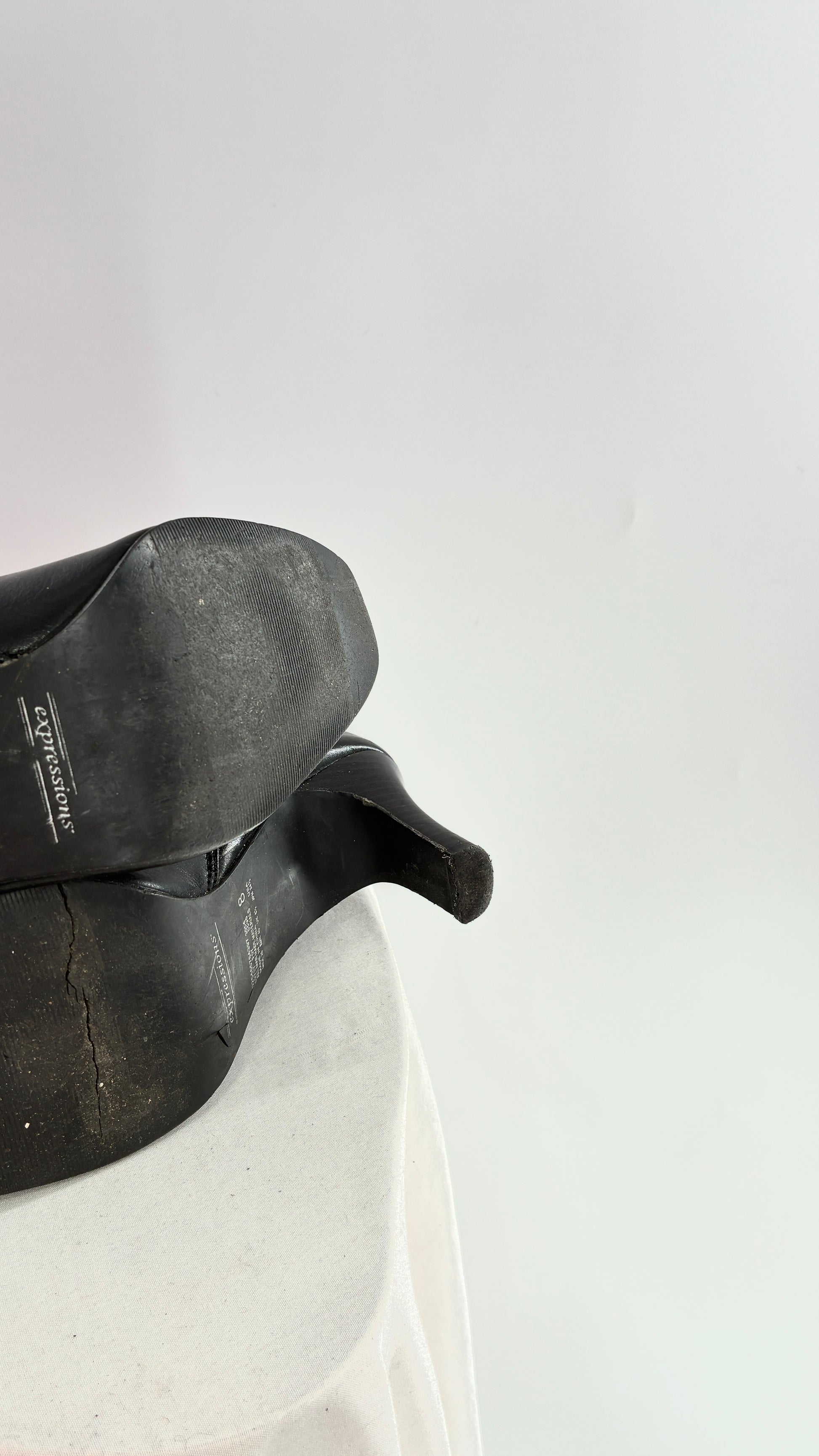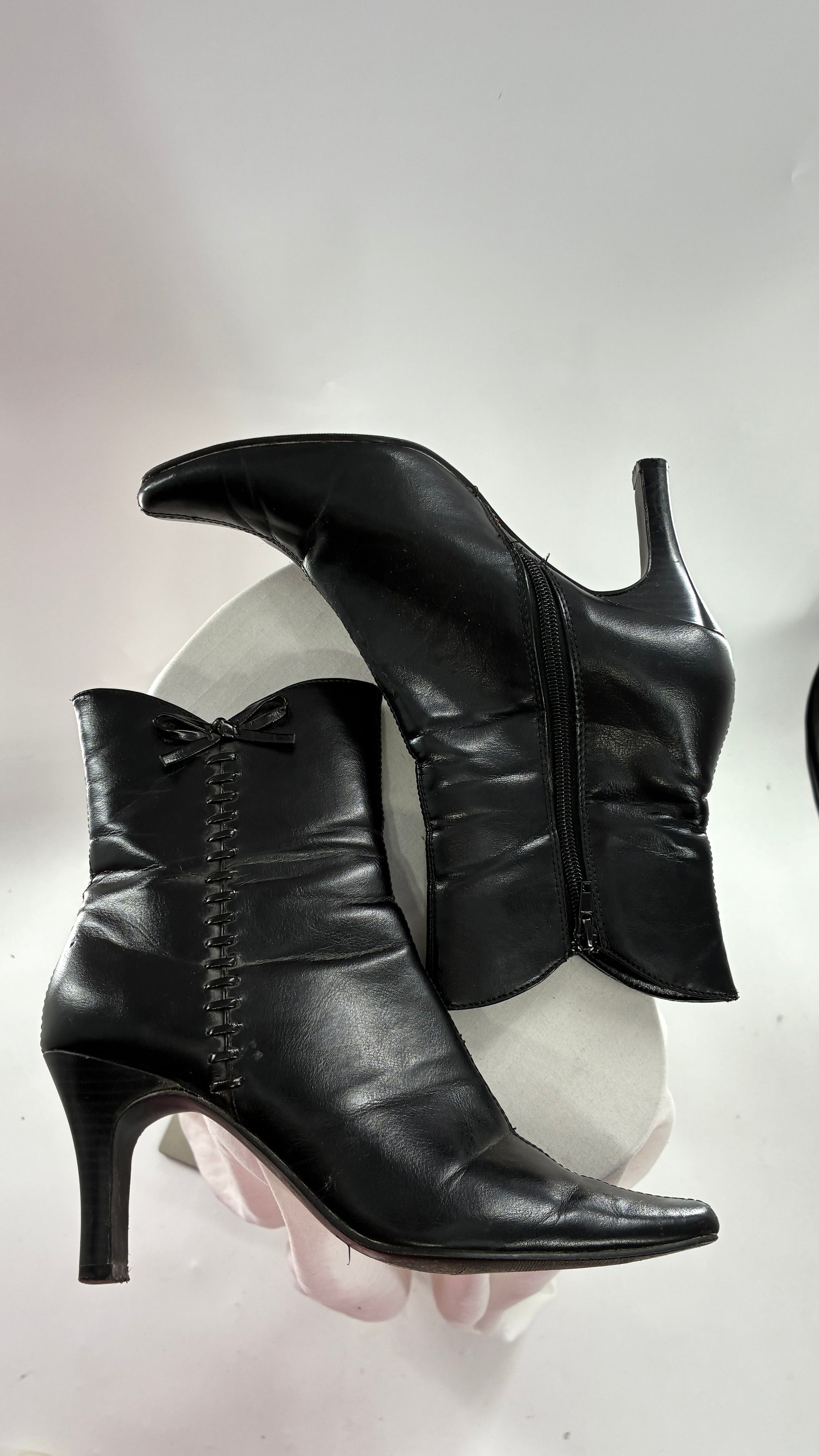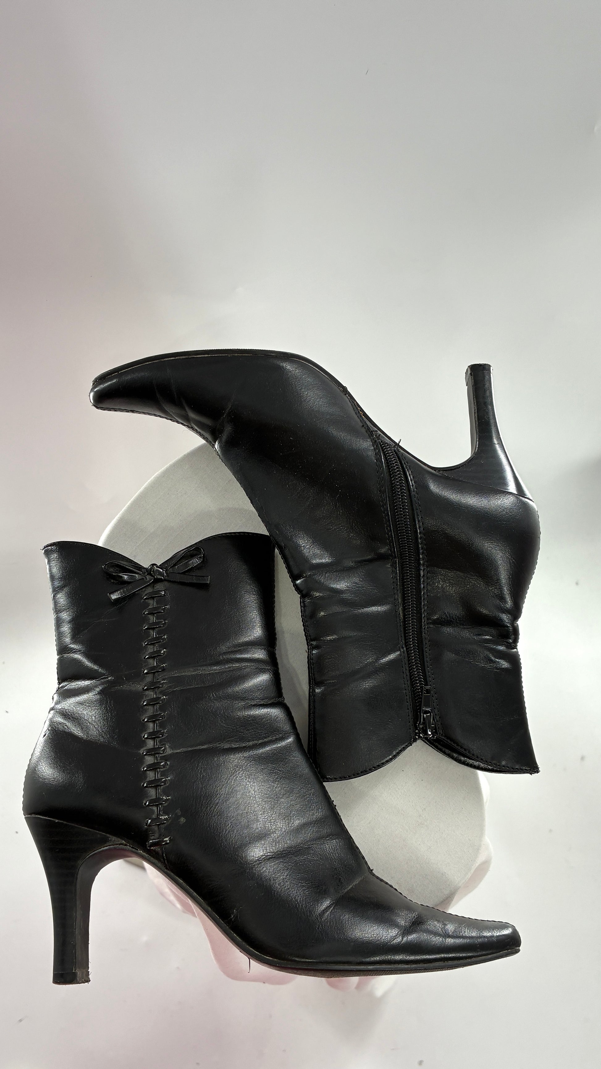Vintage EXPRESSIONS Black Kitten Heel Boots with Lace Up, Bow Side Details