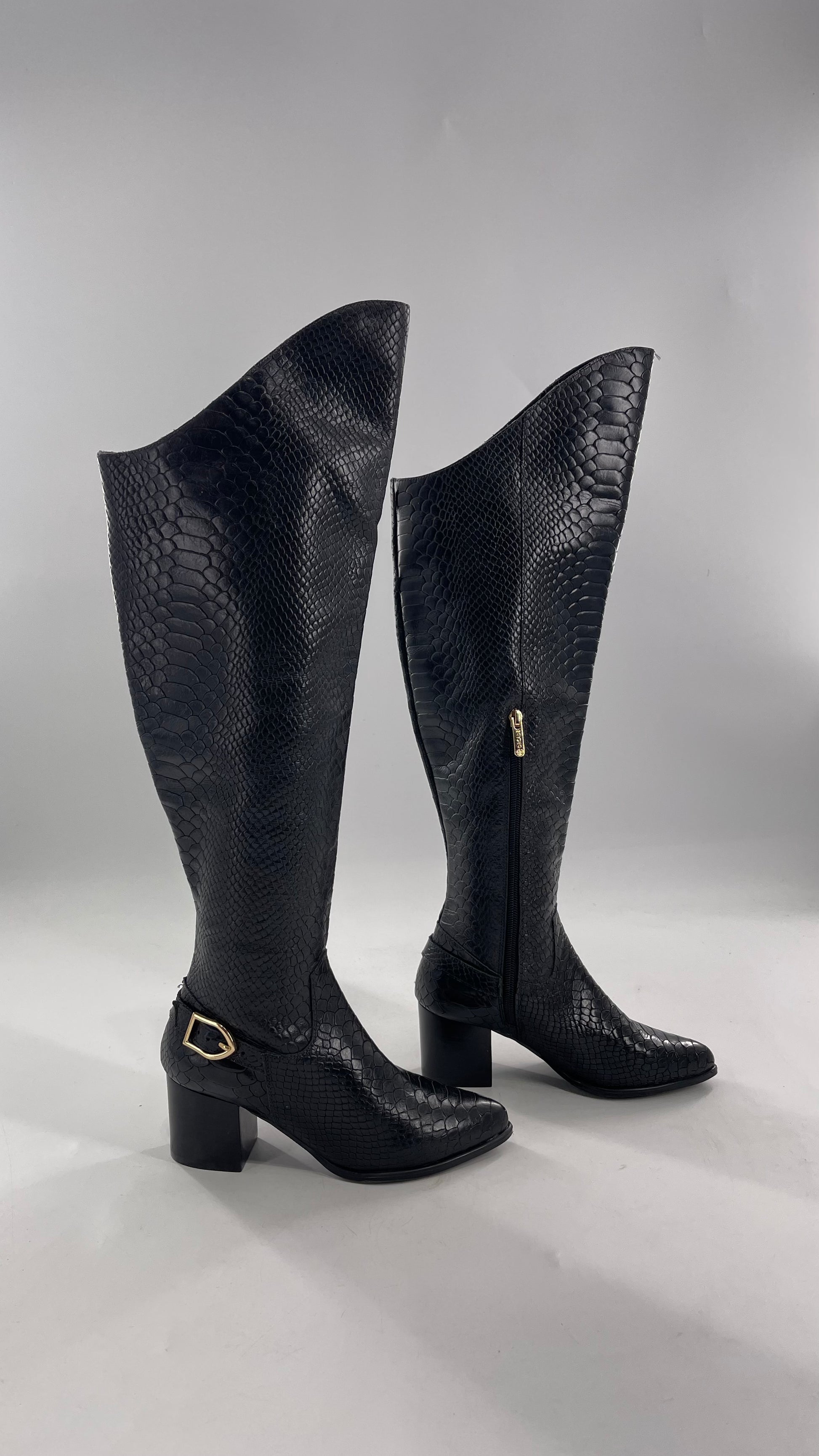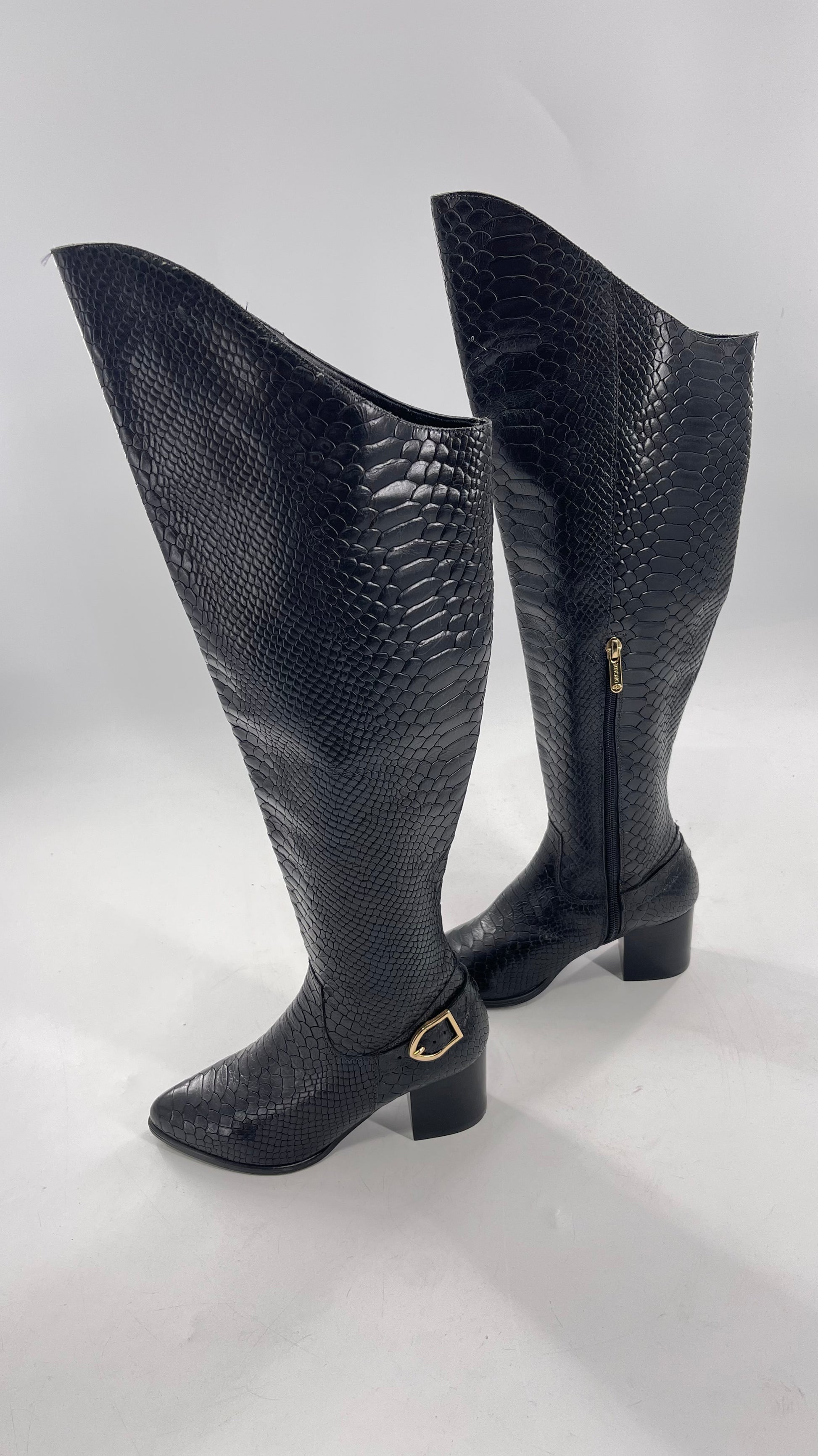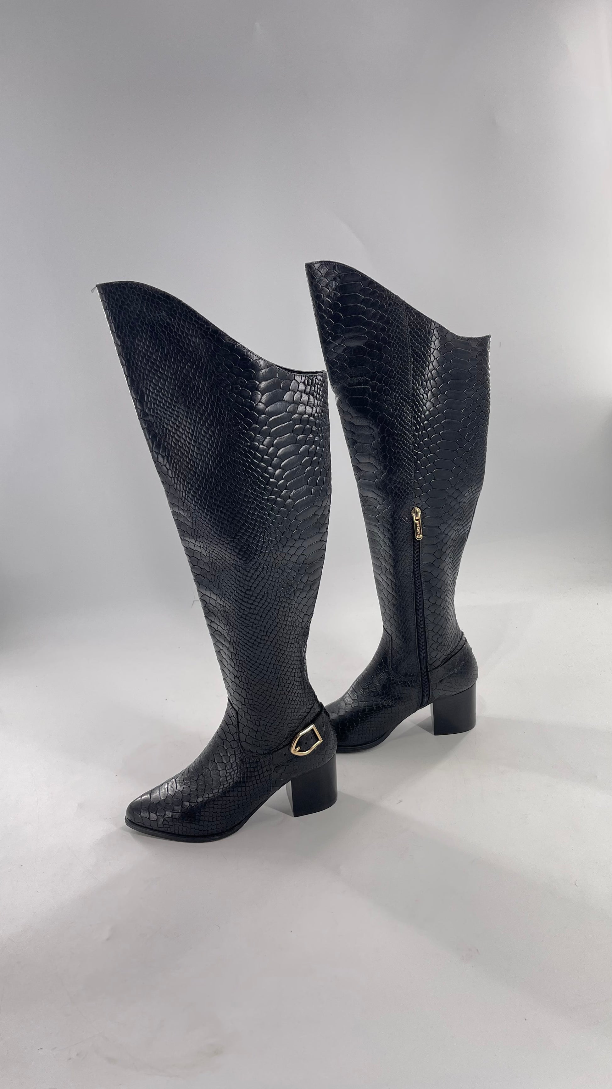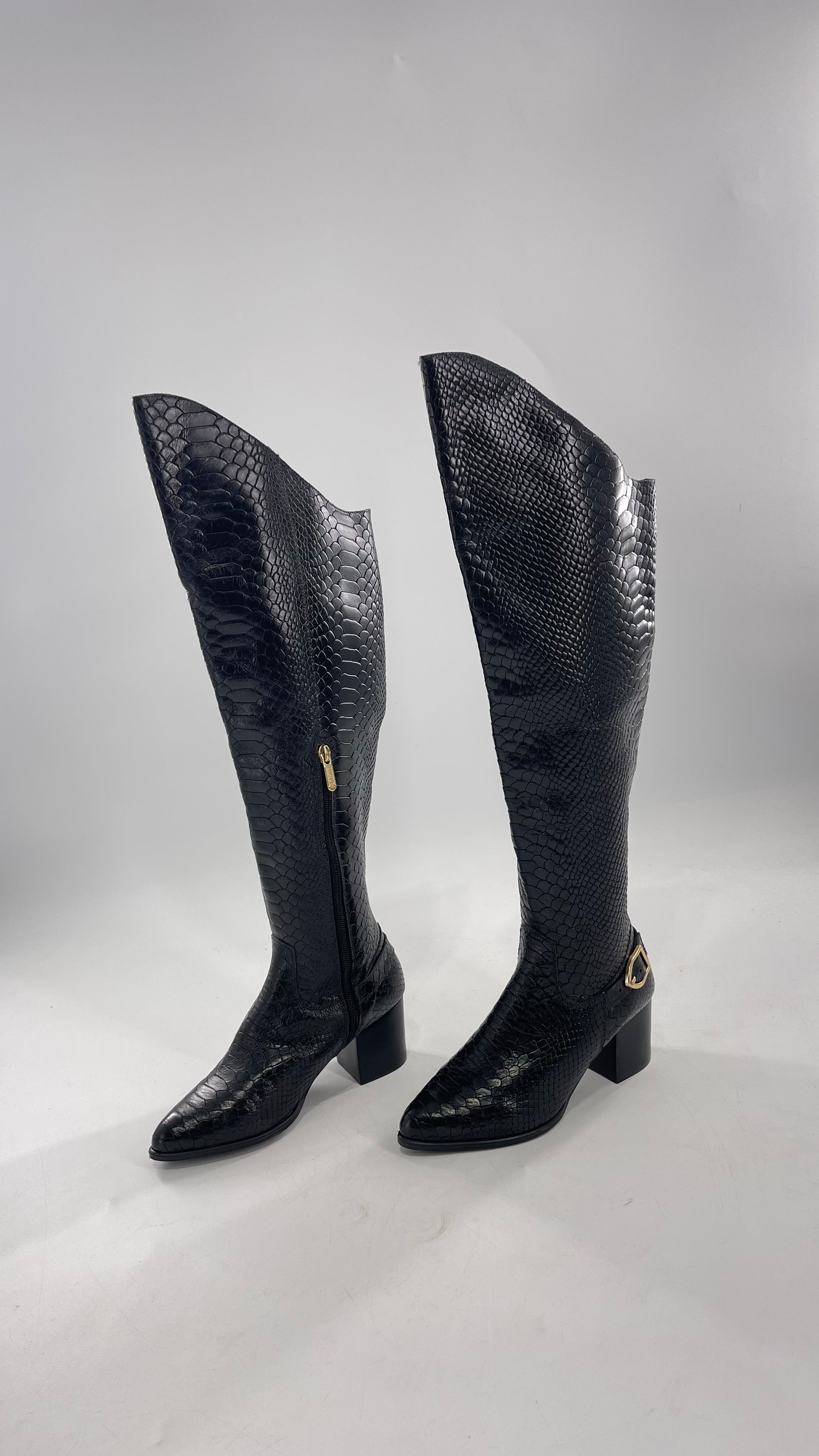 ORCADE Brazilian Leather Crocodile Embossed Knee High Boots