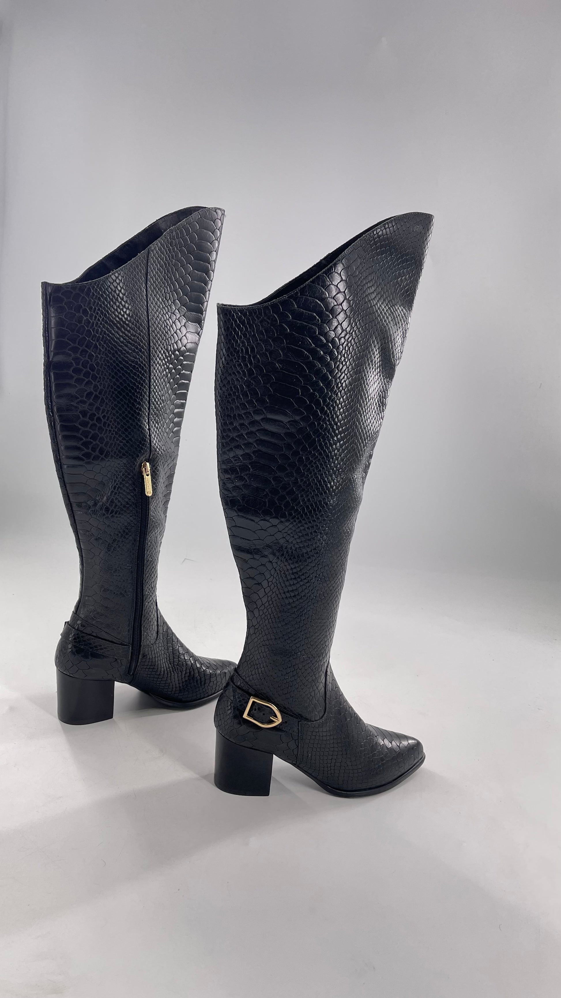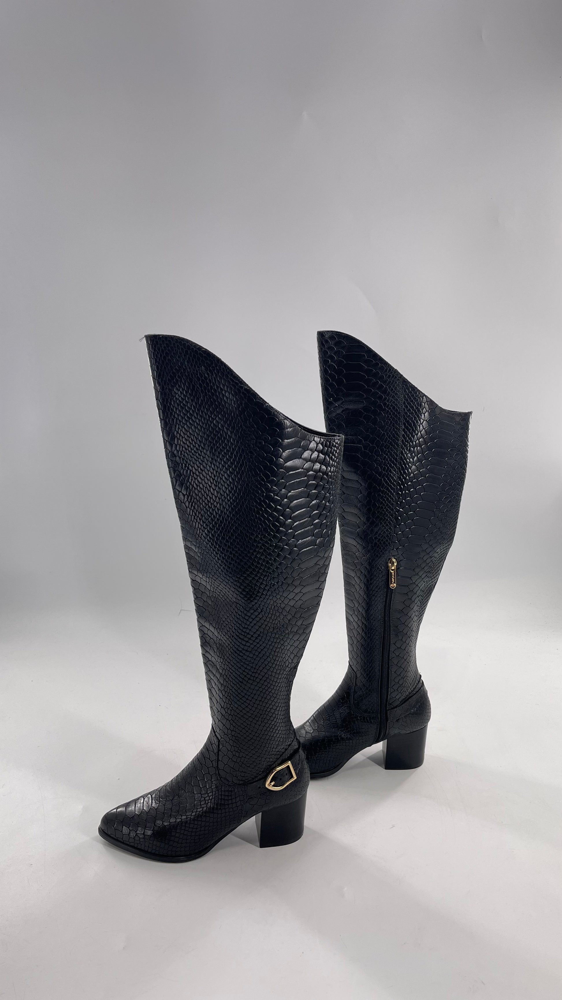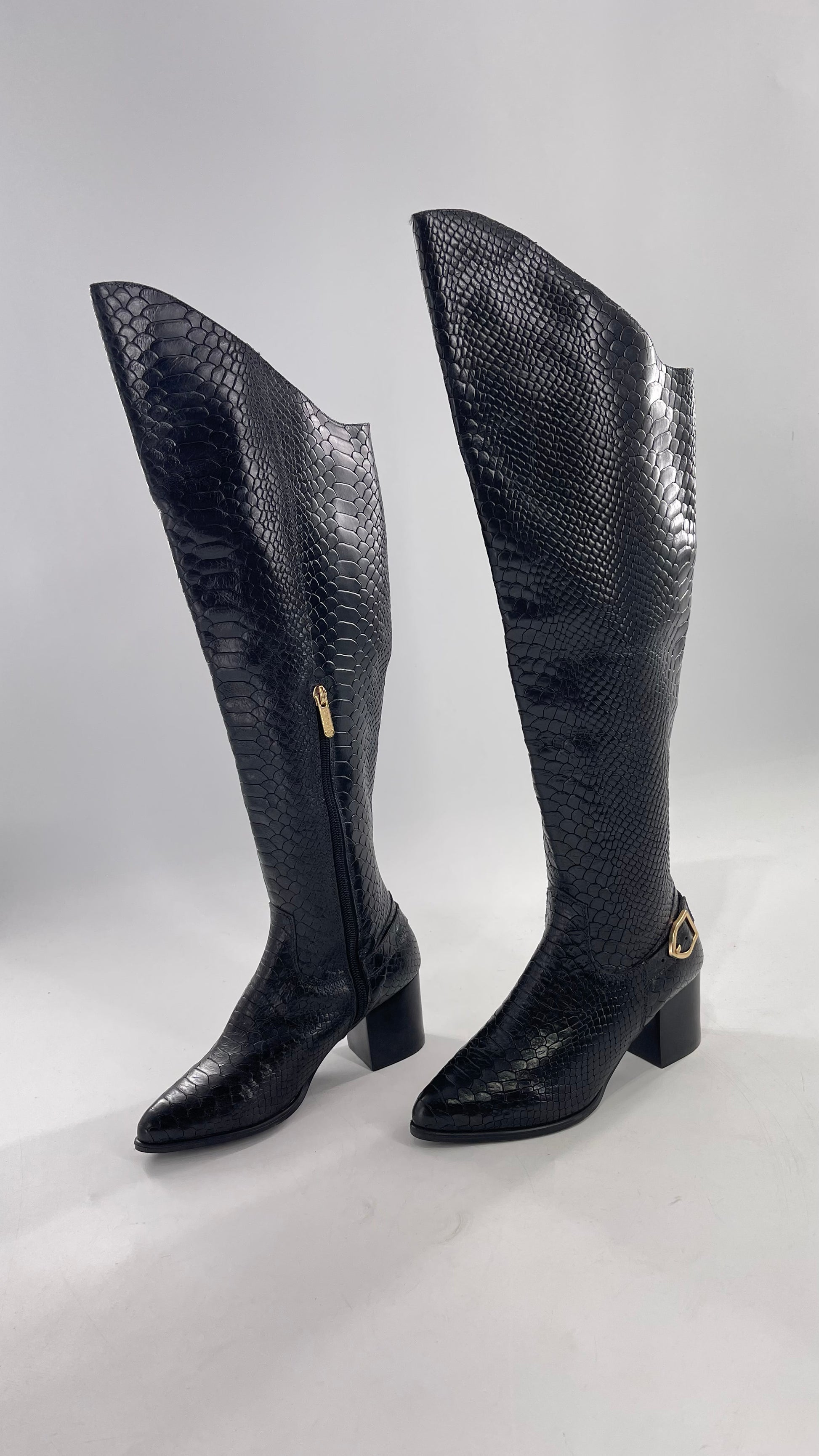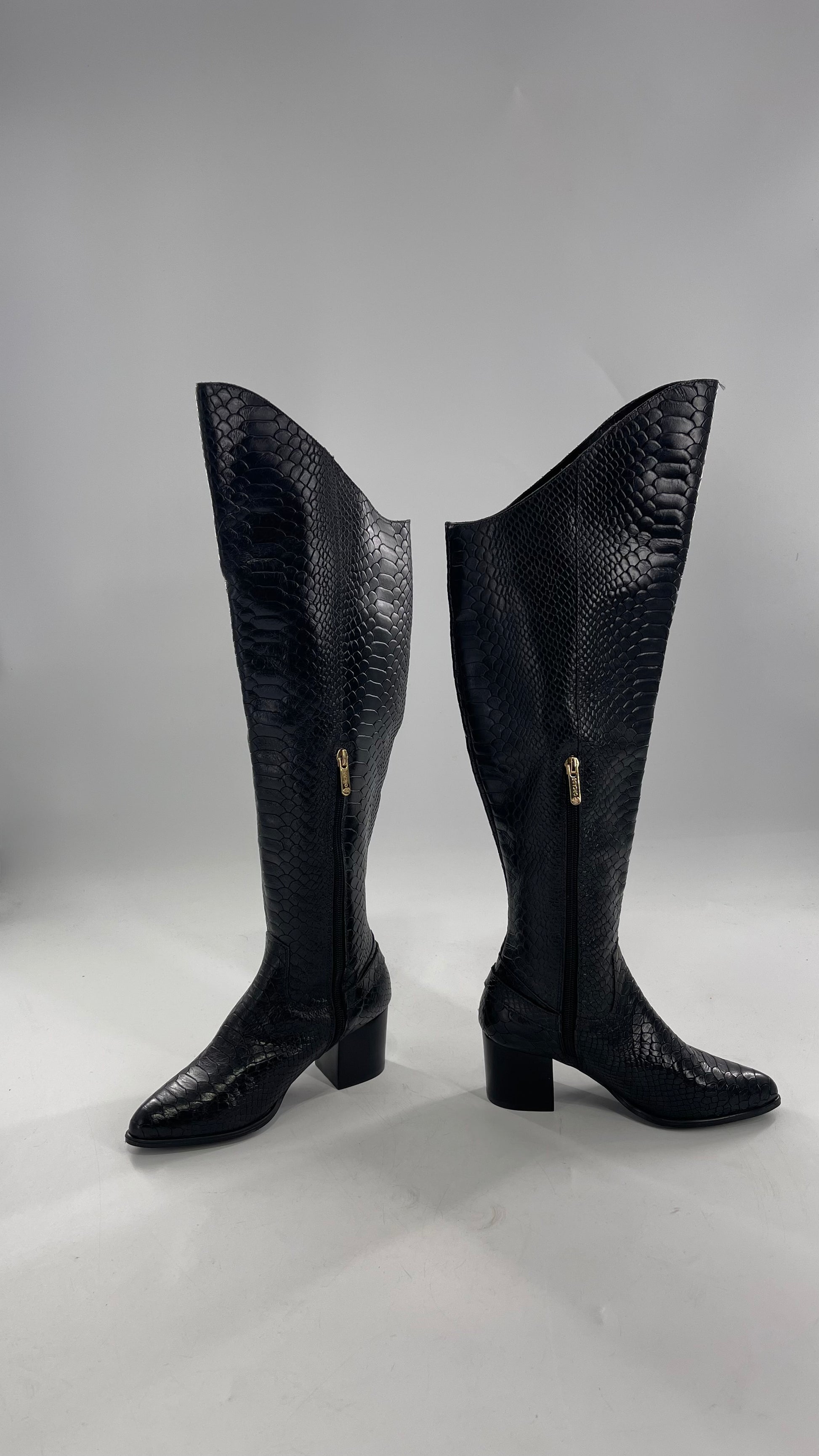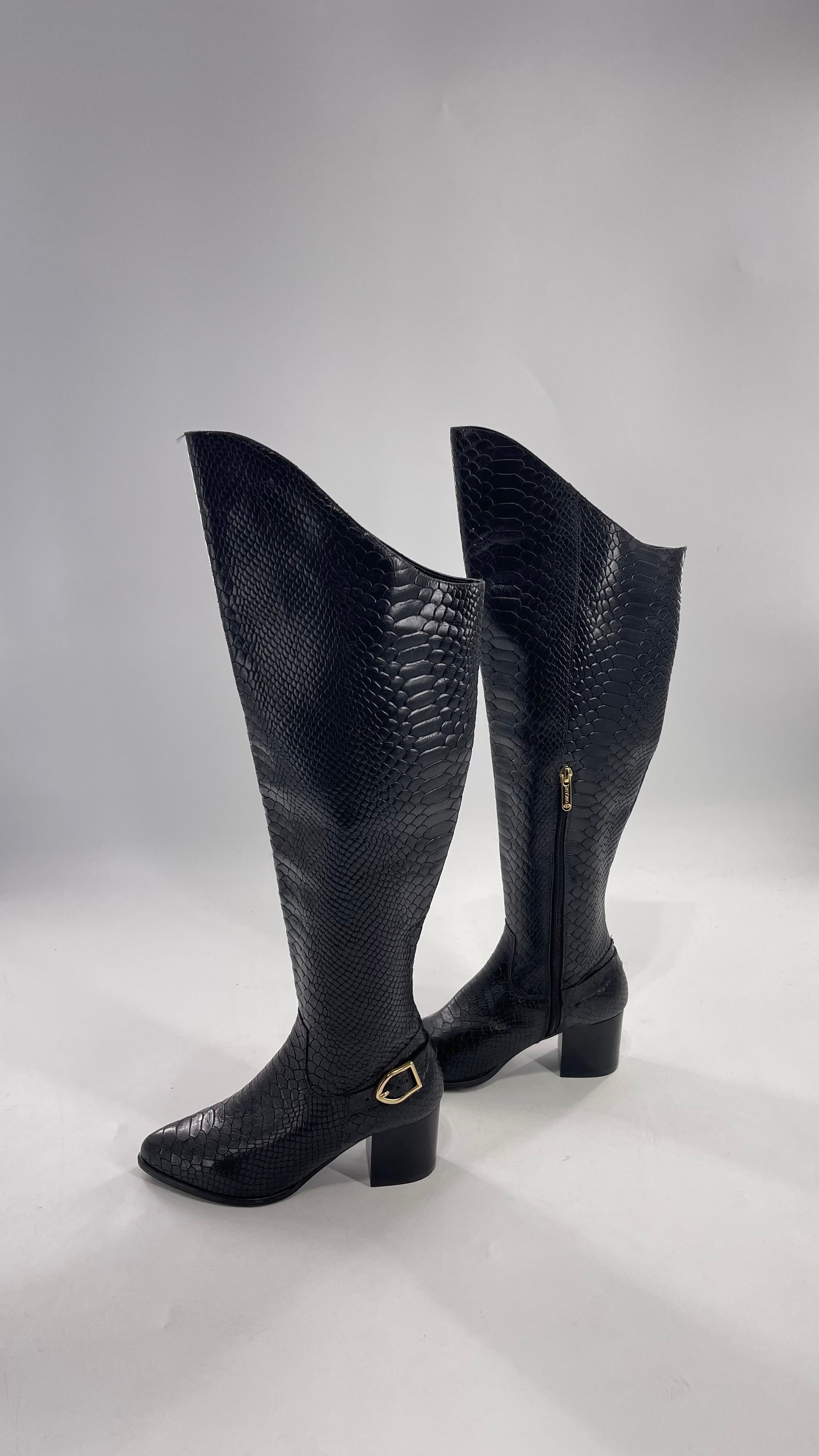 ORCADE Brazilian Leather Crocodile Embossed Knee High Boots