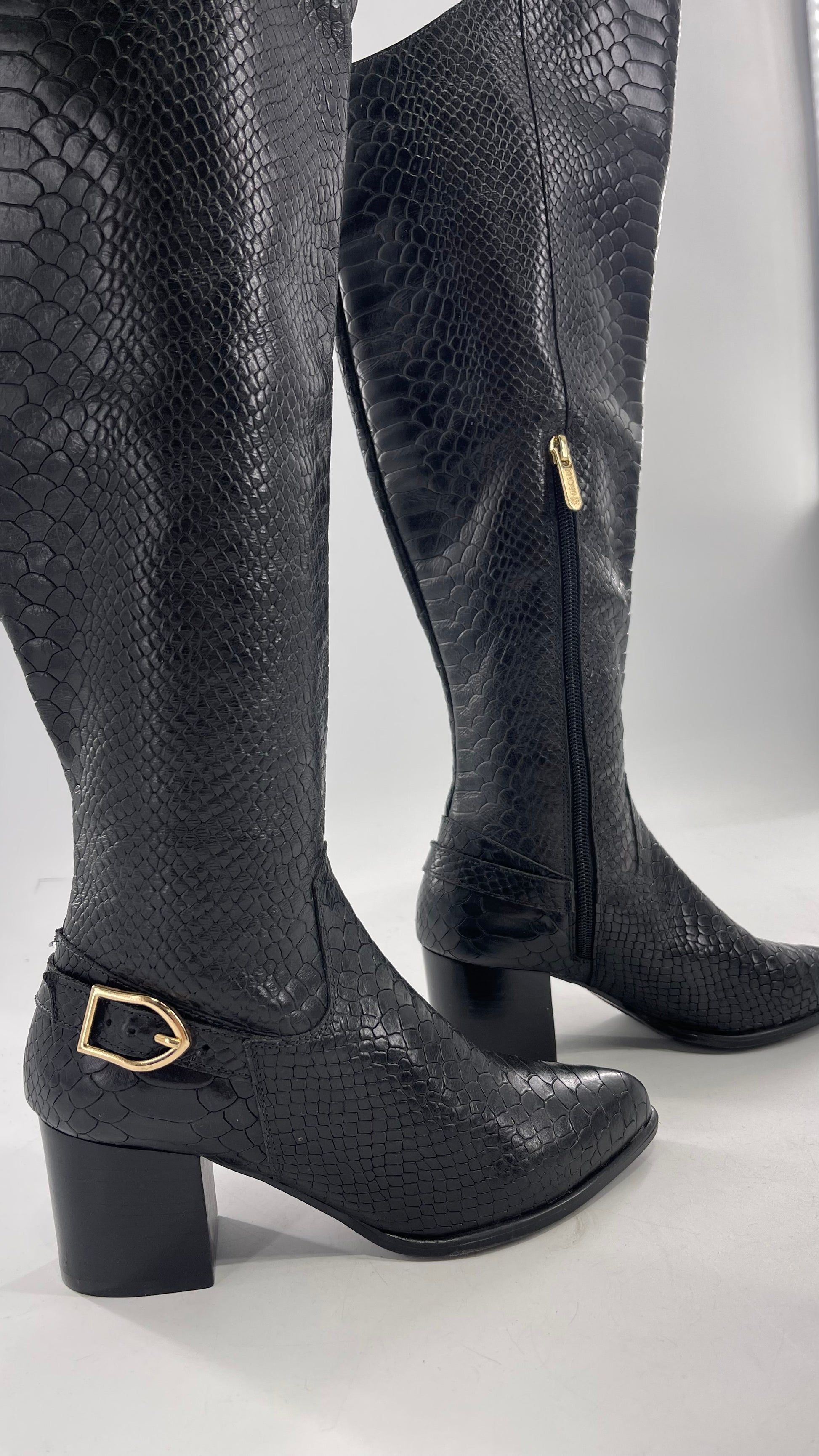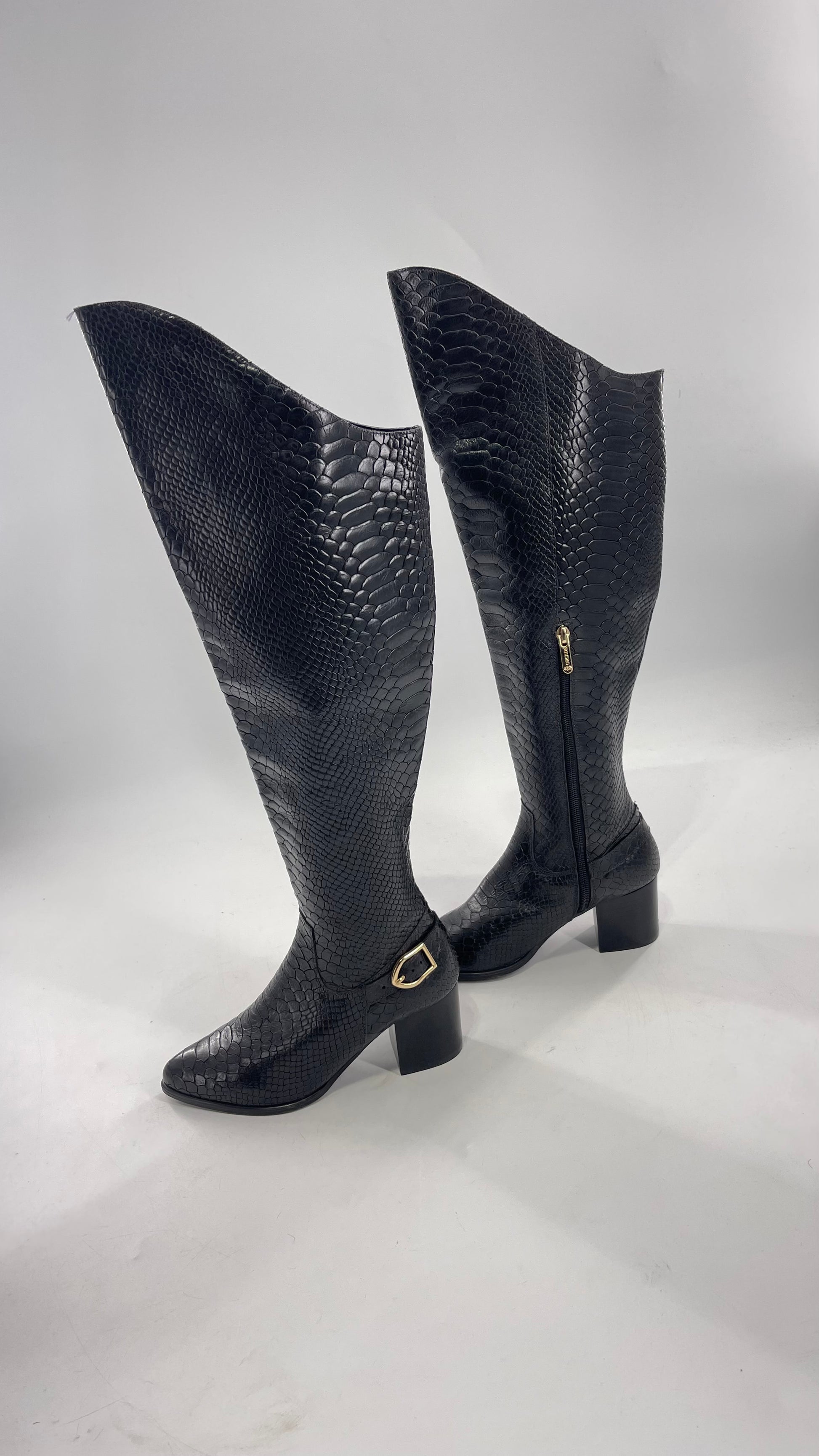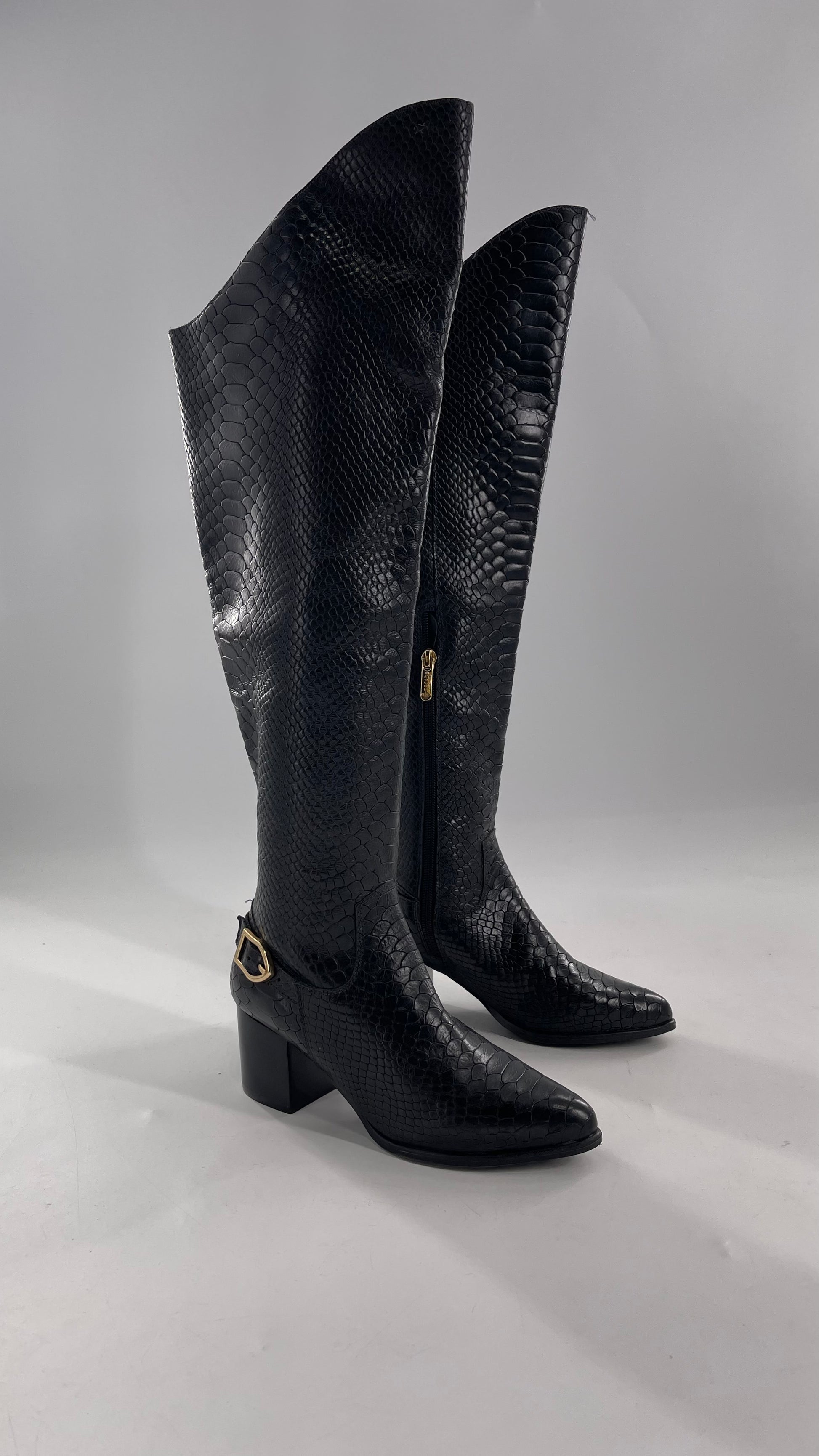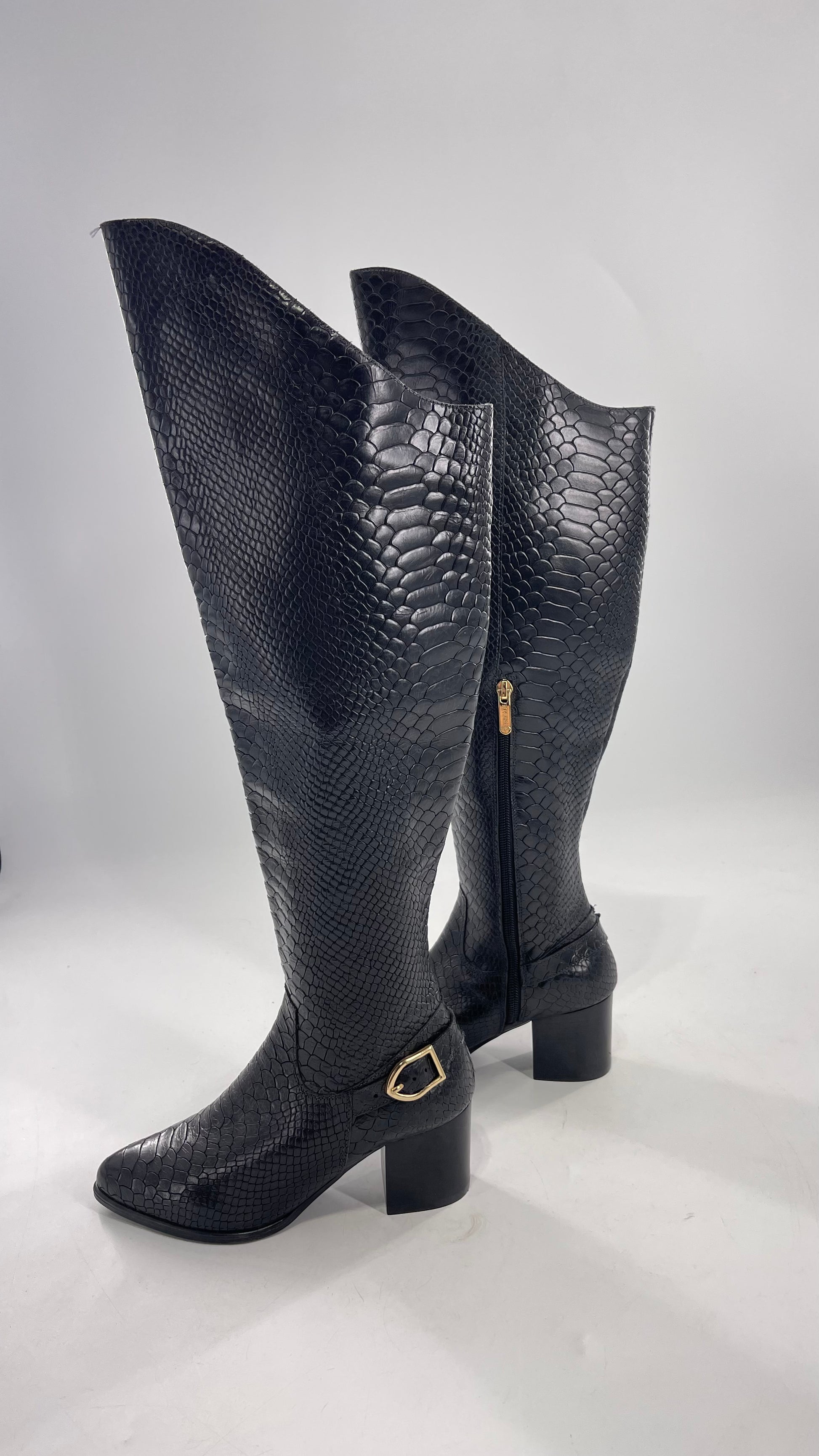 ORCADE Brazilian Leather Crocodile Embossed Knee High Boots