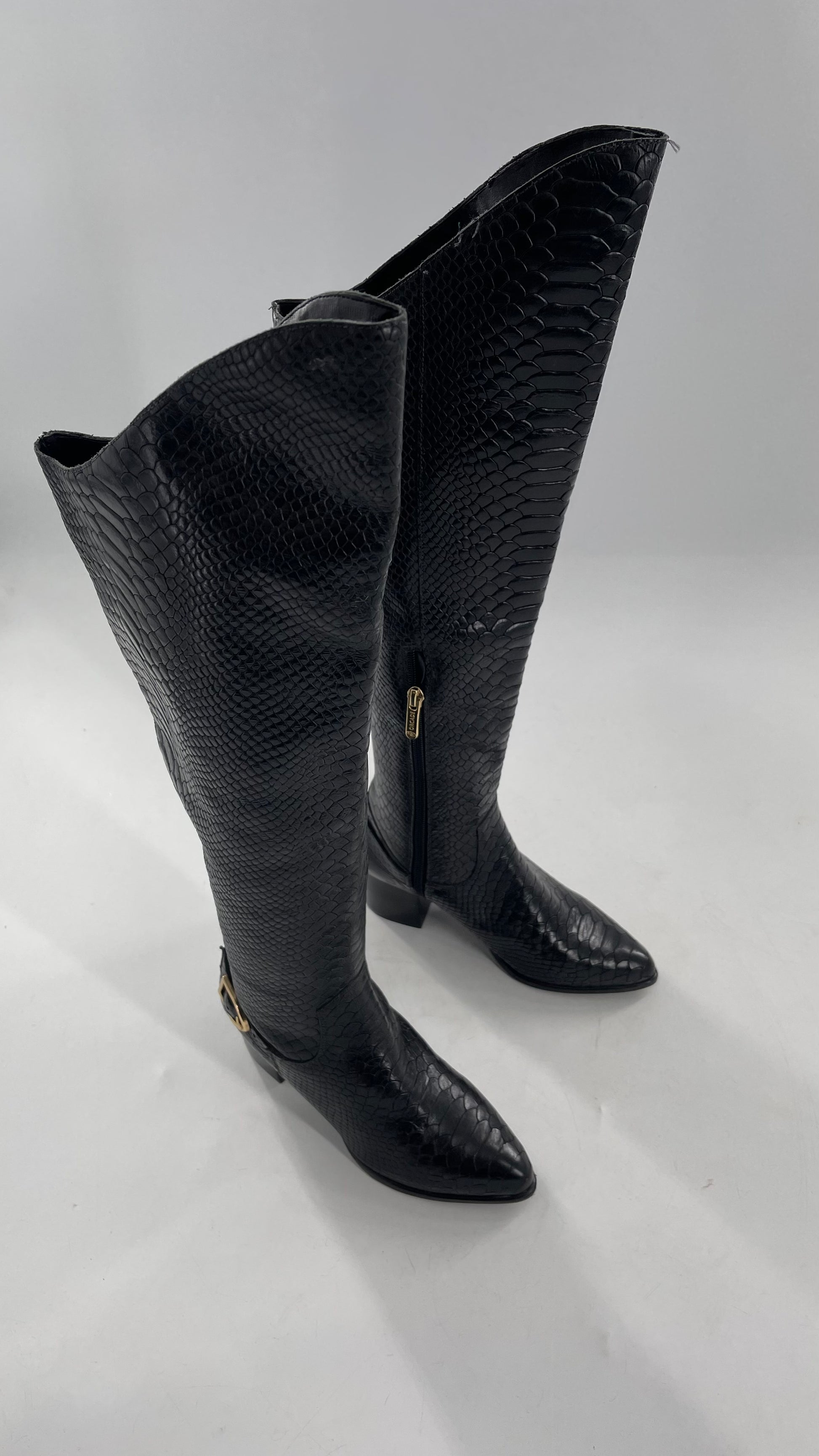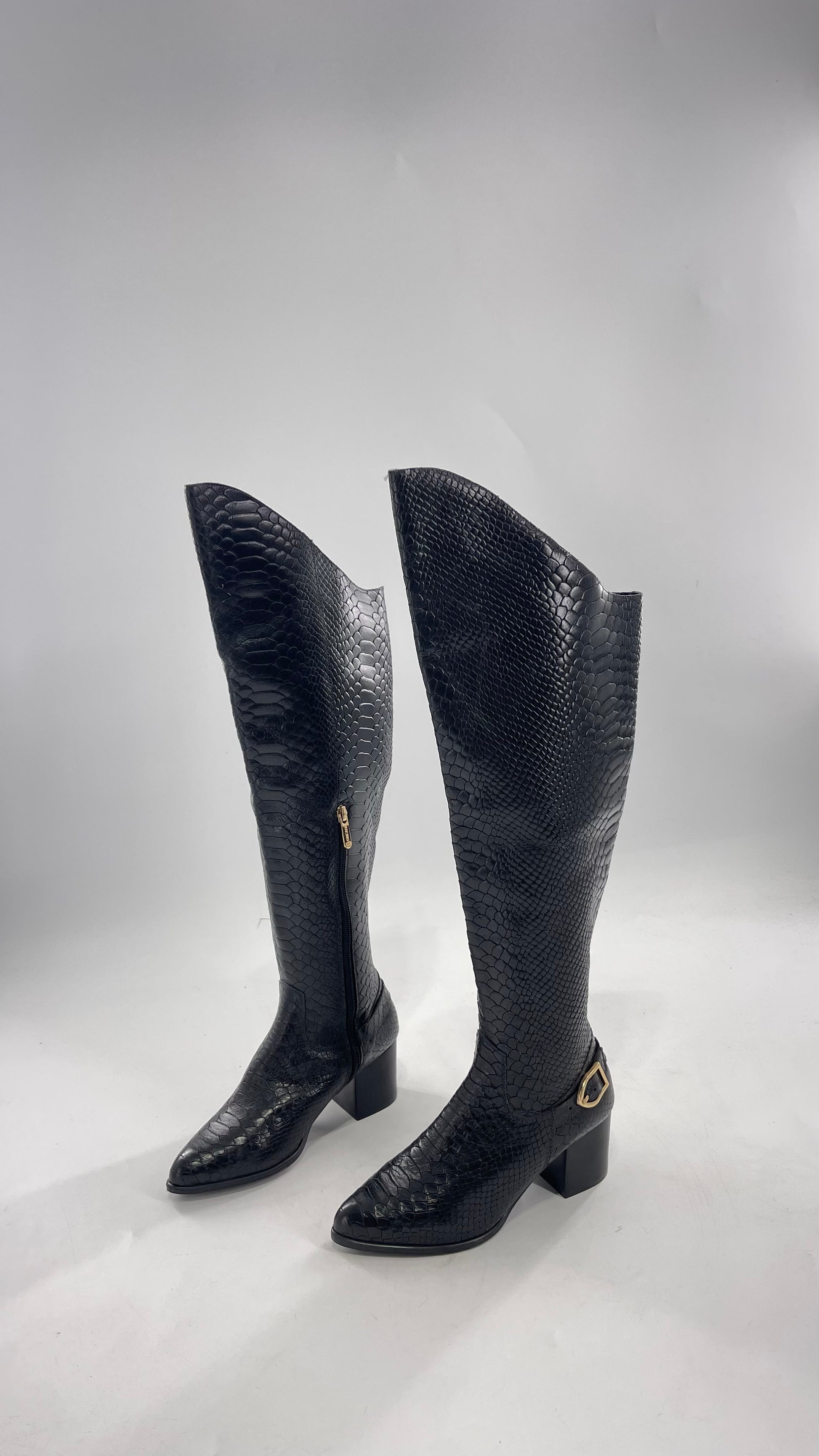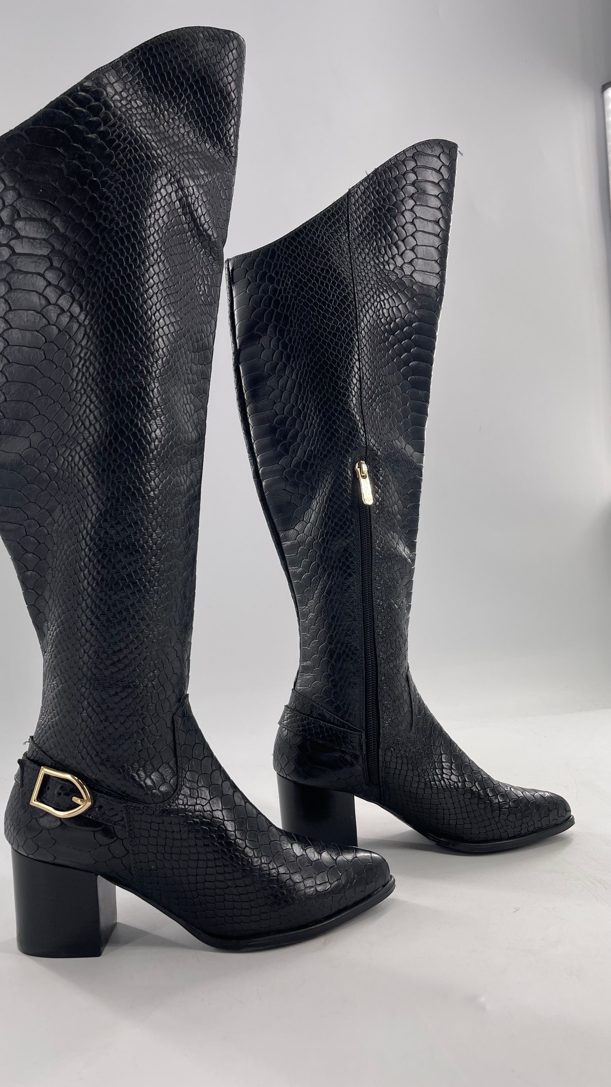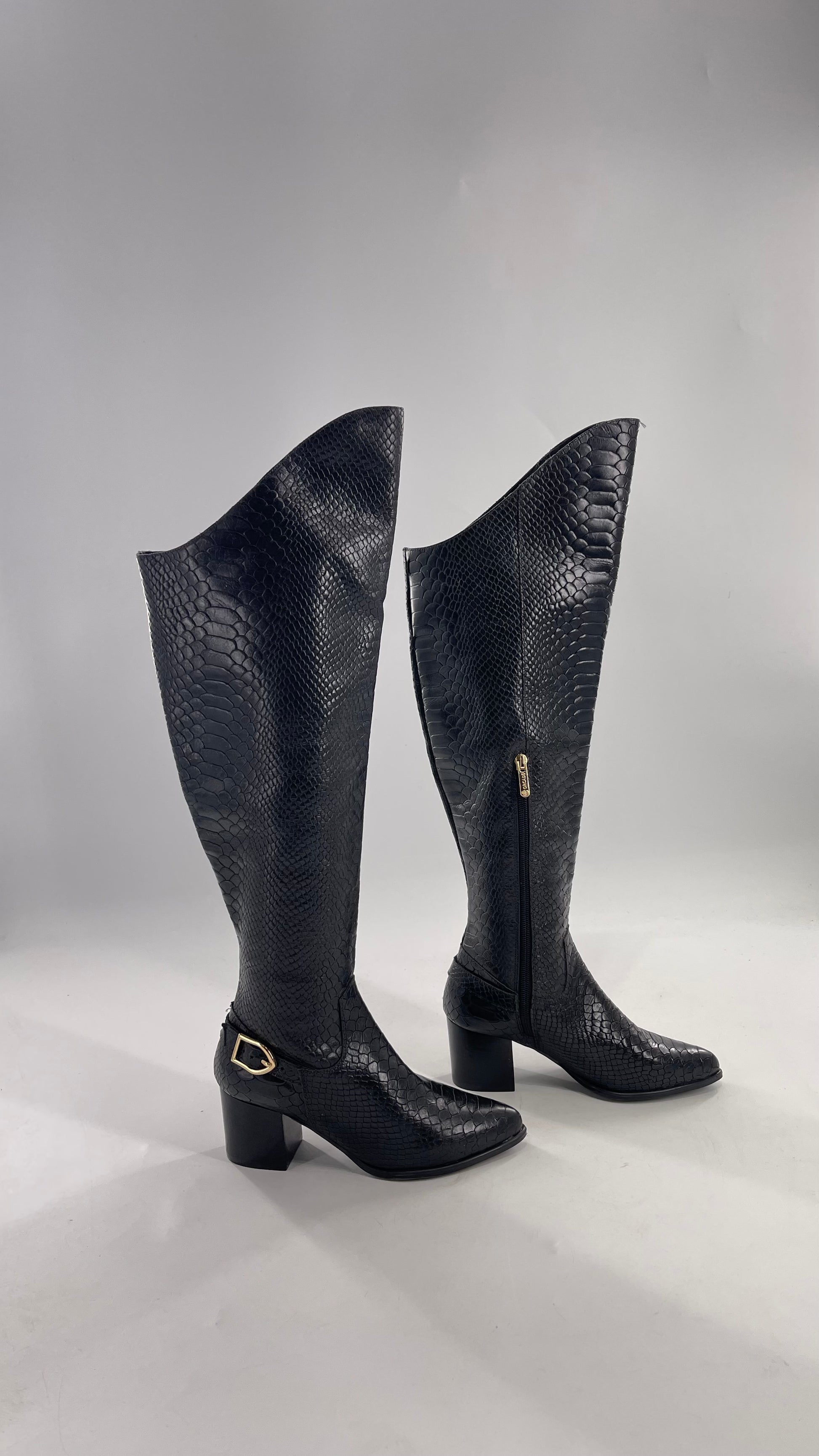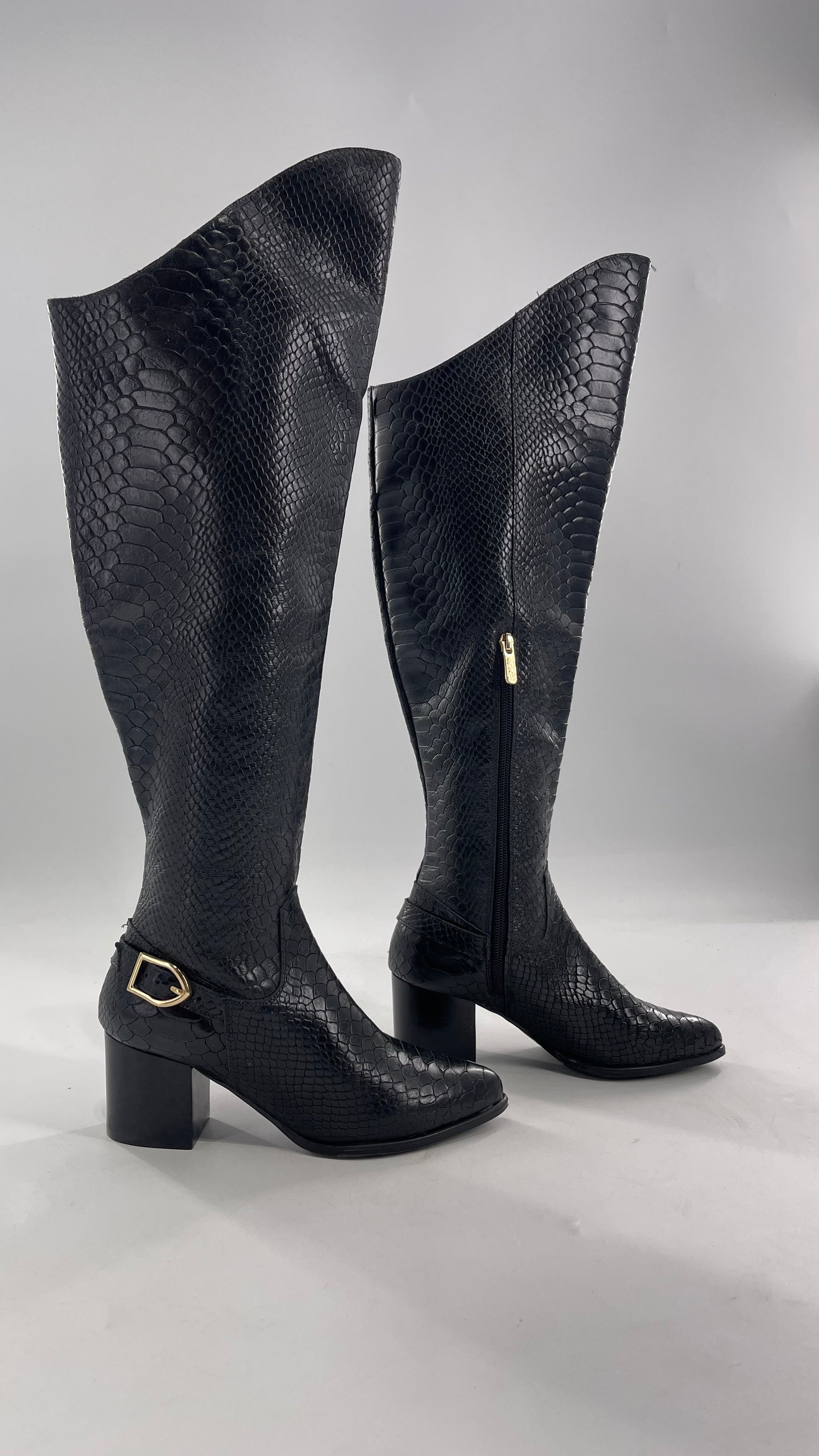 ORCADE Brazilian Leather Crocodile Embossed Knee High Boots