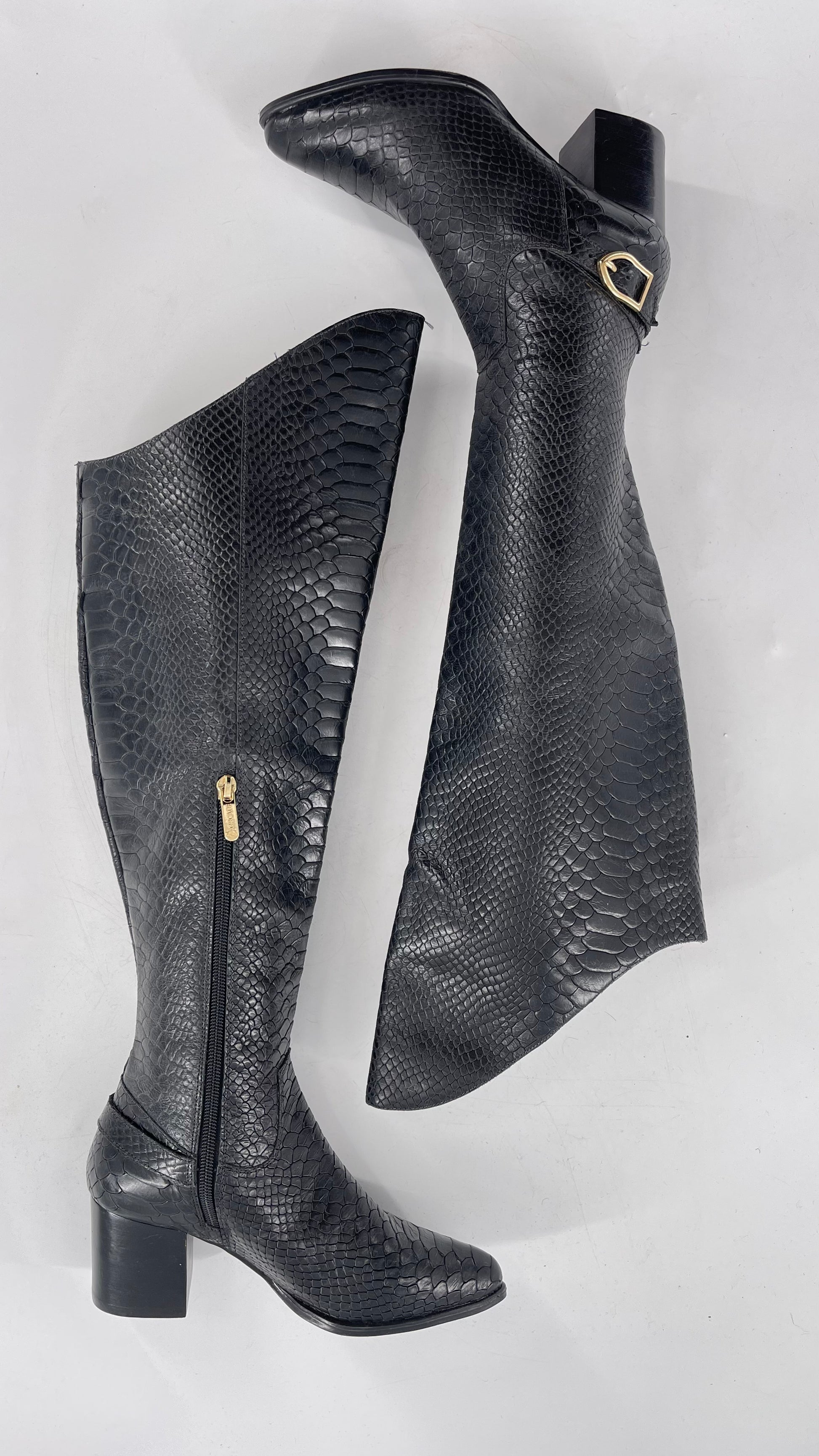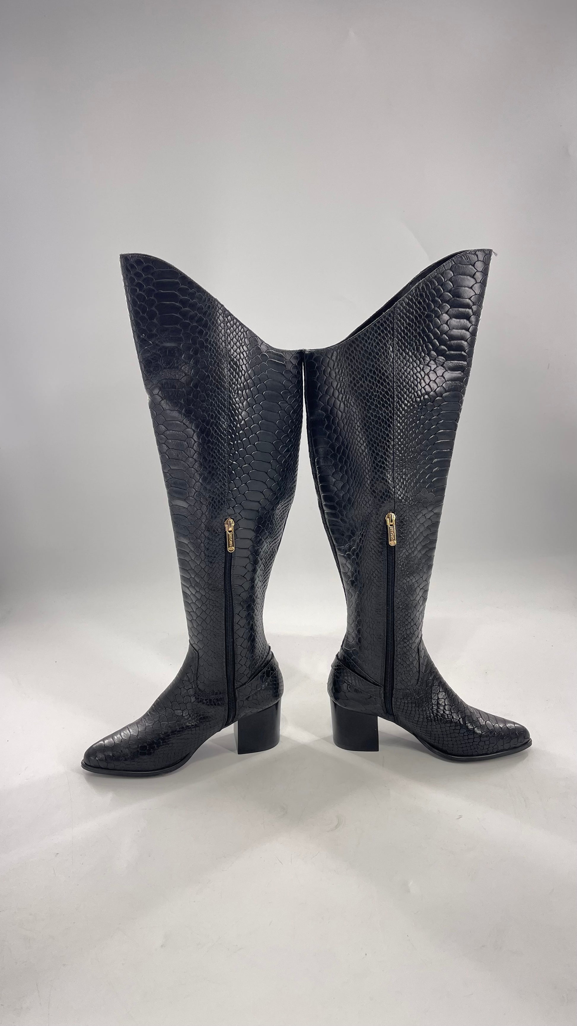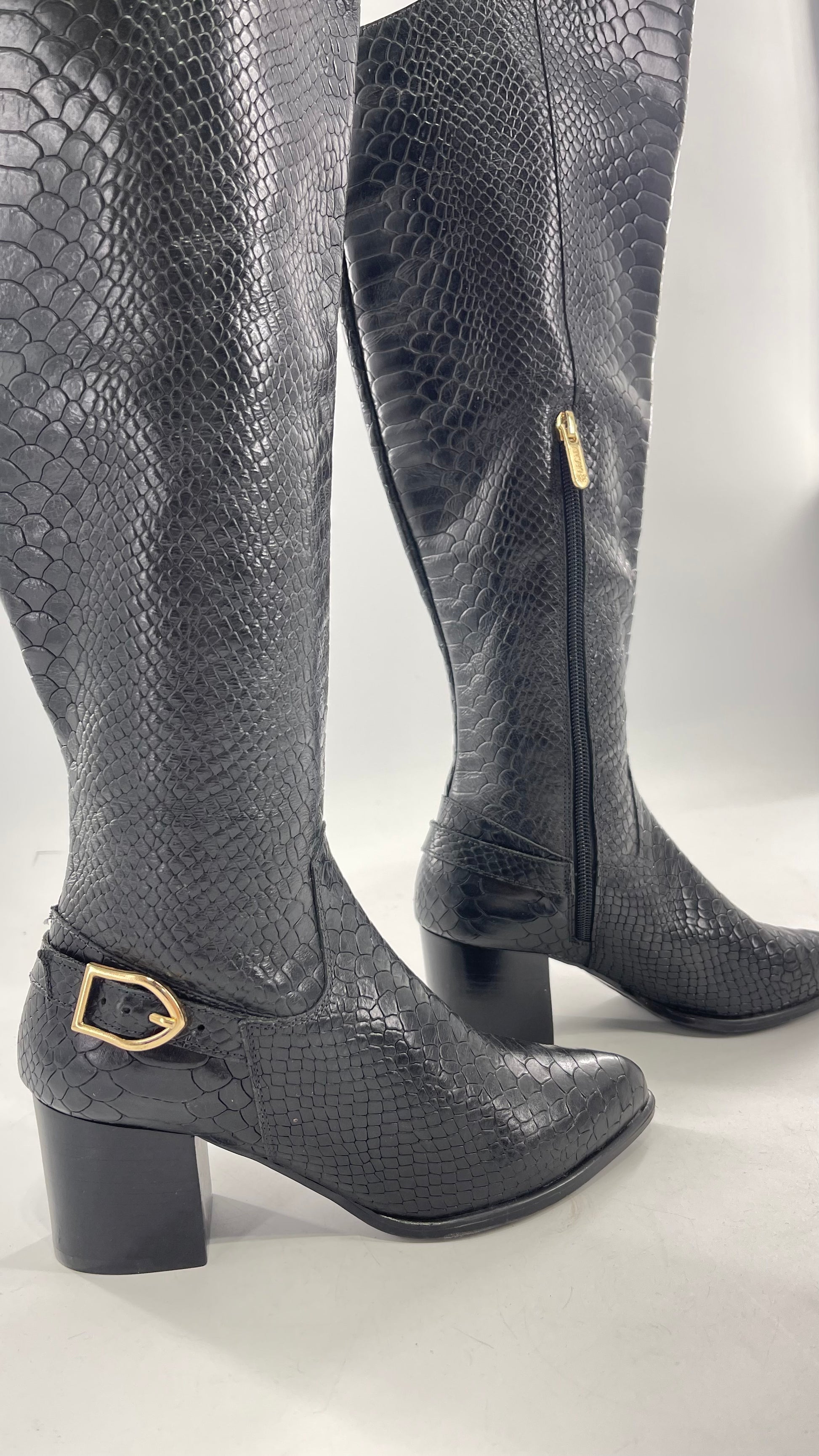 ORCADE Genuine Brazilian Leather Crocodile Embossed/Textured Knee High Boots (5)