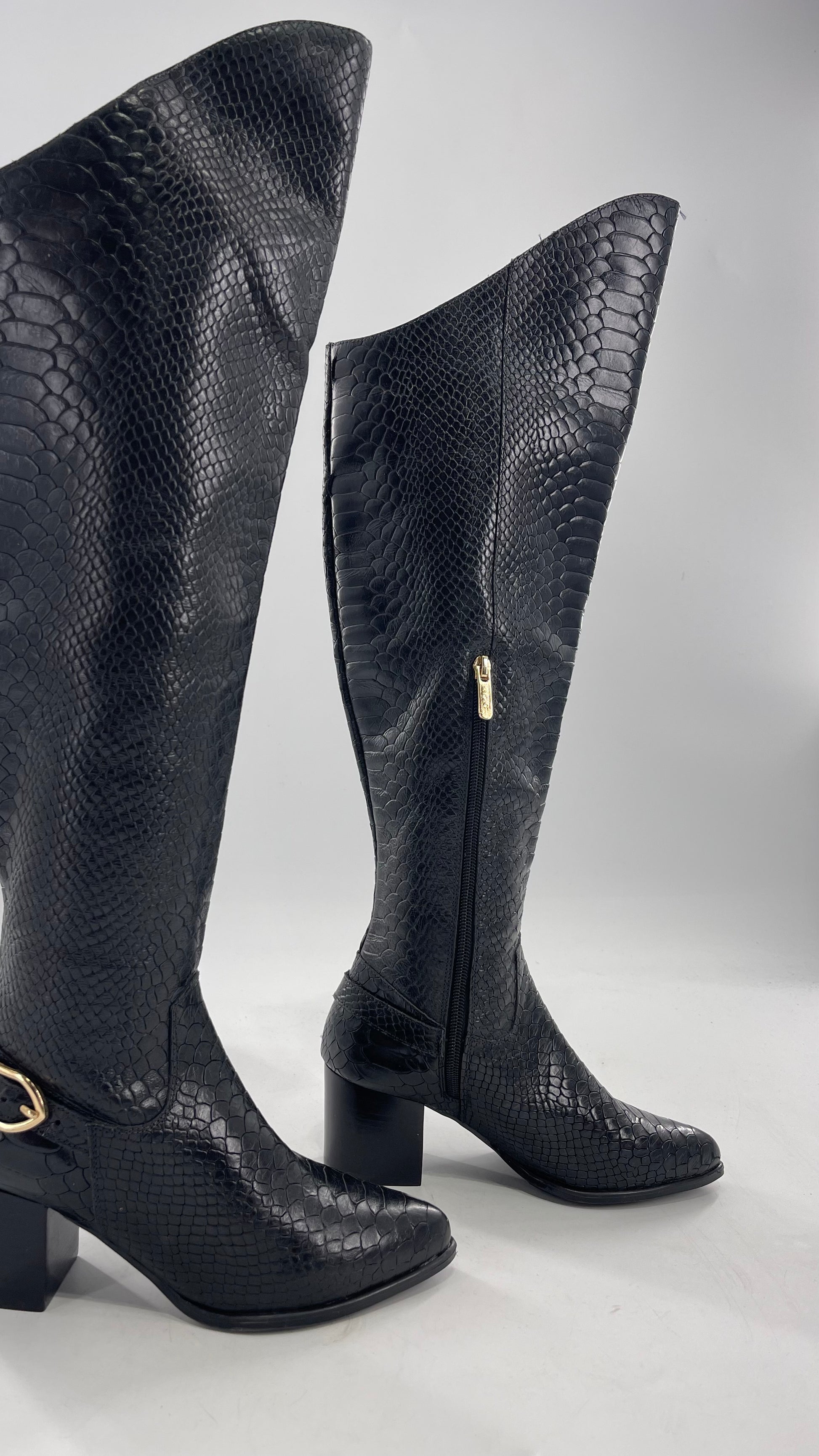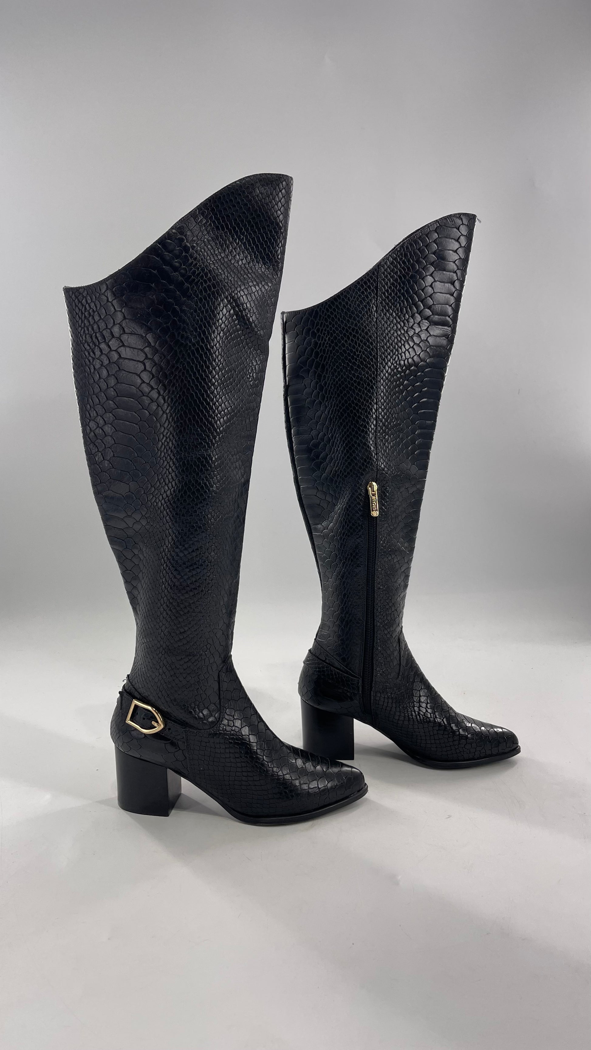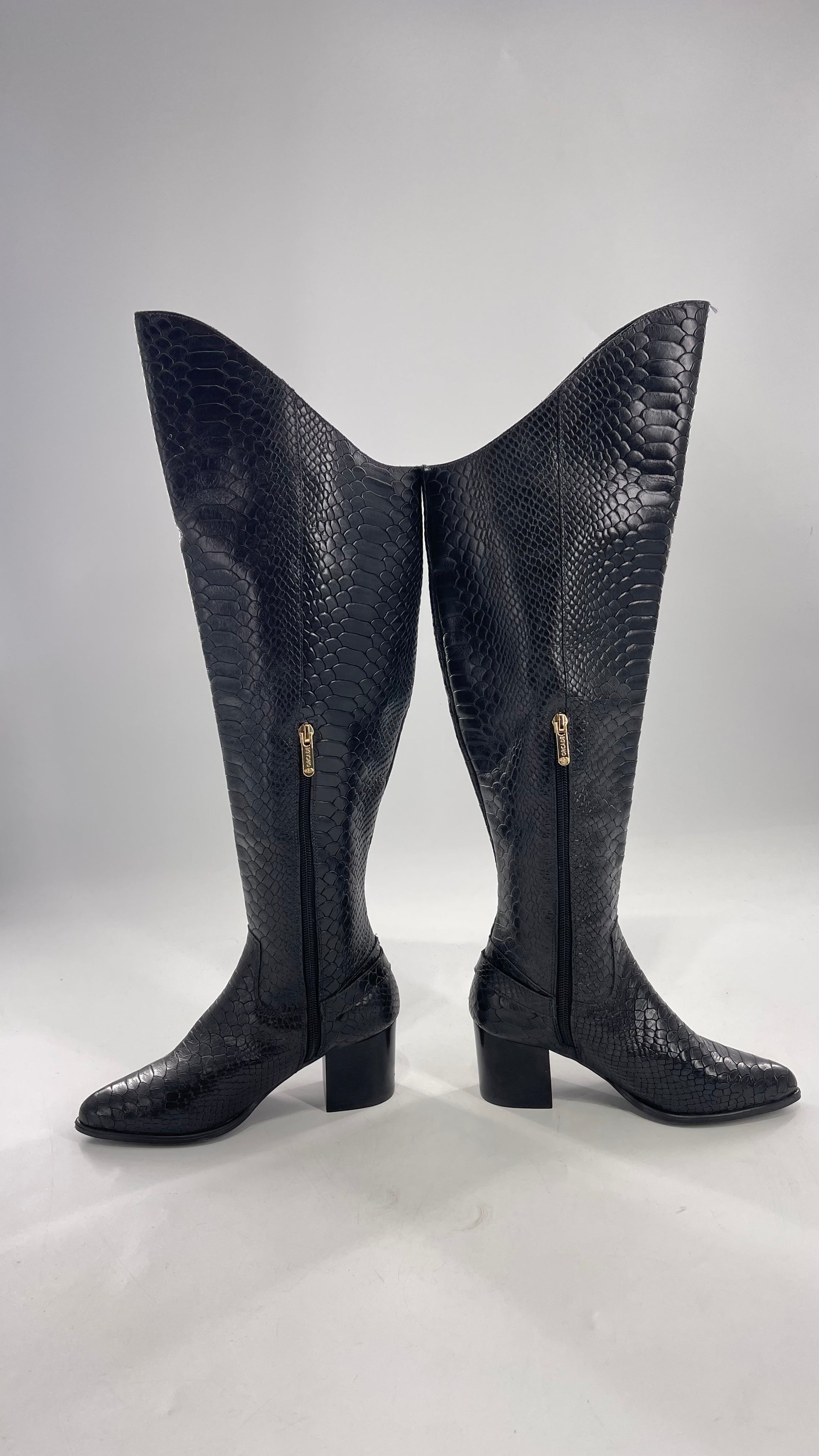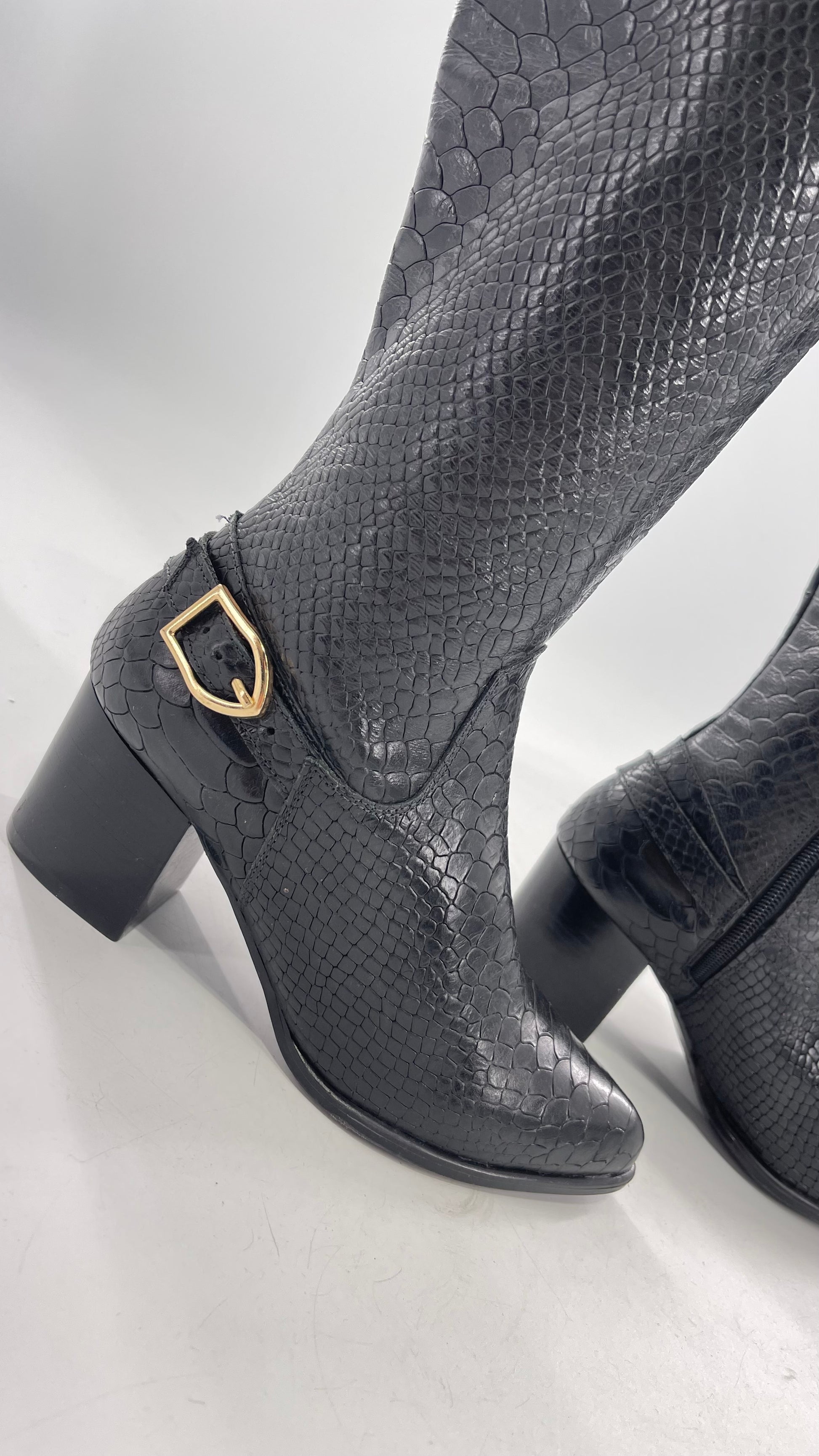 ORCADE Genuine Brazilian Leather Crocodile Embossed/Textured Knee High Boots (5)