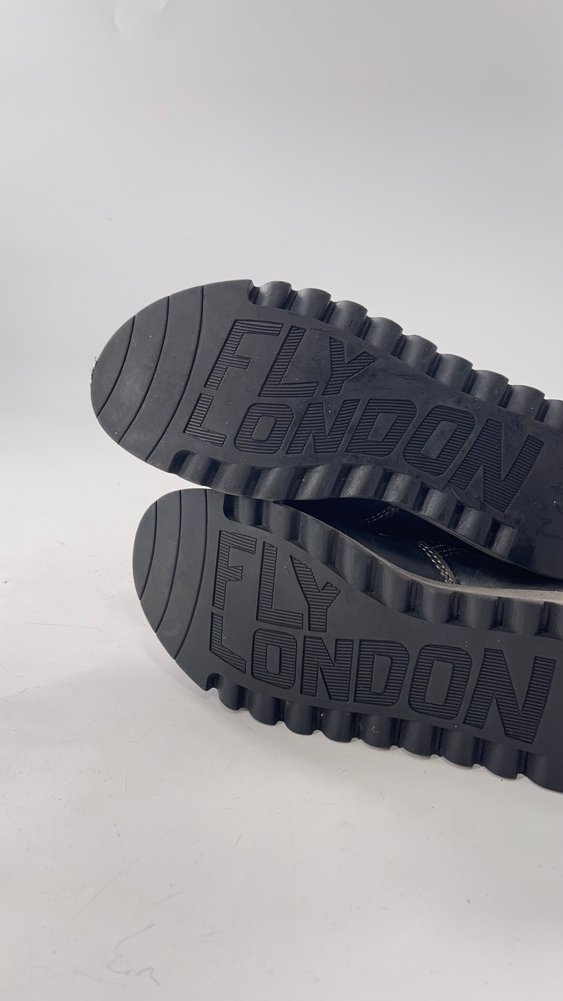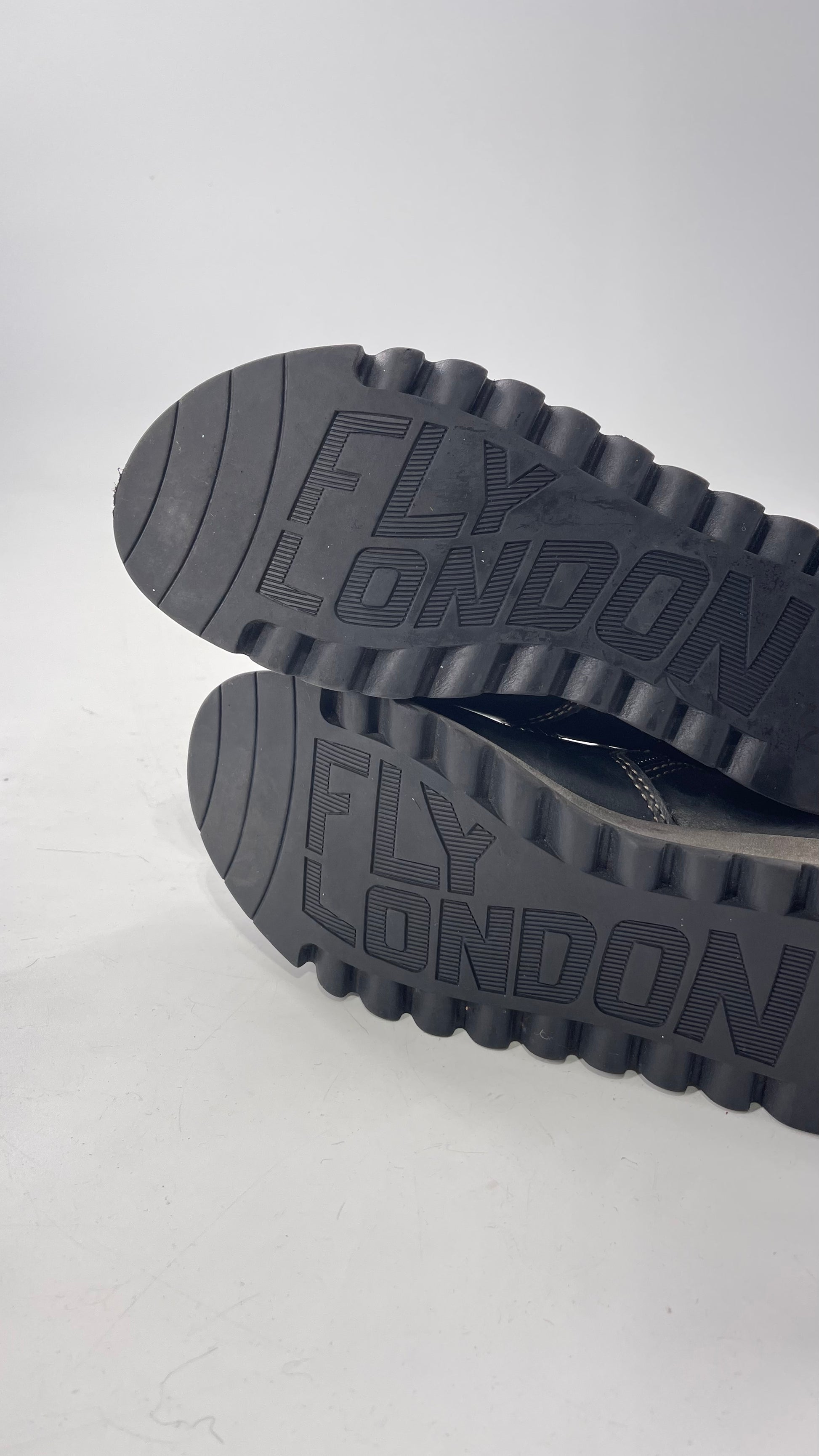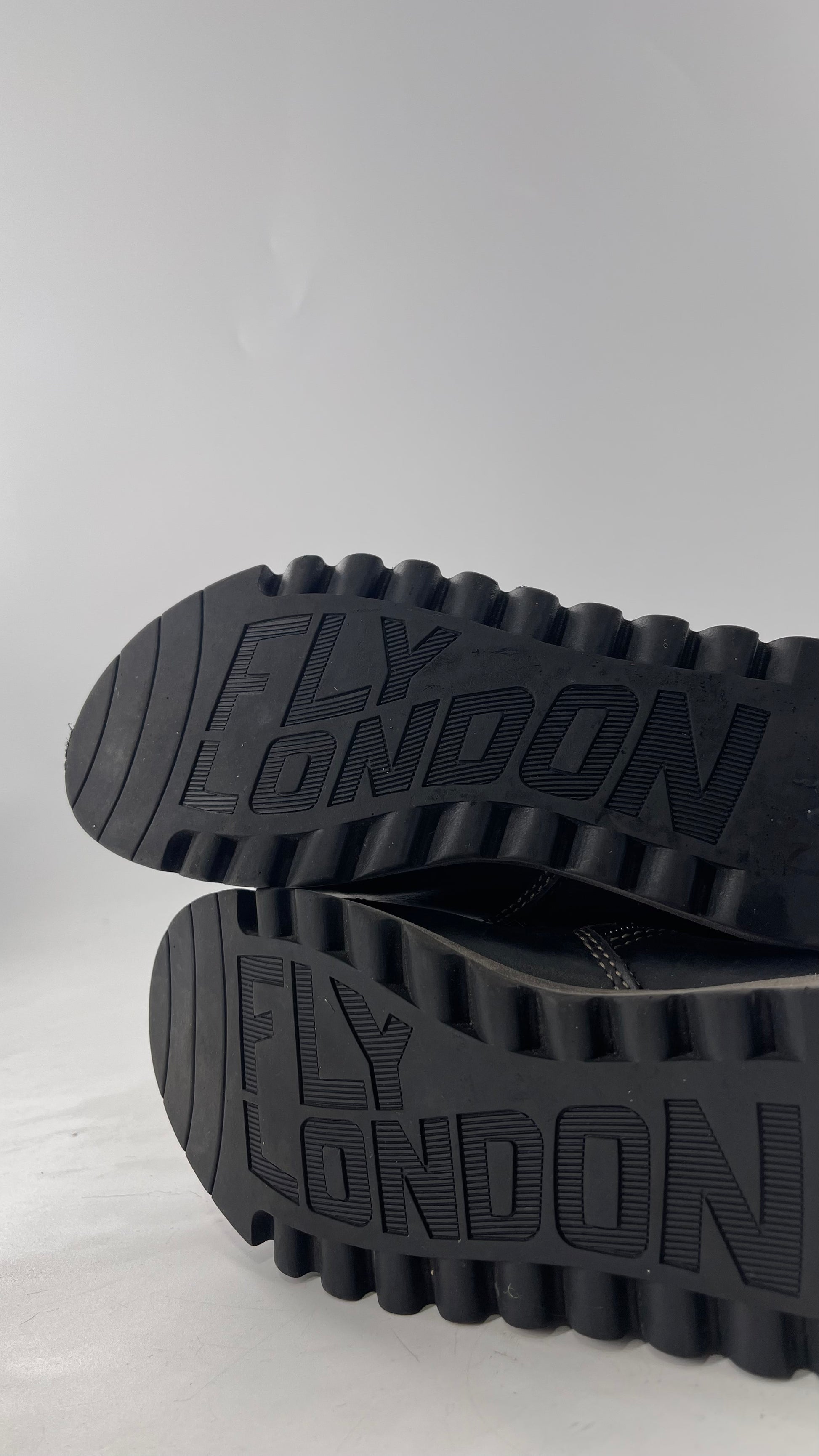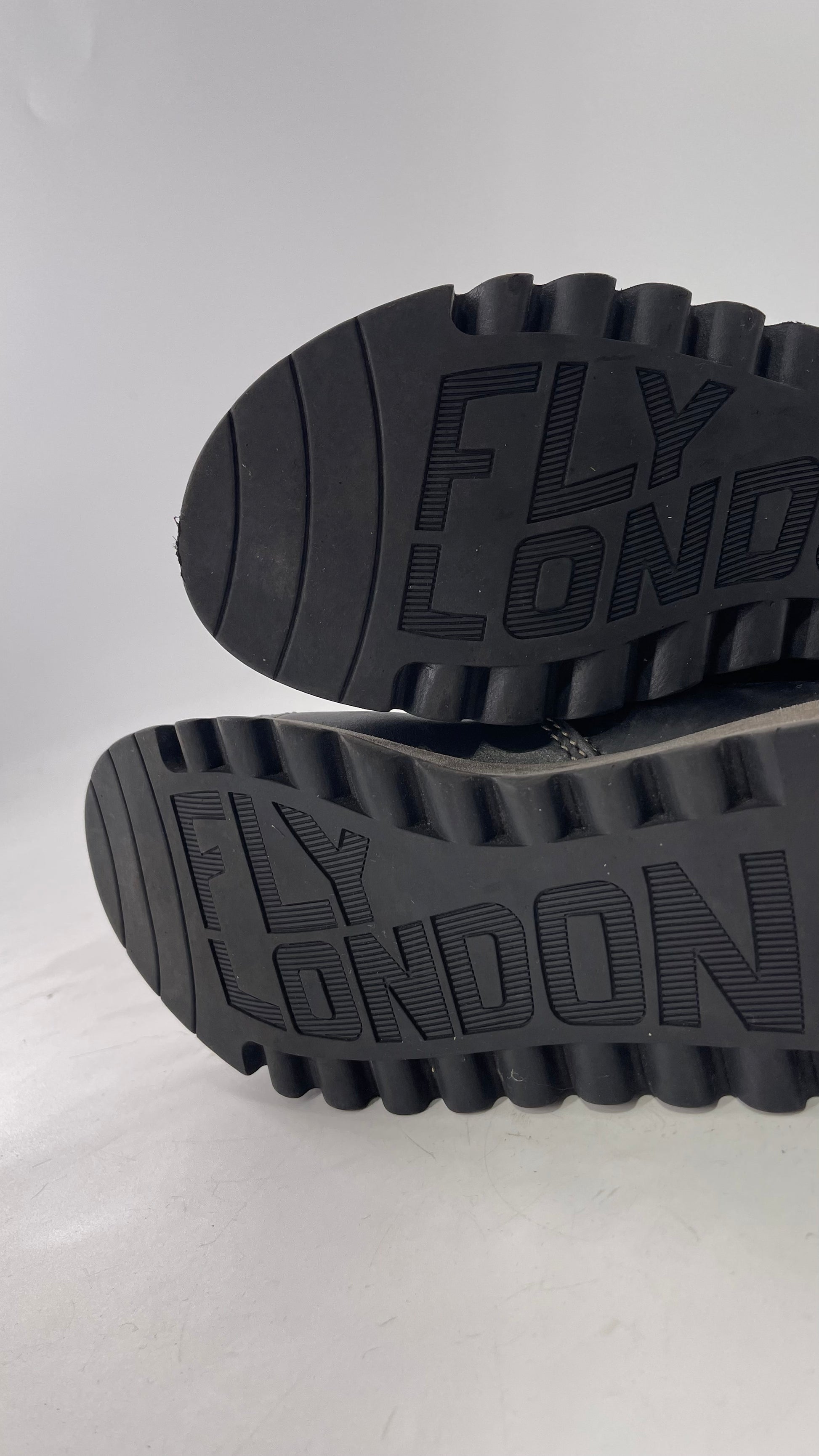 Fly London Black Zipper Side Boot with Oversized Brass Buckles (38)