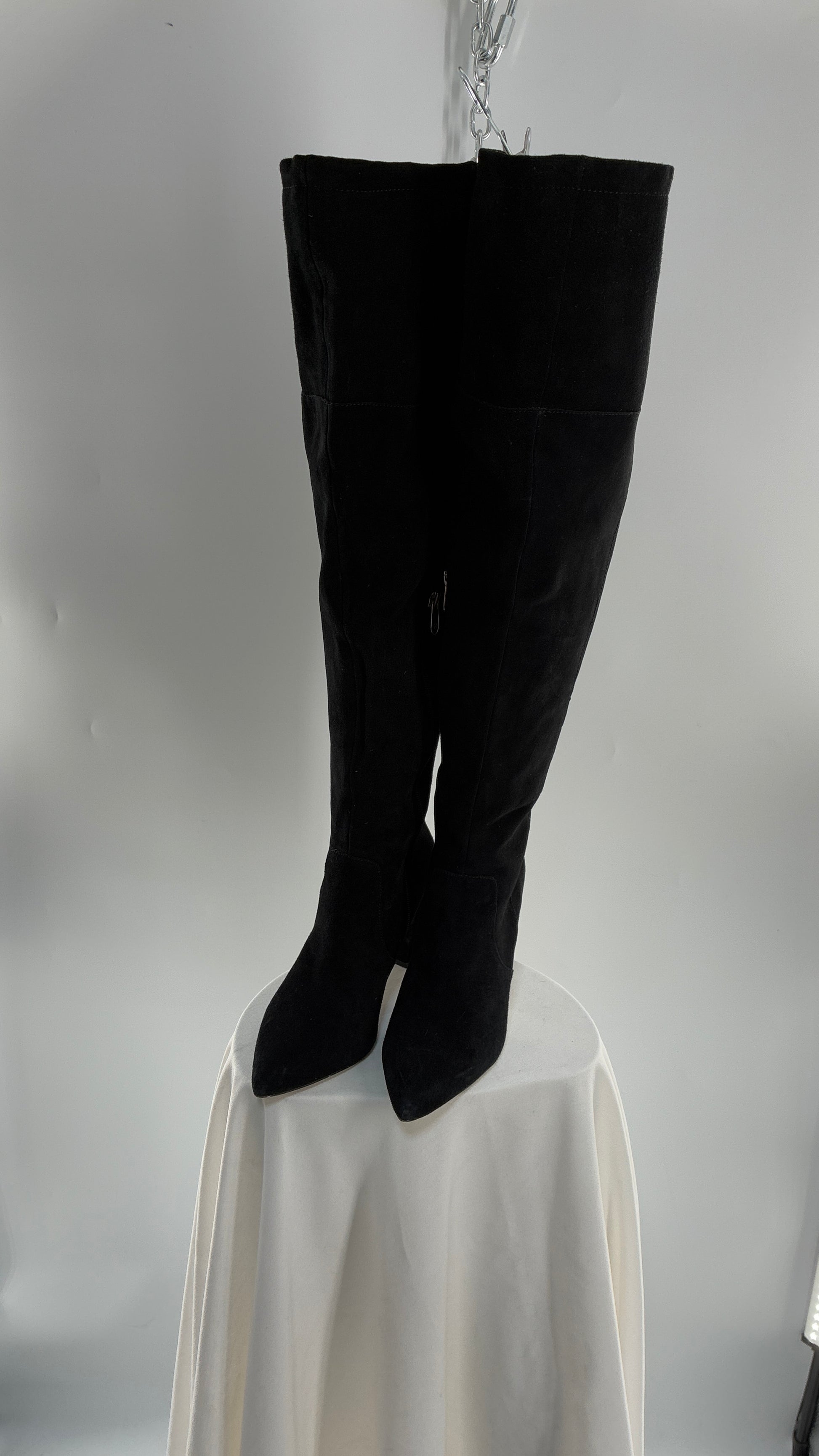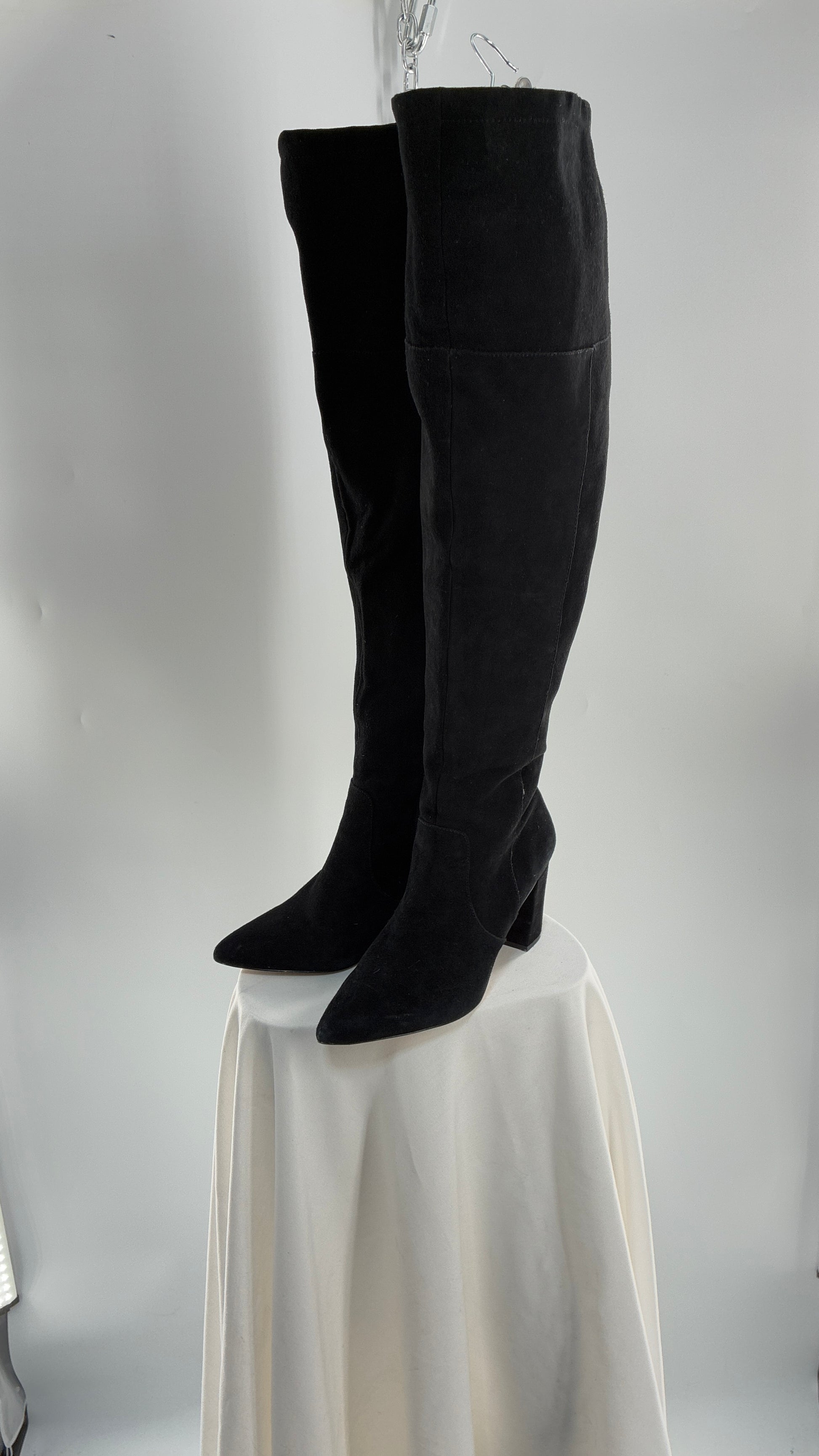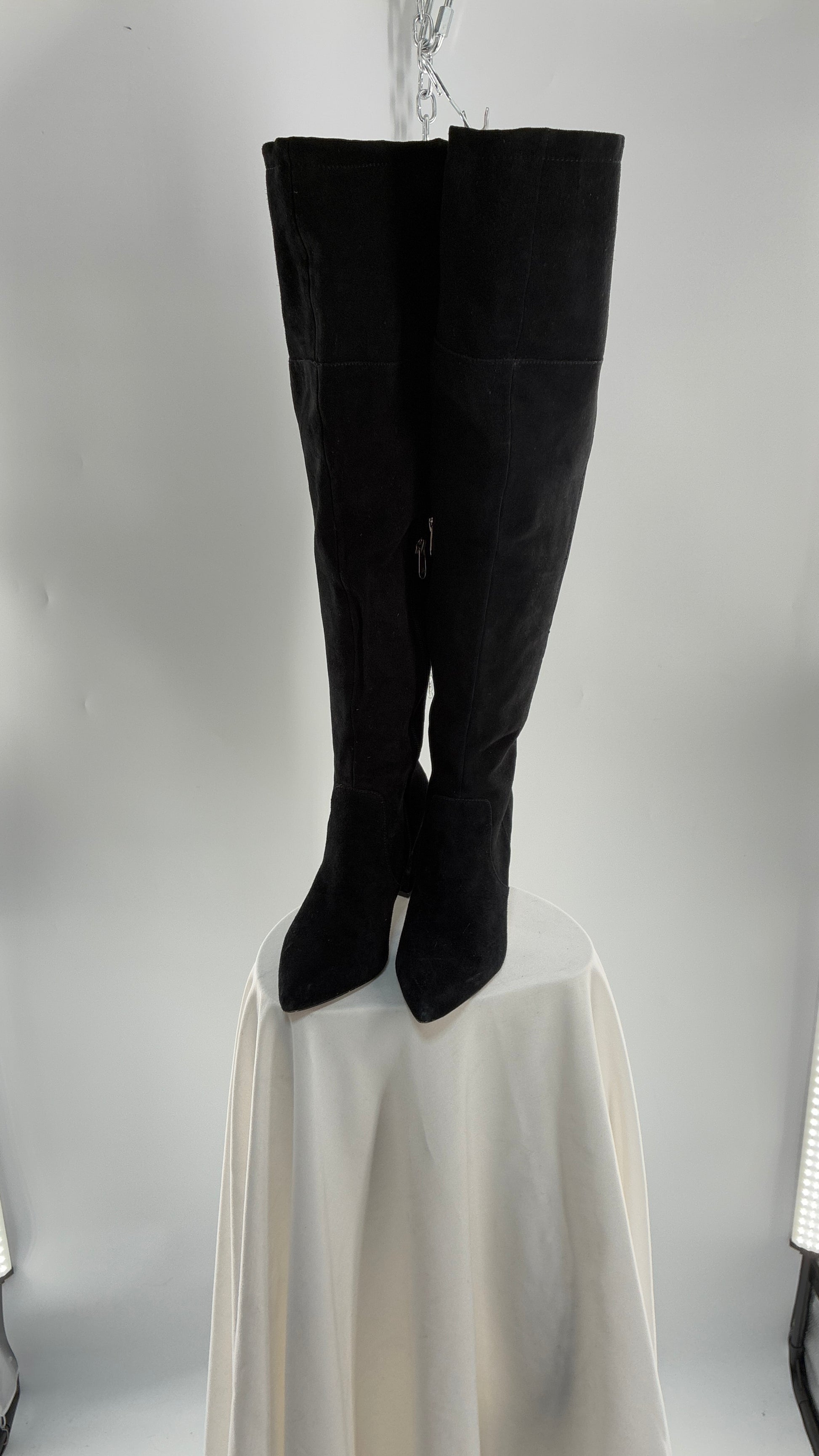 Vintage Black Genuine Suede ADRIENNE VITADINI Thigh High Pointed Toe Boots with Stud Detailing (10)