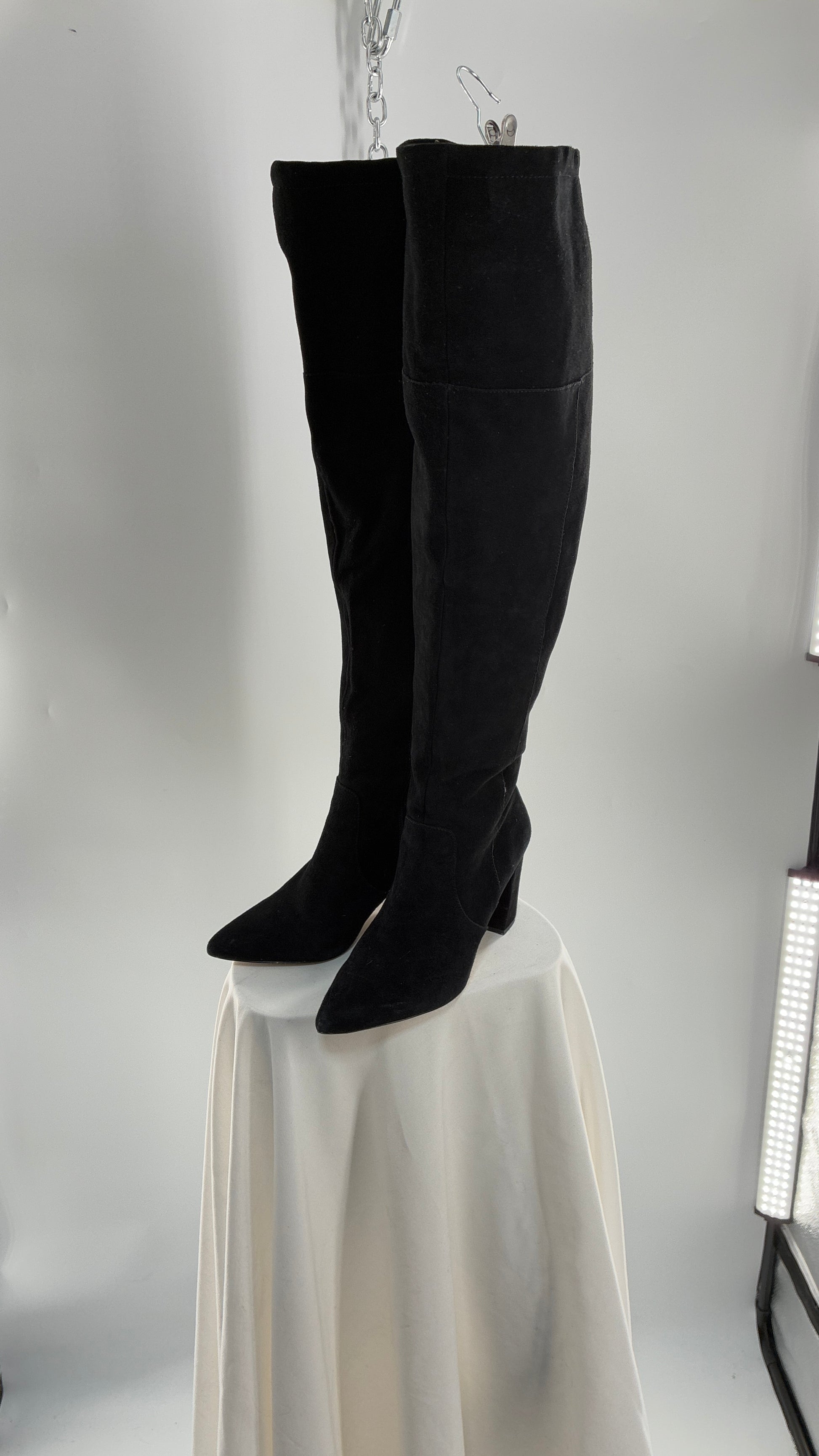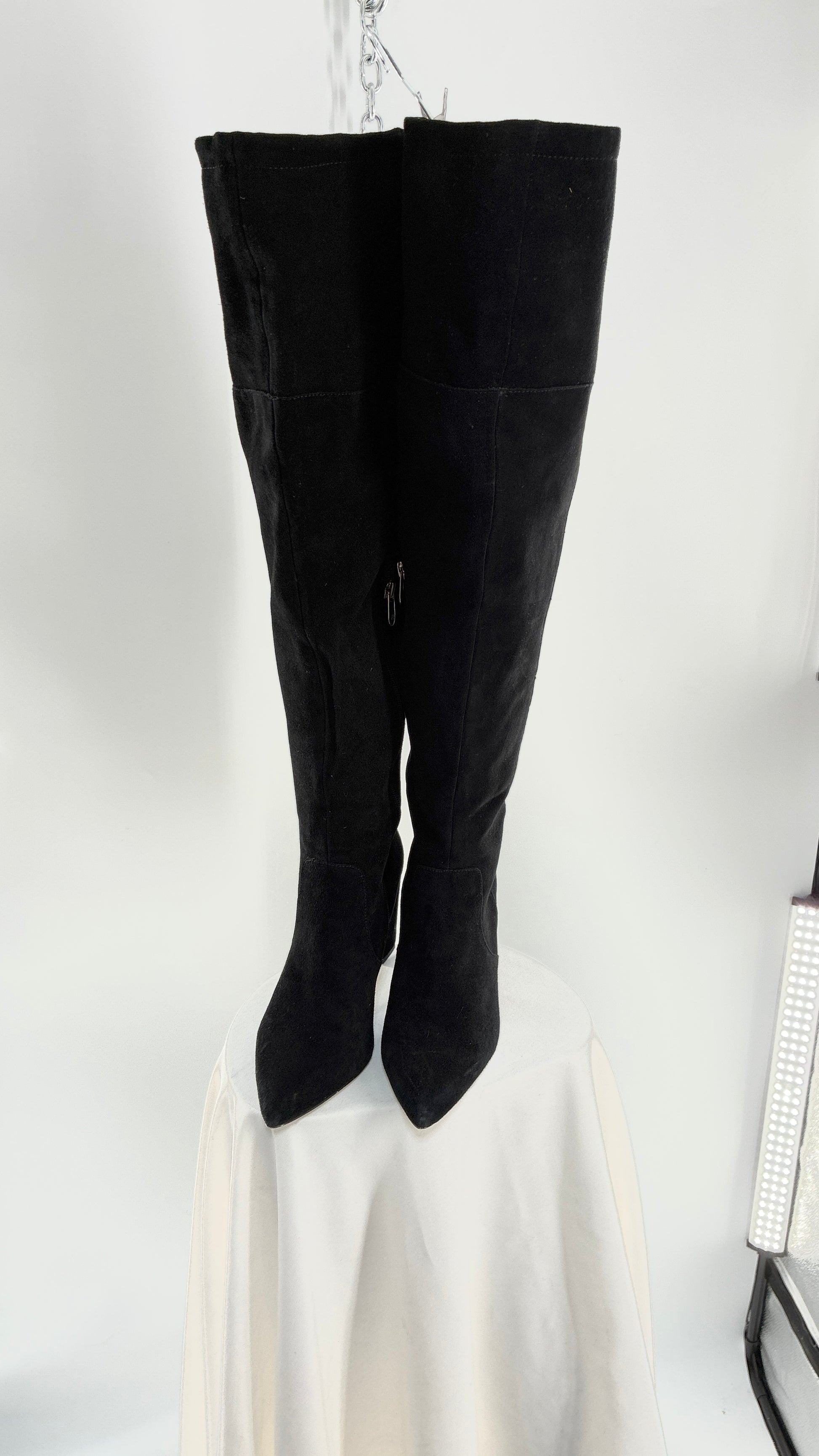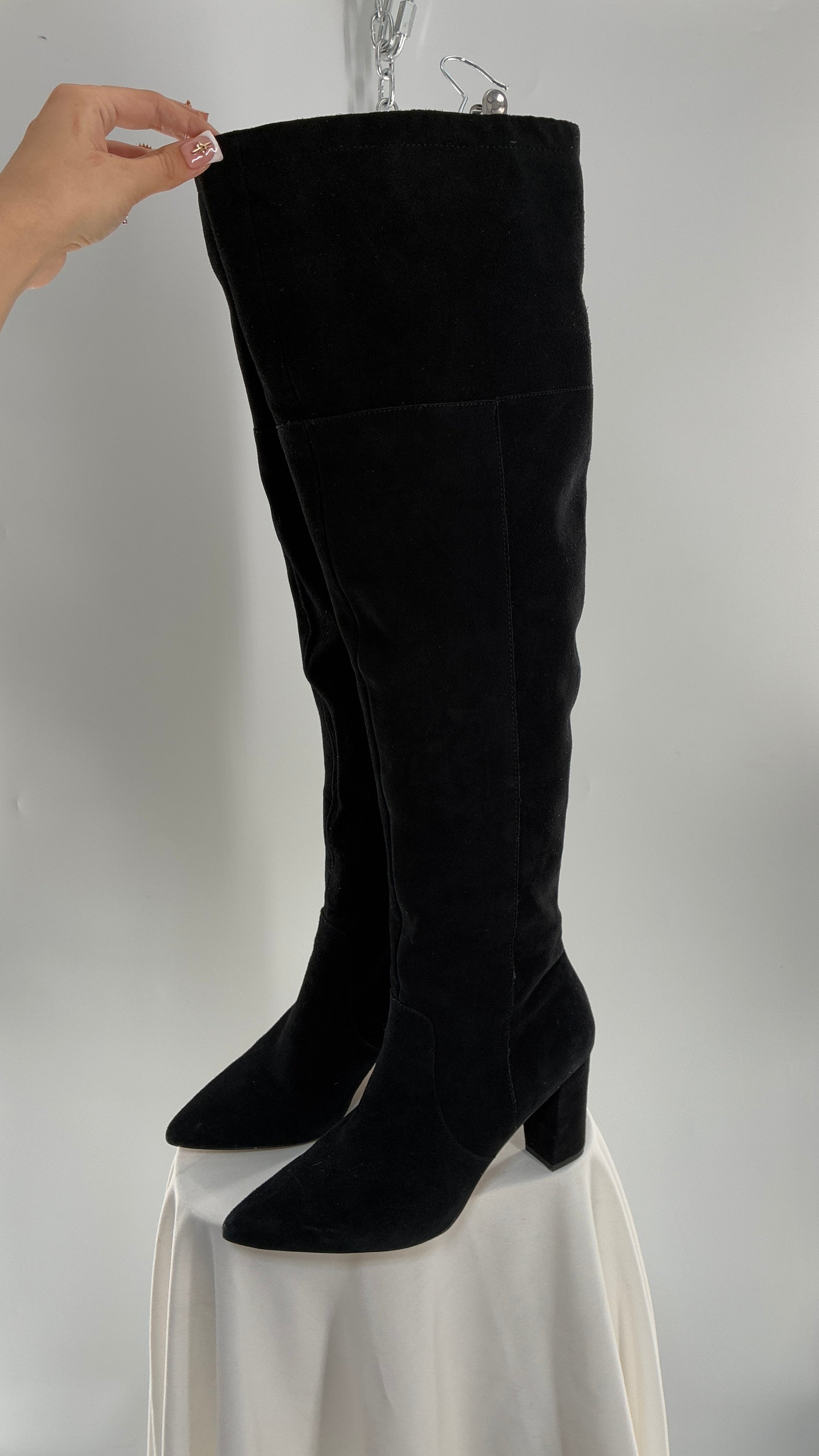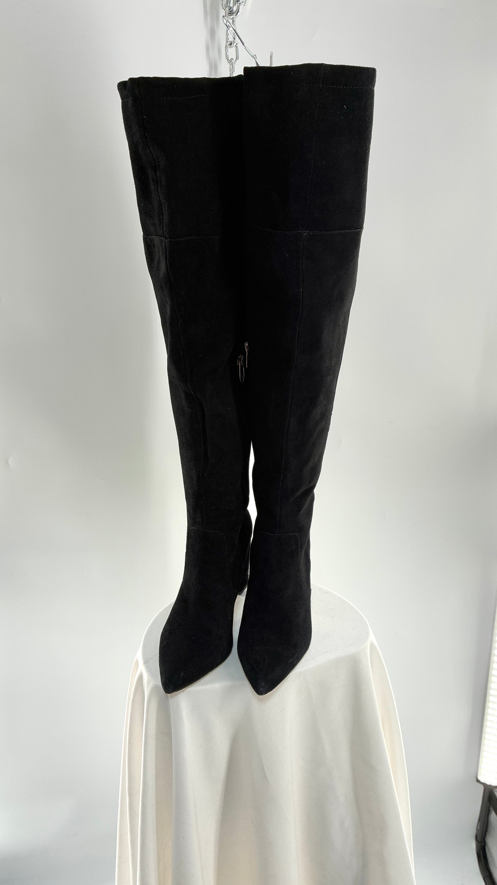 Vintage Black Genuine Suede ADRIENNE VITADINI Thigh High Pointed Toe Boots with Stud Detailing (10)