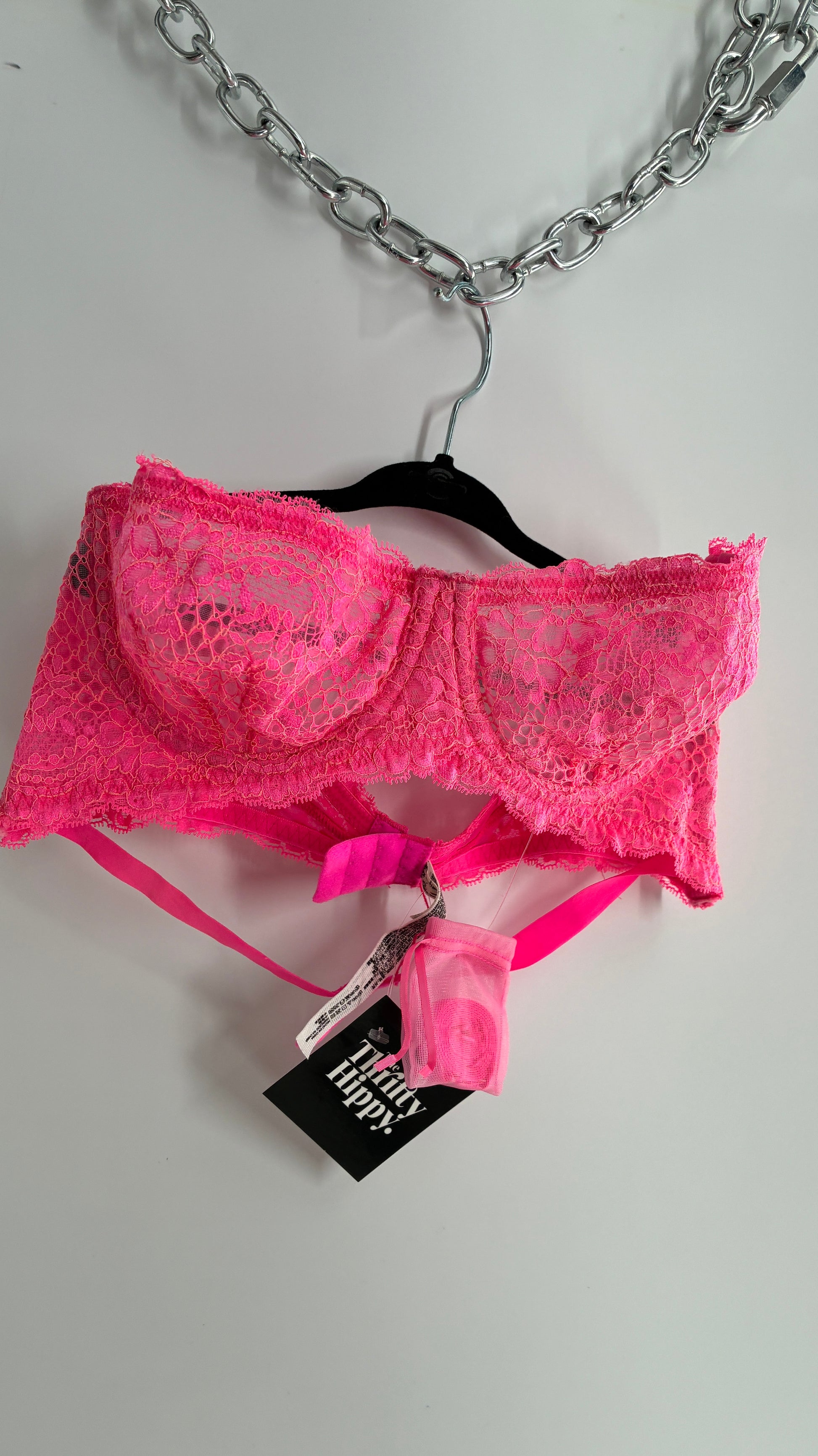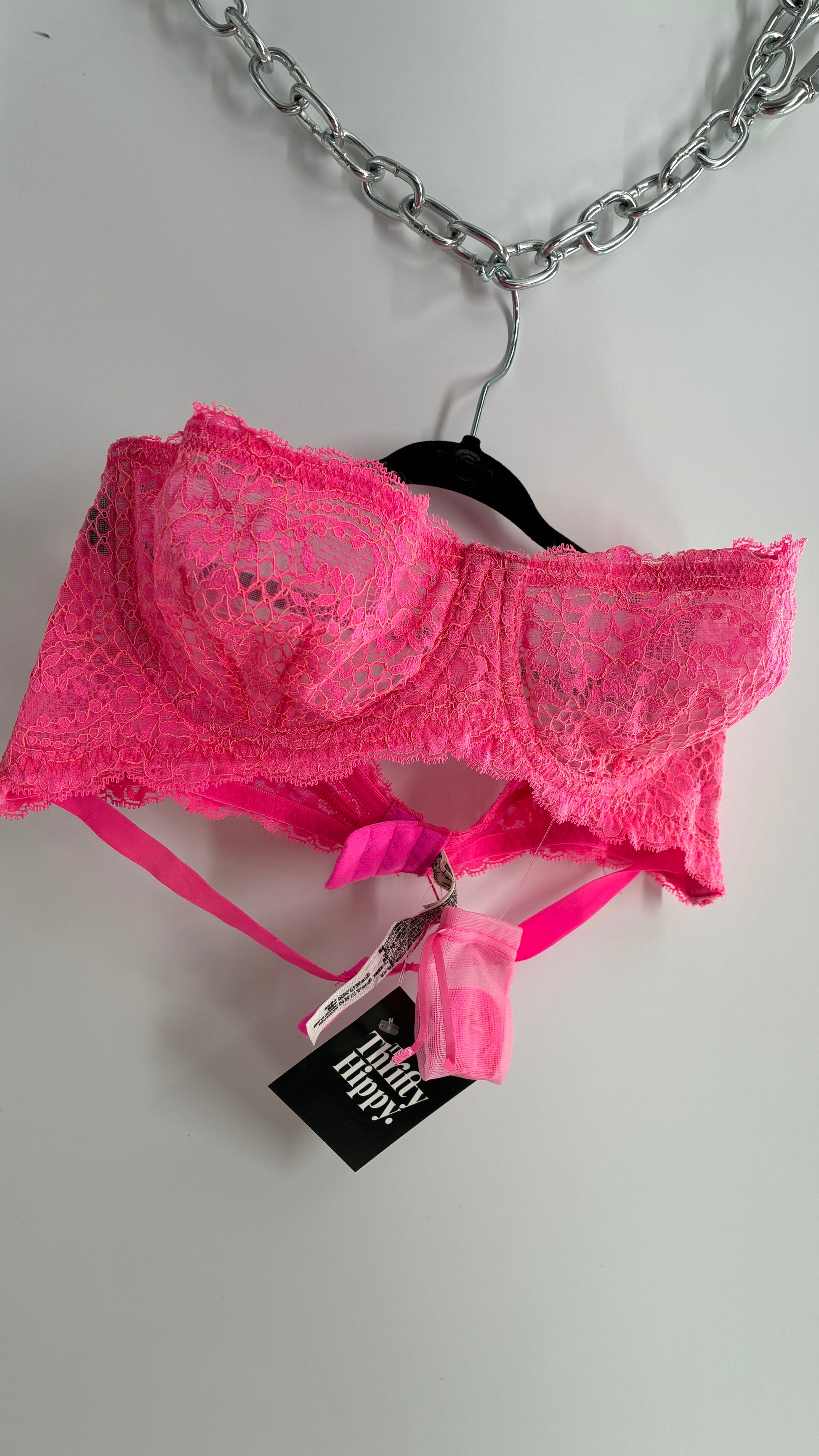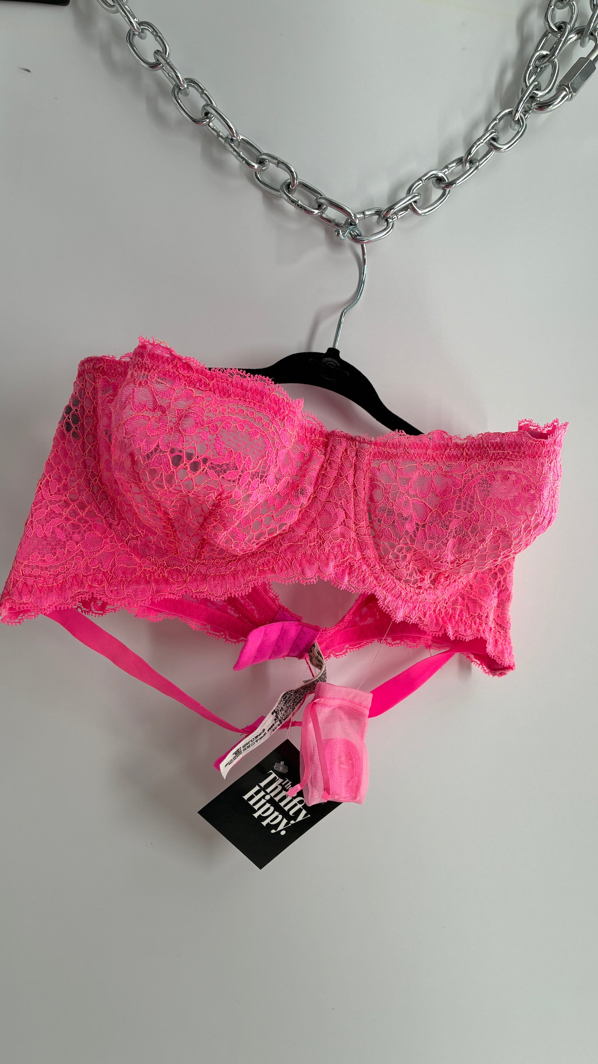 Intimately Free People Neon Pink Lace Bra with Straps (36B)