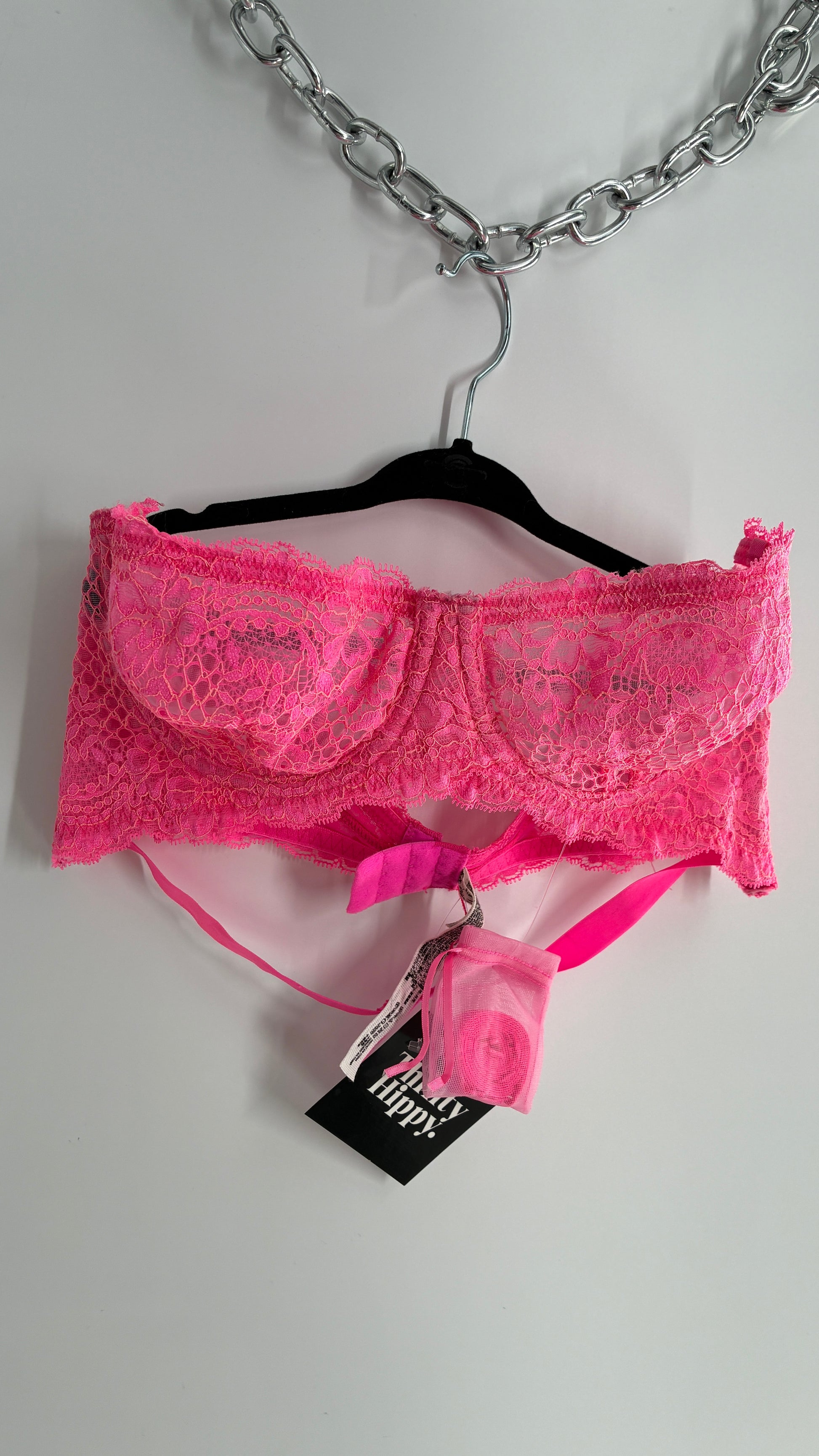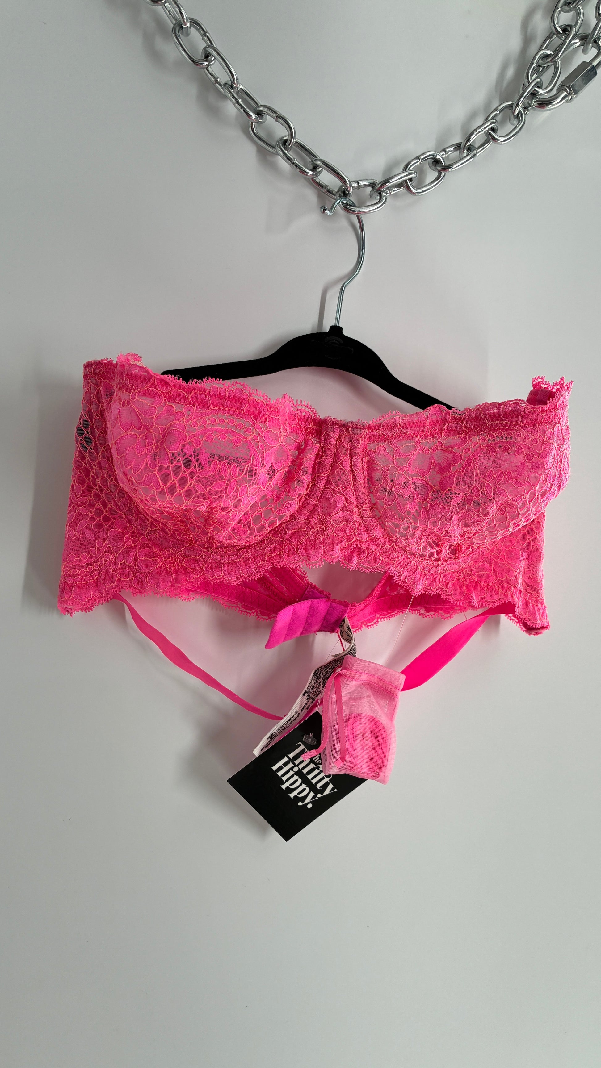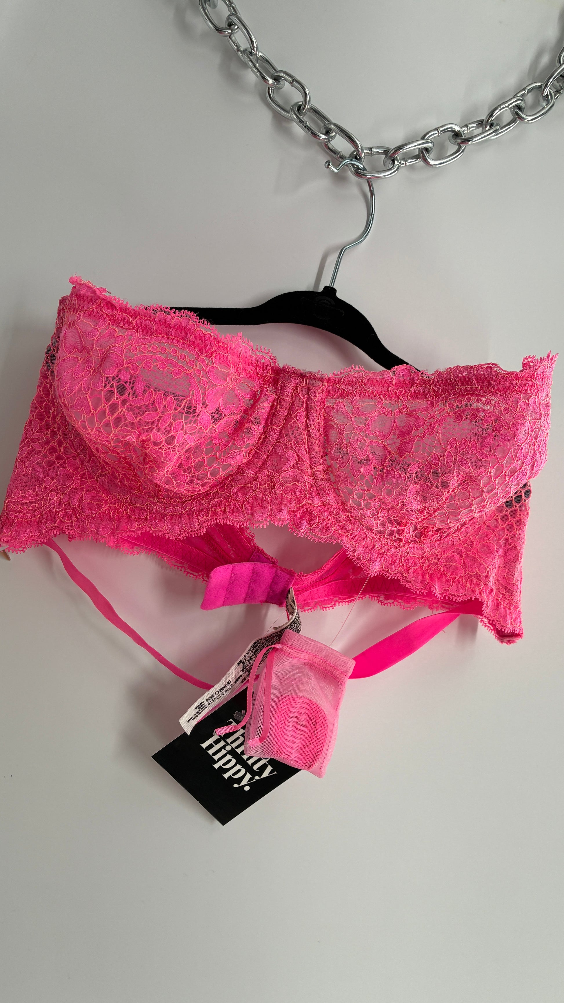 Intimately Free People Neon Pink Lace Bra with Straps (36B)