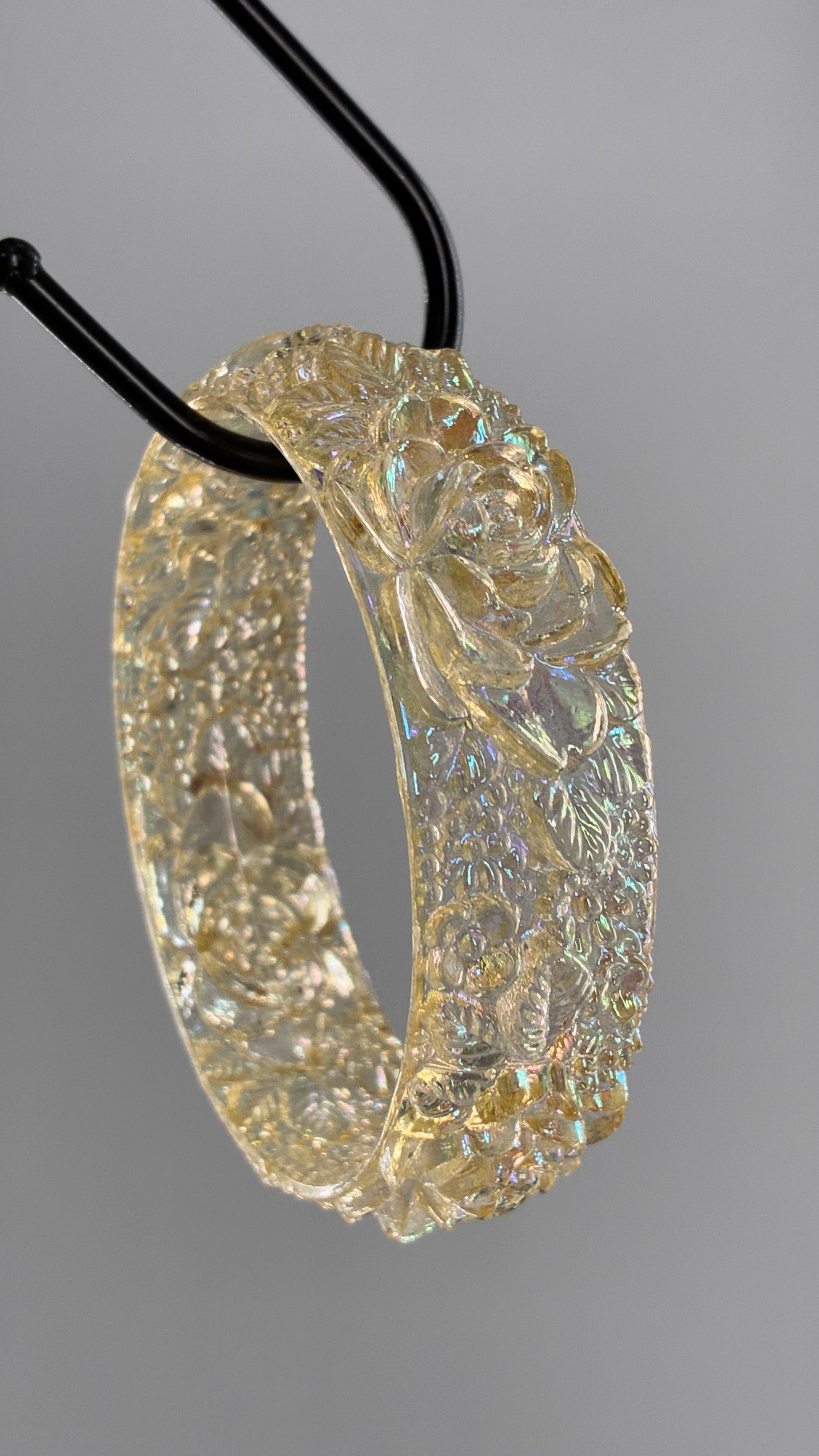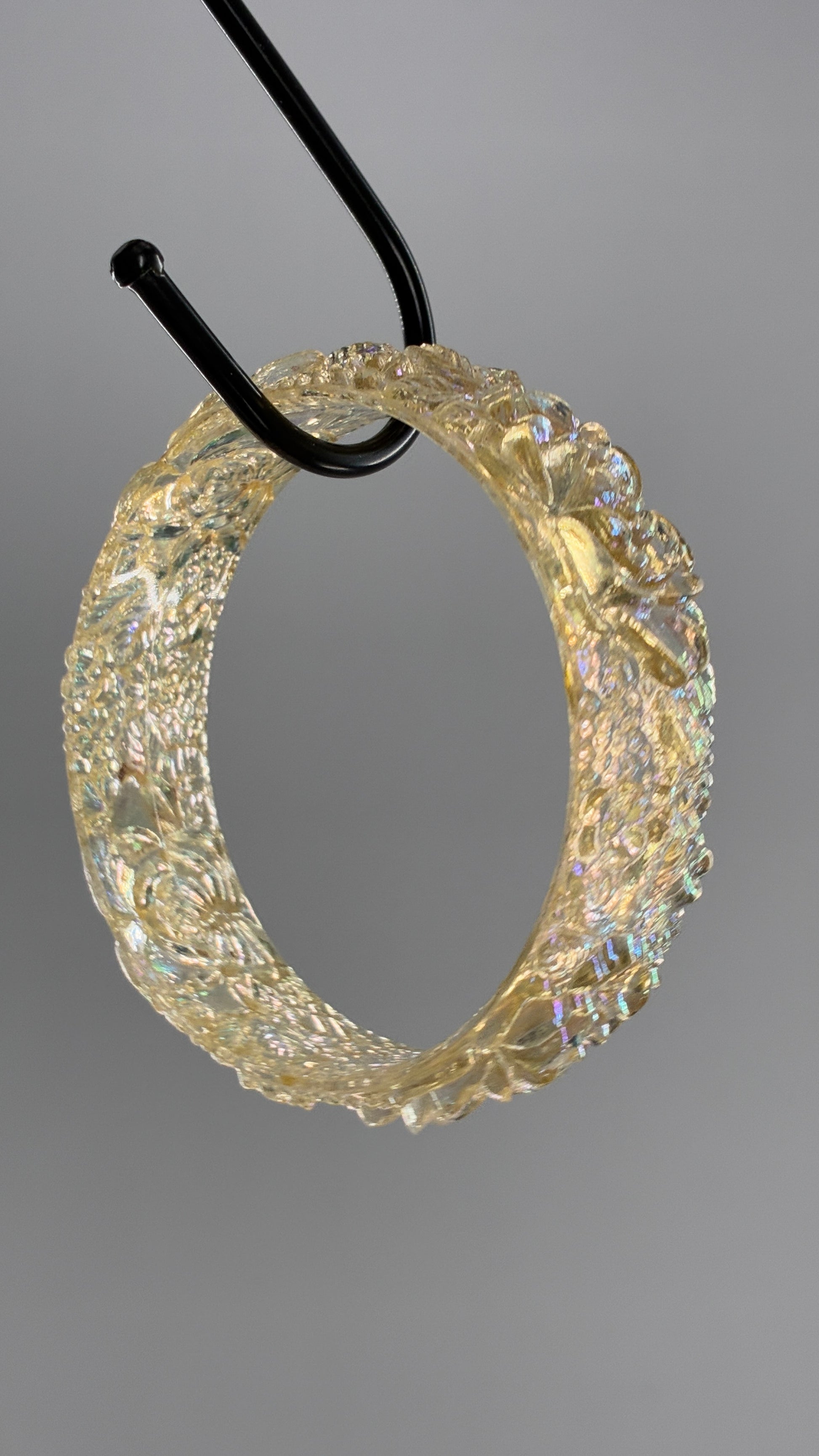 Vintage Iridescent, Lucite, Engraved Florals Bangle