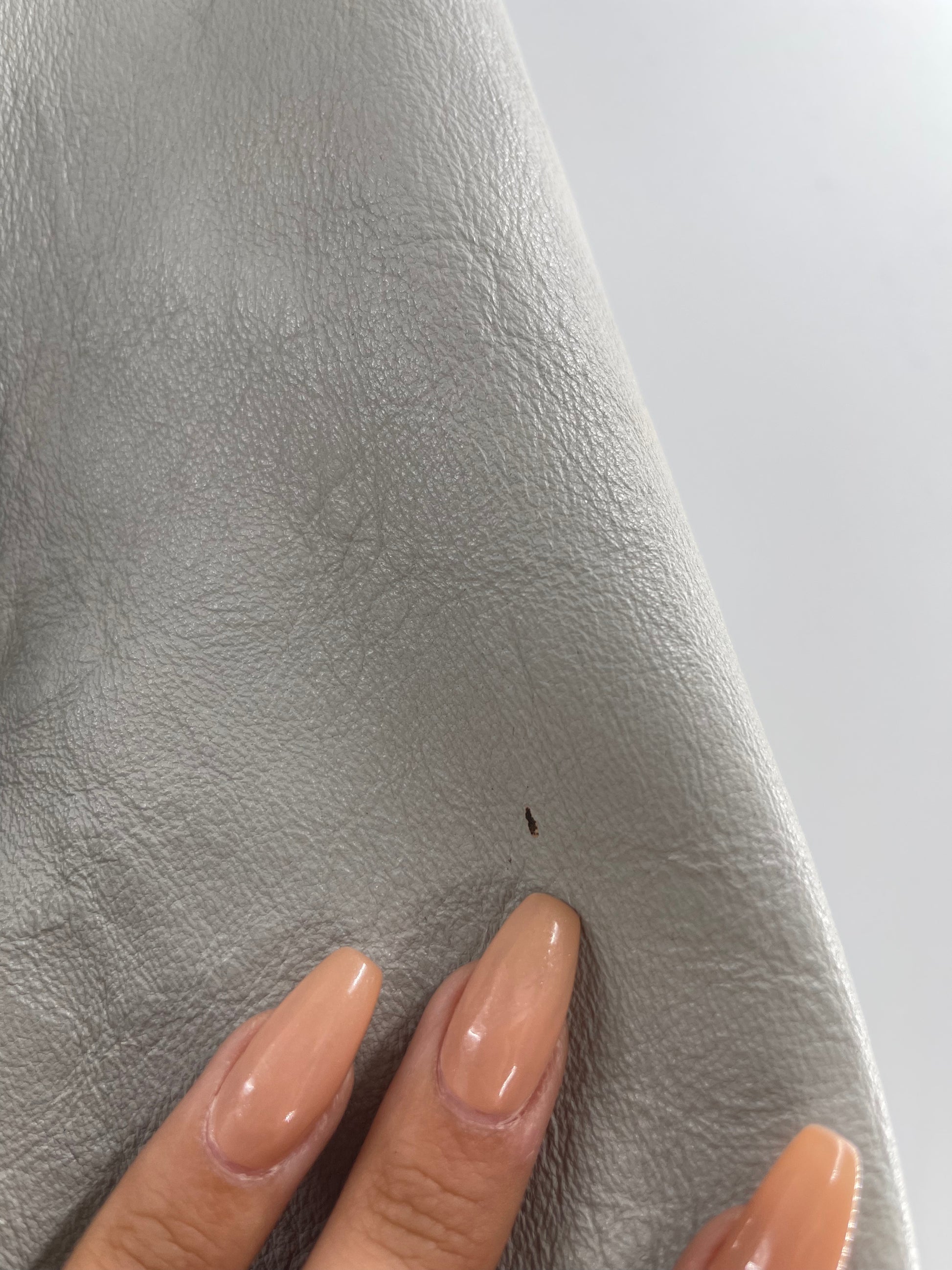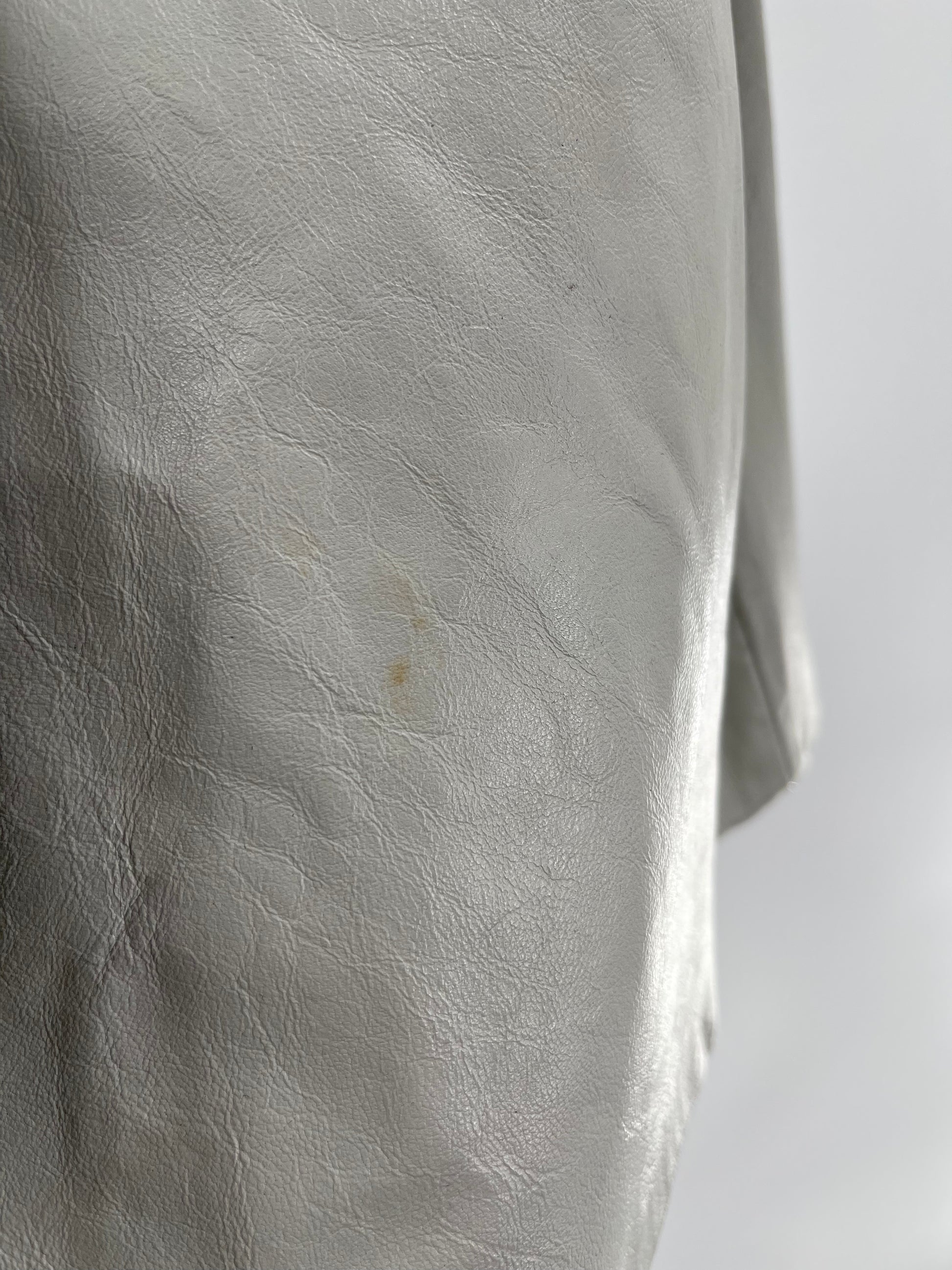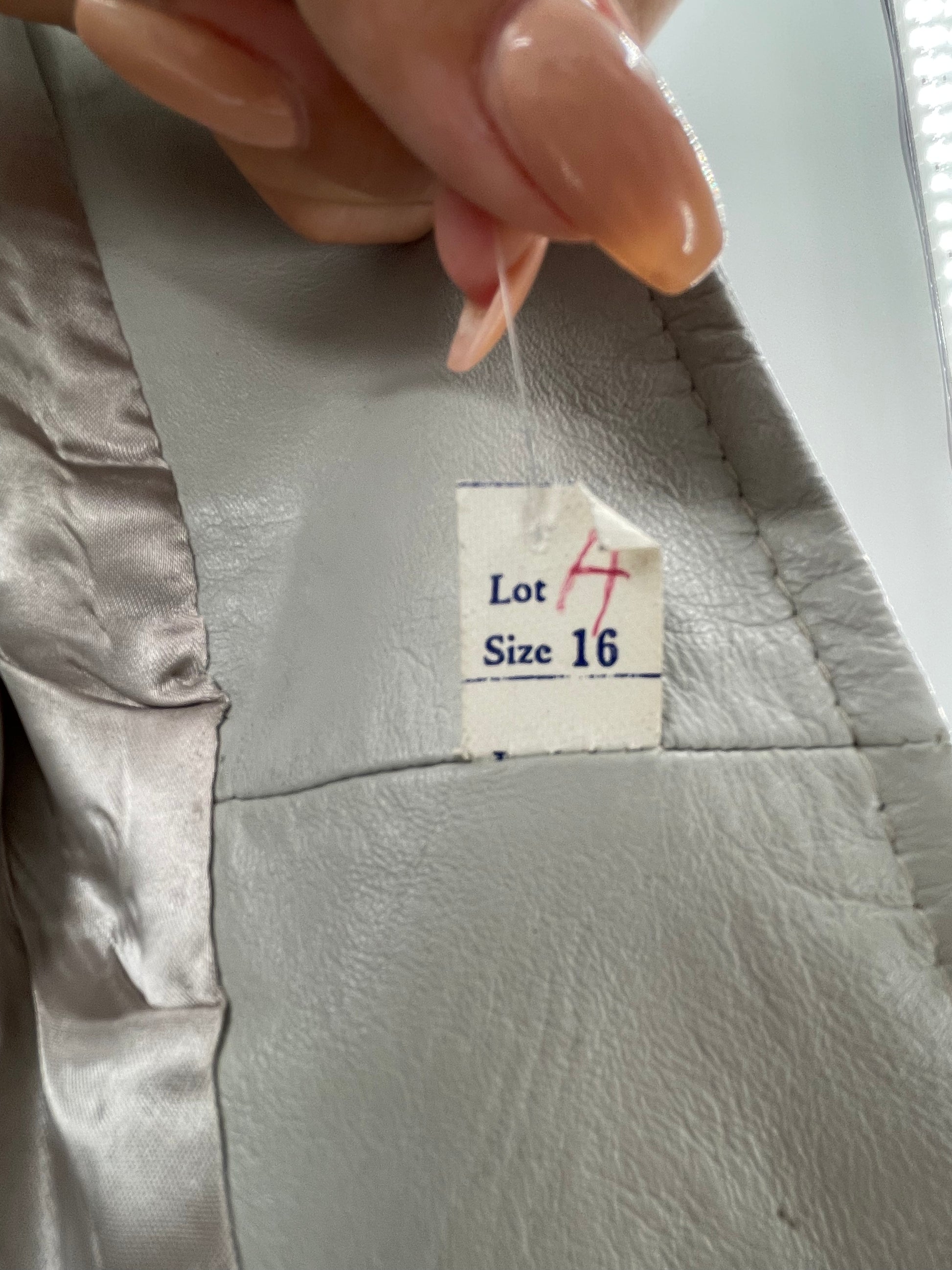 Light Gray 100% Leather Coat With Real Fur Collar and Cuffs Trim (Size 16) VINTAGE