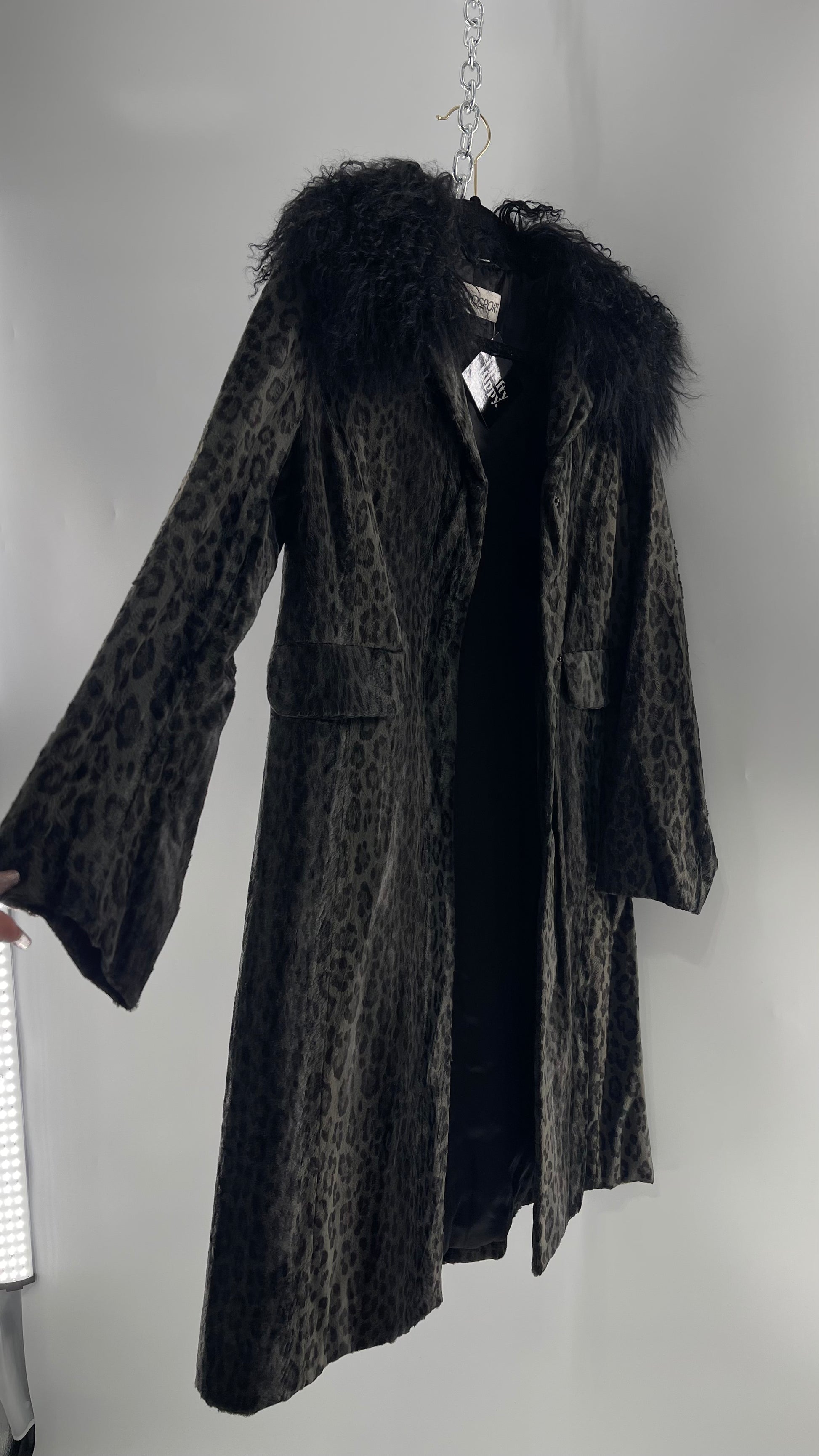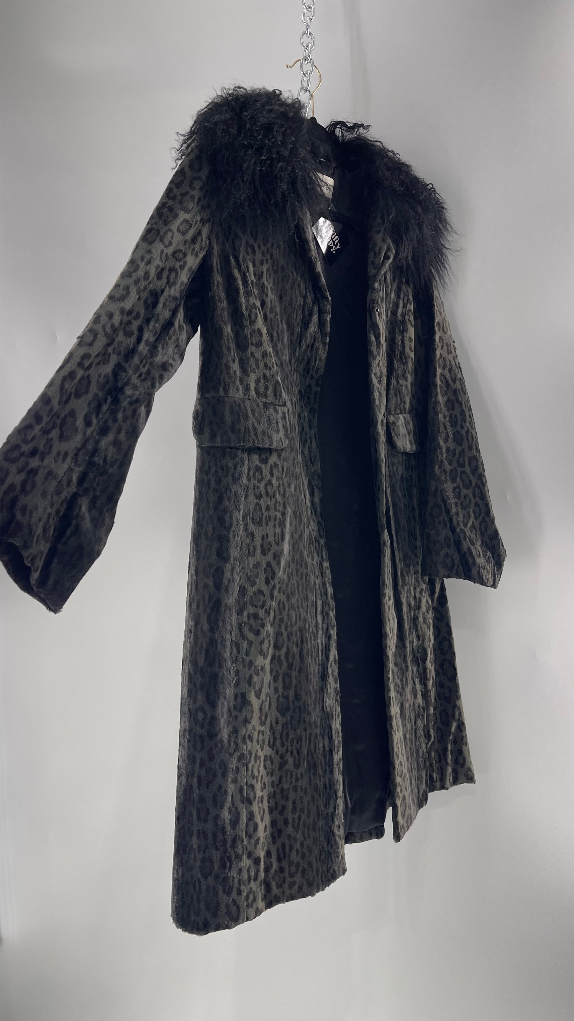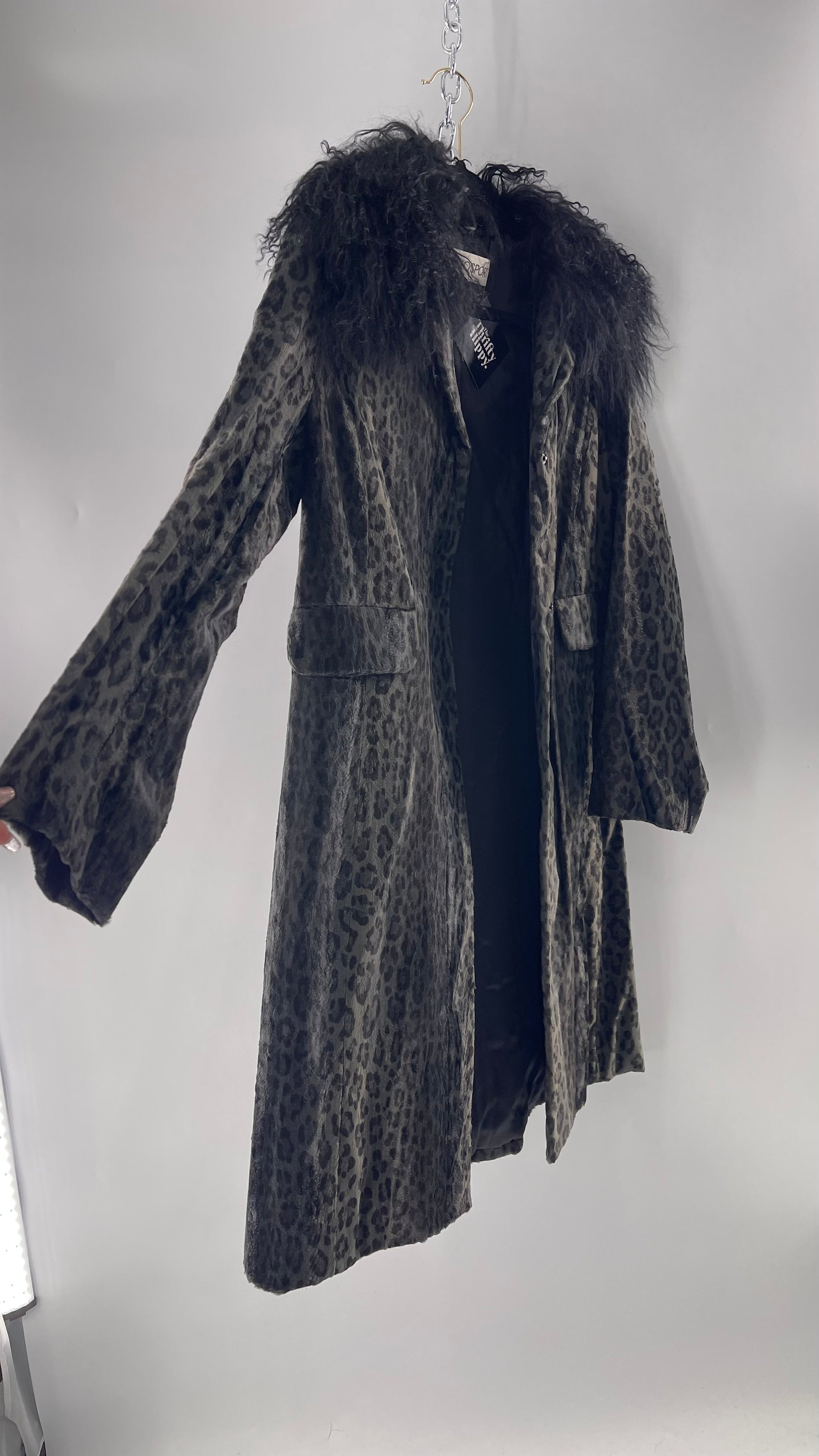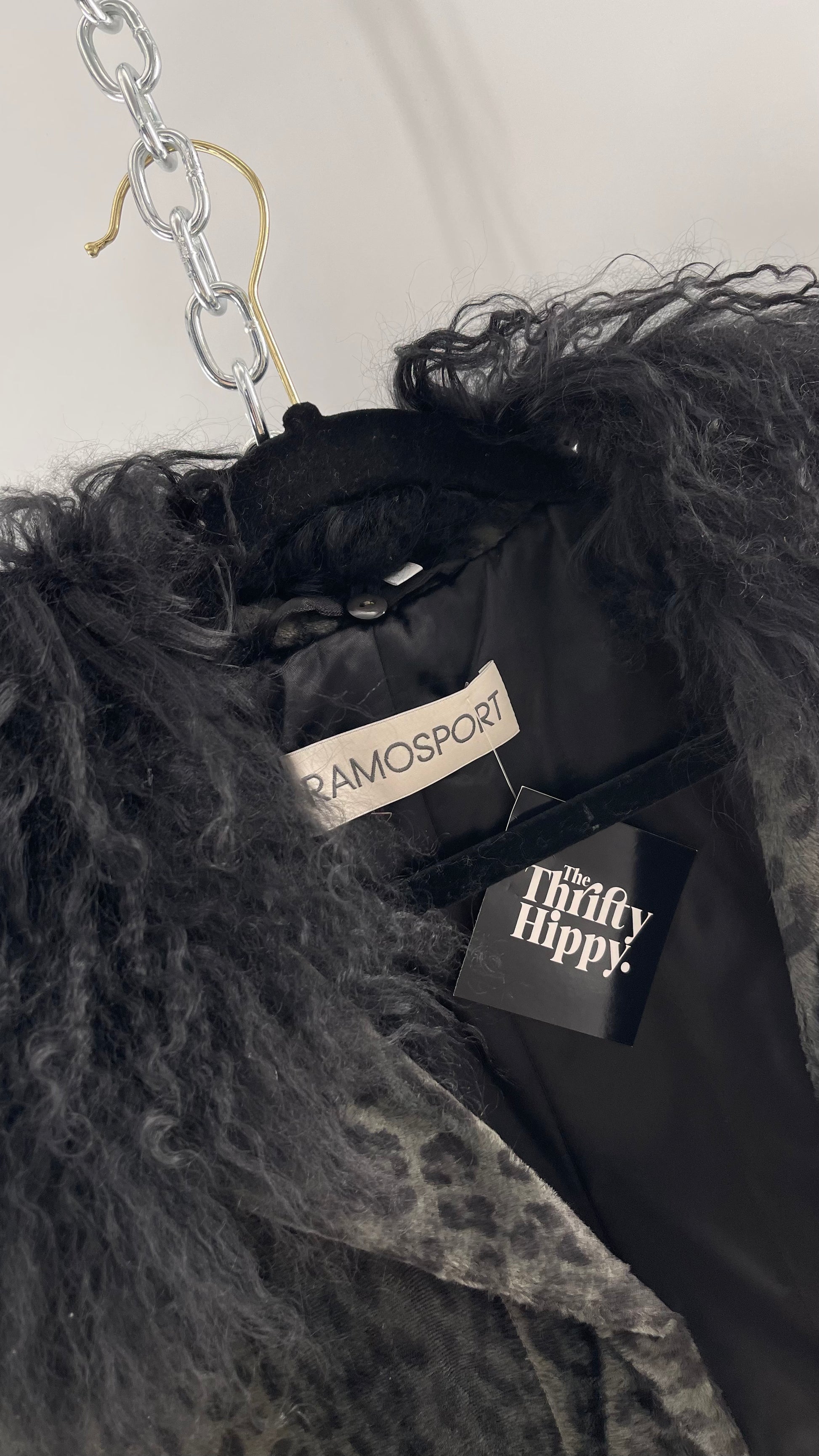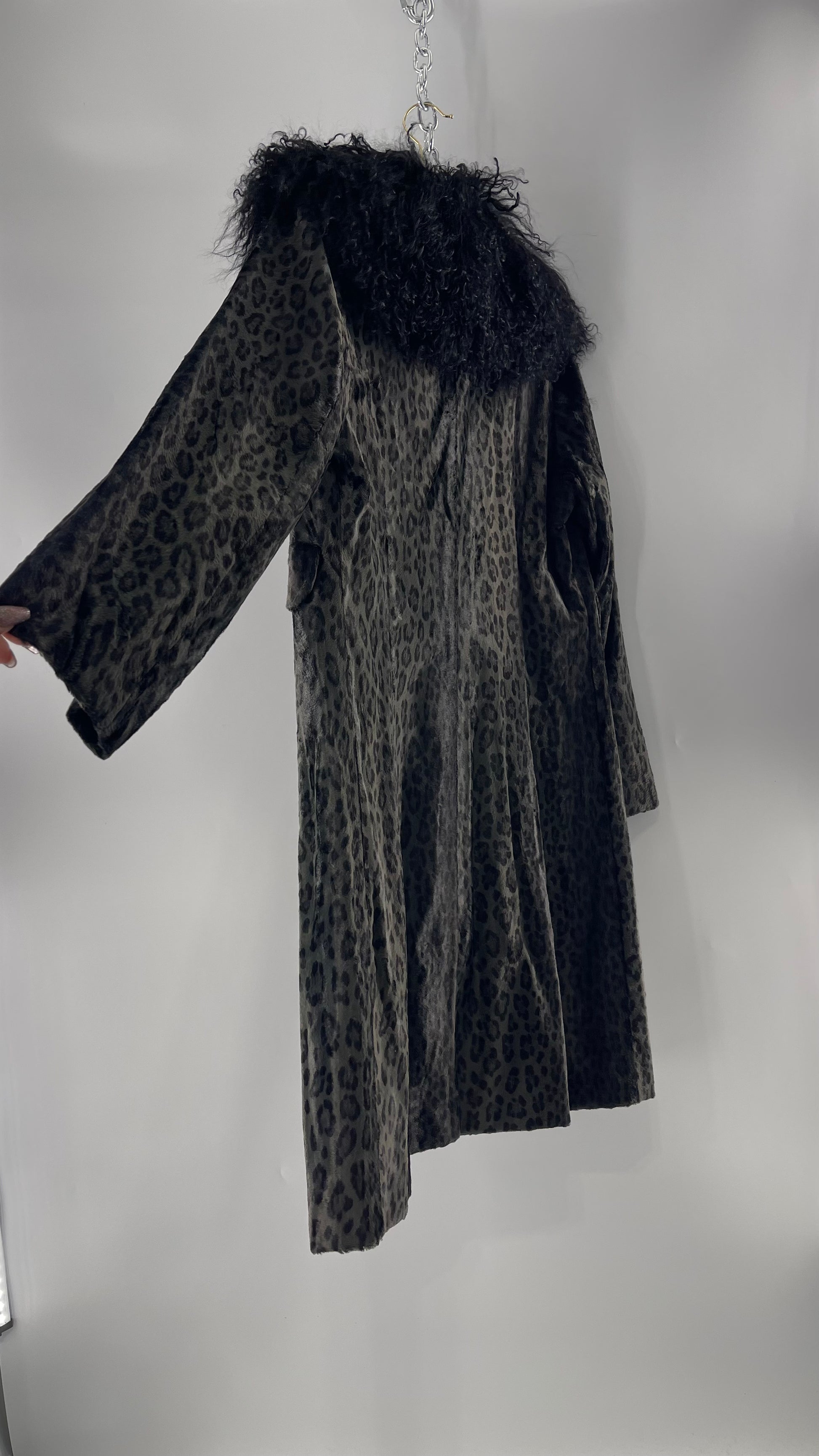 Vintage Romanian RAMOSTEPH Black/Gray Leopard Print Coat with Mongolian Fur Collar (Medium)