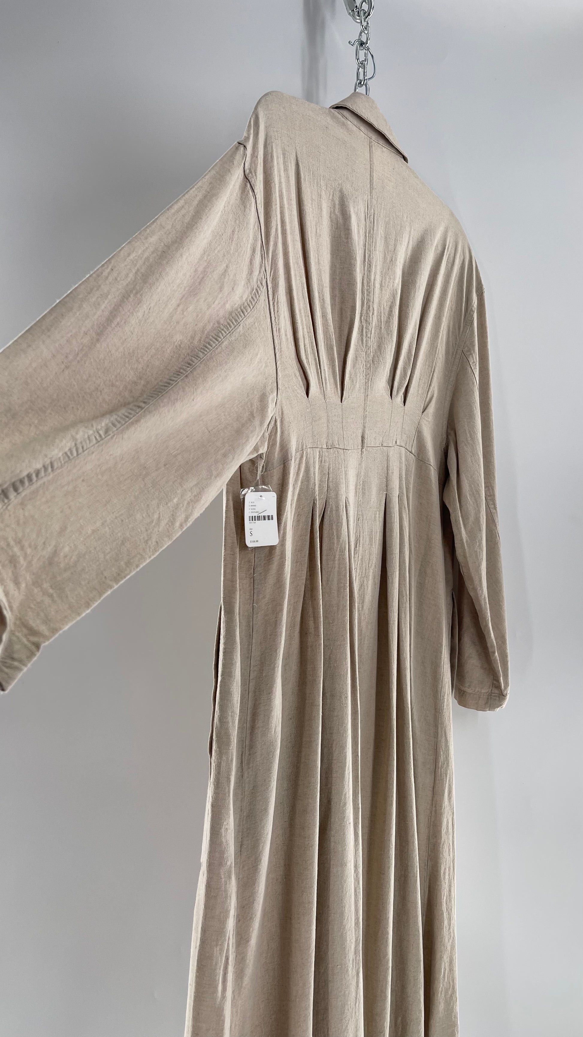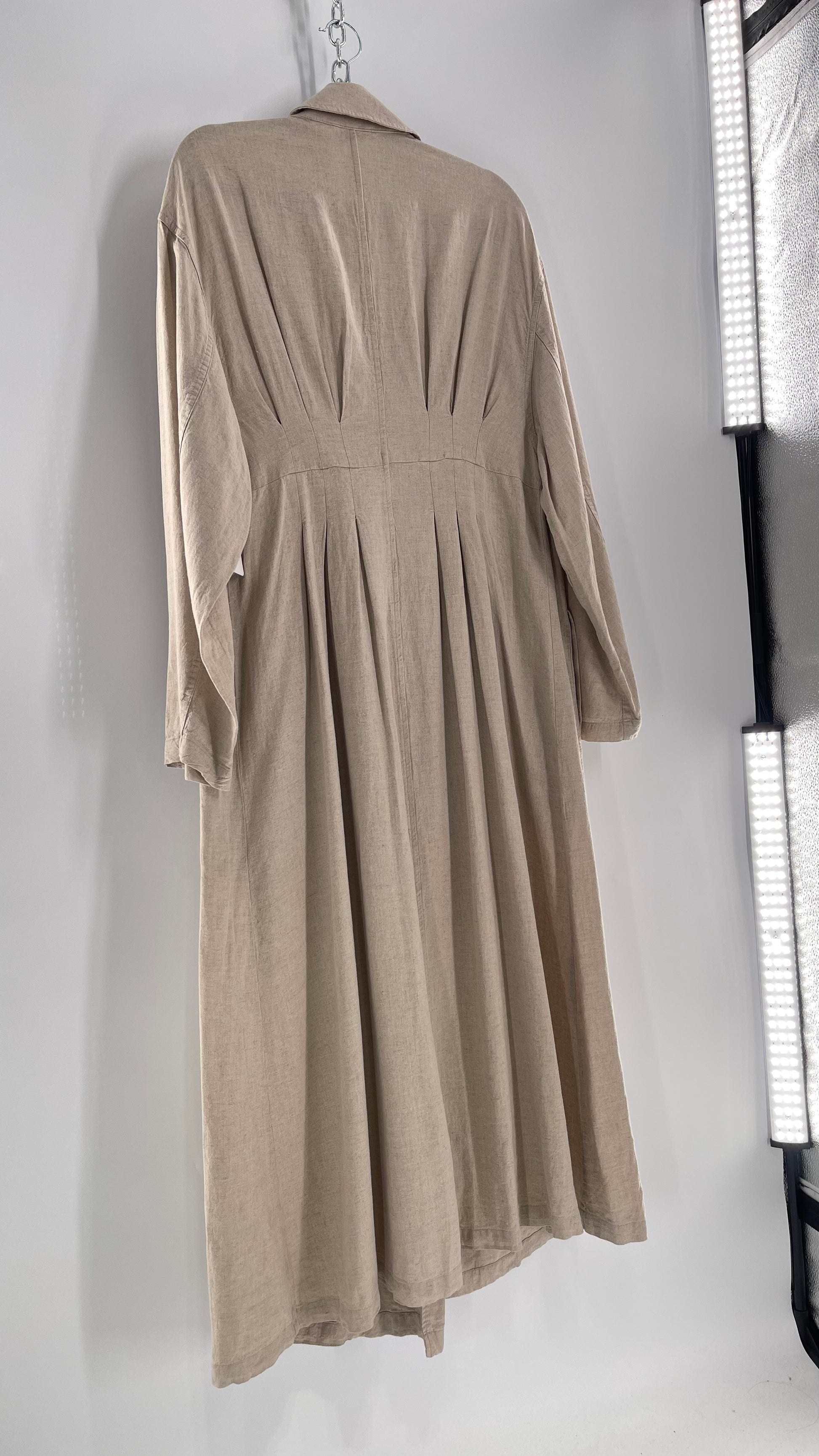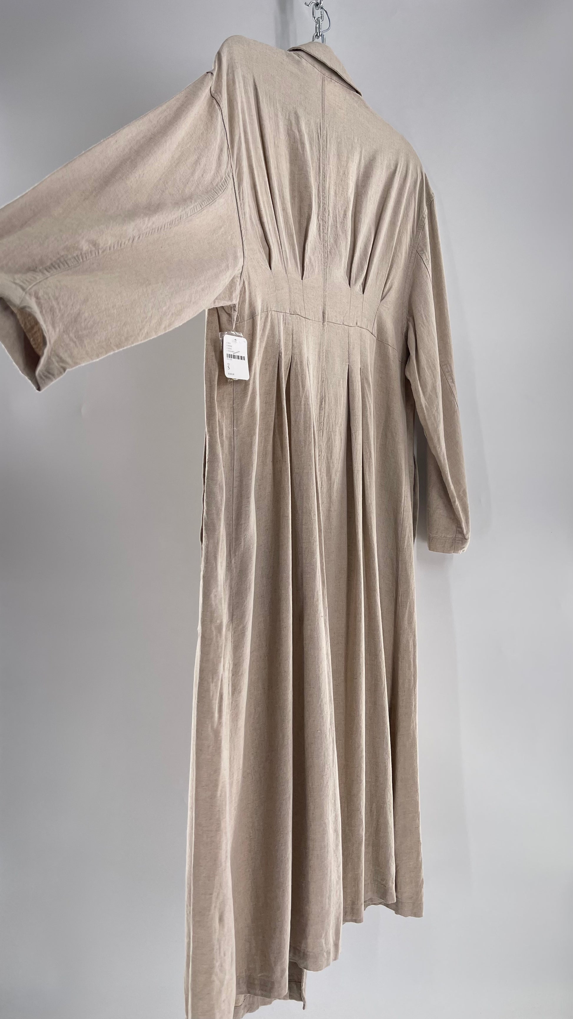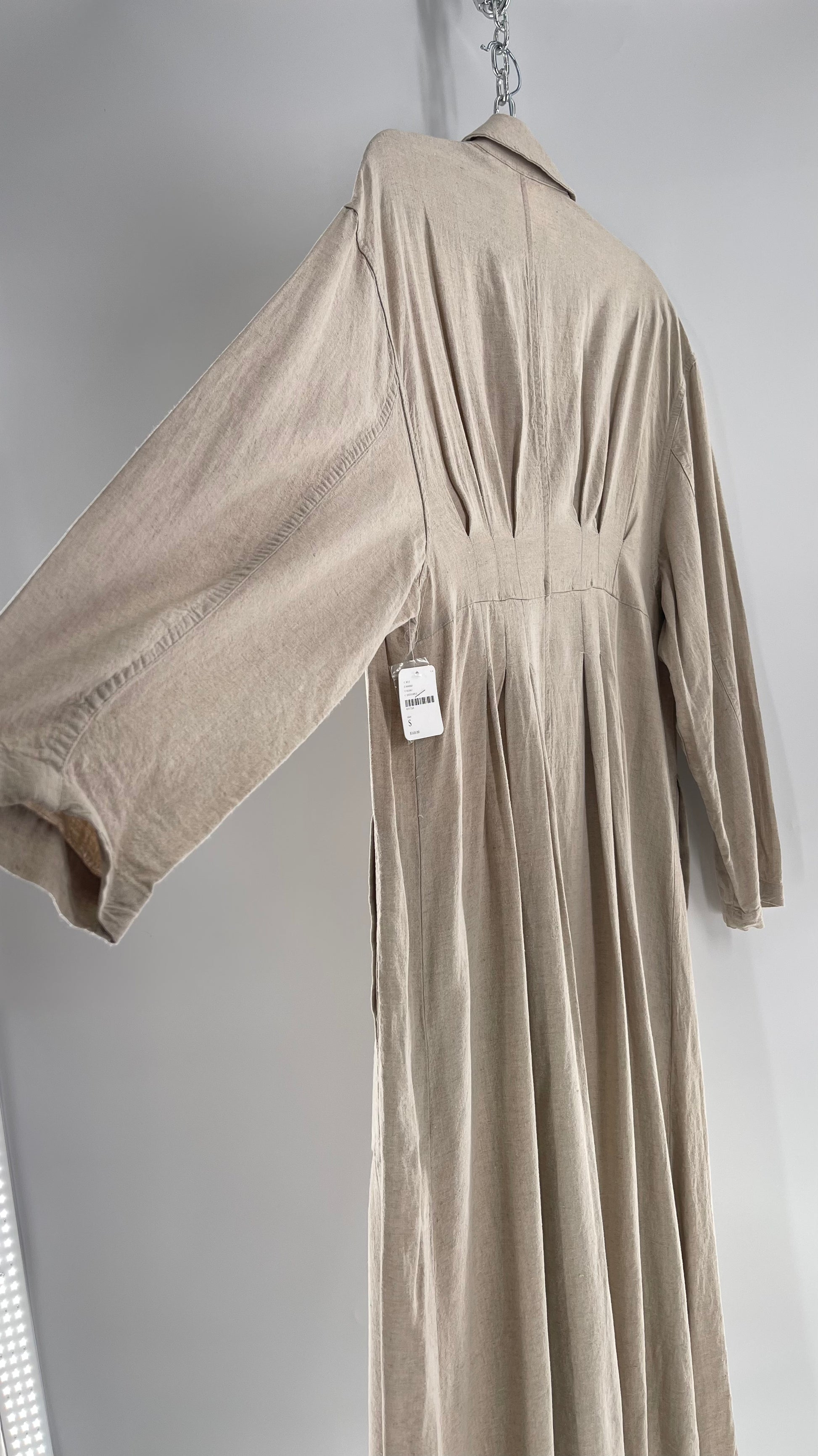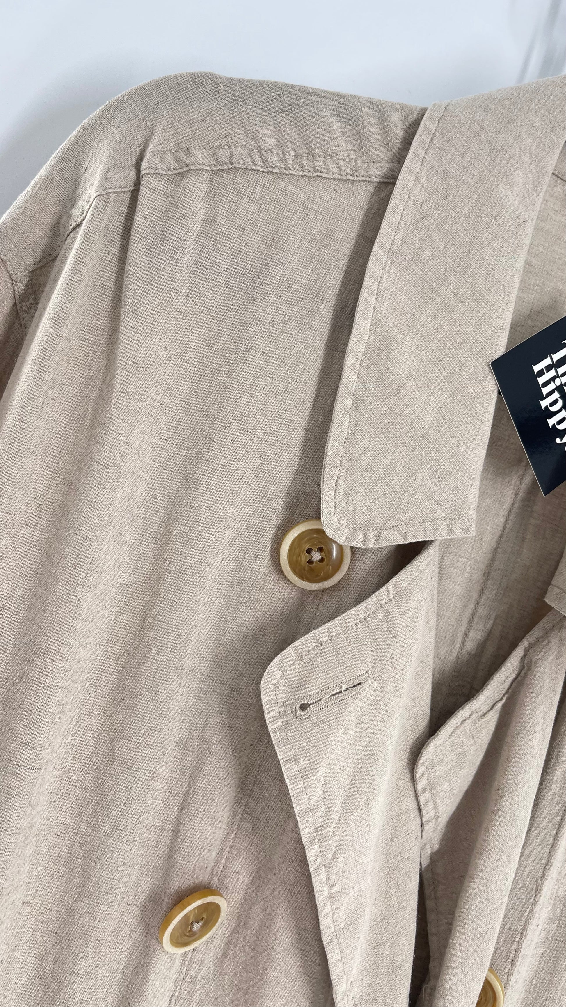 Free People Double Breasted Beige Linen Trench Coat with Brown Buttons and Tags Attached