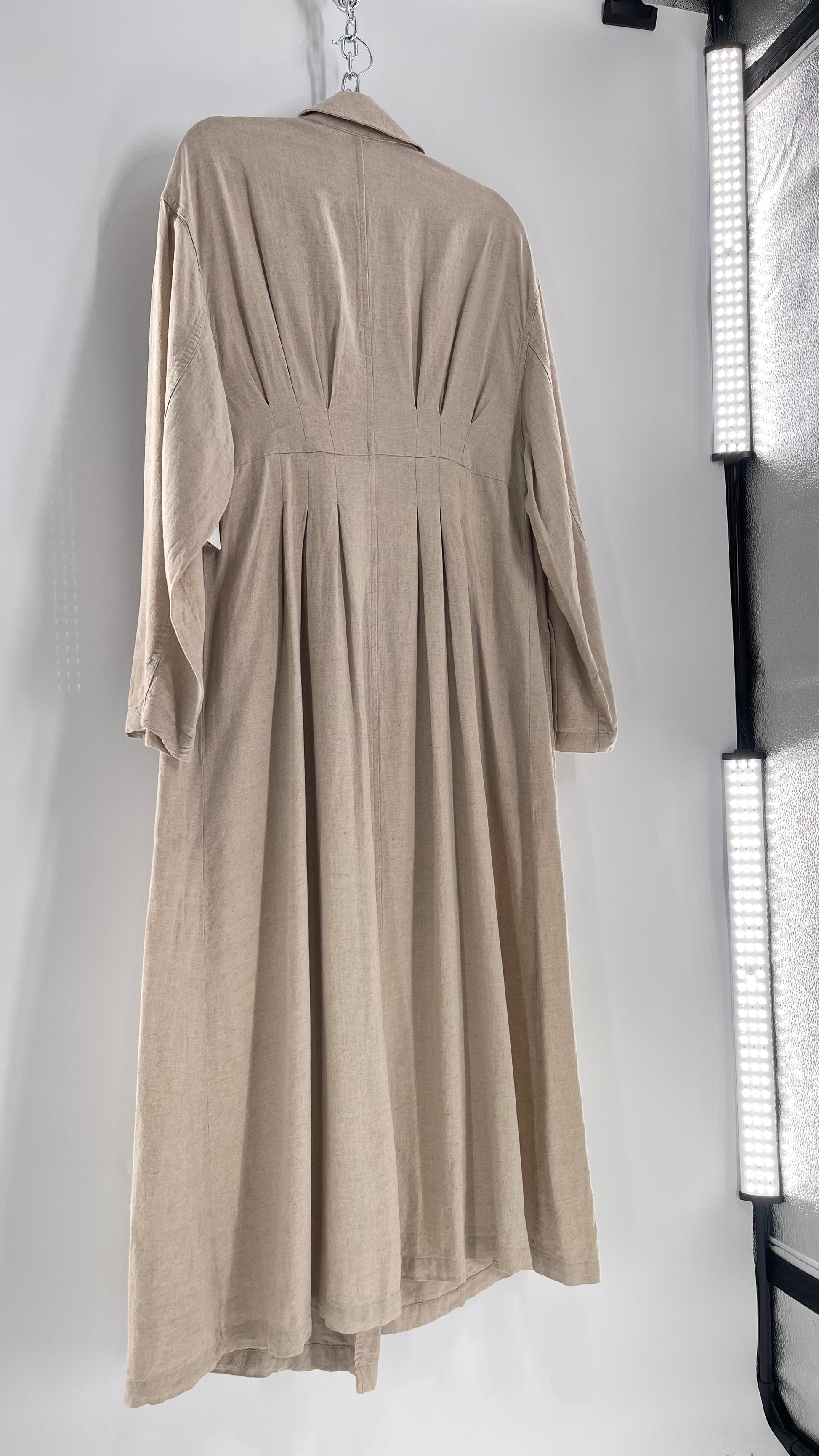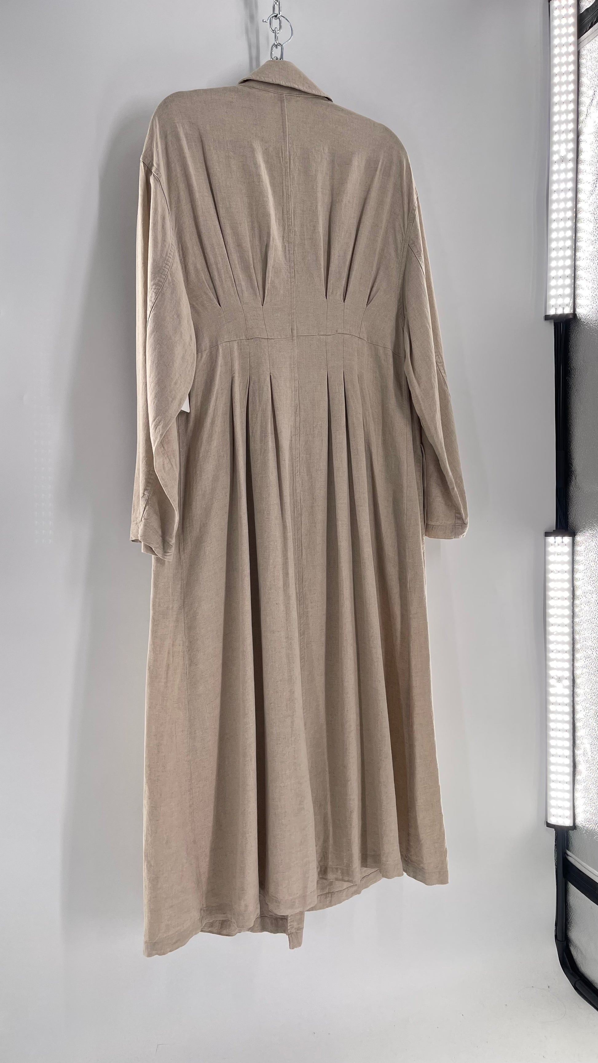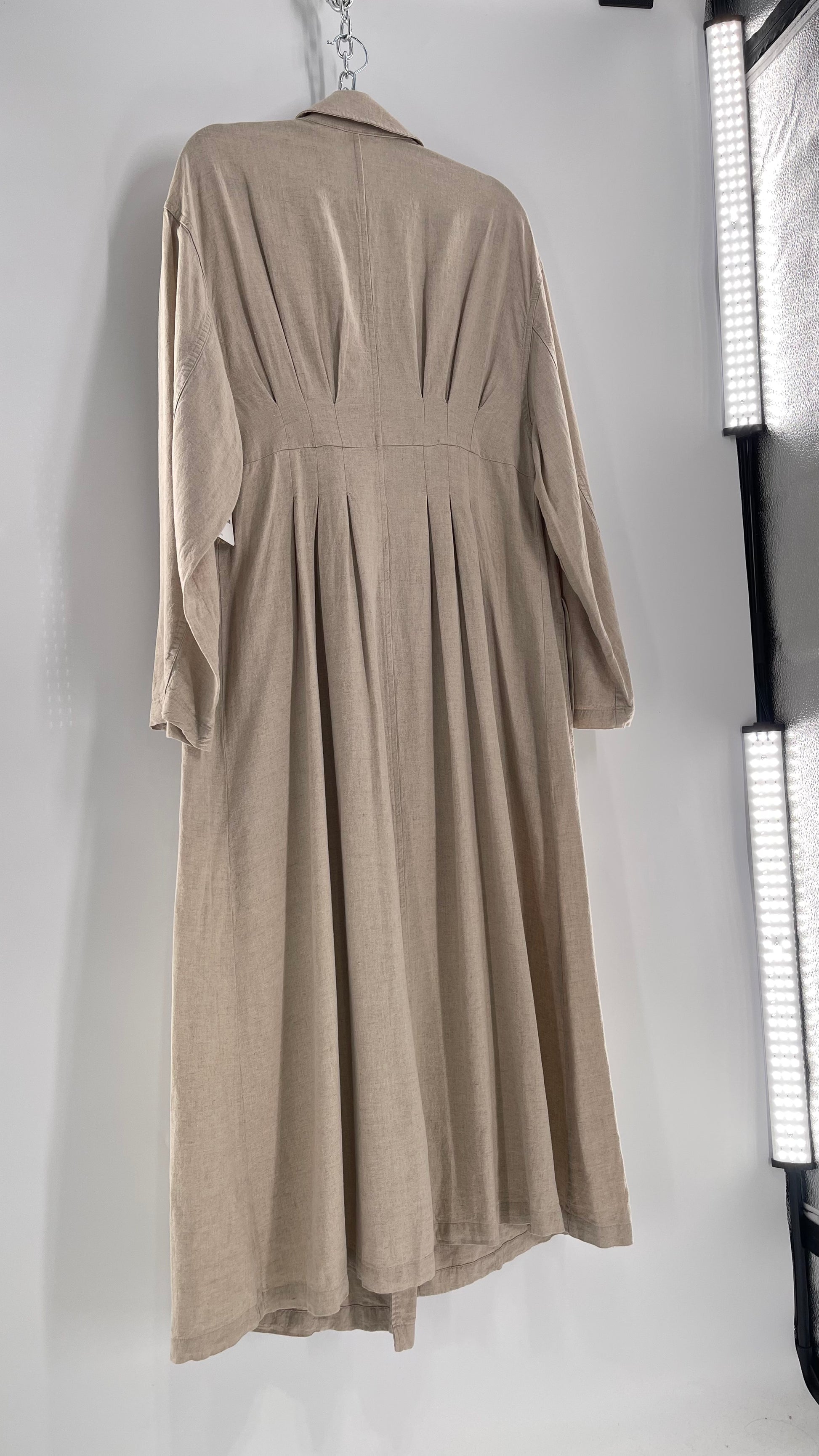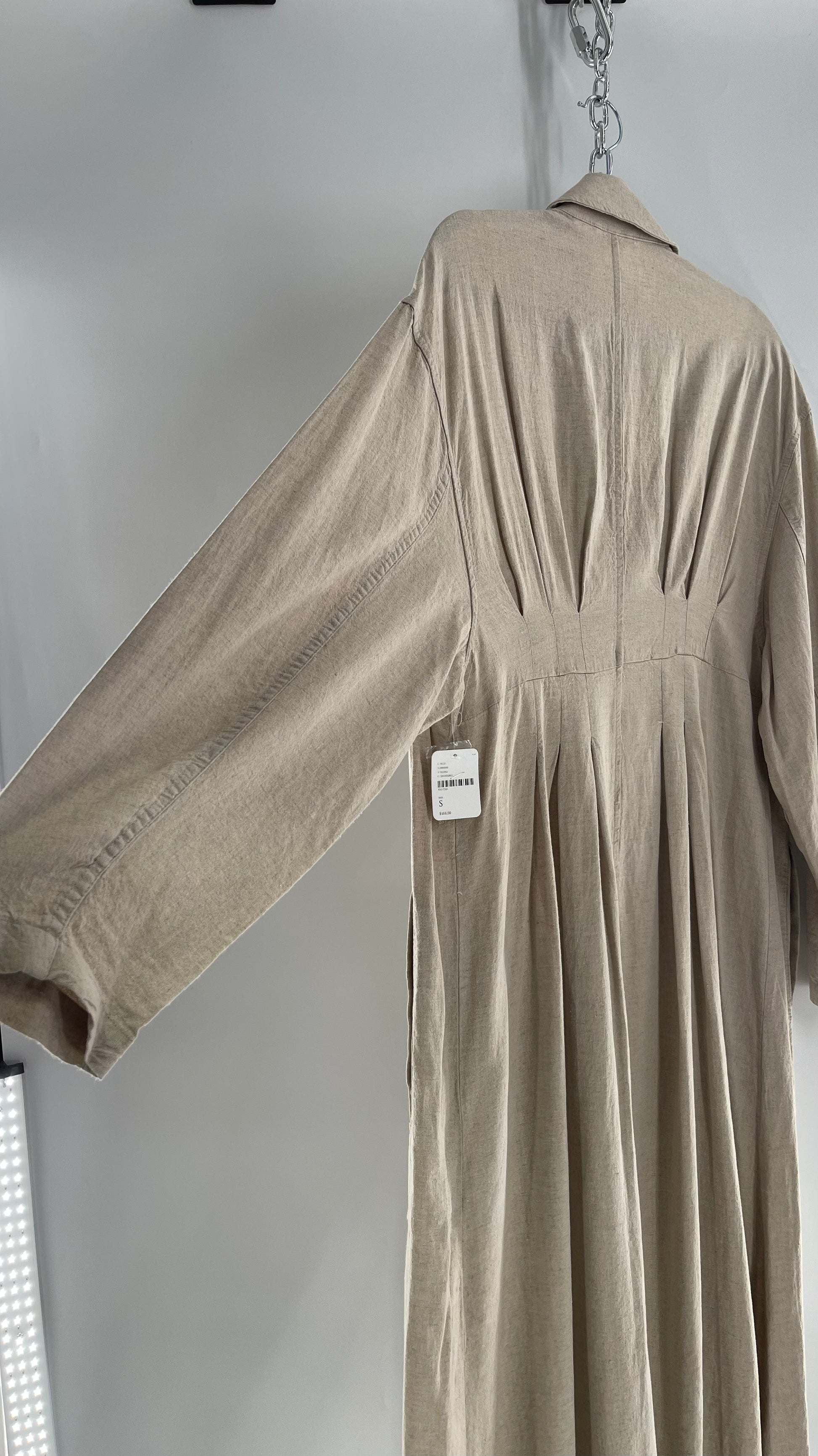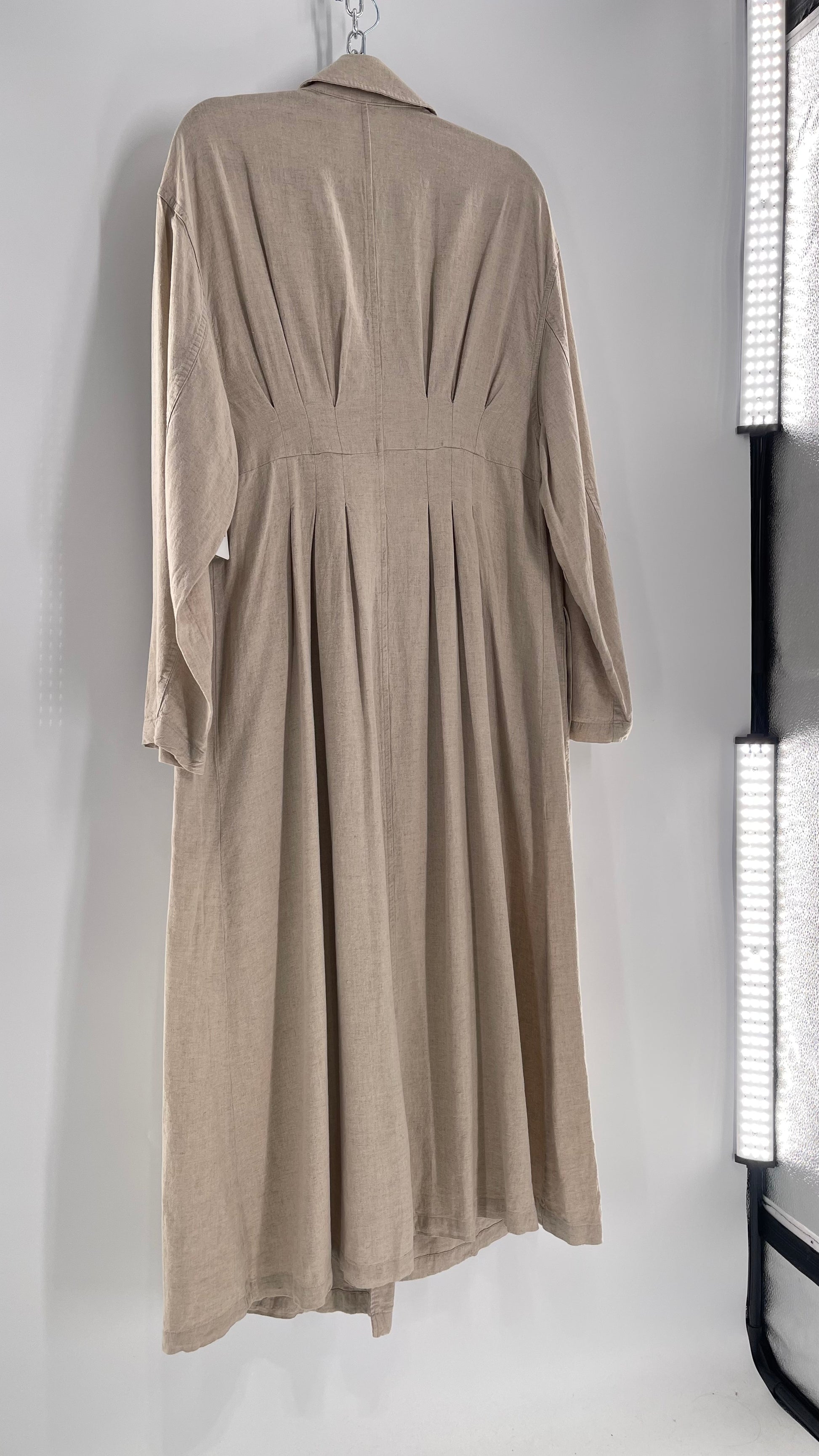 Free People Double Breasted Beige Linen Trench Coat with Brown Buttons and Tags Attached