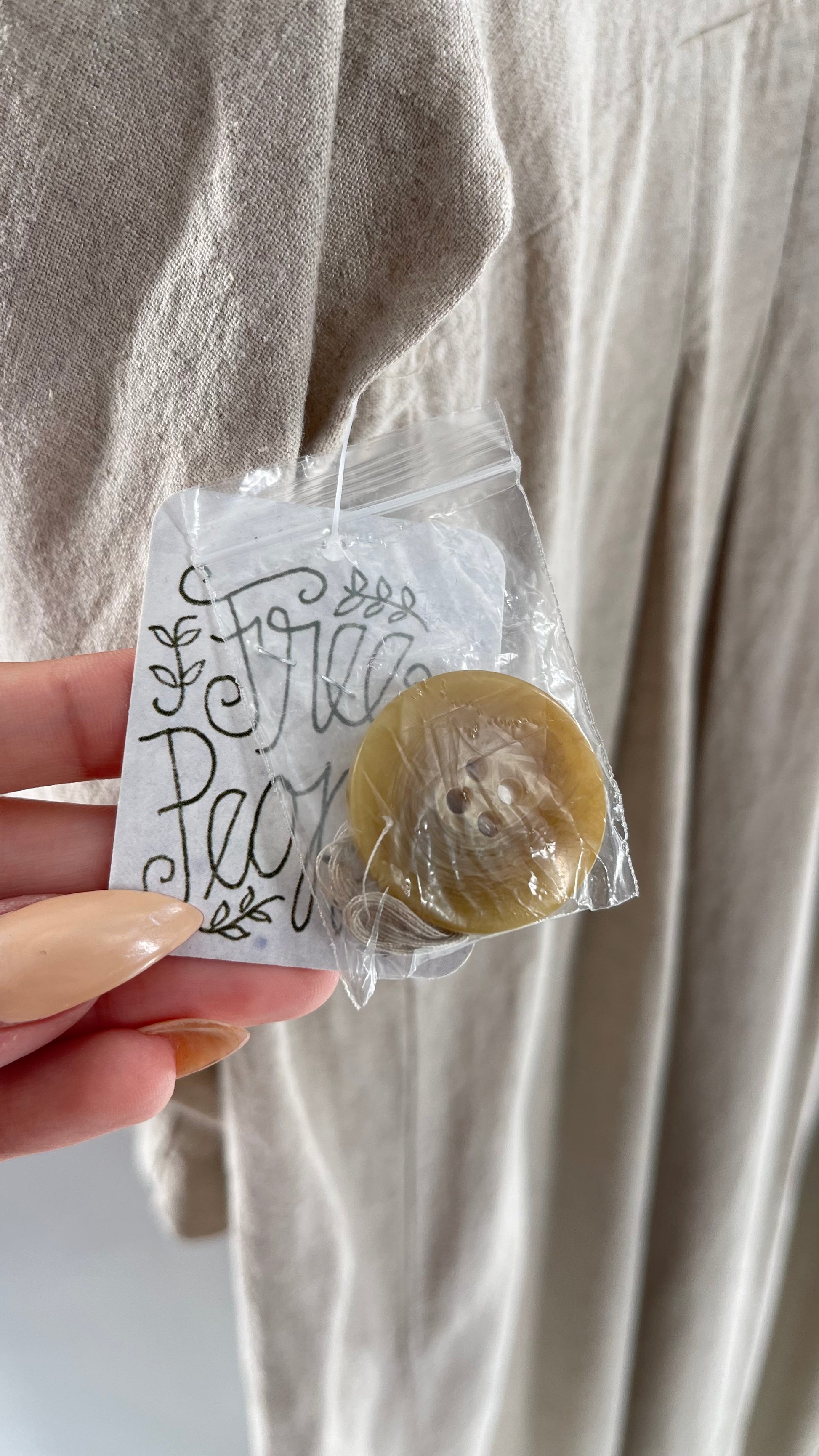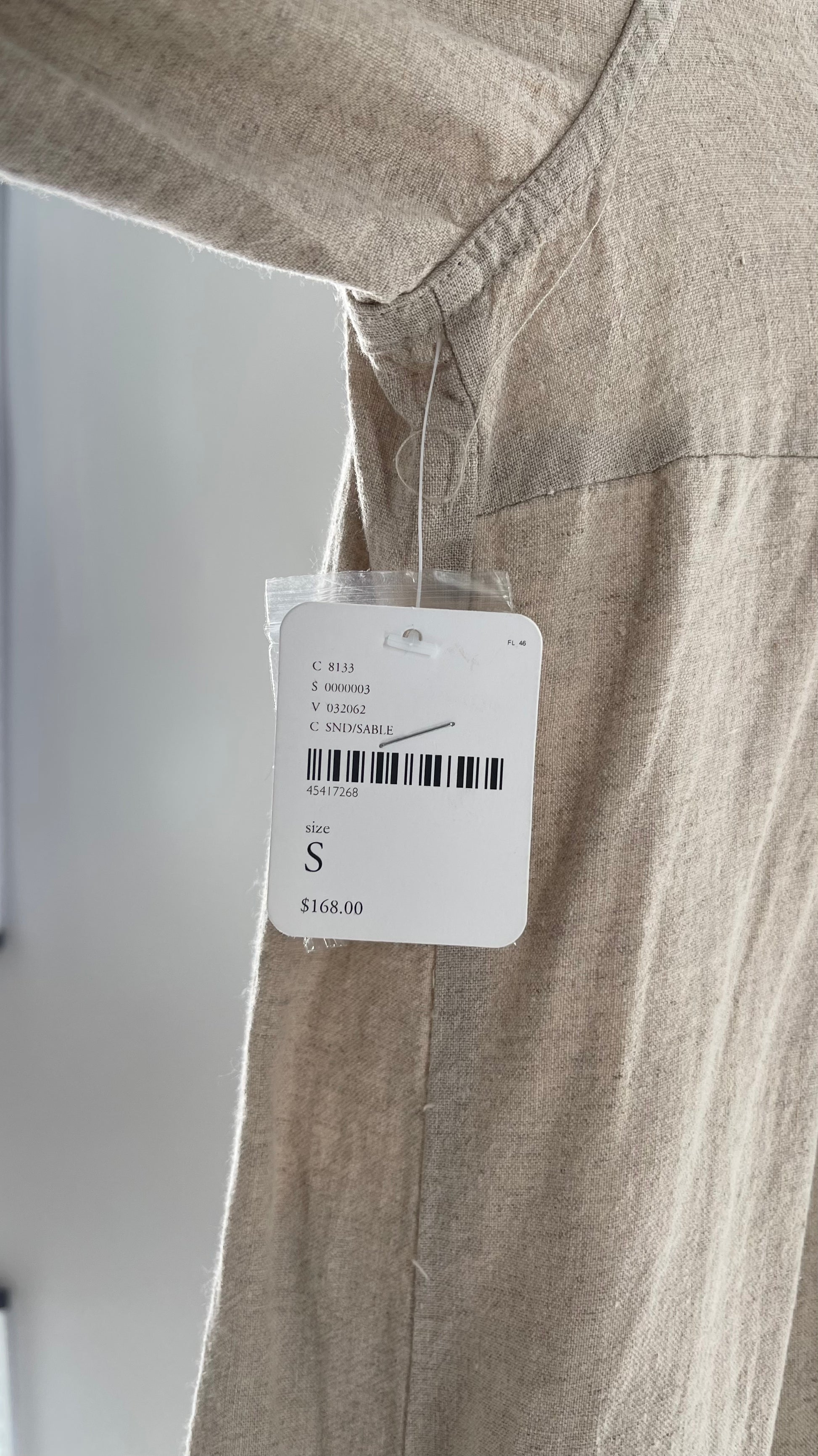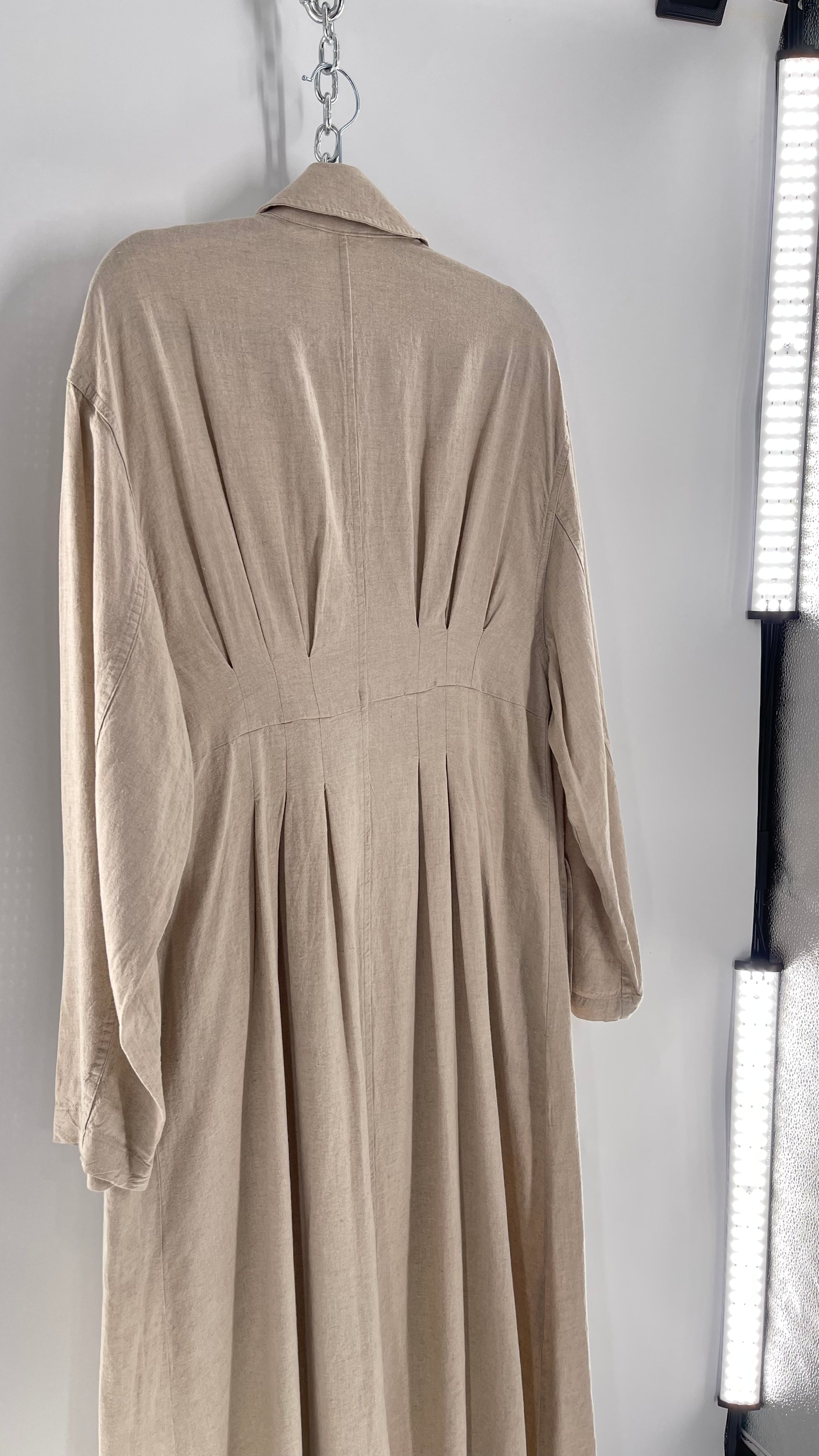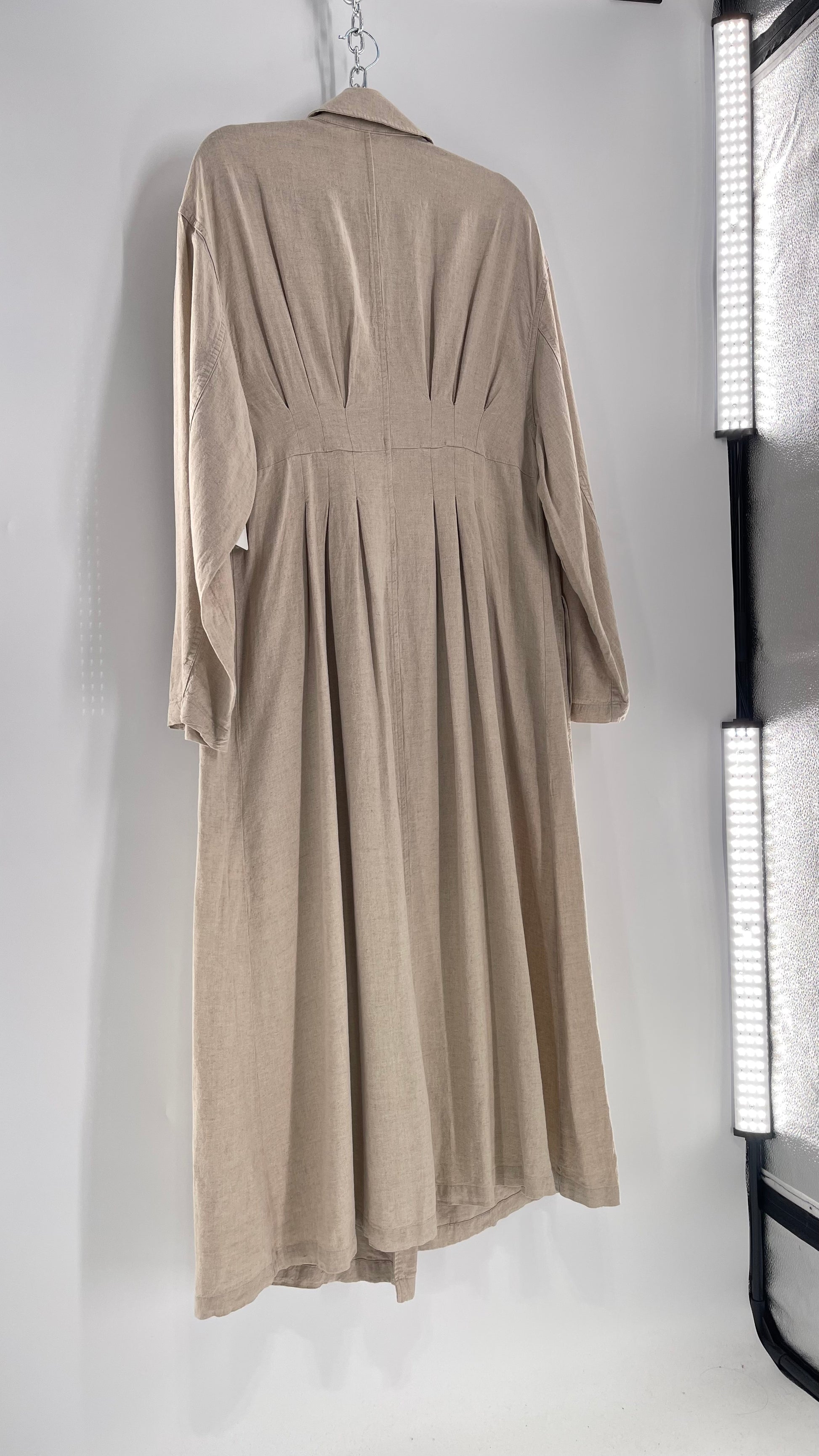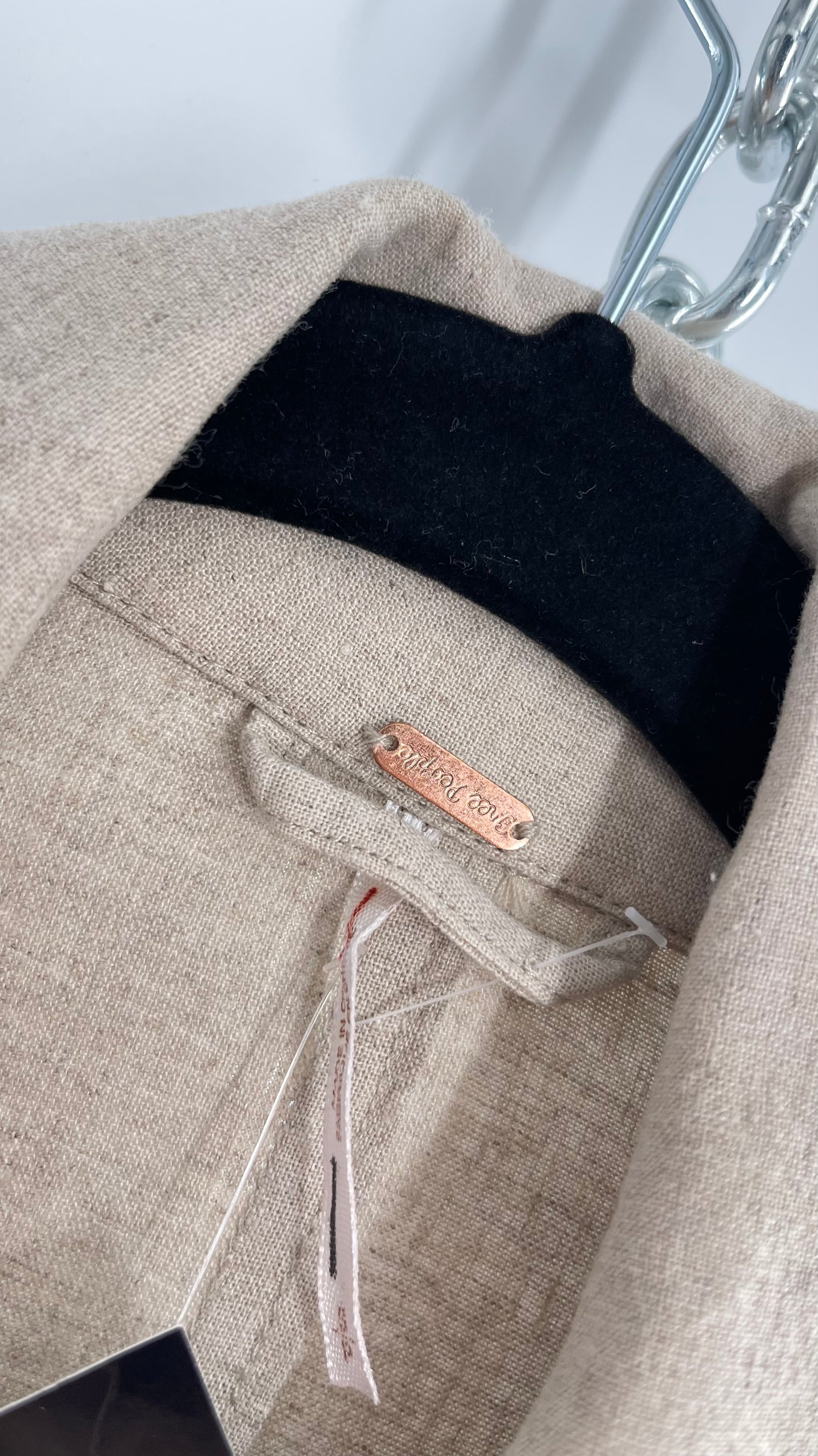 Free People Double Breasted Beige Linen Trench Coat with Brown Buttons and Tags Attached