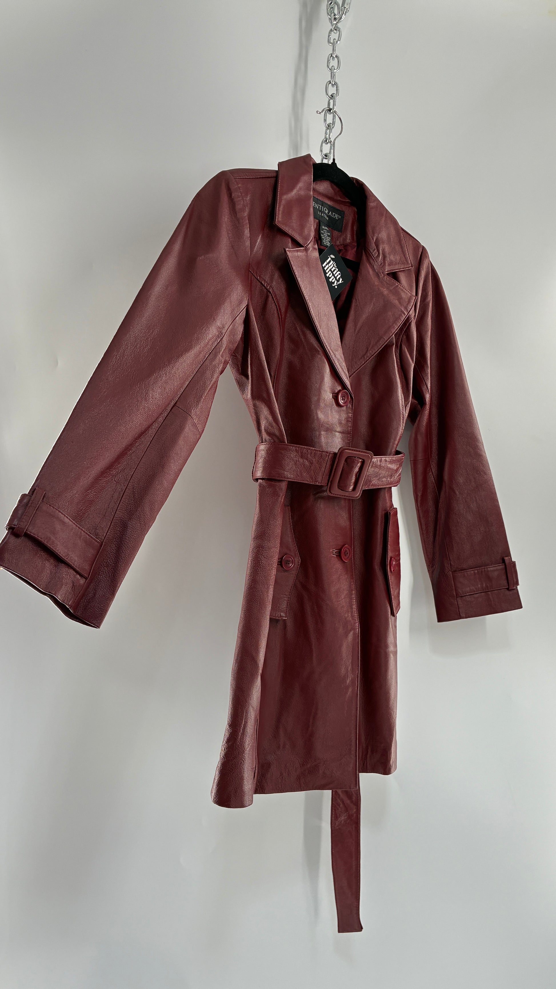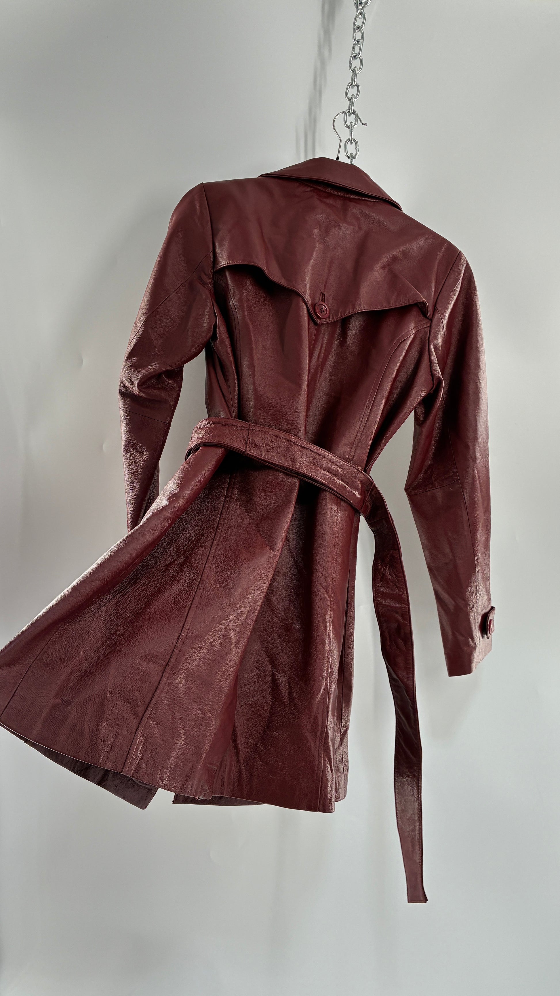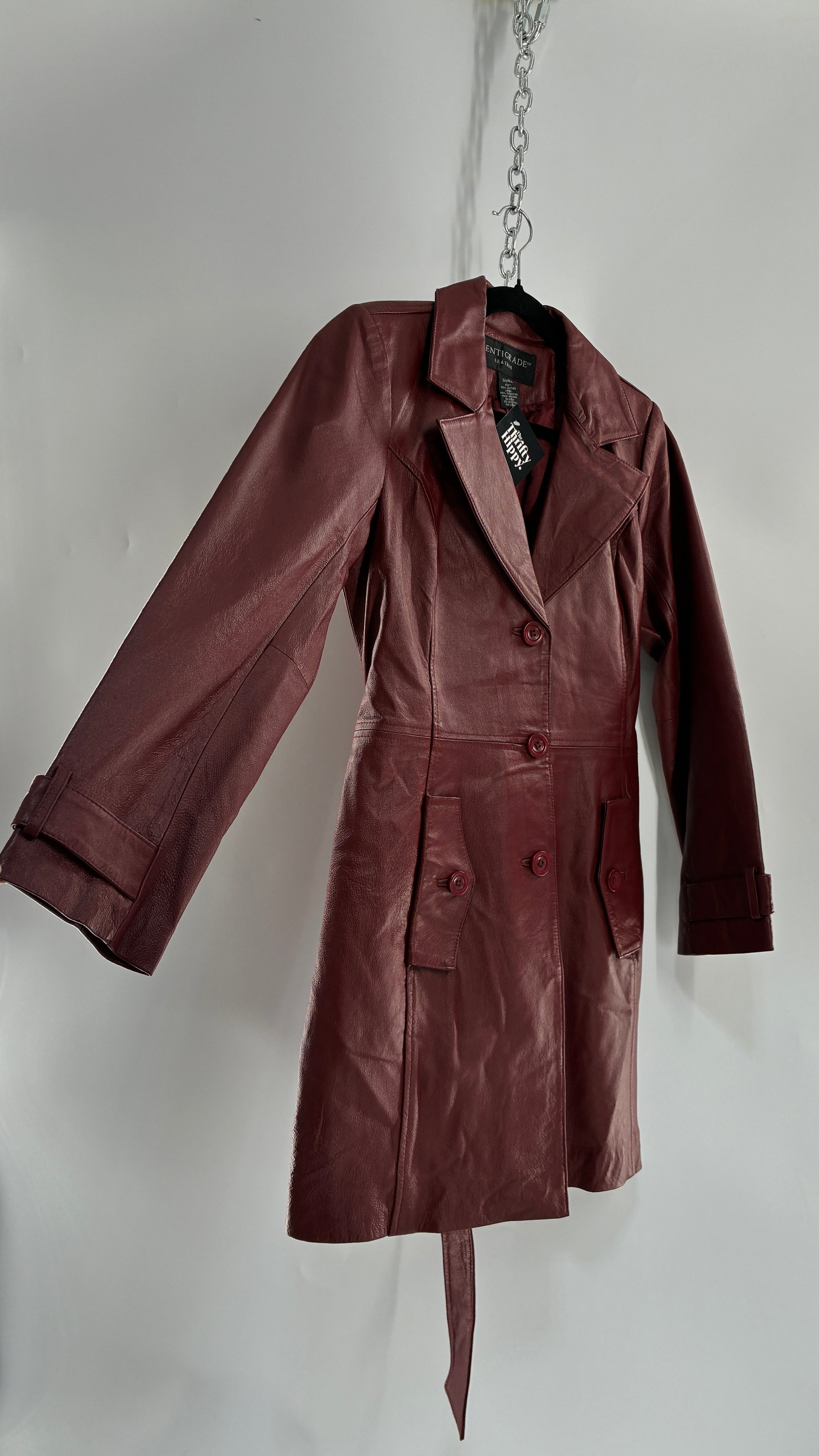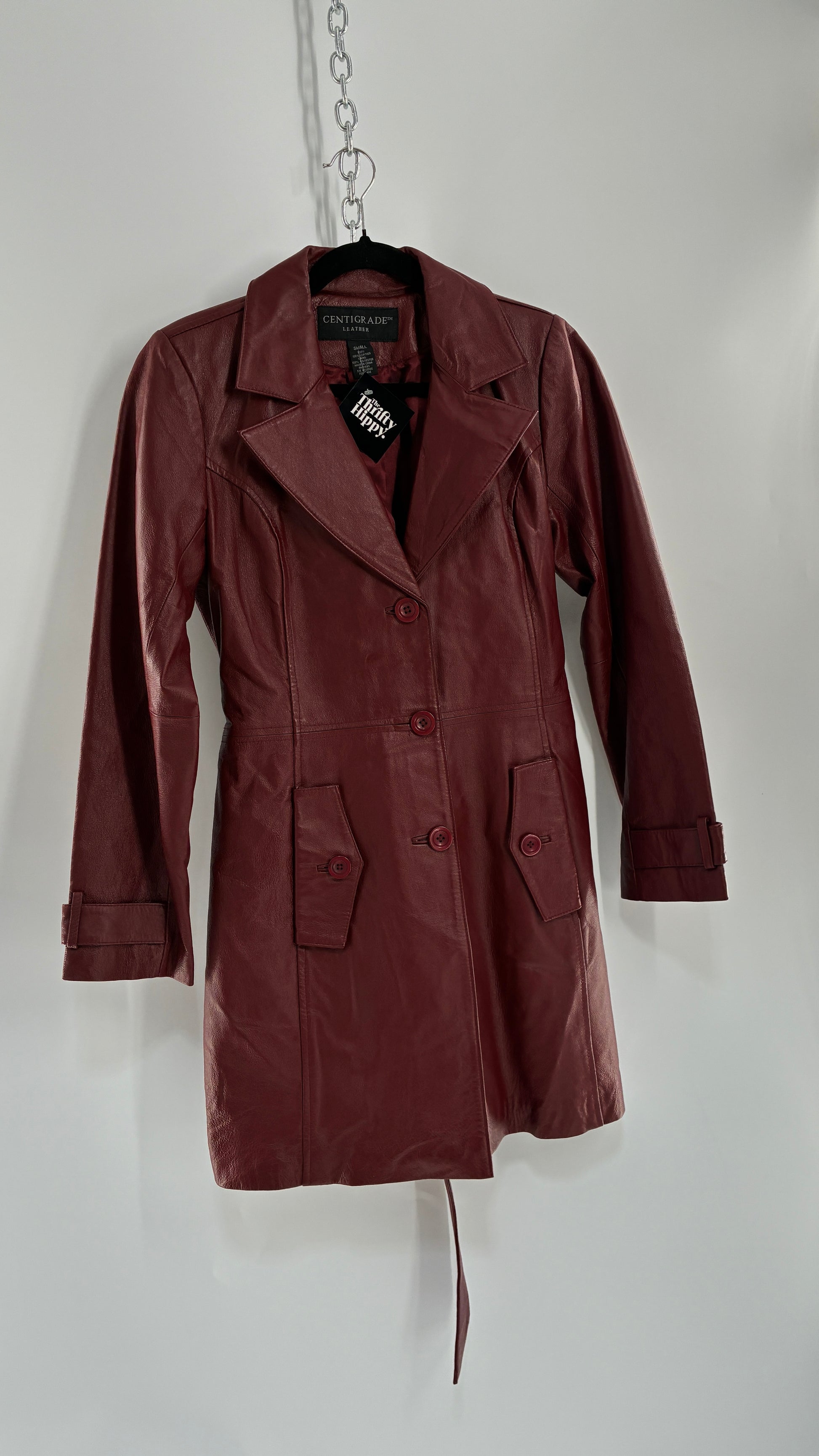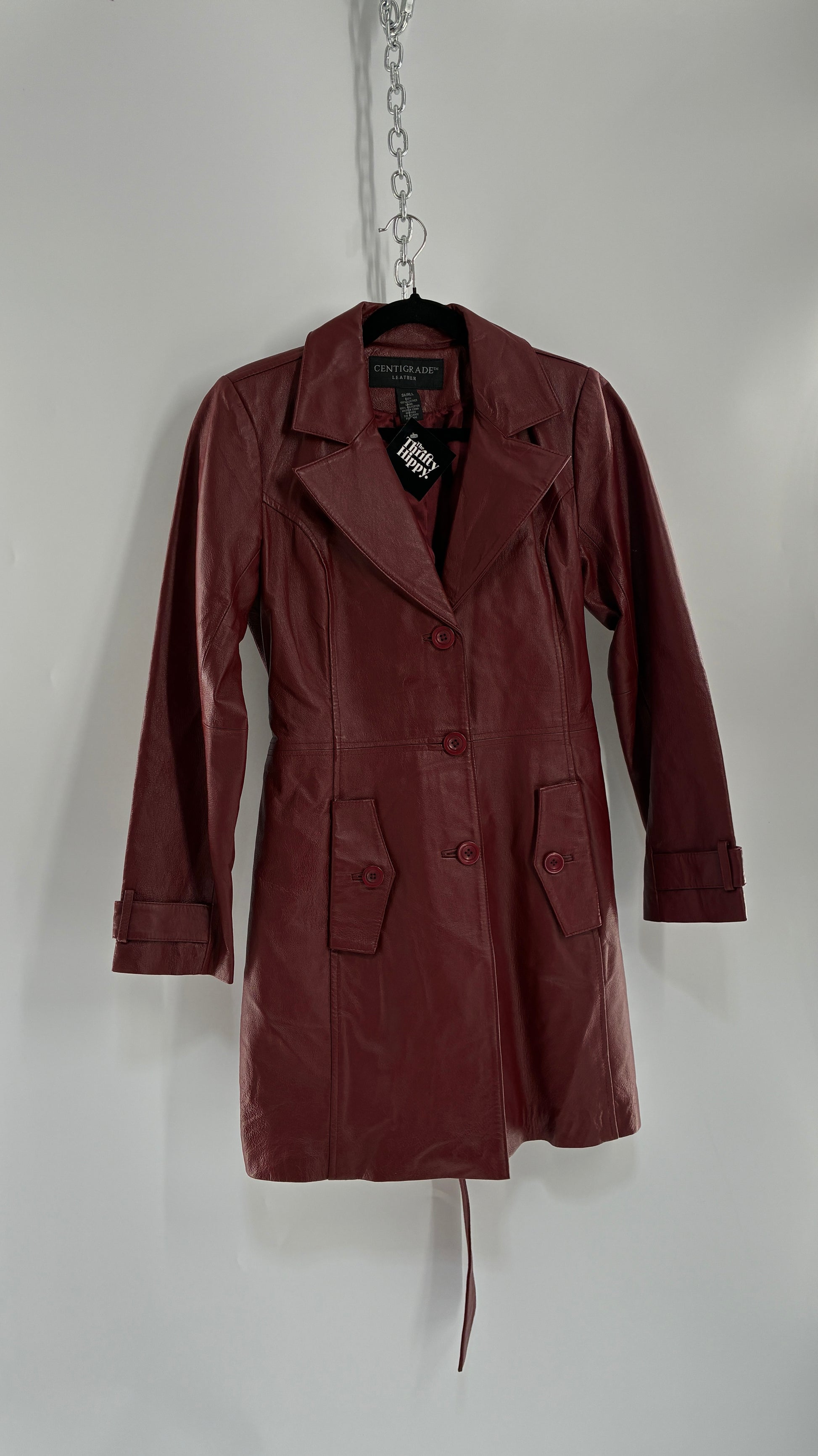 Vintage 1990s CENTIGRADE Red Crimson Genuine Leather Trench Coat (Small)