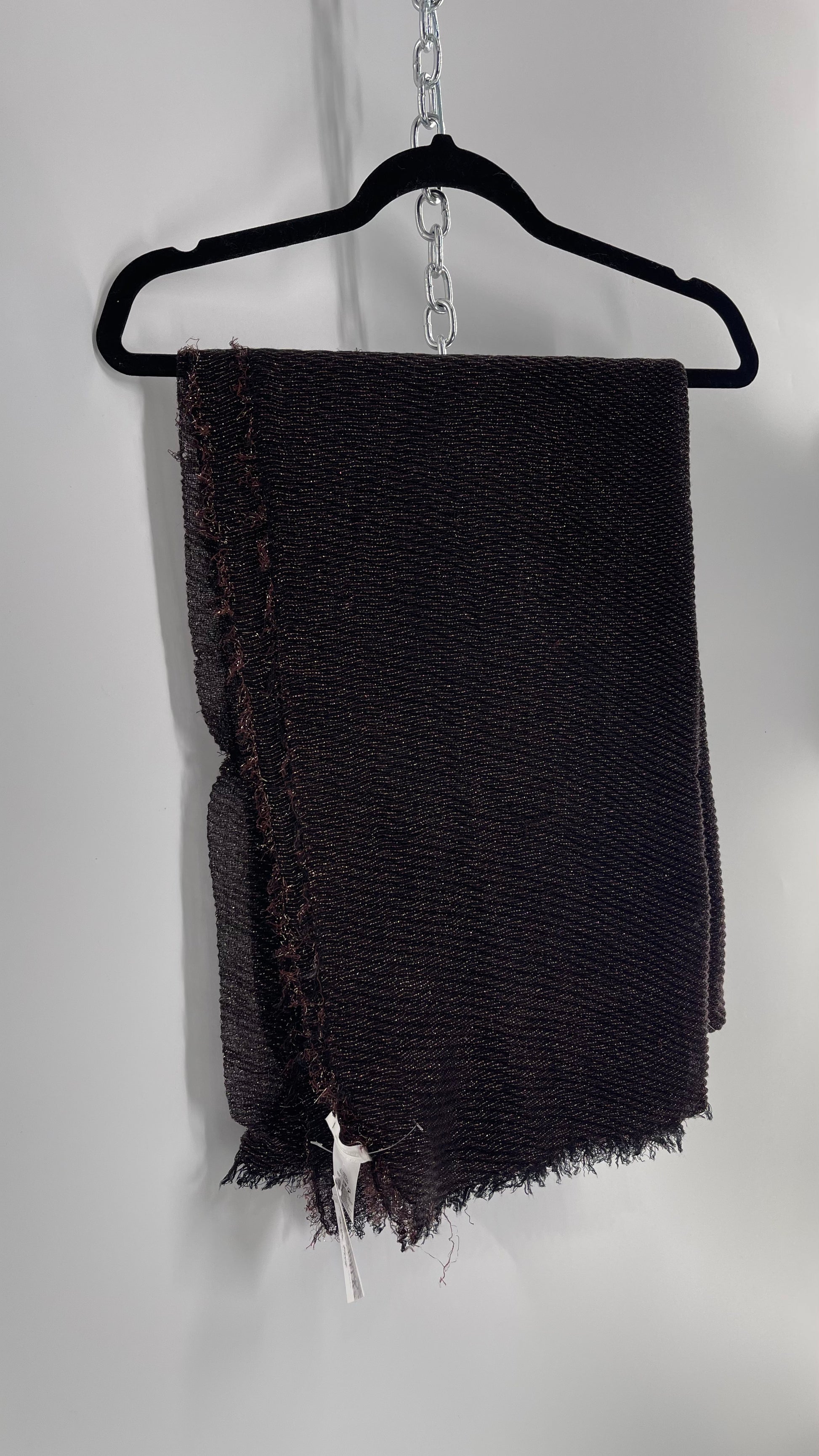 Maurice’s Black Thin Knit Voluminous Scarf with Bronze Woven Tinsel