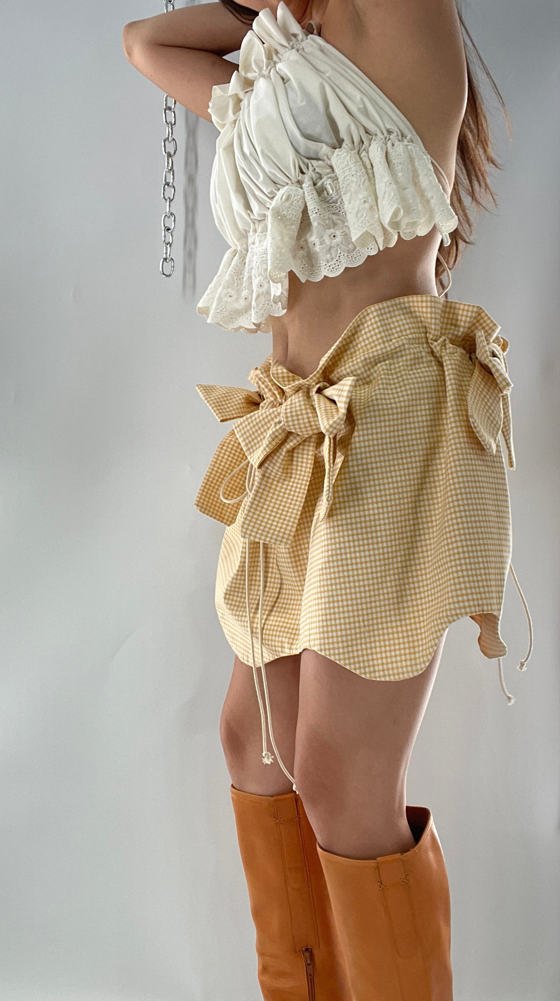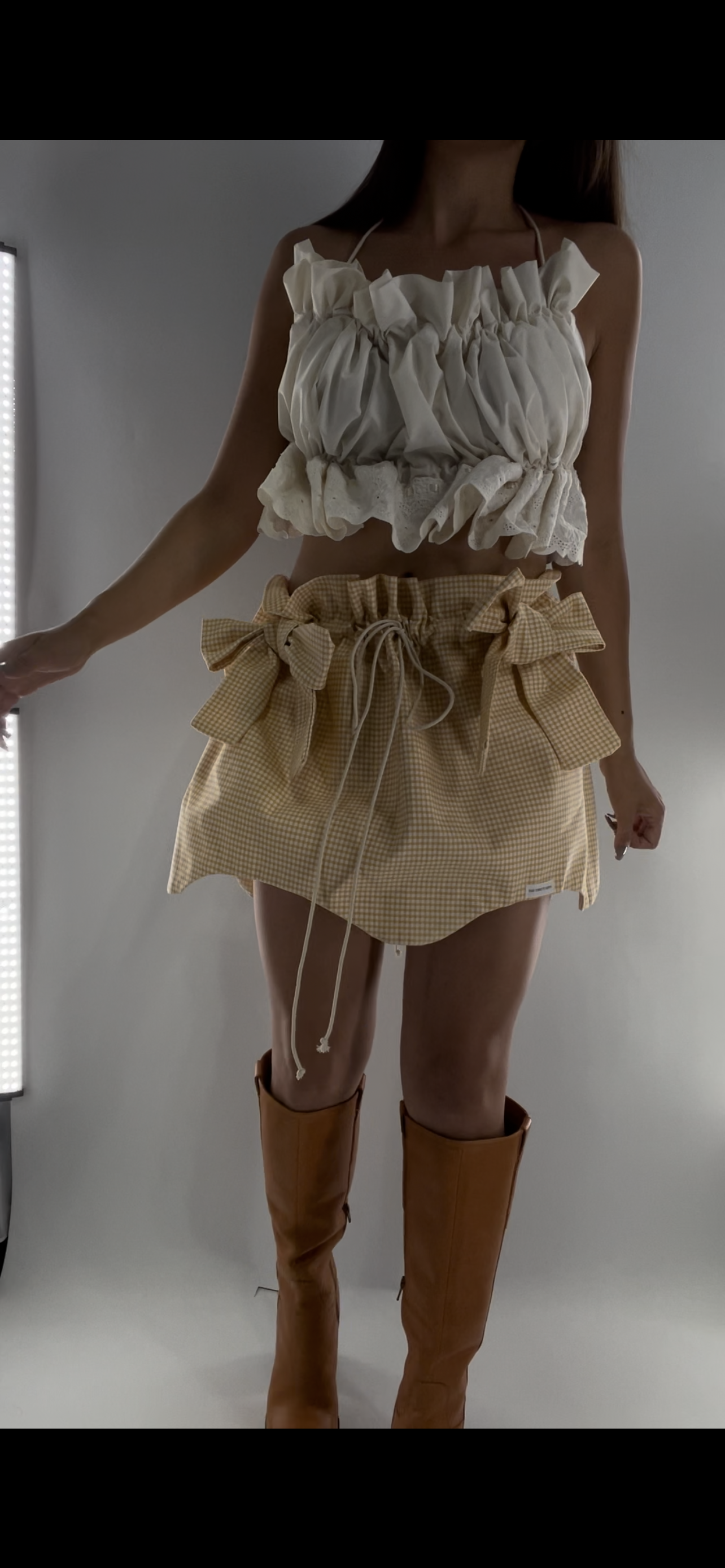 Handmade Vintage Off White Lace Hem Top with Open Back and Sewn In Ribbon