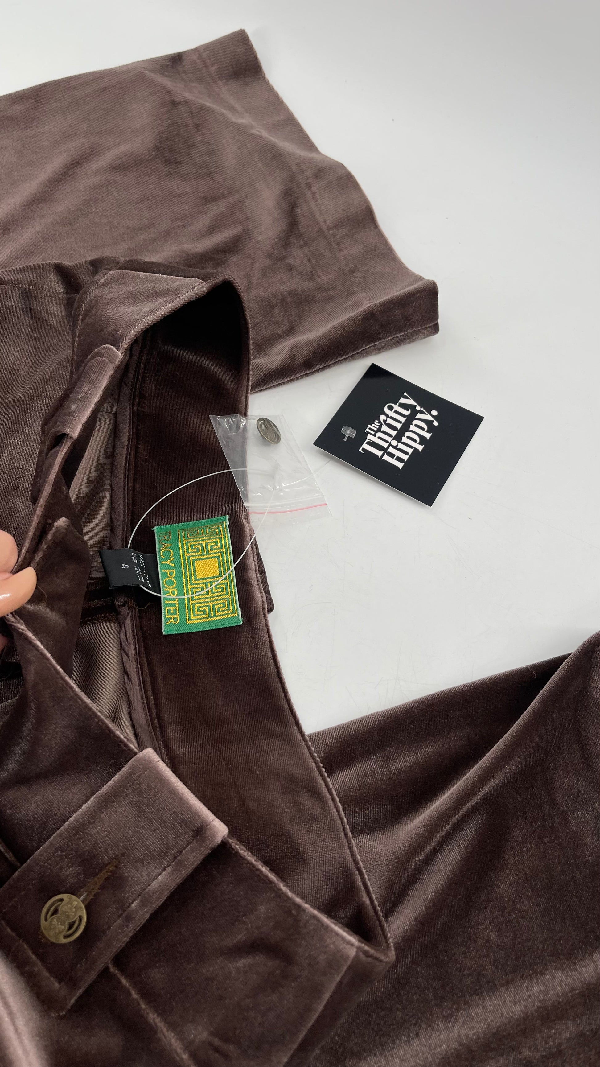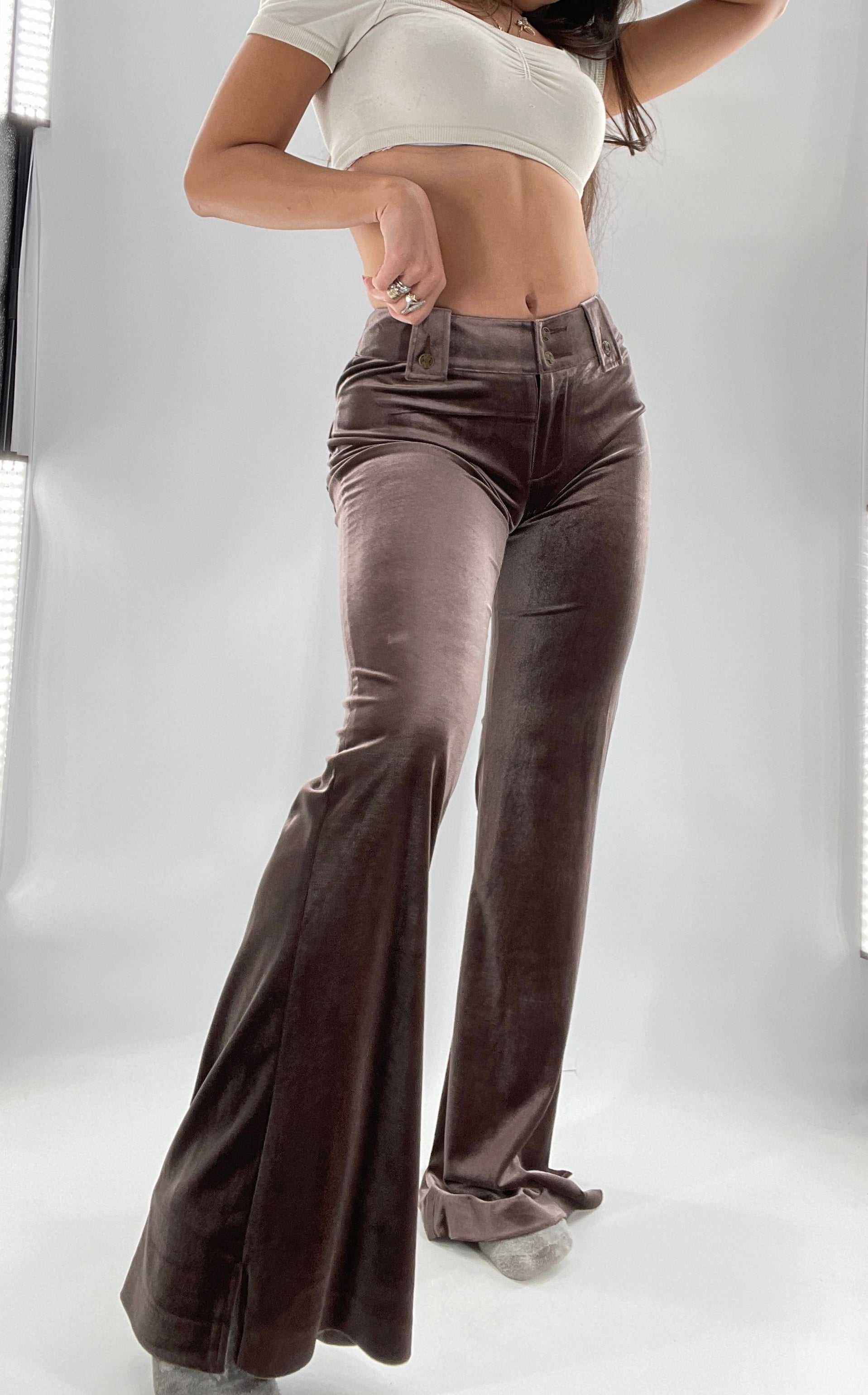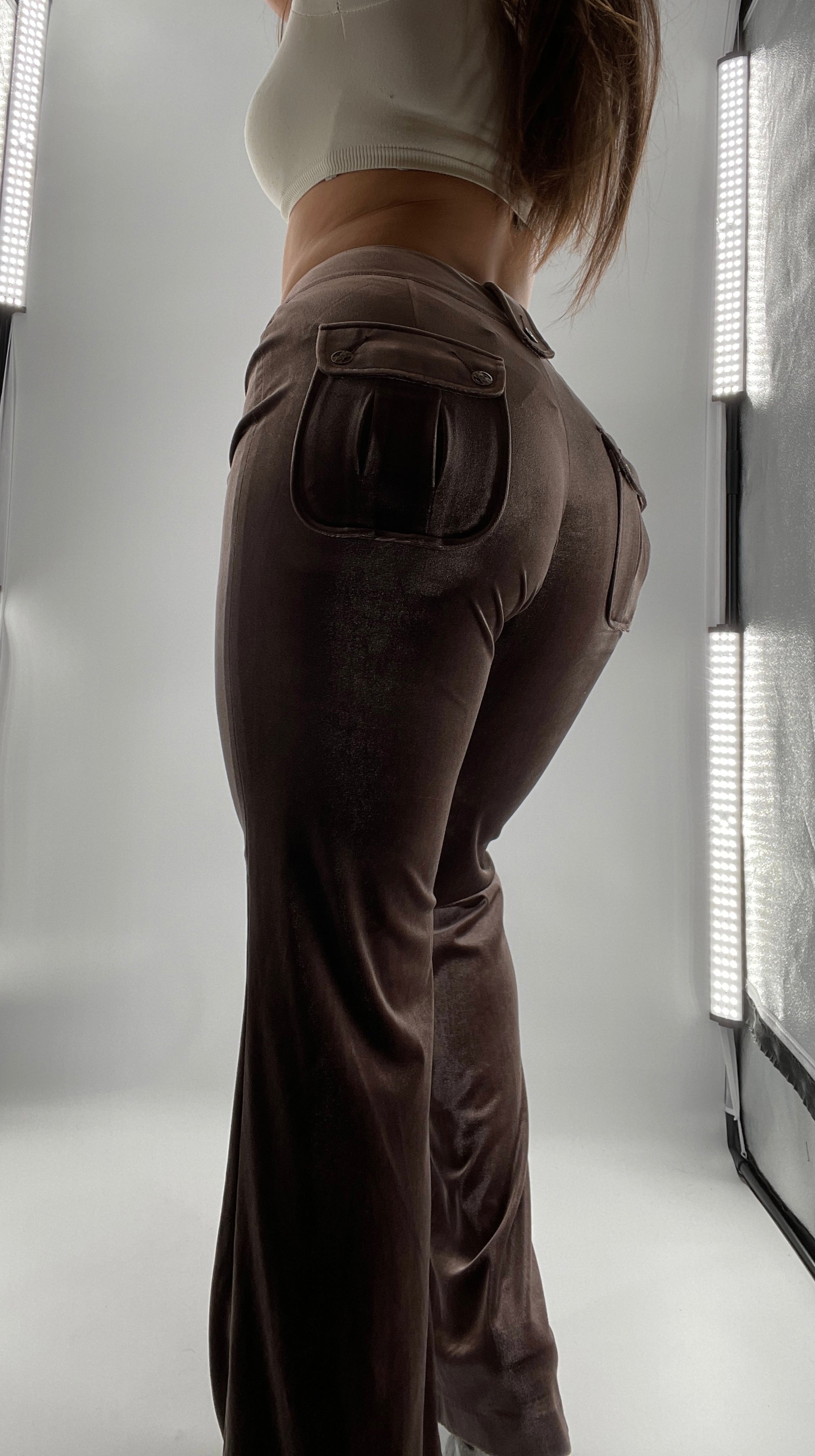 Vintage Tracy Porter brown velour low waisted yoga pants with back pockets, wide waist band and kick flare hem (W27L42.5)