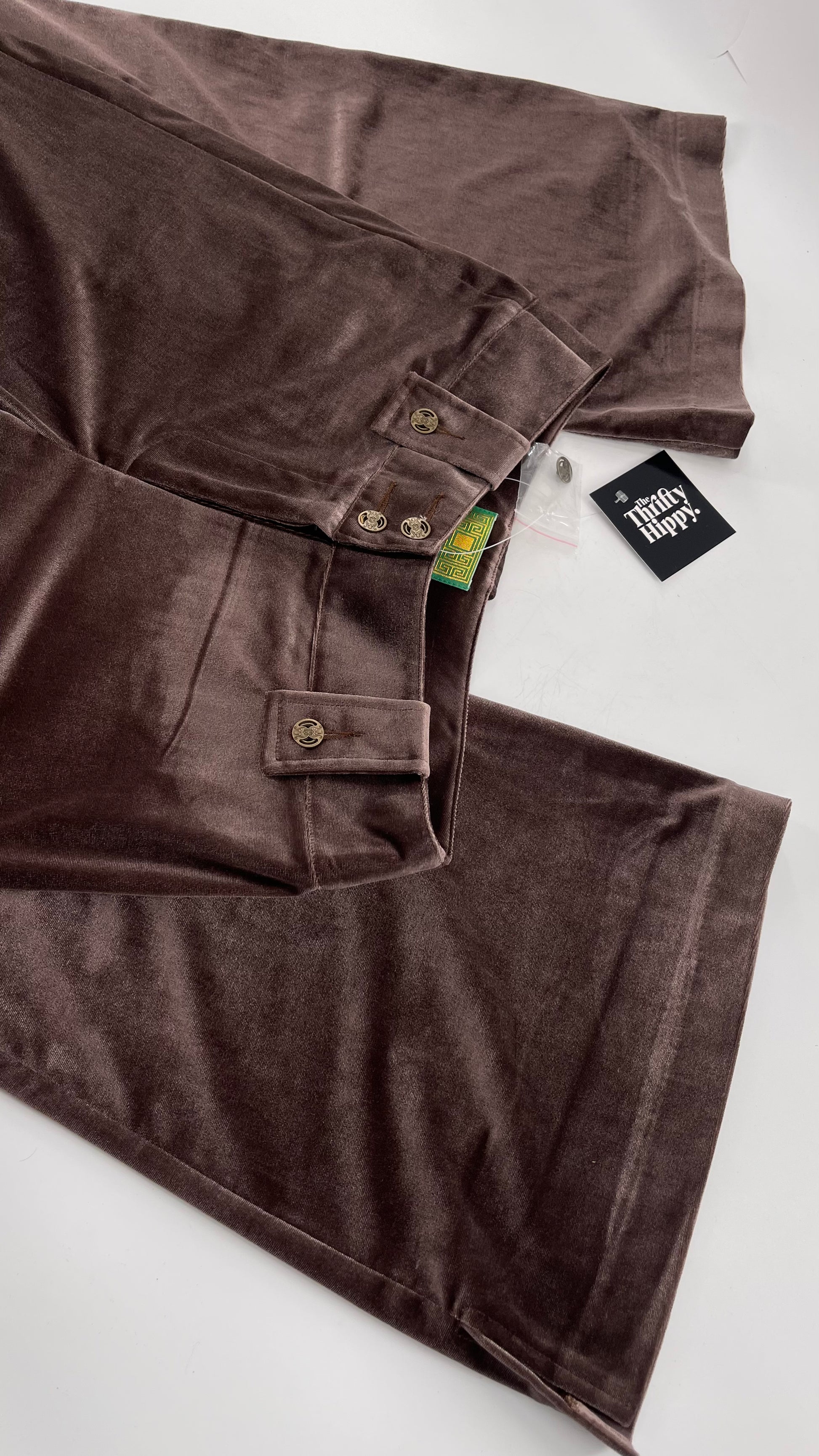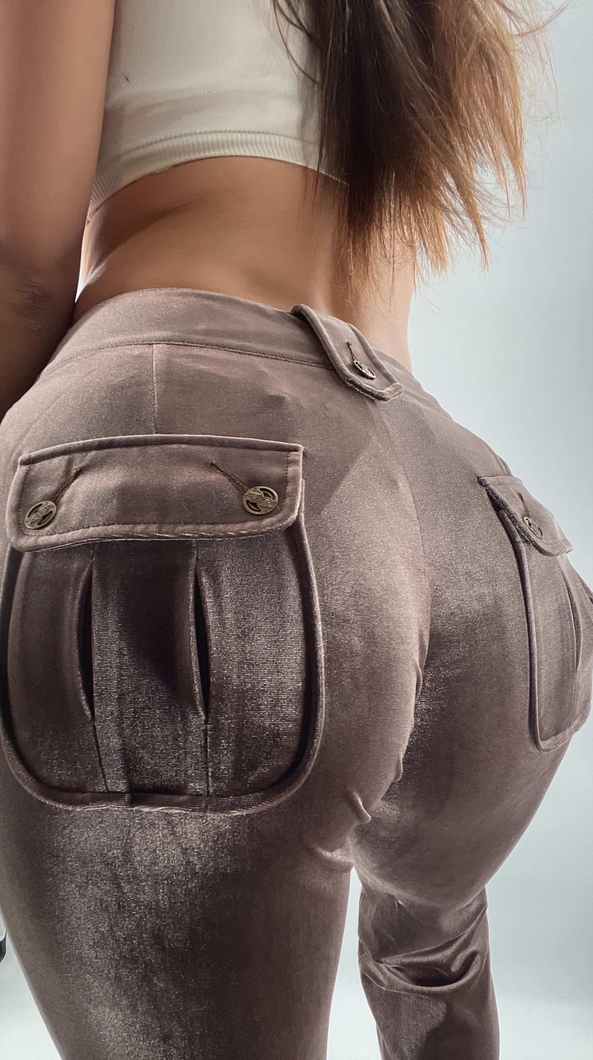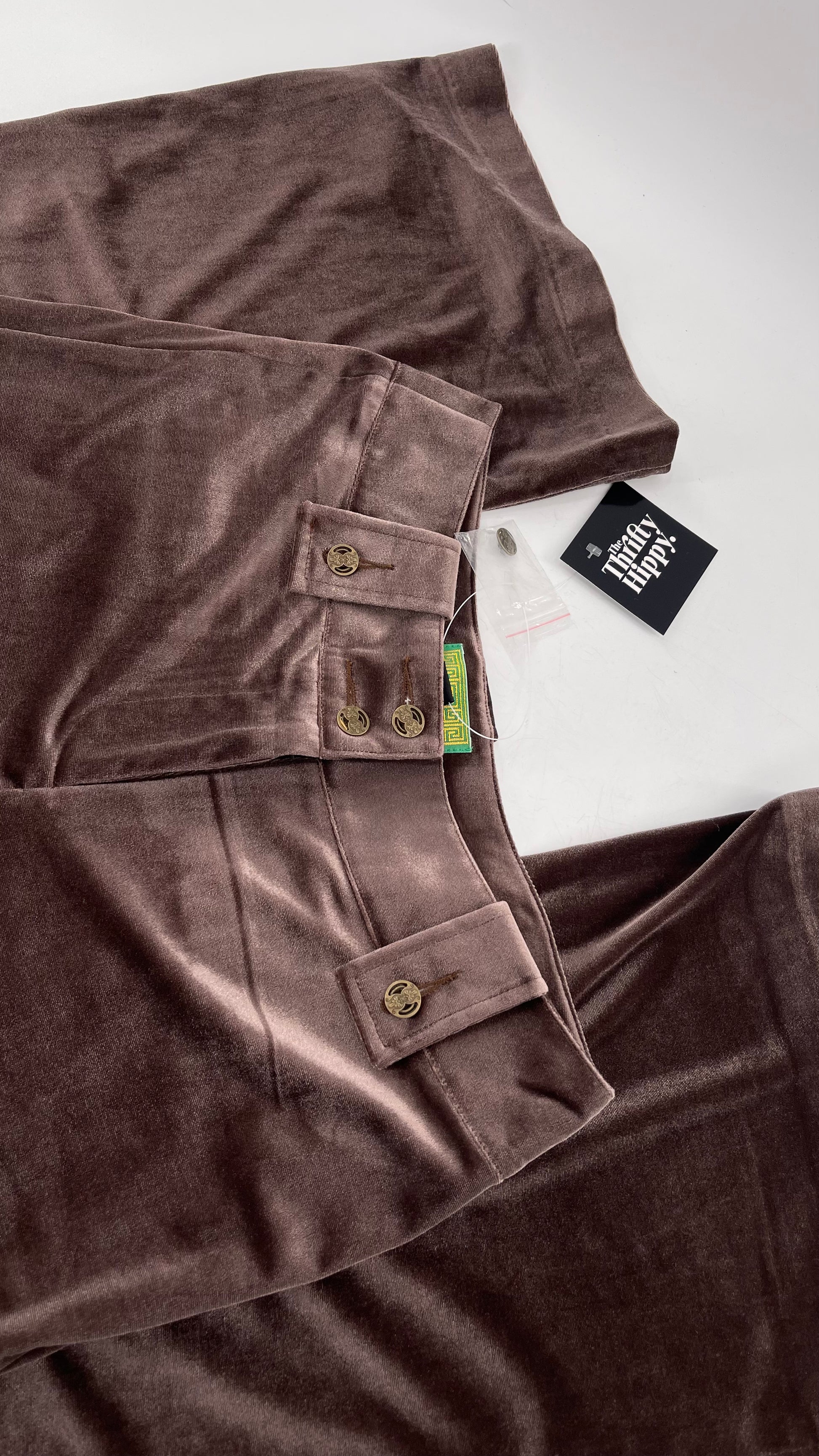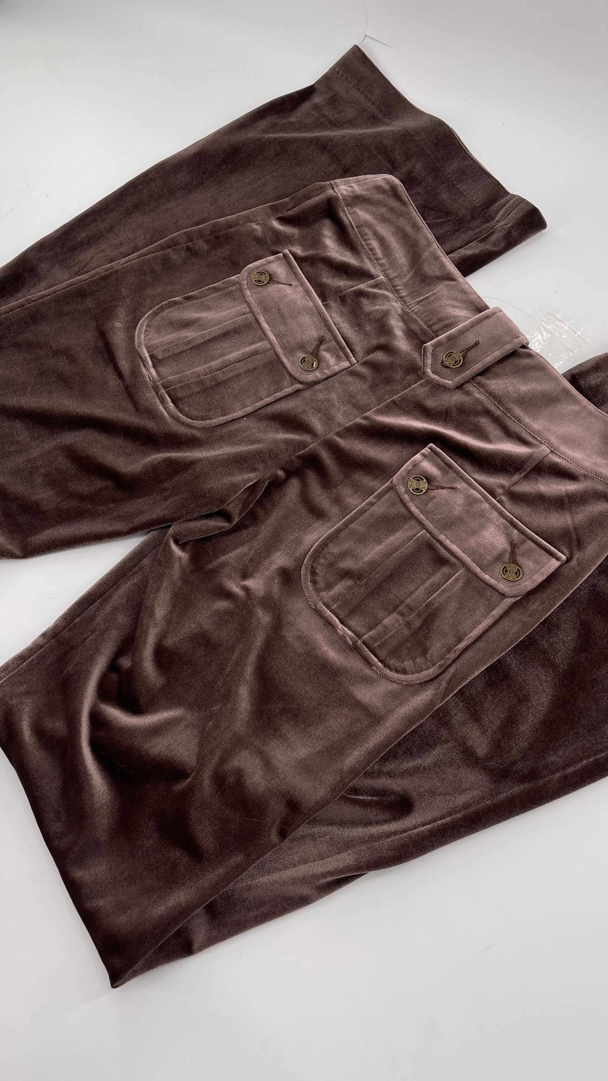 Vintage Tracy Porter brown velour low waisted yoga pants with back pockets, wide waist band and kick flare hem (W27L42.5)
