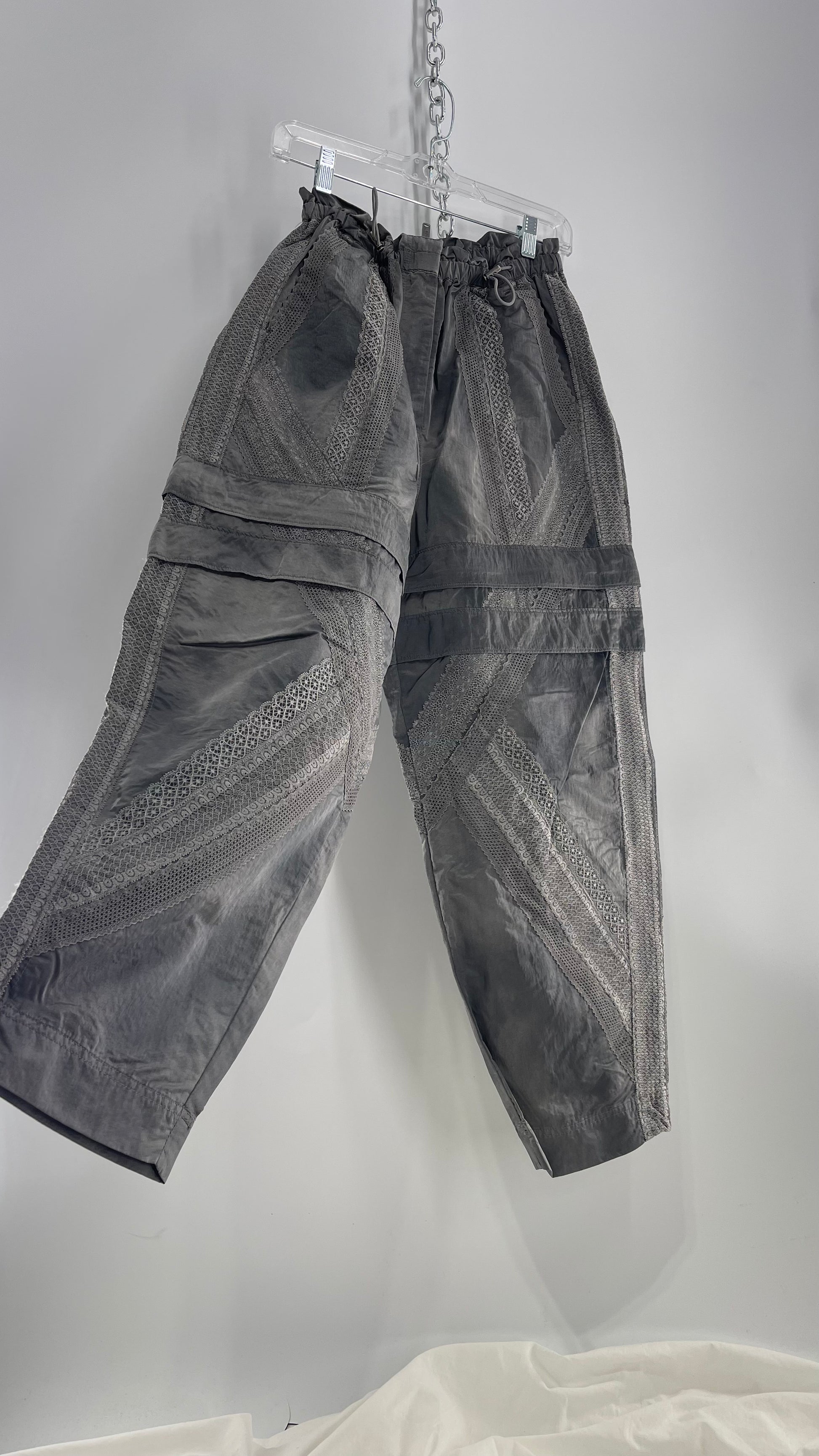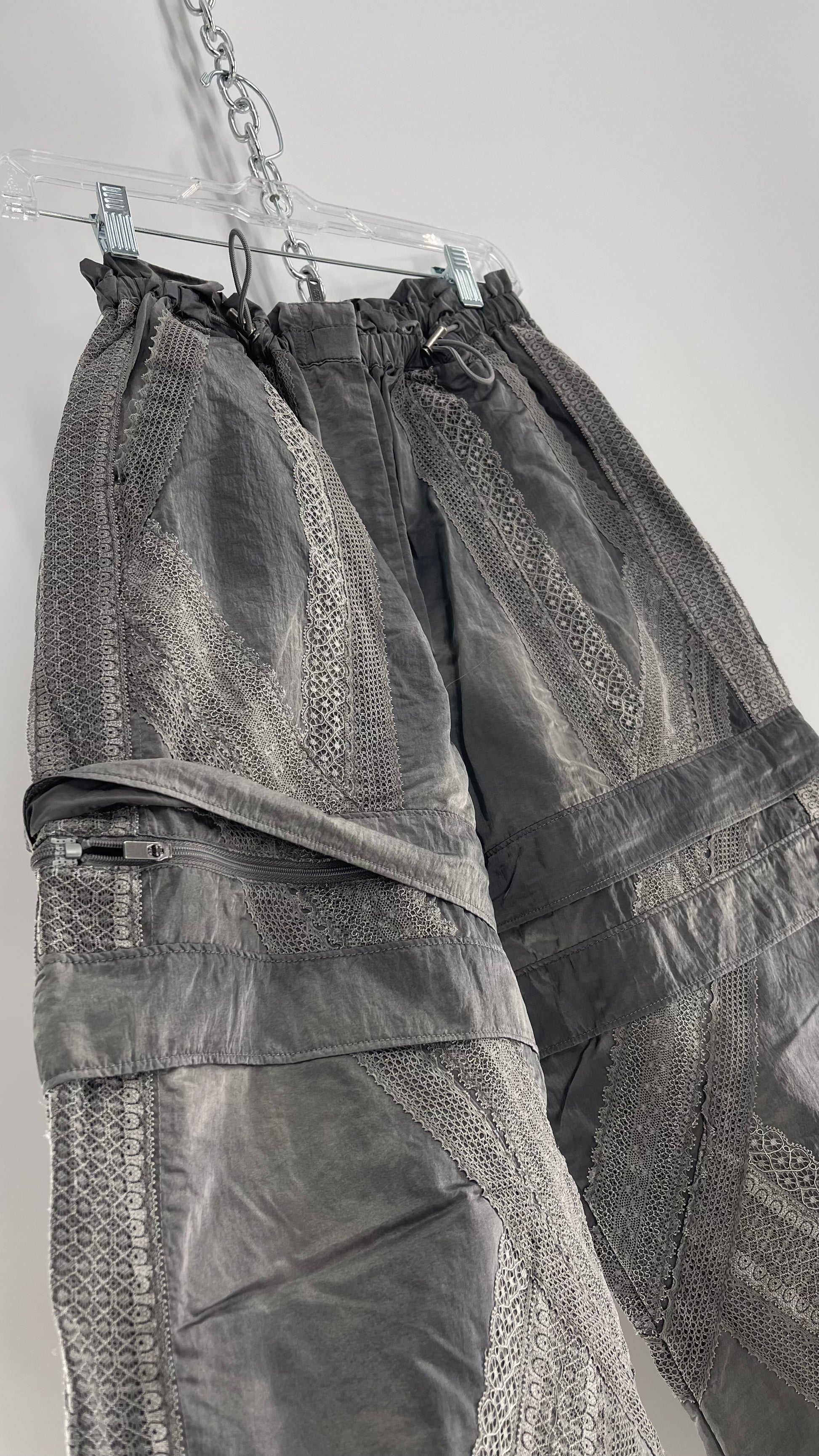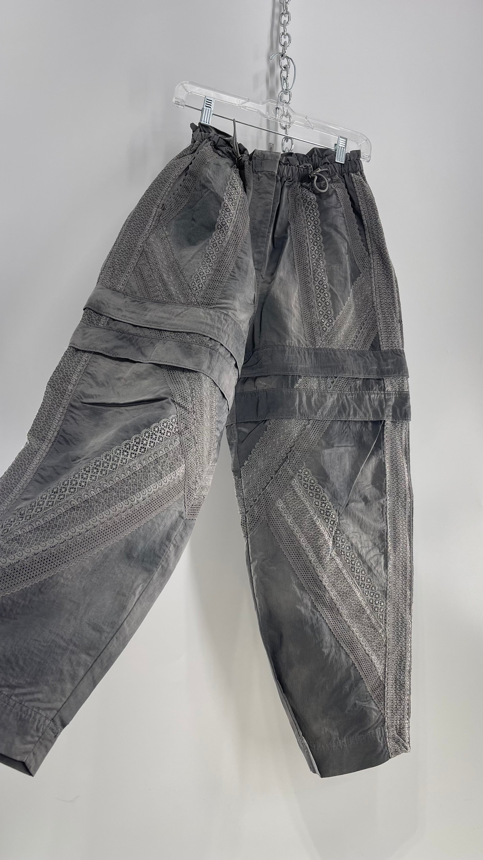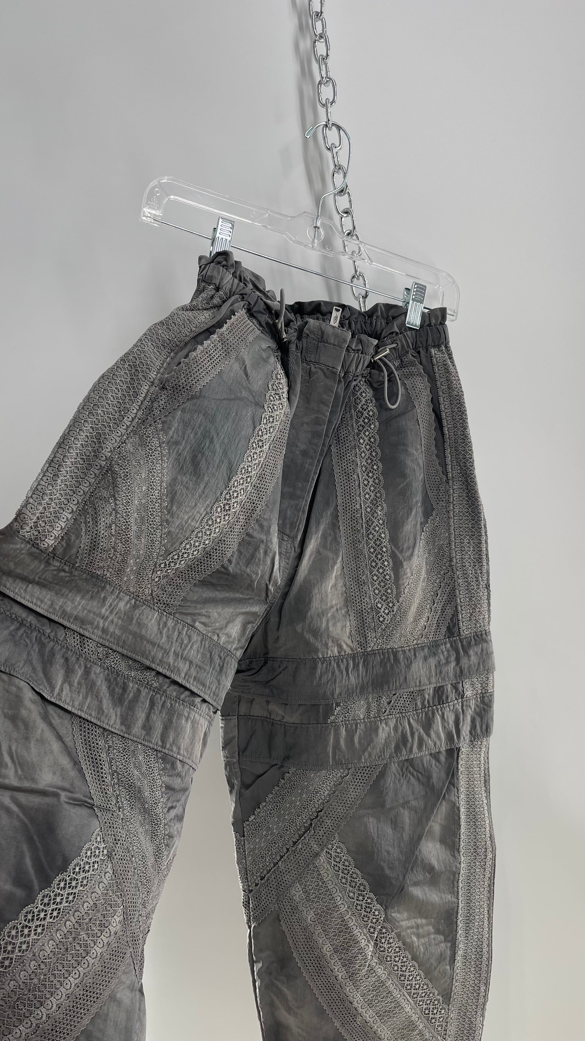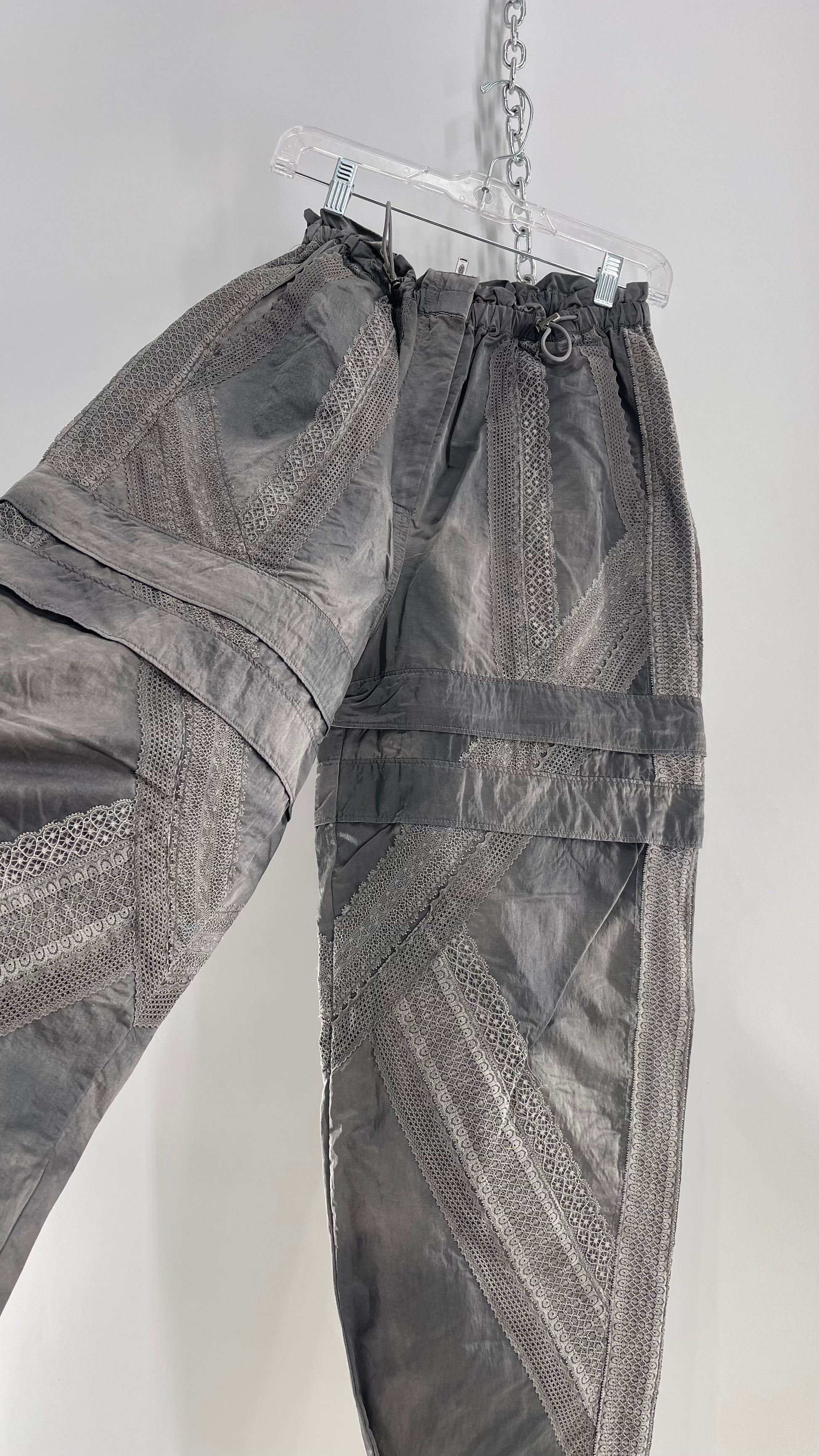 Free People Movement Grey Zip Off Shorts/Track Pant with Lace Details (S)