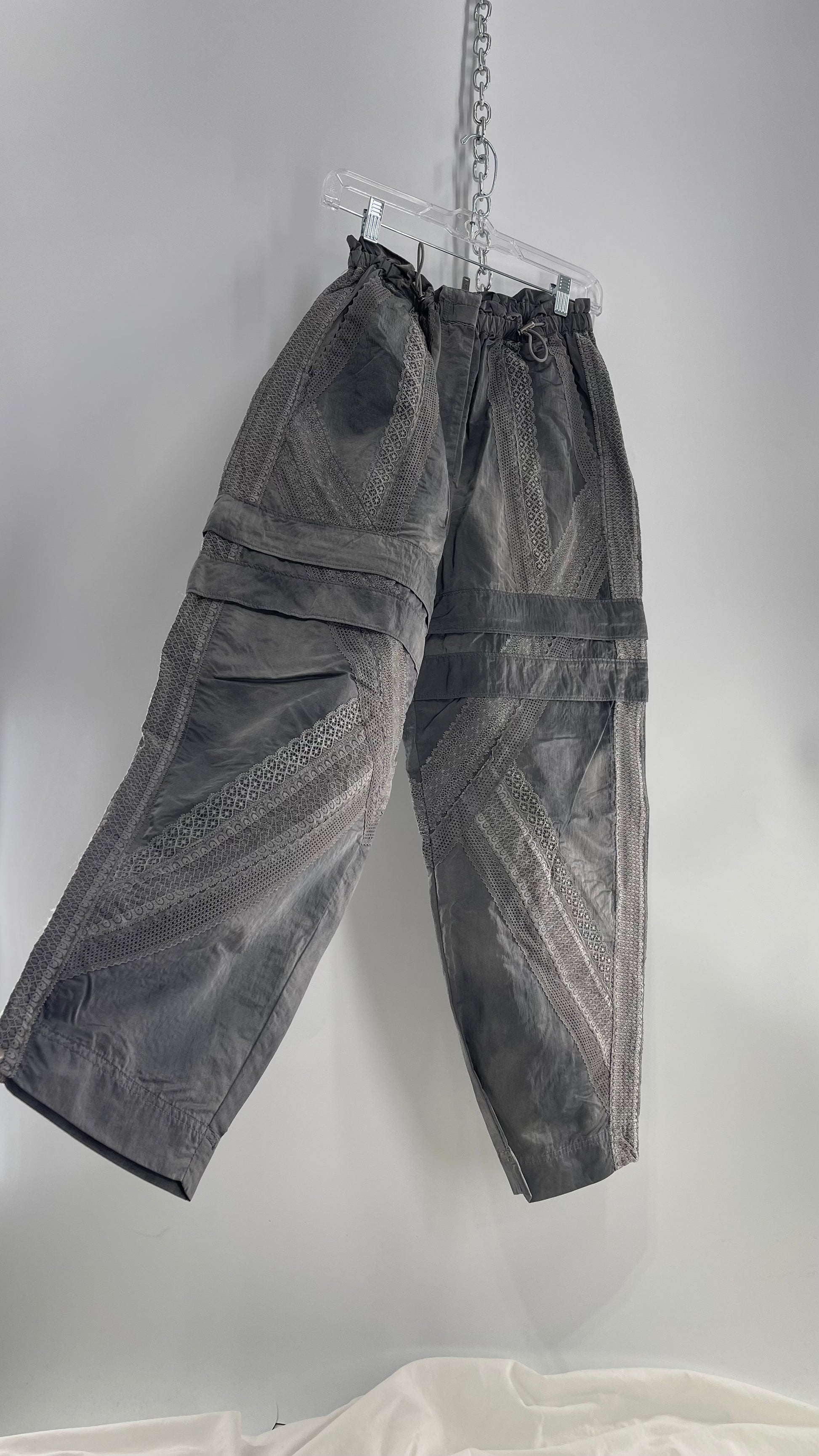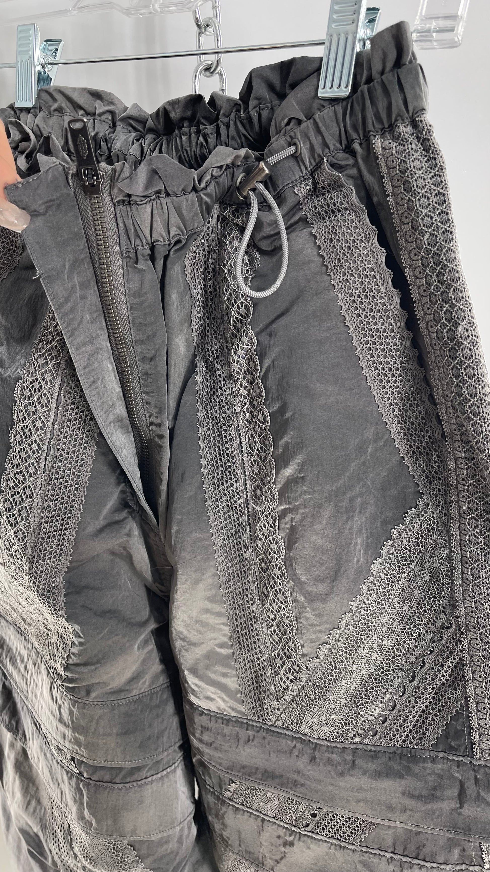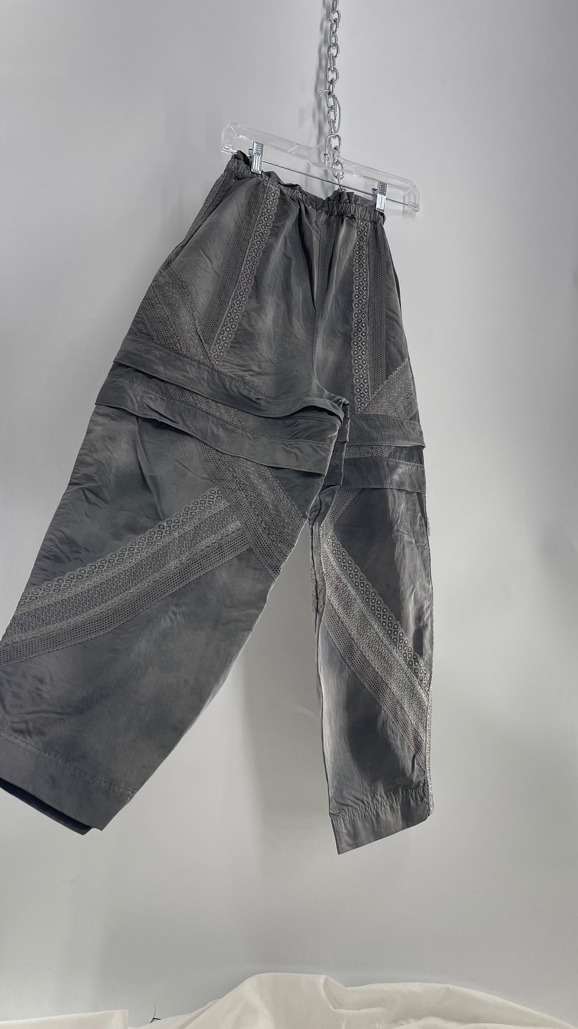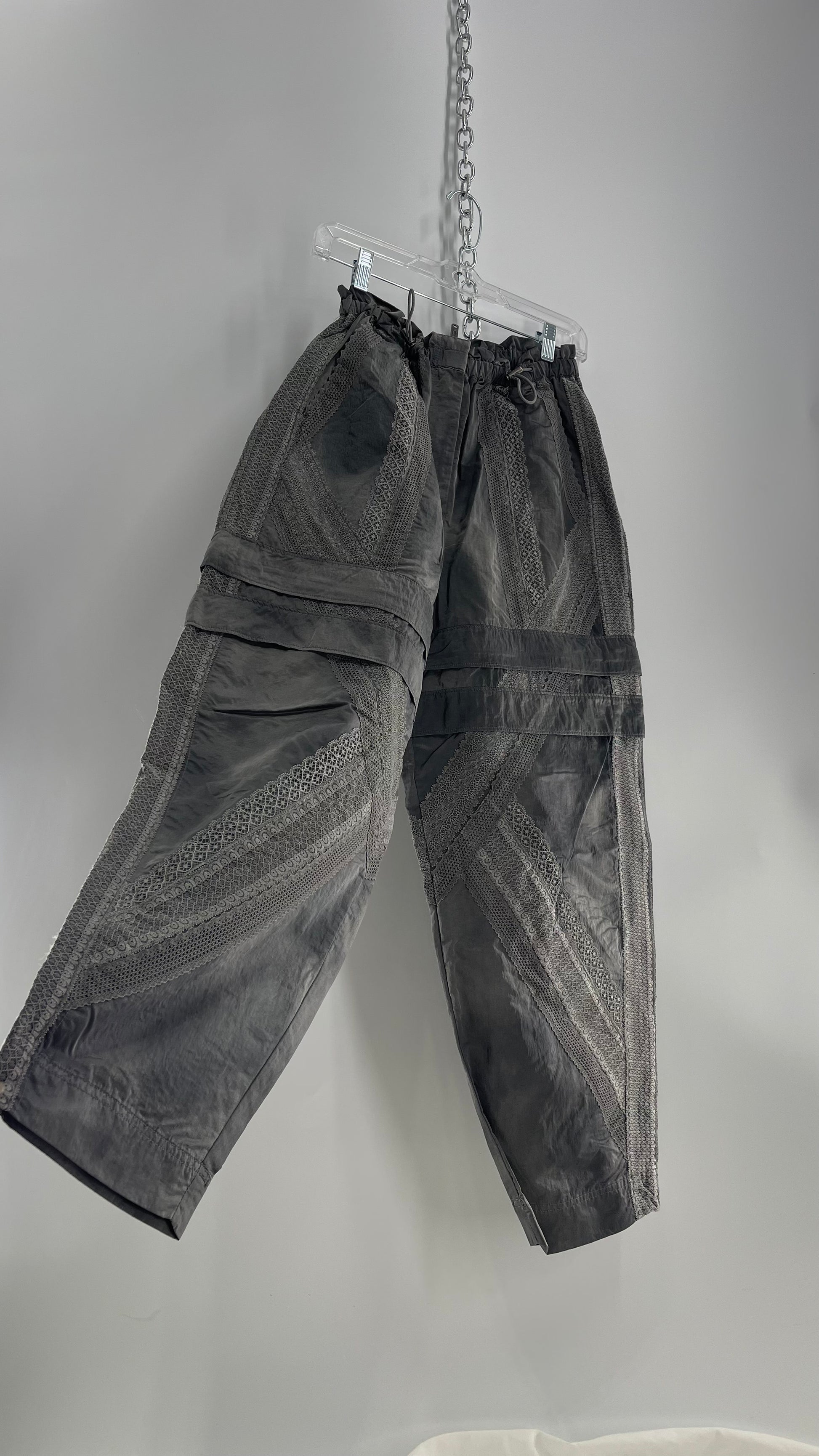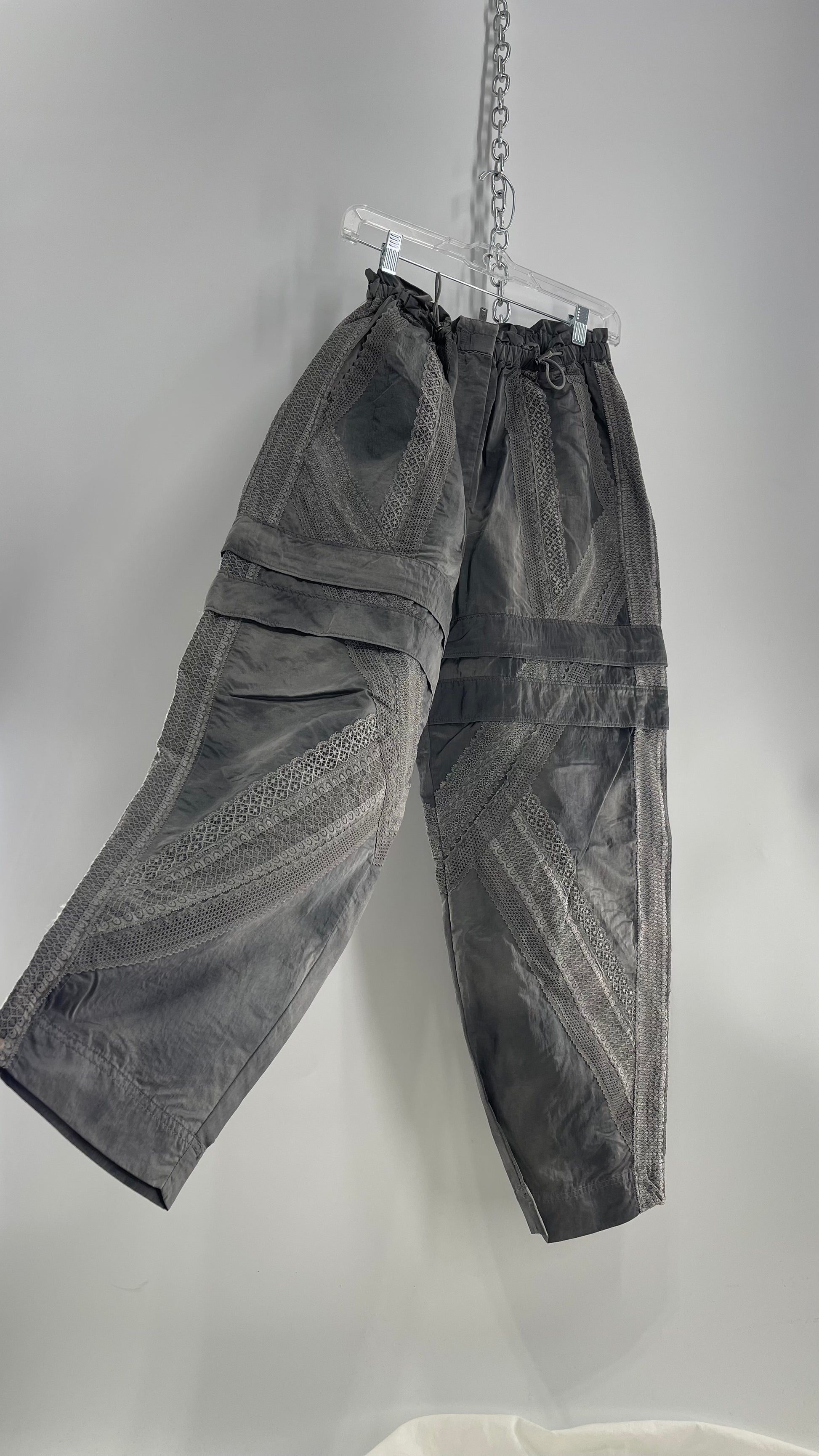 Free People Movement Grey Zip Off Shorts/Track Pant with Lace Details (S)