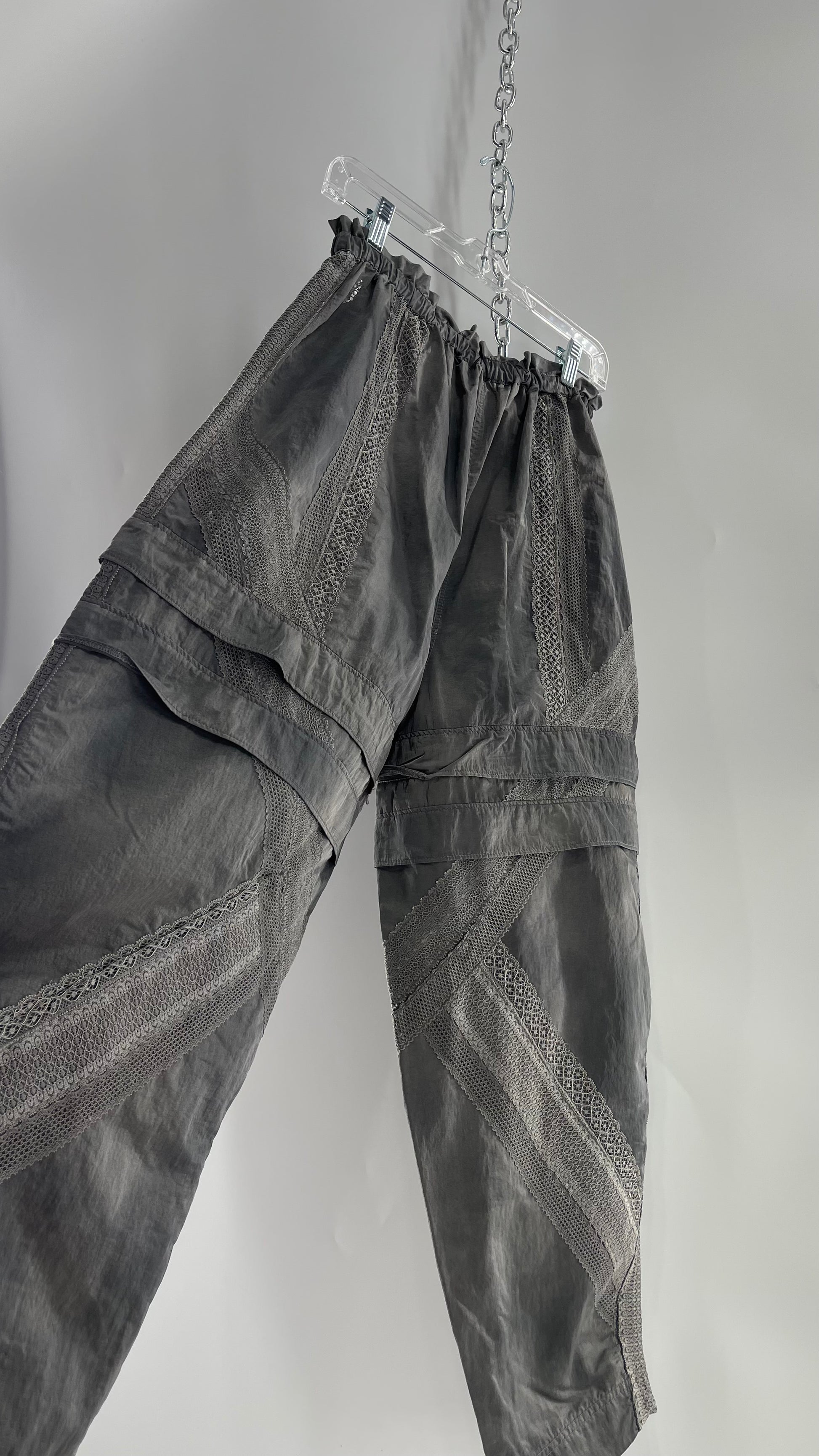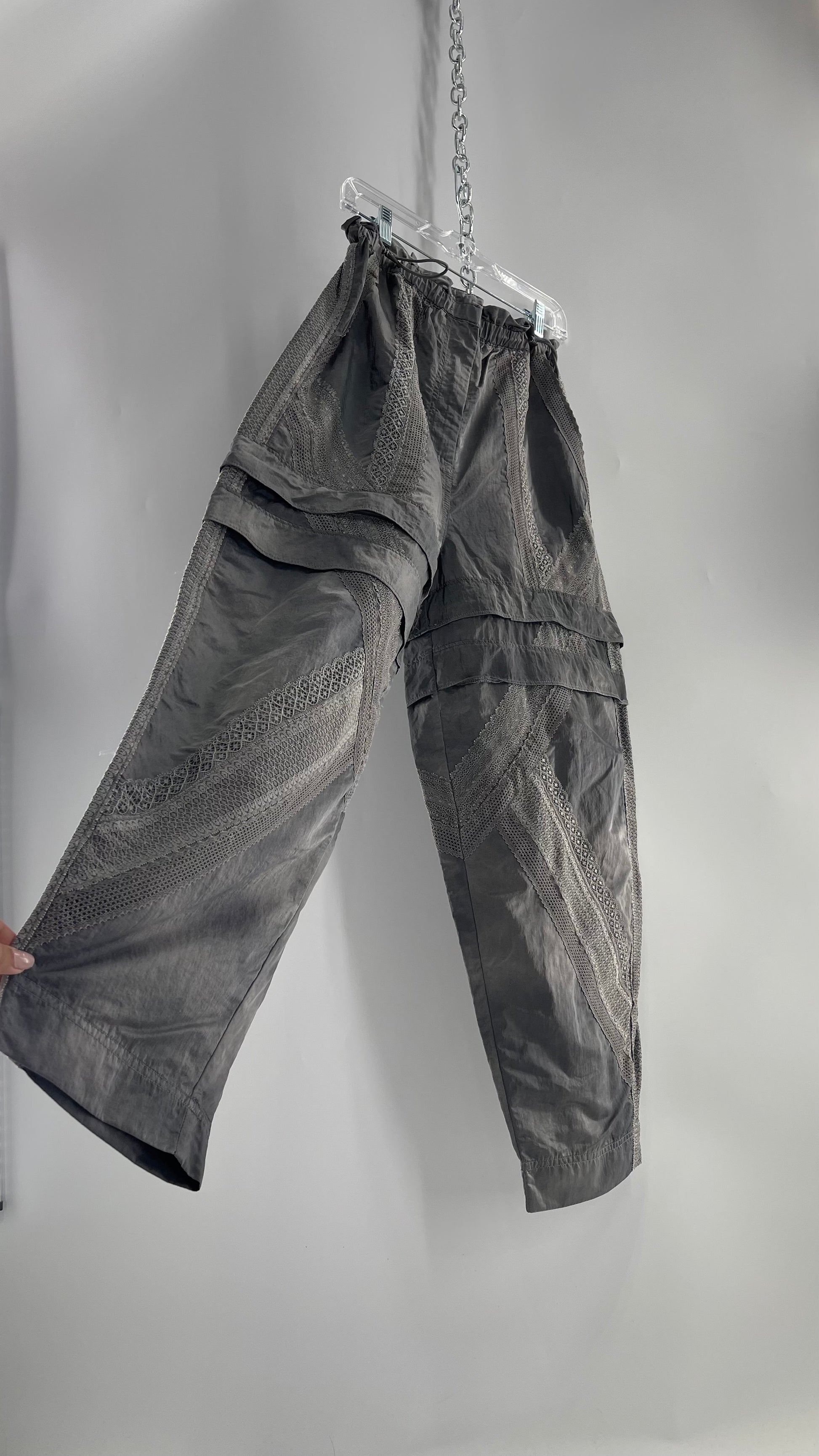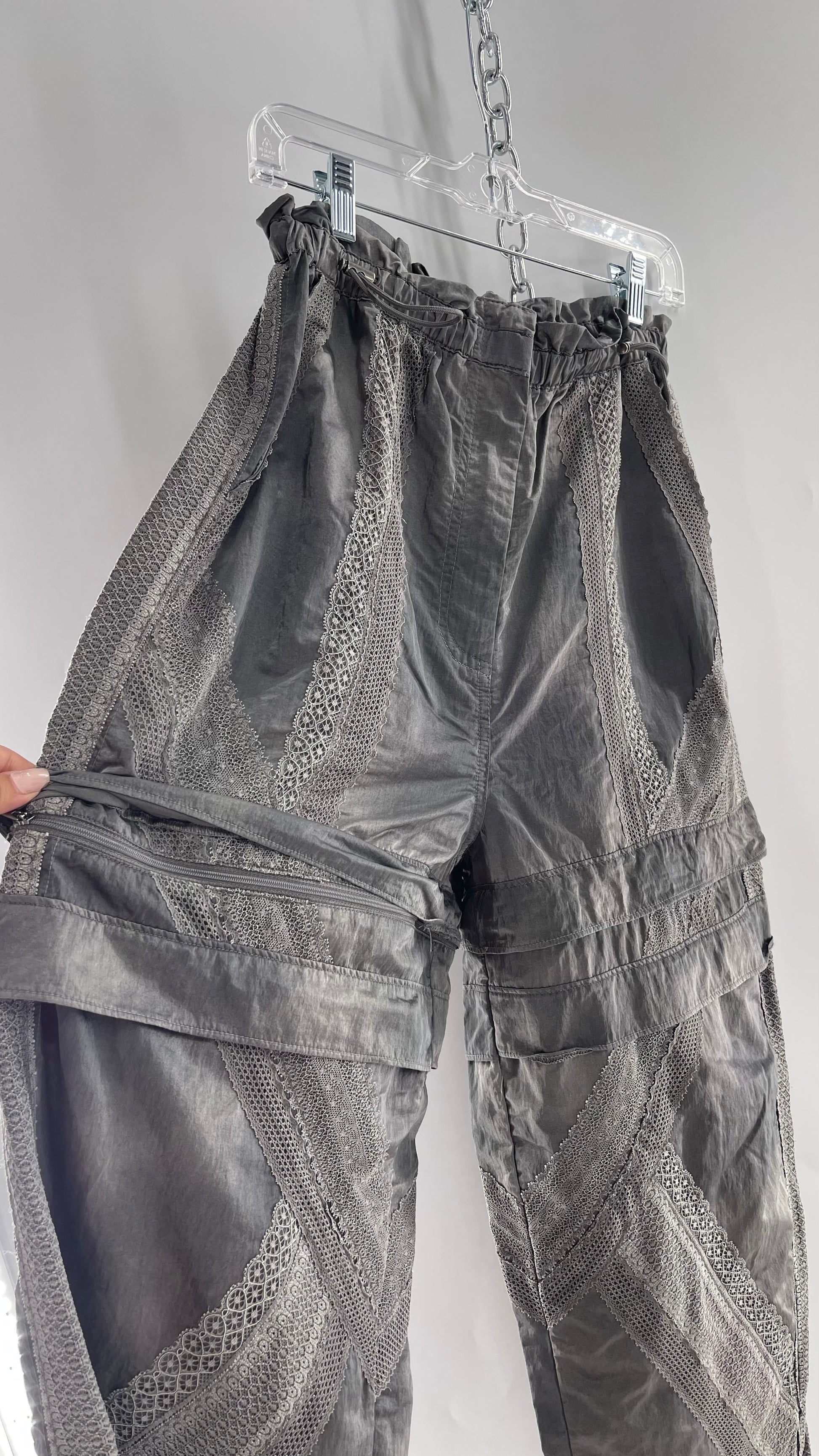 Free People Movement Grey Zip Off Shorts/Track Pant with Lace Details (Medium)