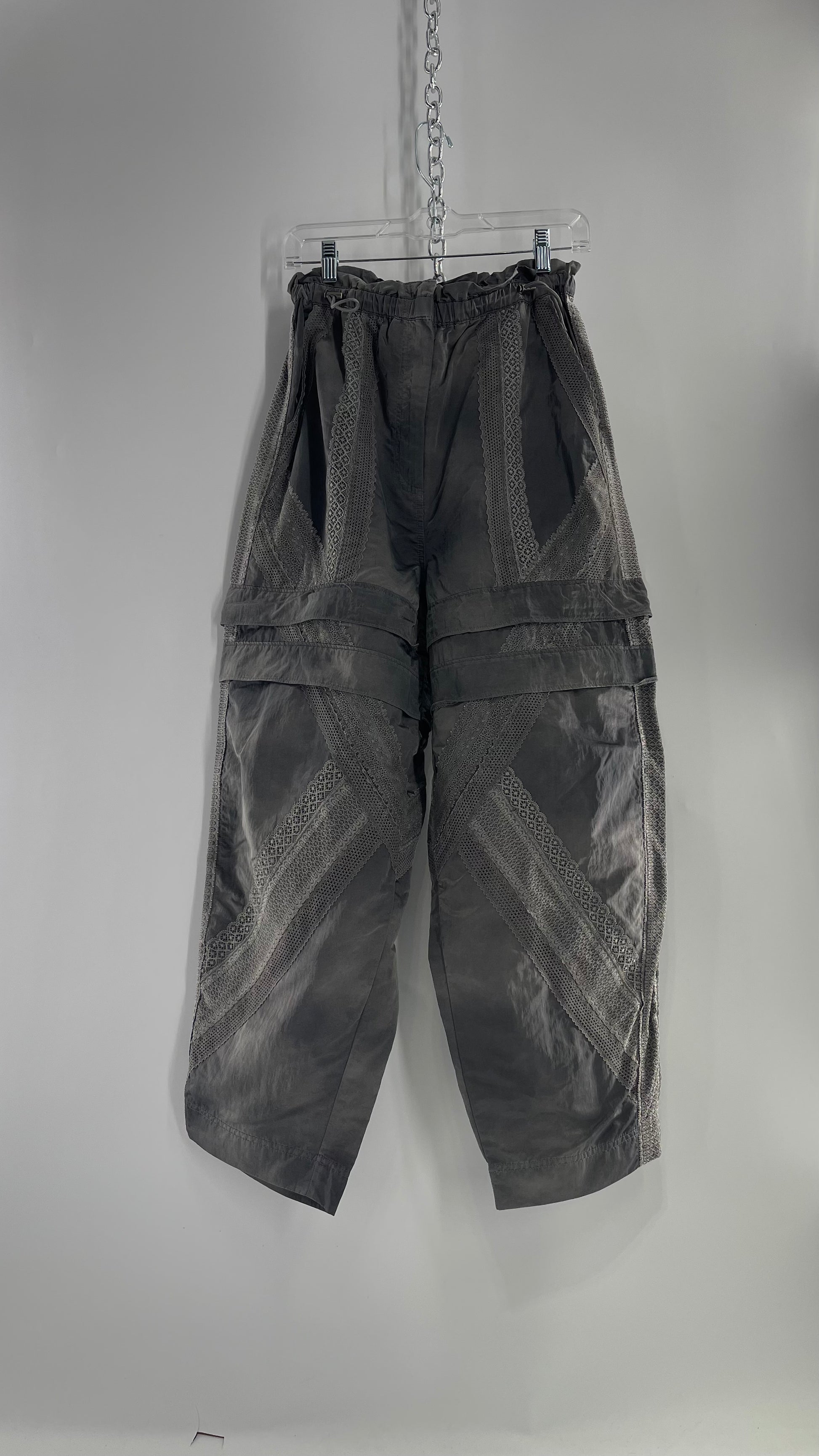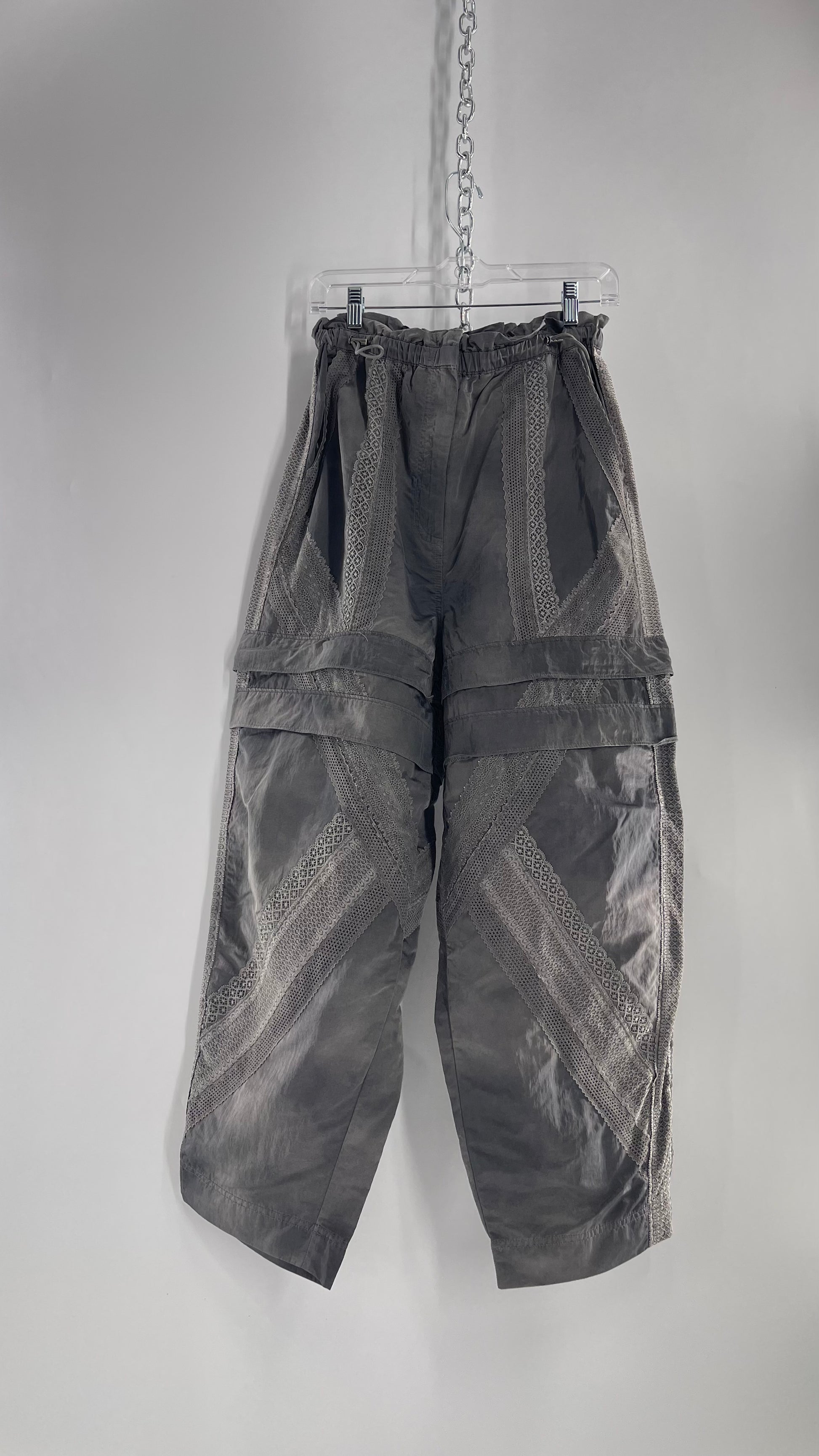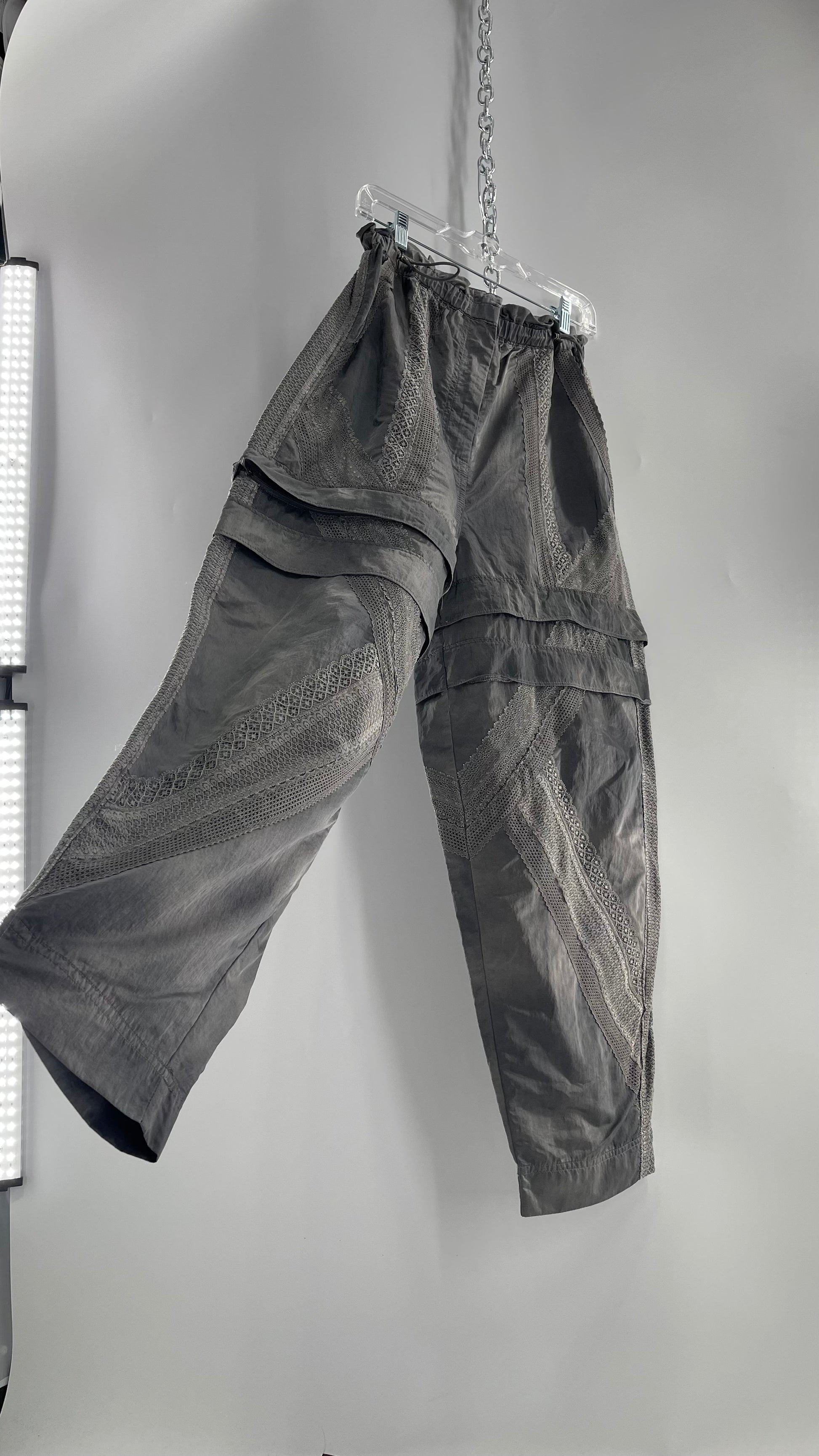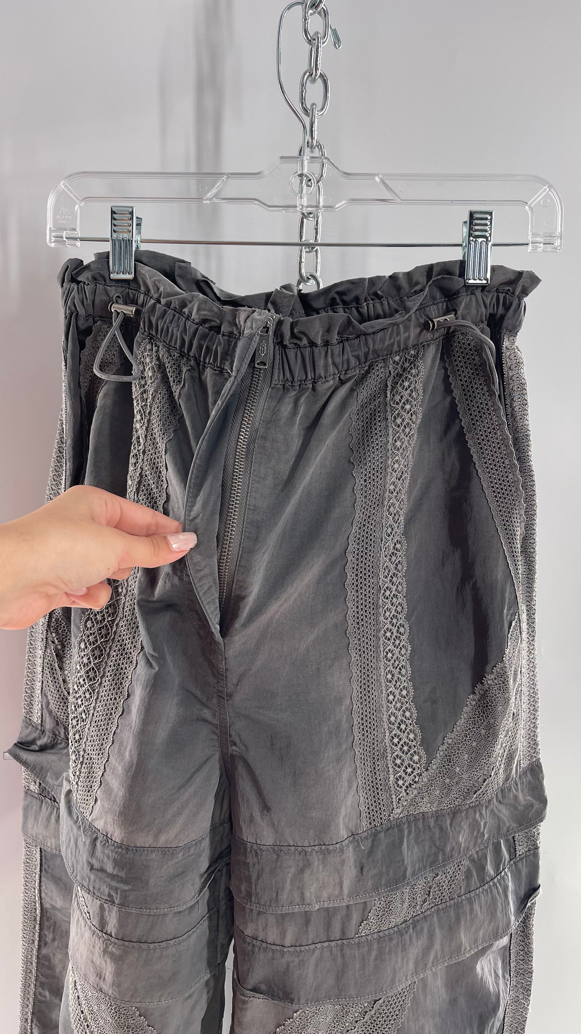 Free People Movement Grey Zip Off Shorts/Track Pant with Lace Details (Medium)