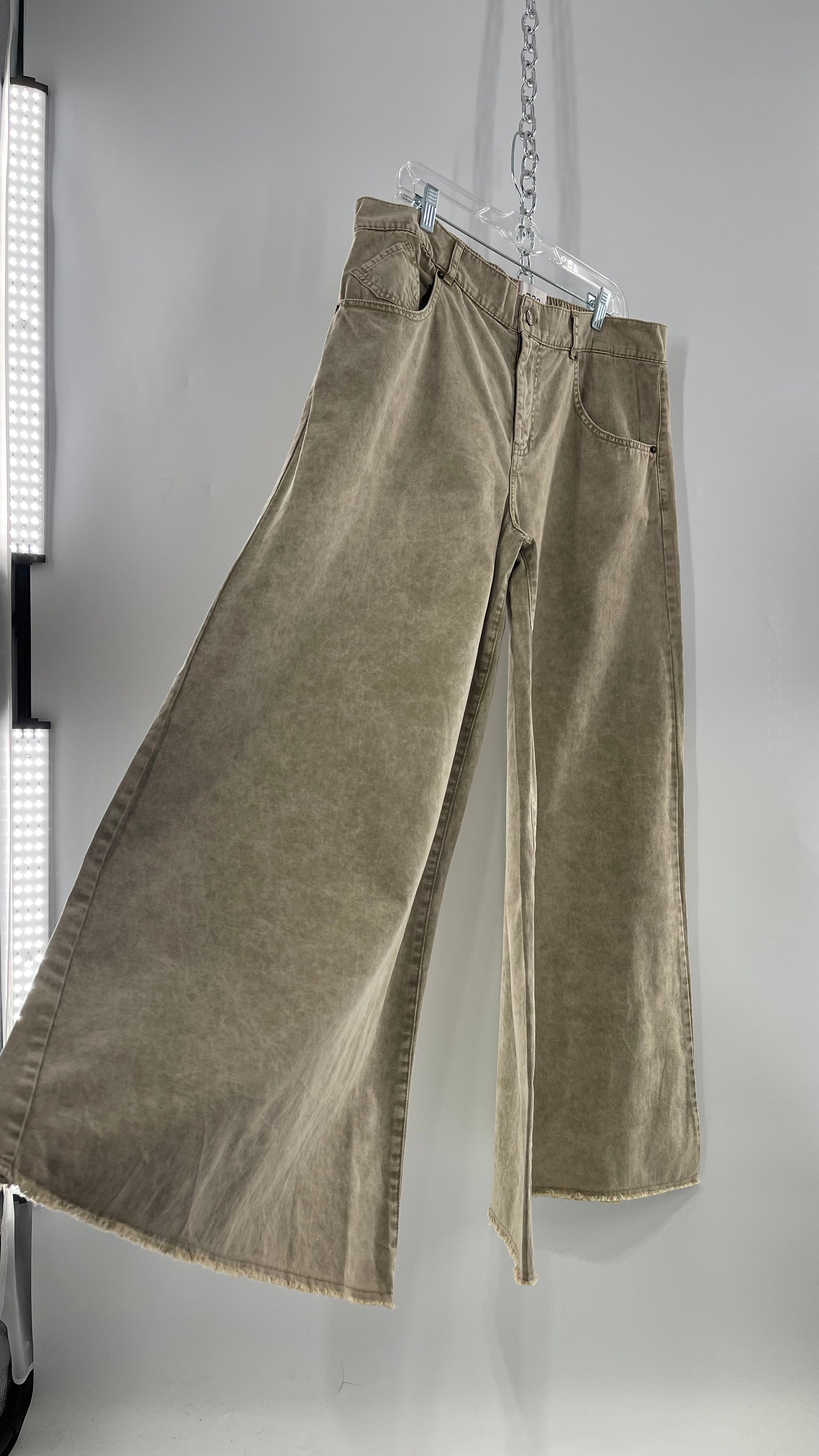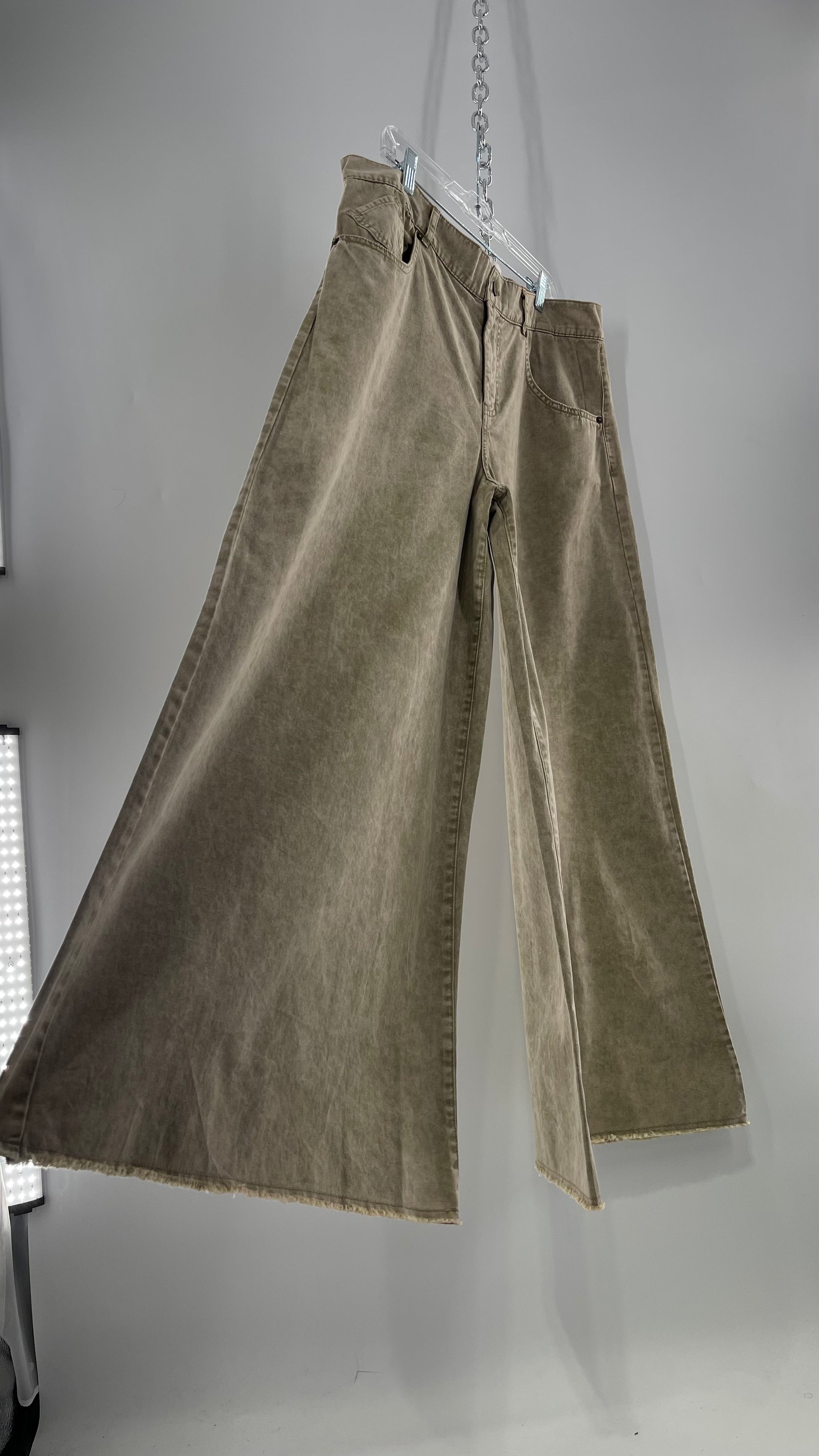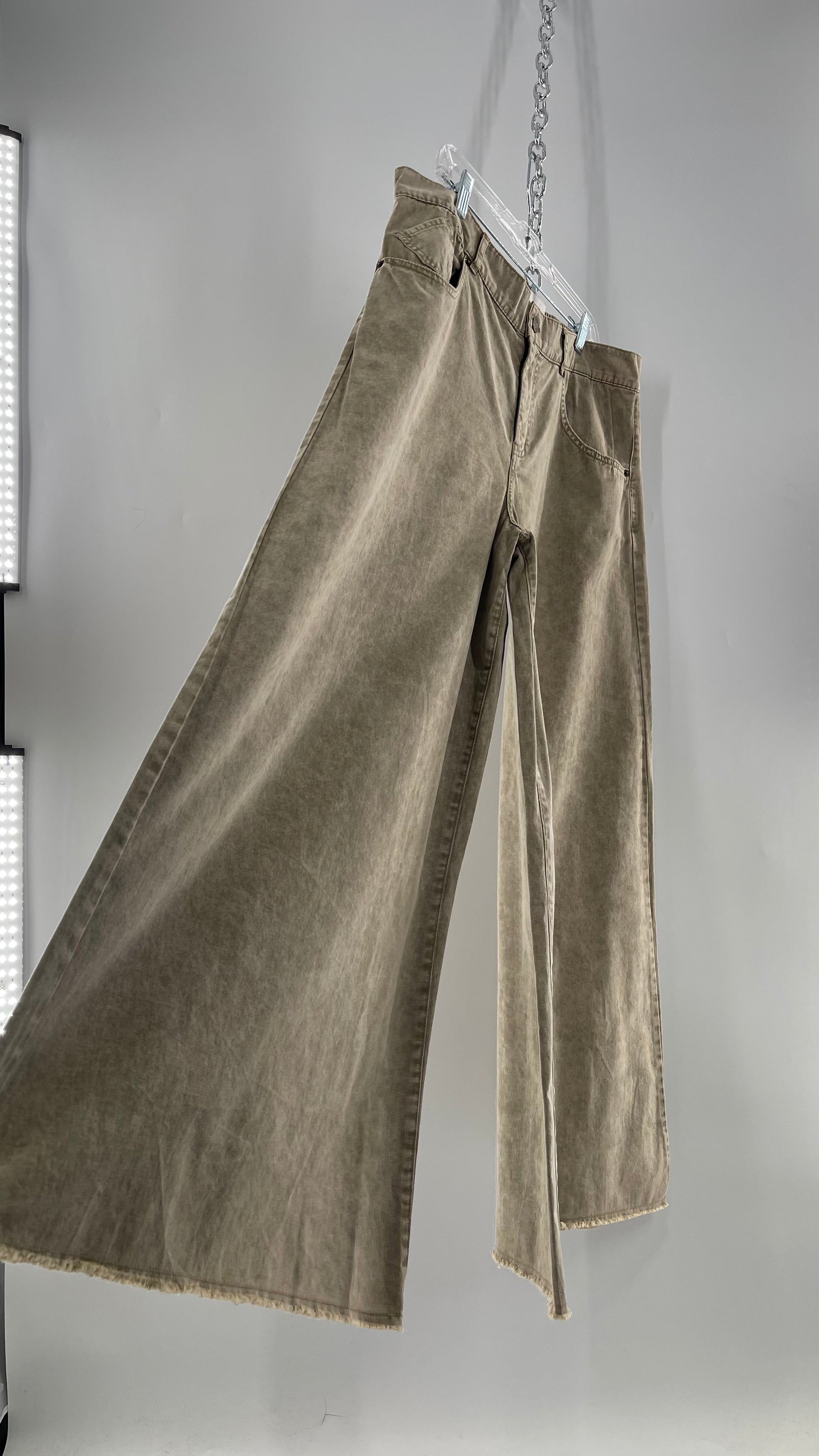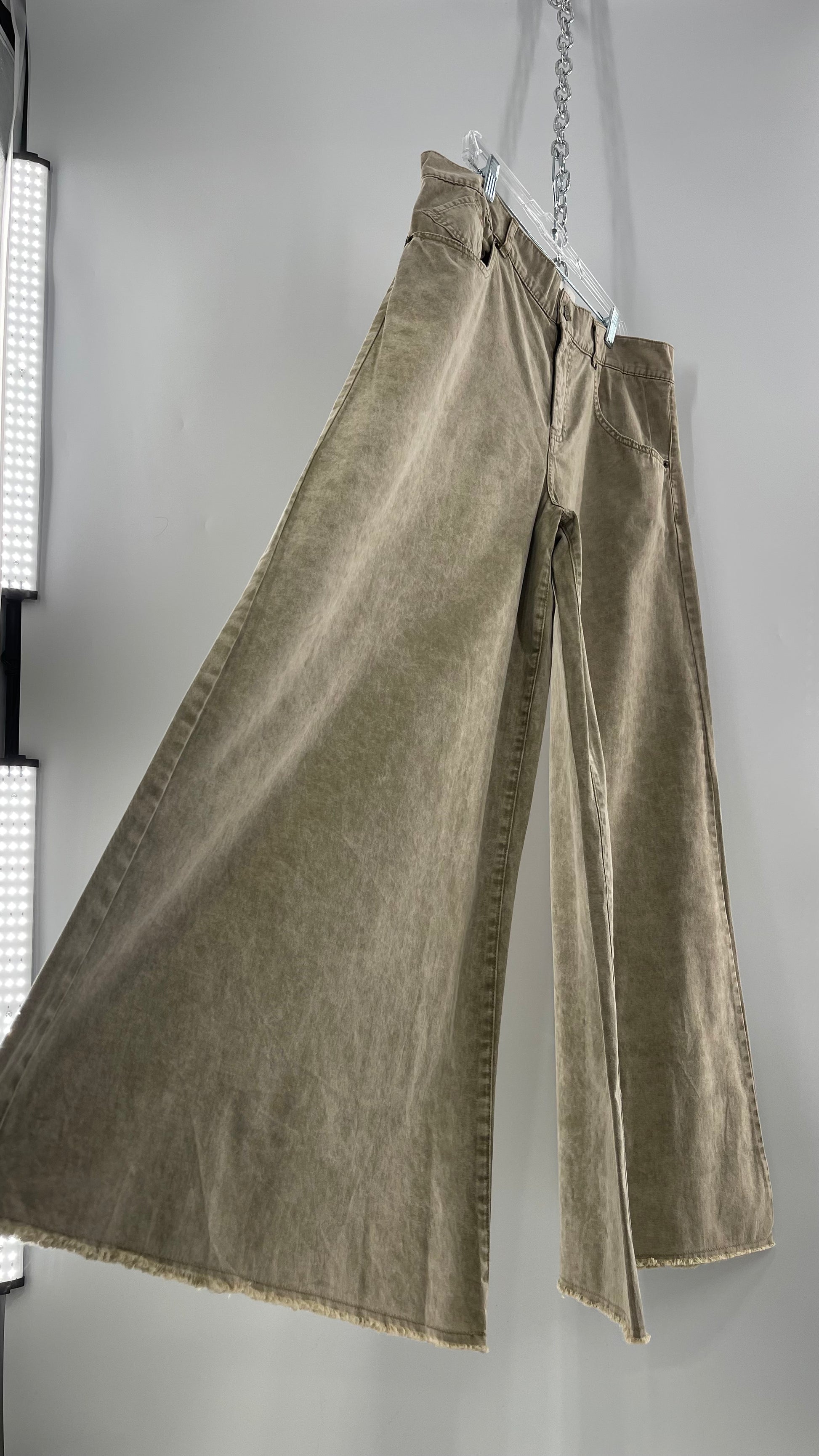 BDG Tan Ultra Wide Leg Acid Wash Jeans with Raw Edge Hem (32)