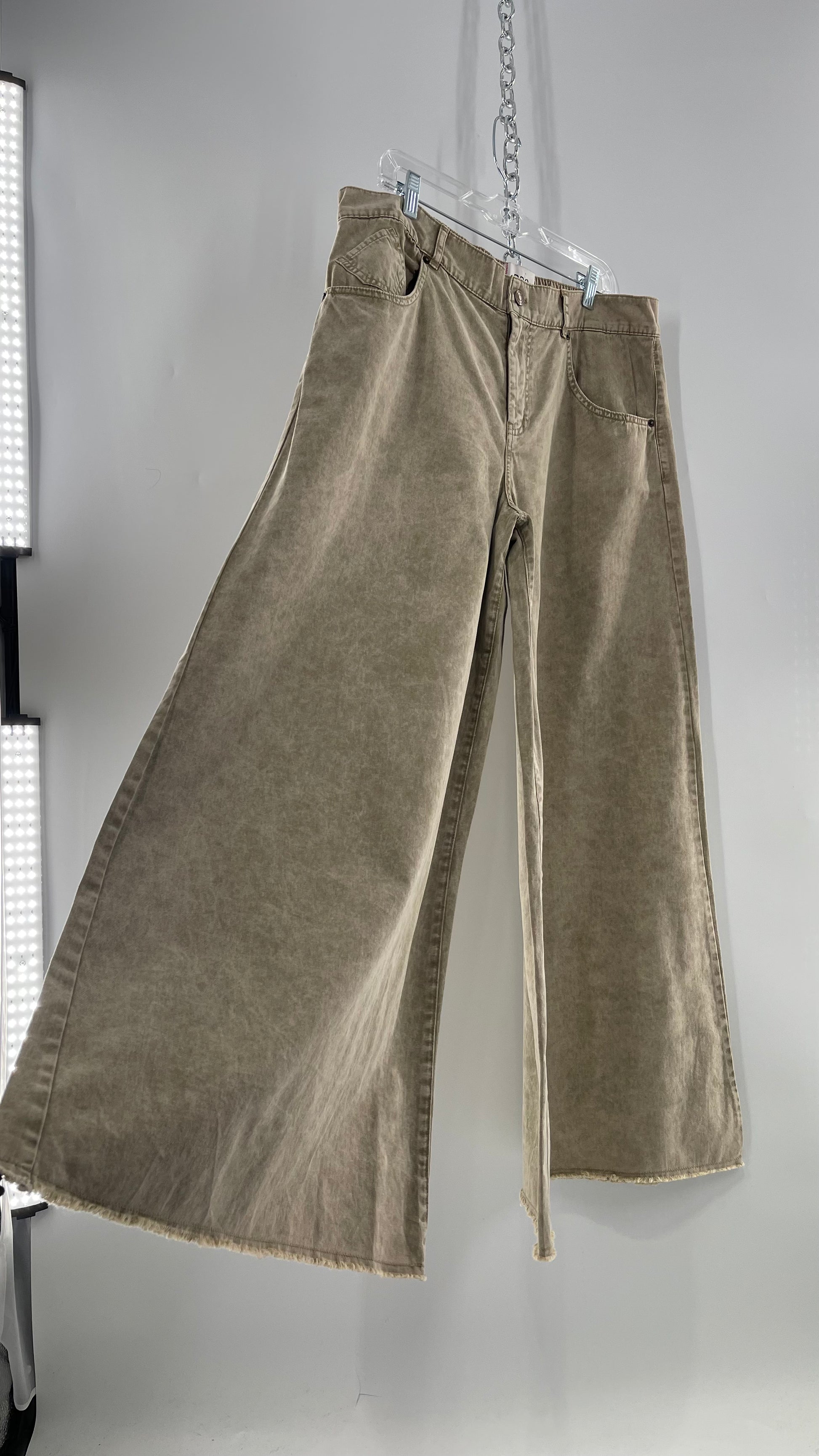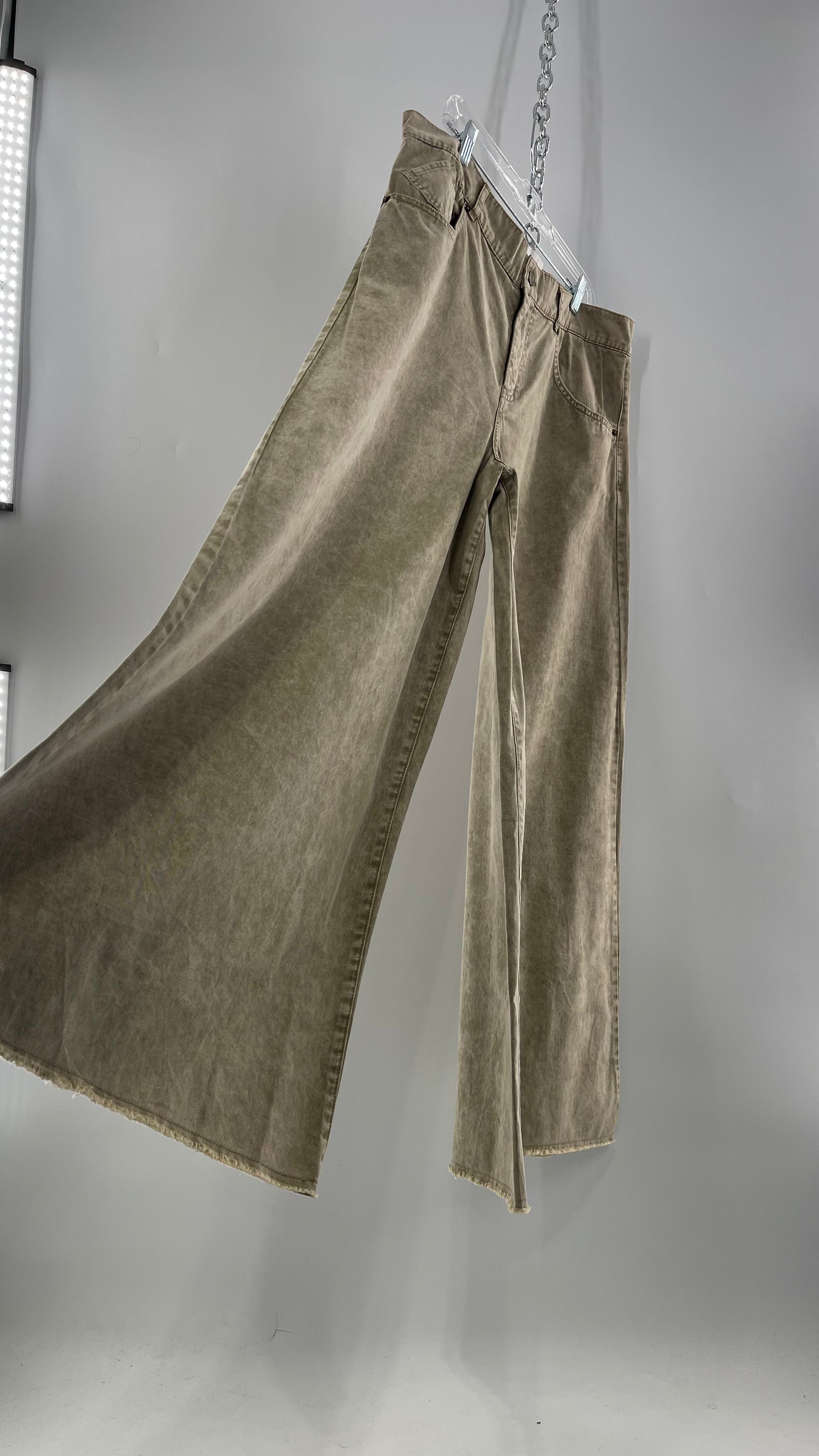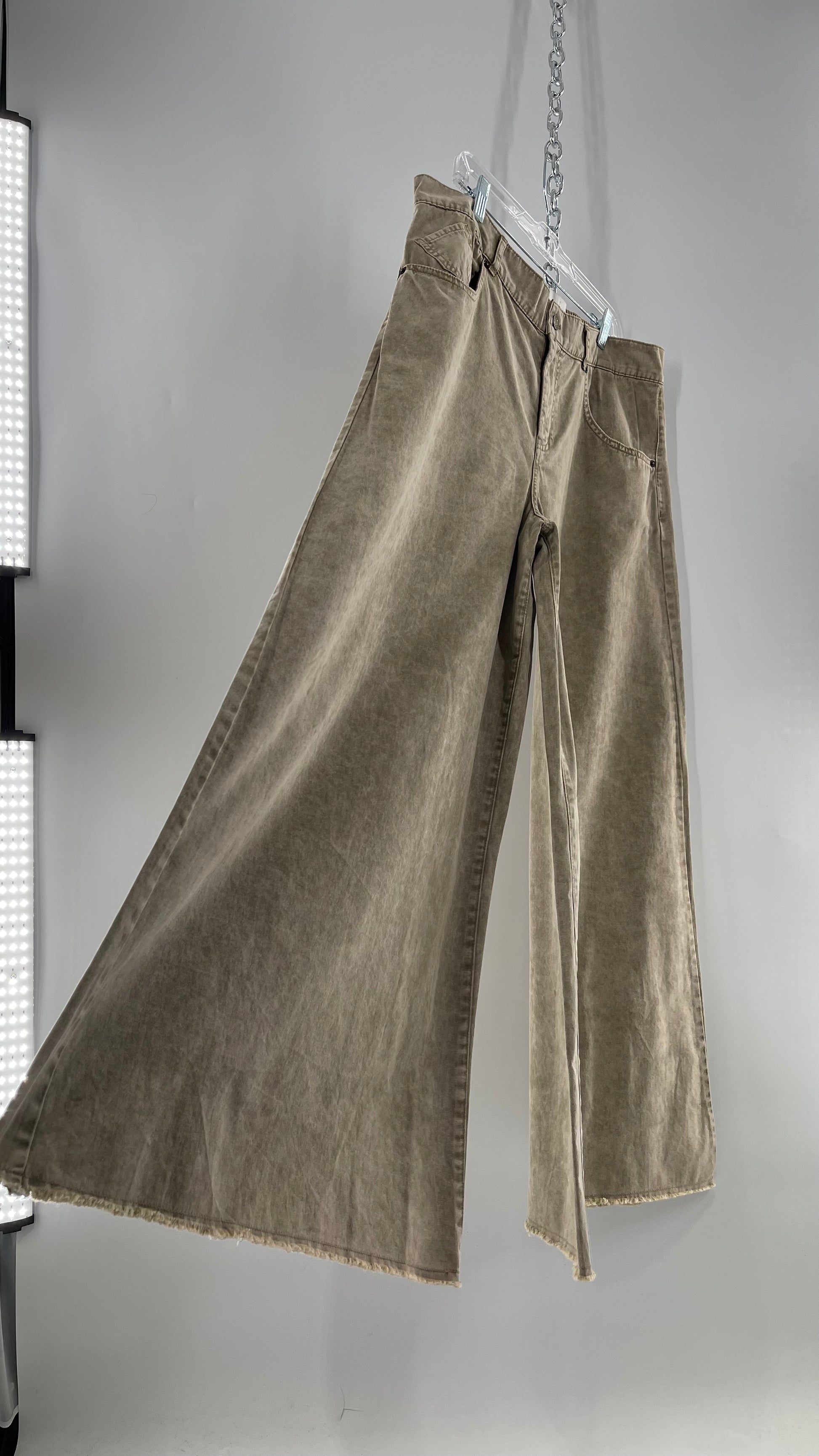 BDG Tan Ultra Wide Leg Acid Wash Jeans with Raw Edge Hem (32)
