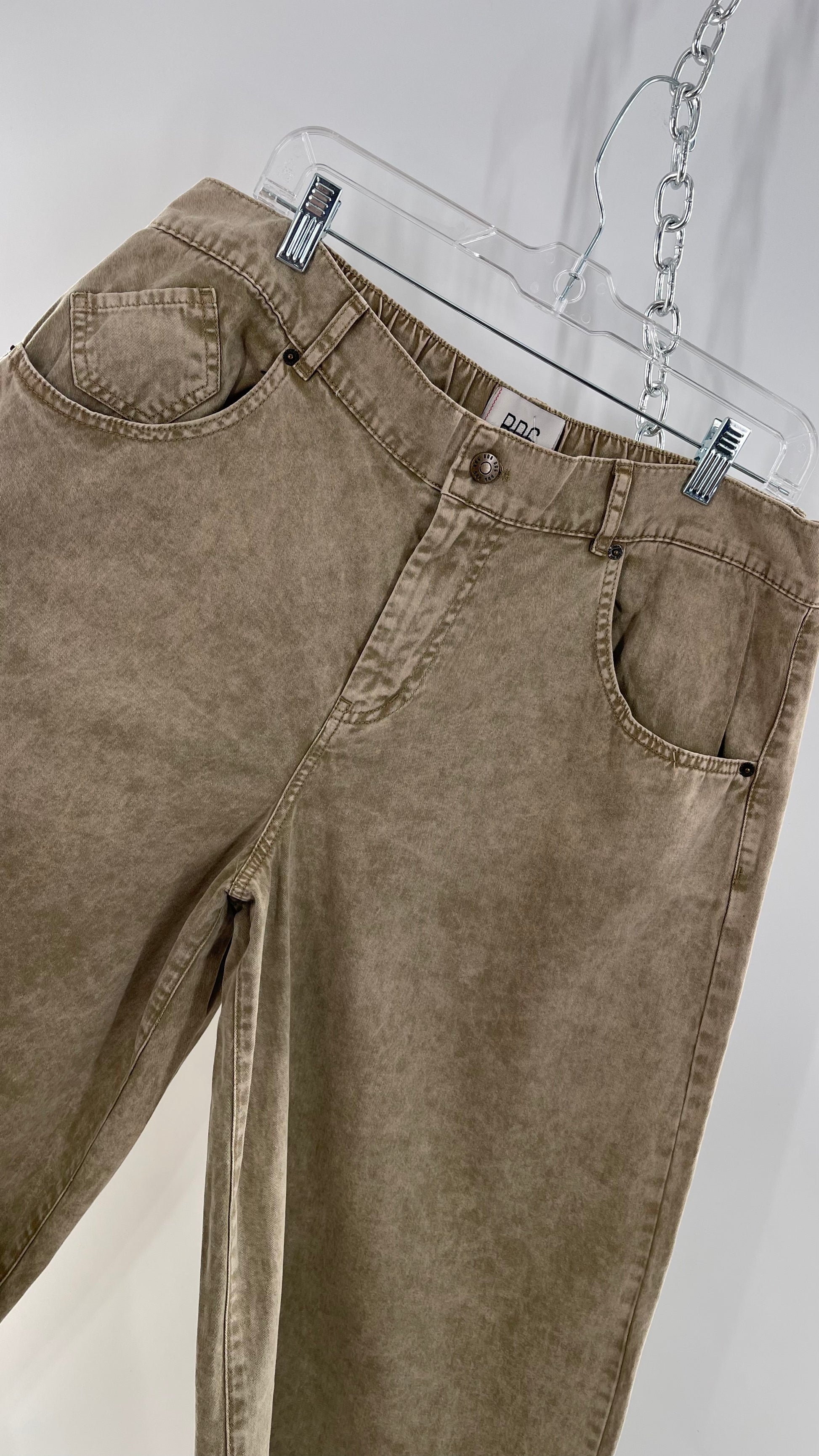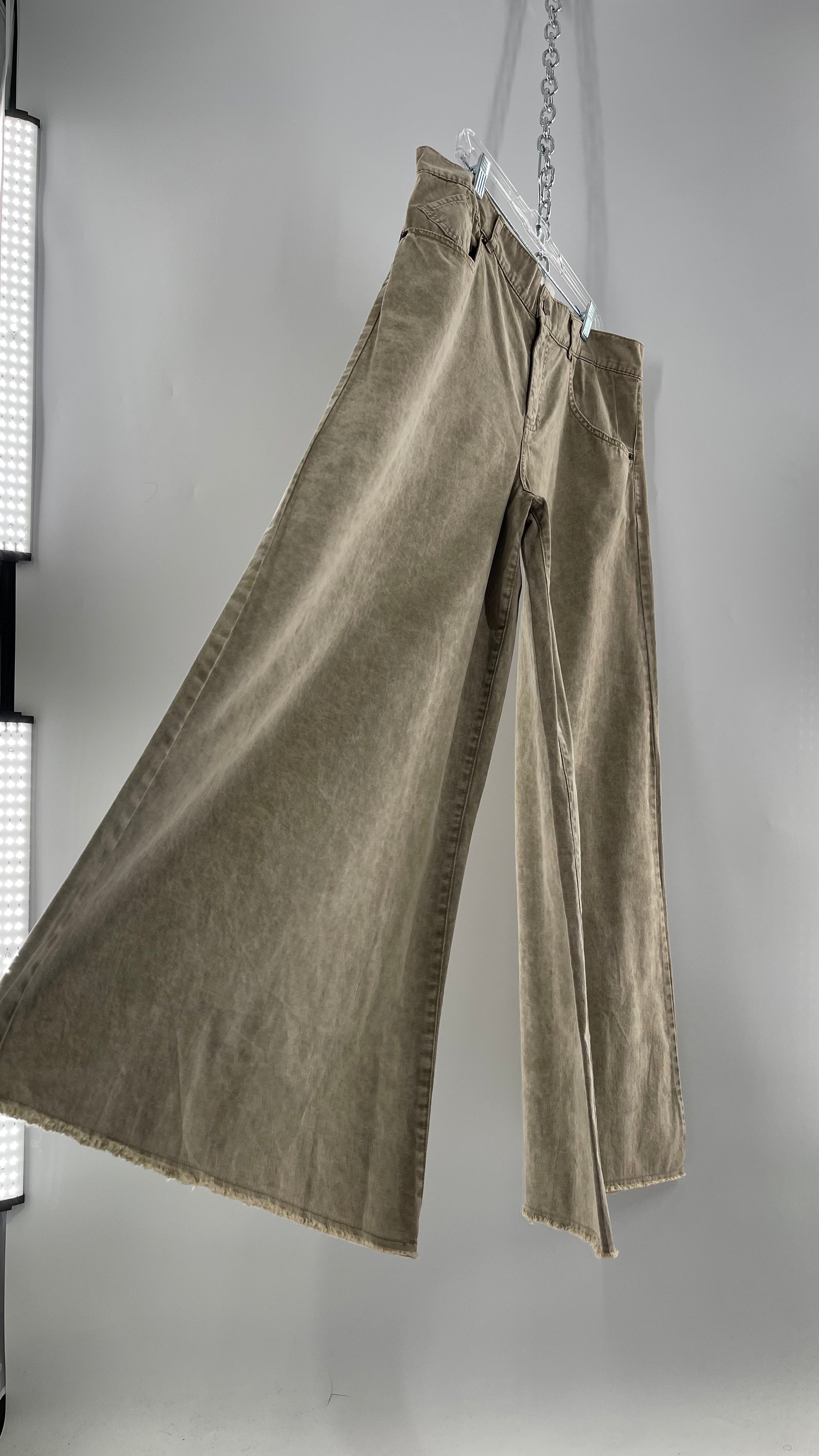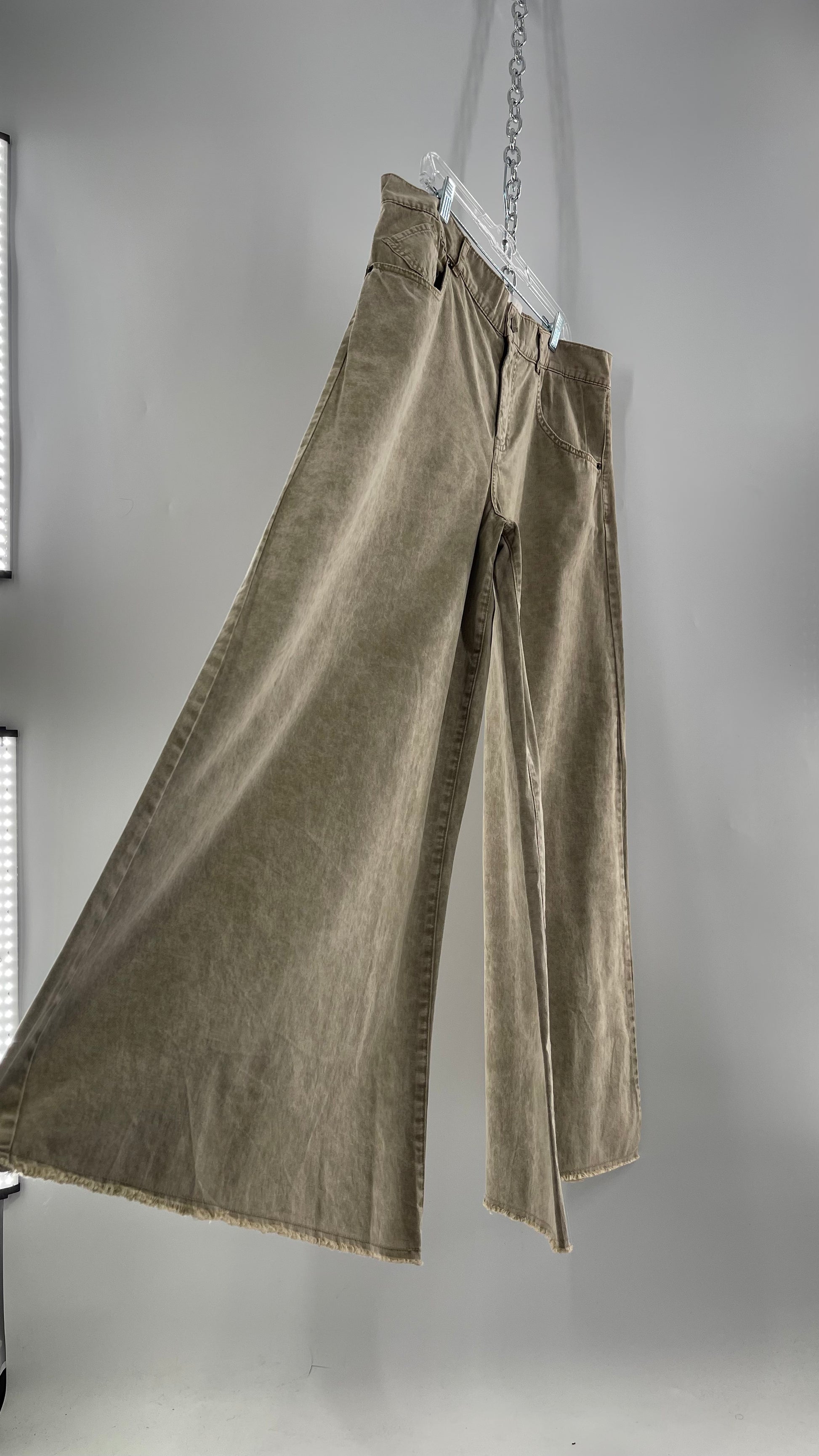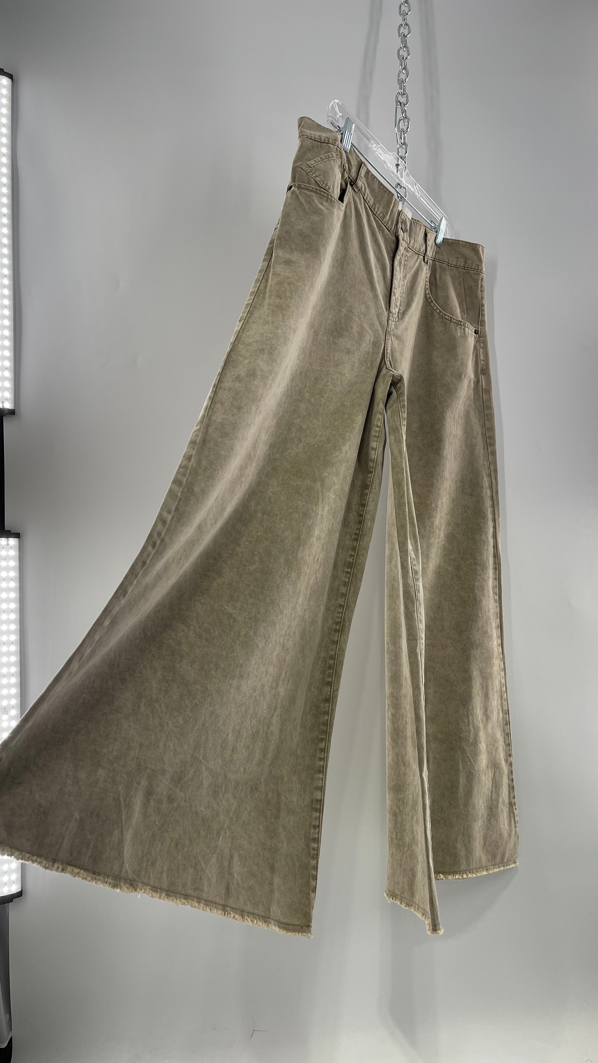 BDG Tan Ultra Wide Leg Acid Wash Jeans with Raw Edge Hem (32)