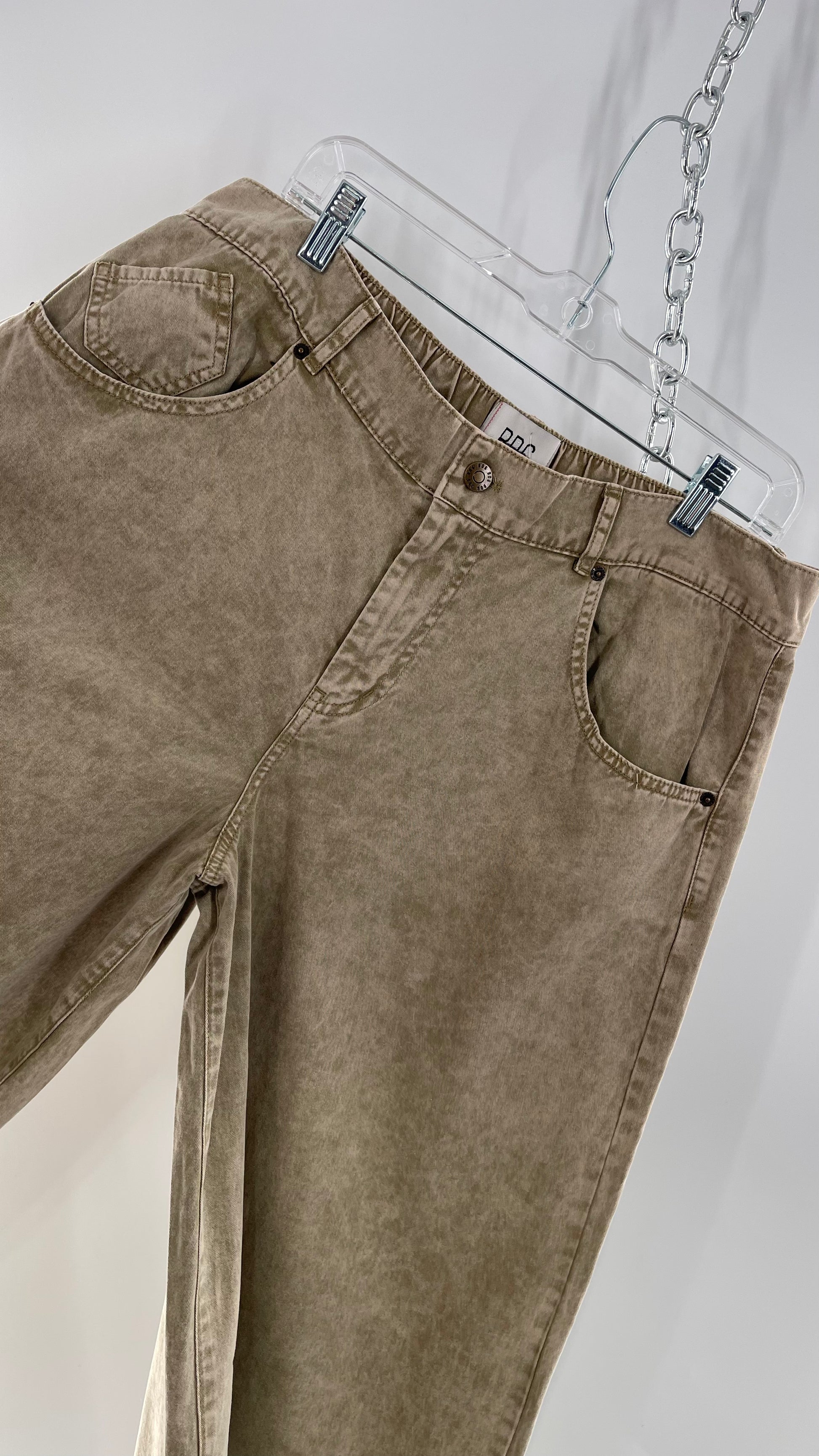 BDG Tan Wide Leg Acid Wash Jeans with Raw Edge Hem (32)