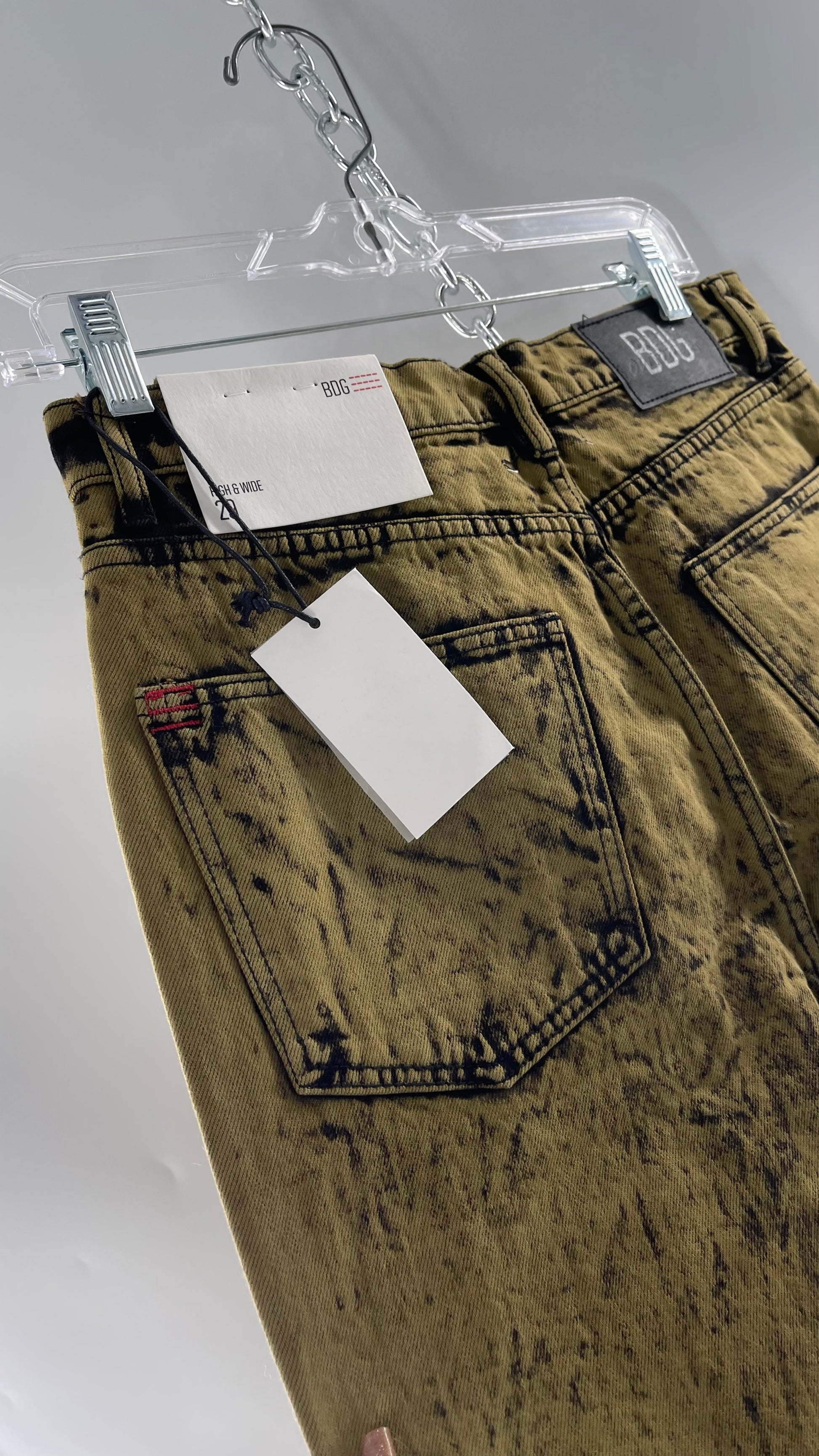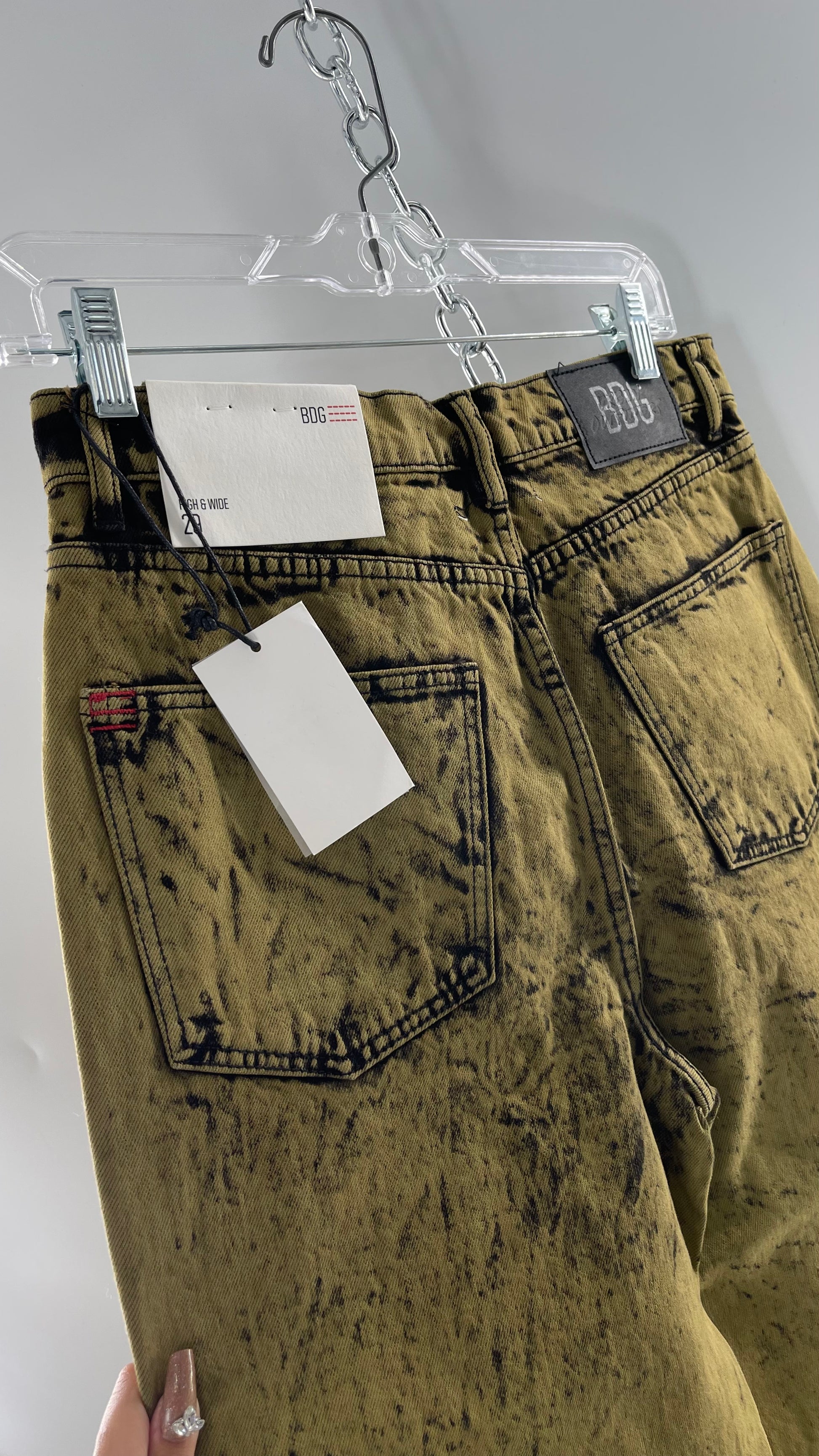 BDG Urban Outfitters Acid Wash Mossy Green High and Wide Jeans with Tags Attached (29)