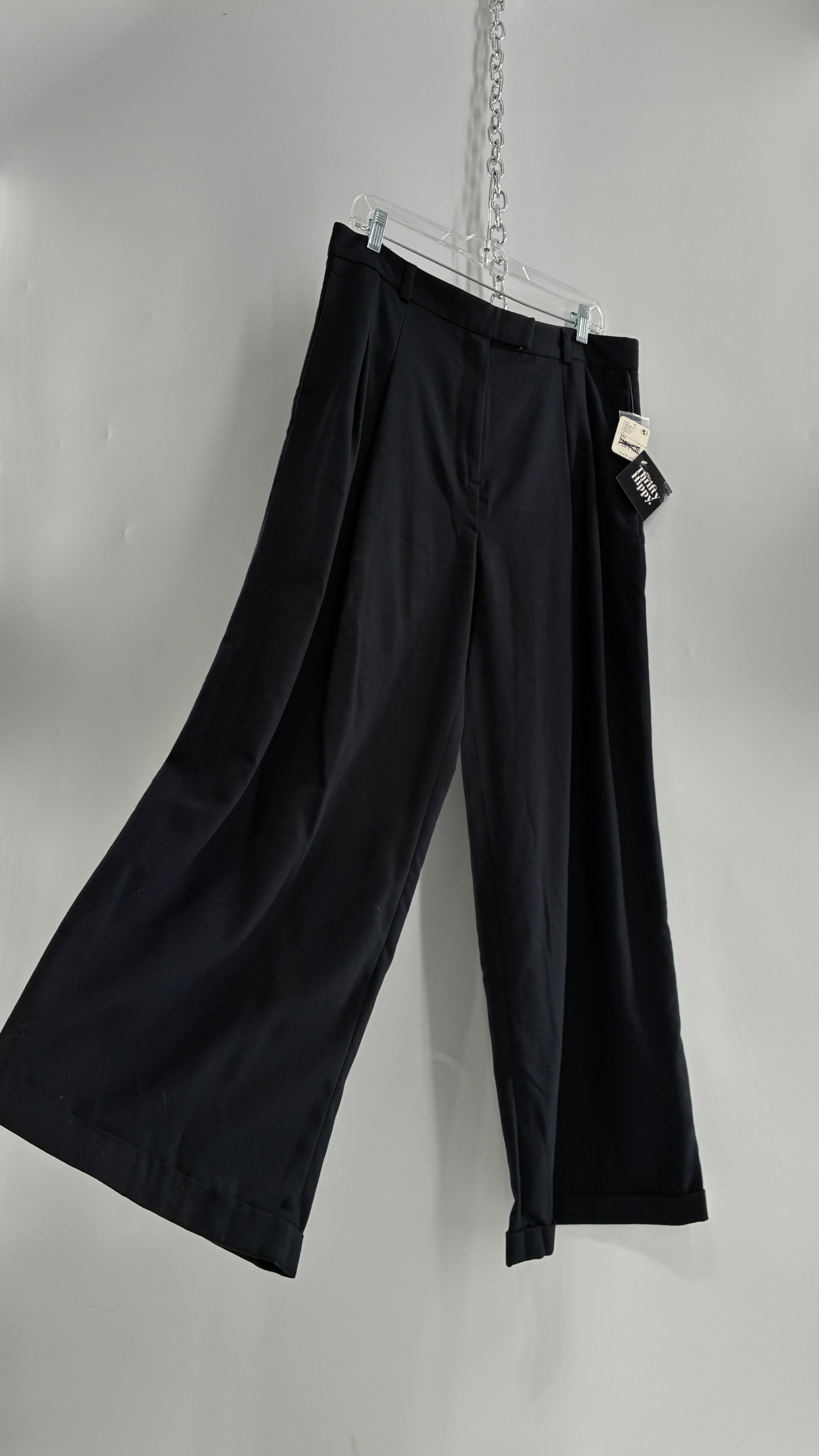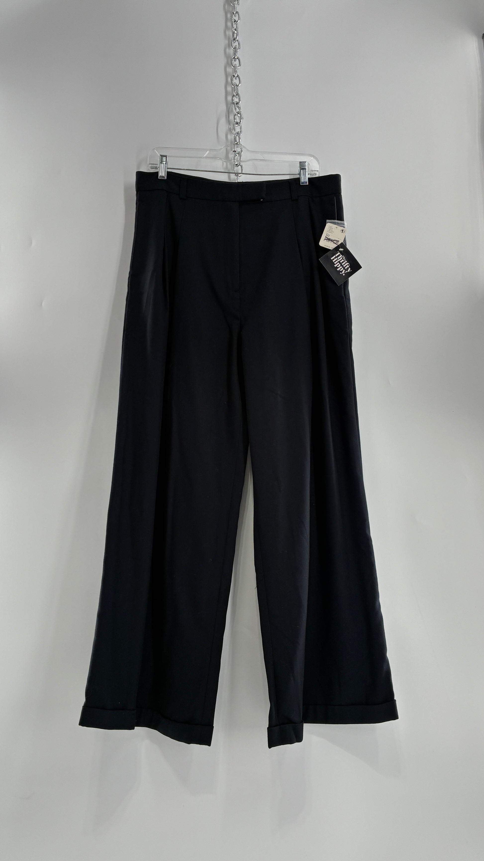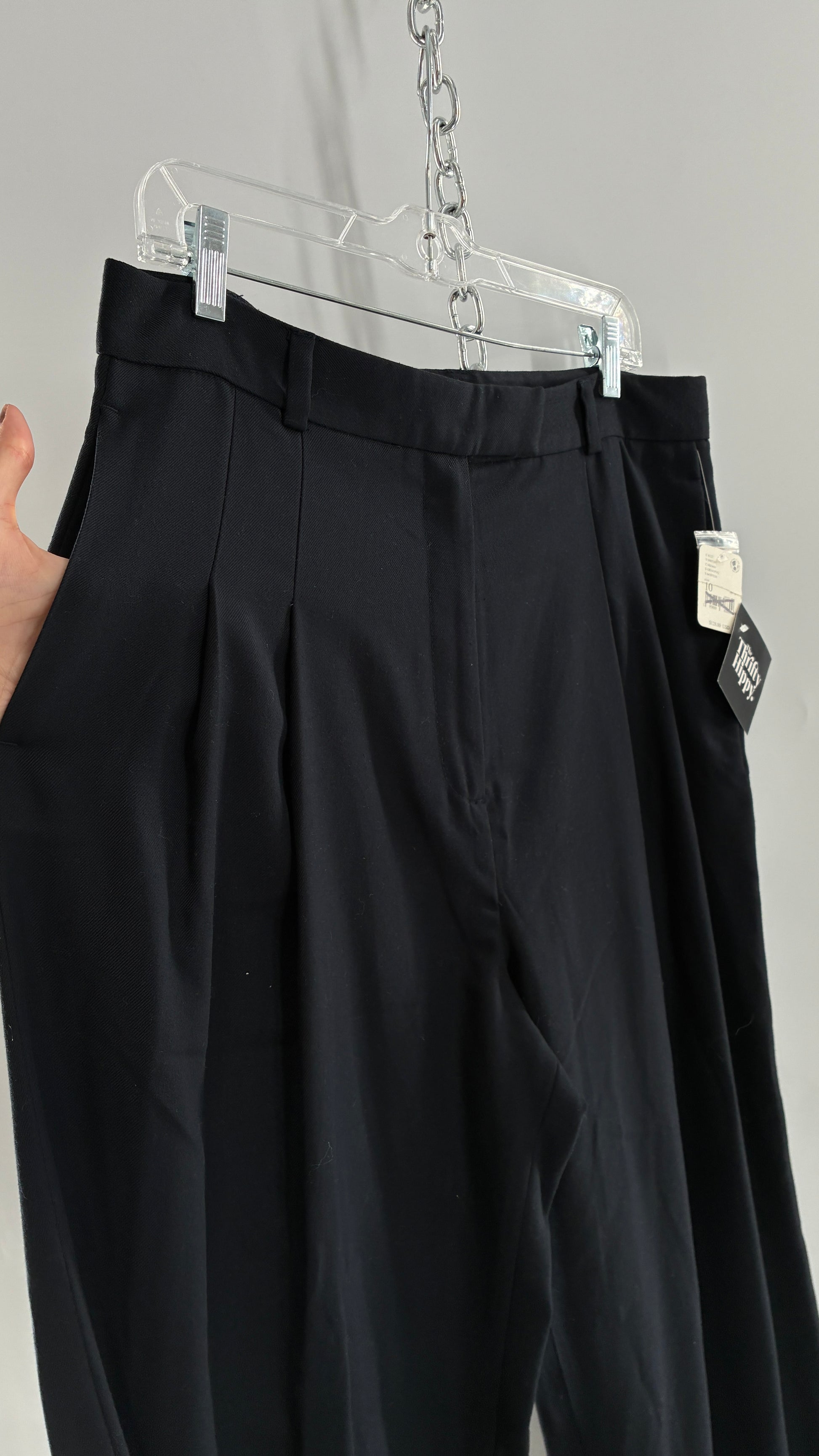 Free People Black Wide Leg, Pleated Trouser with Tags Attached (10)