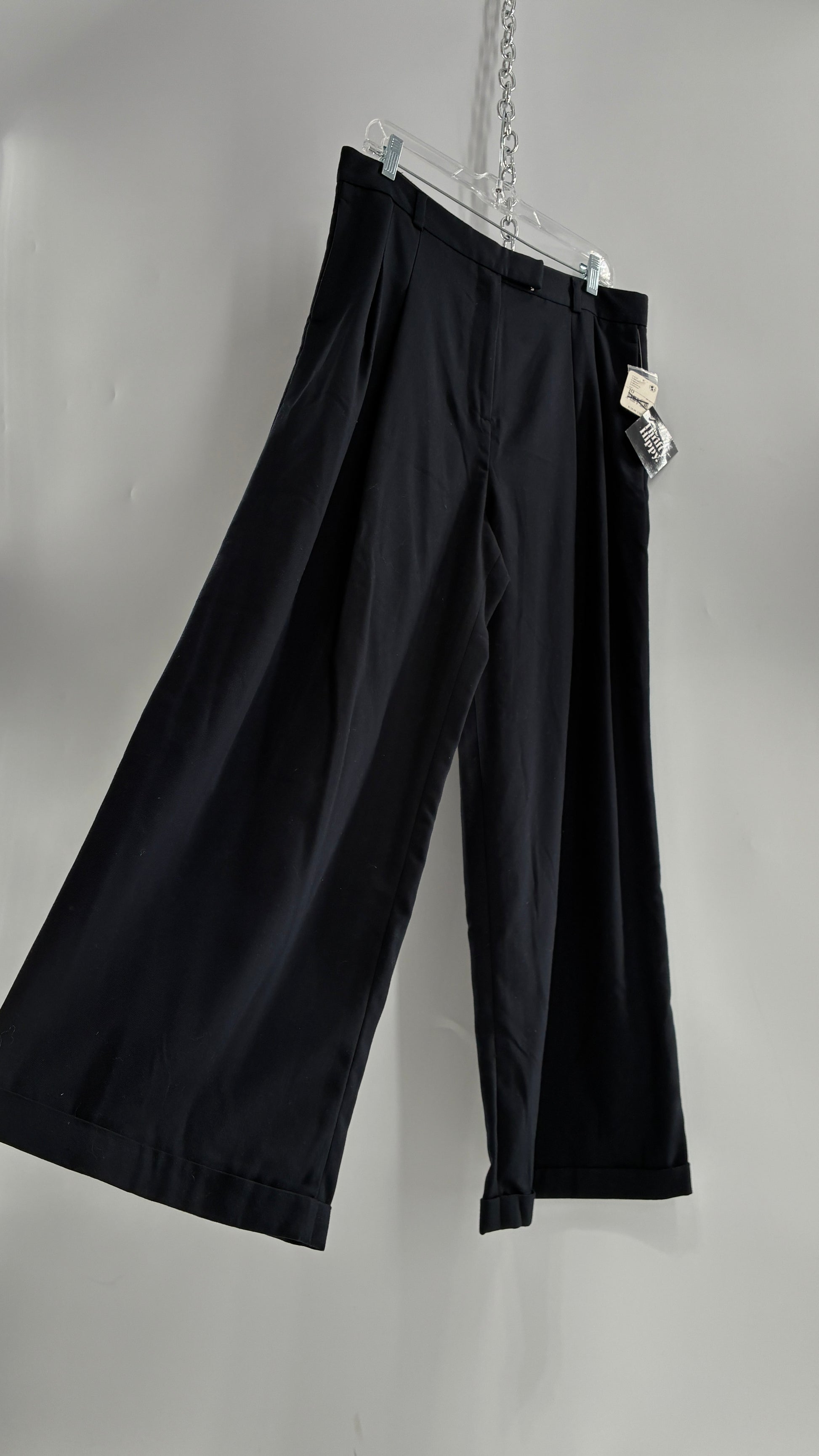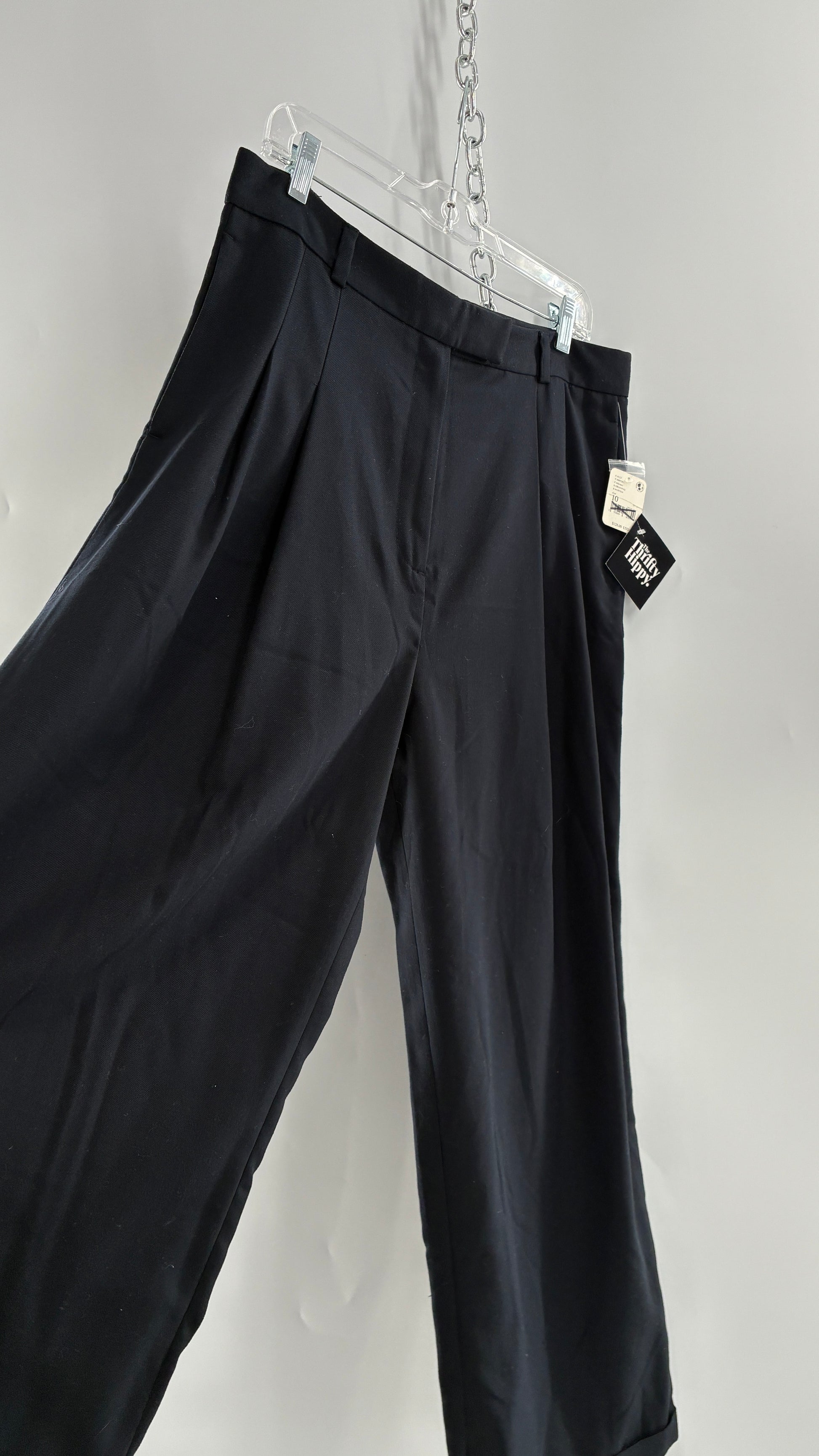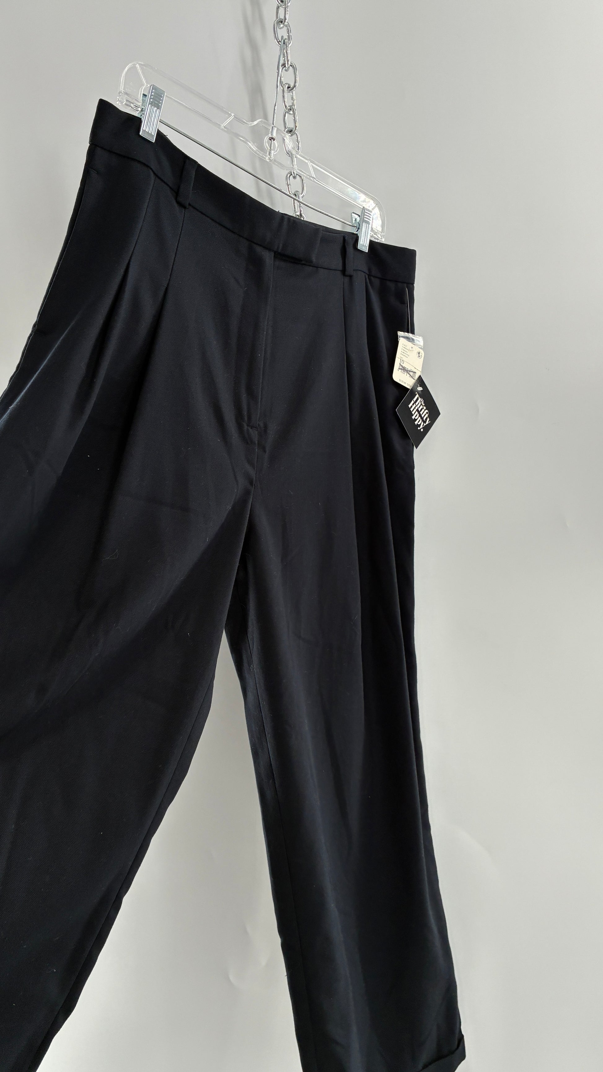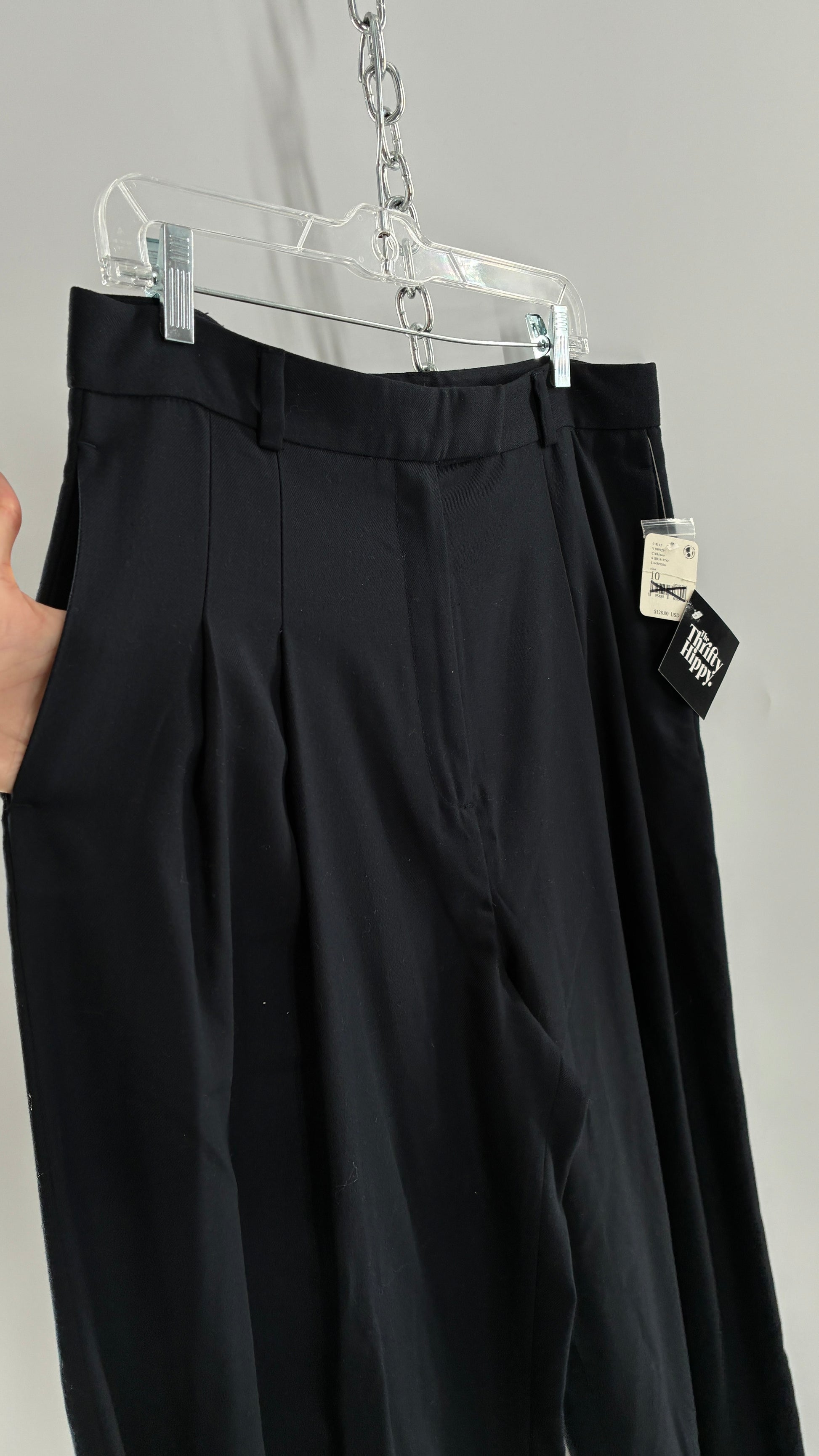 Free People Black Wide Leg, Pleated Trouser with Tags Attached (10)