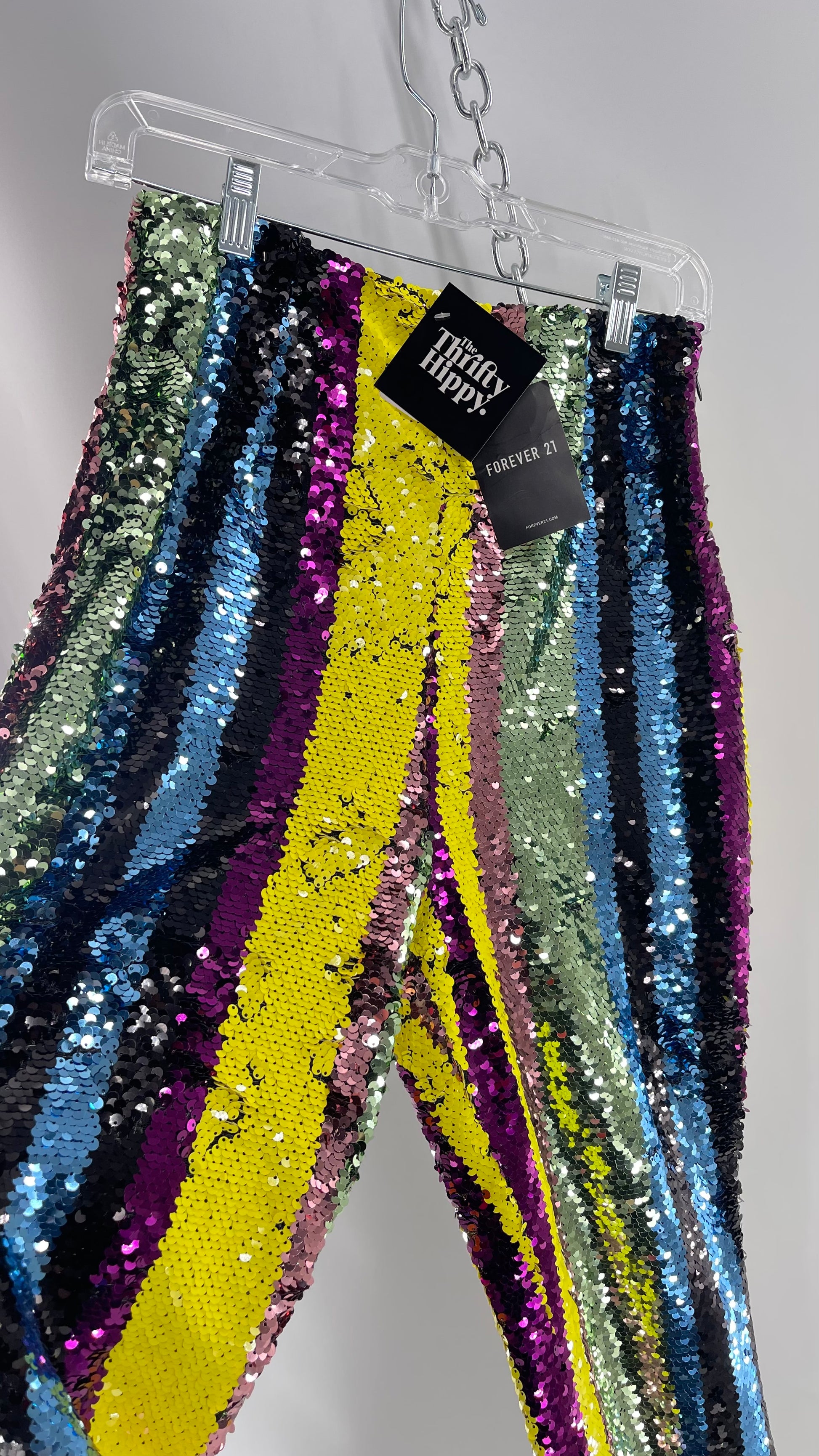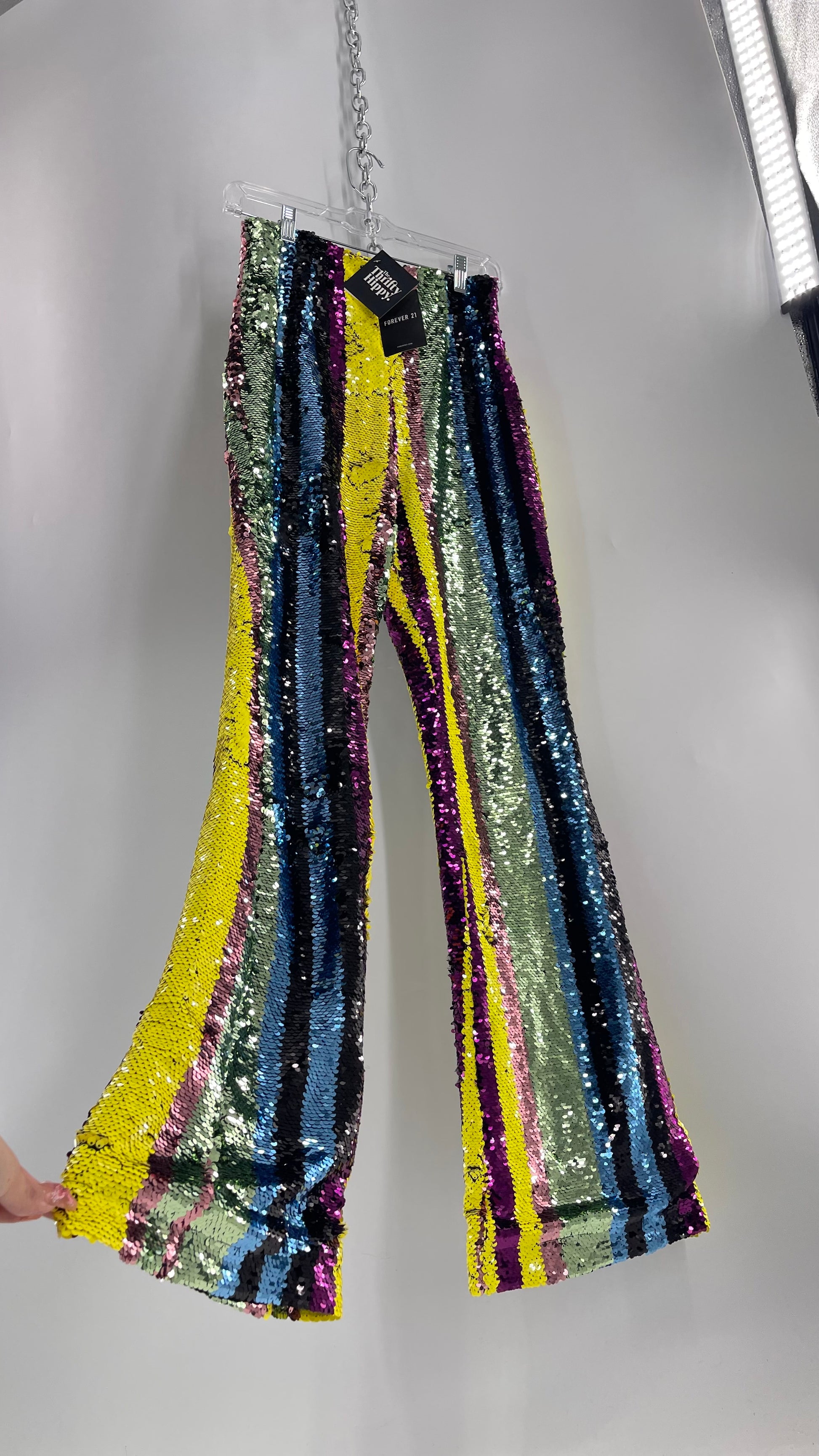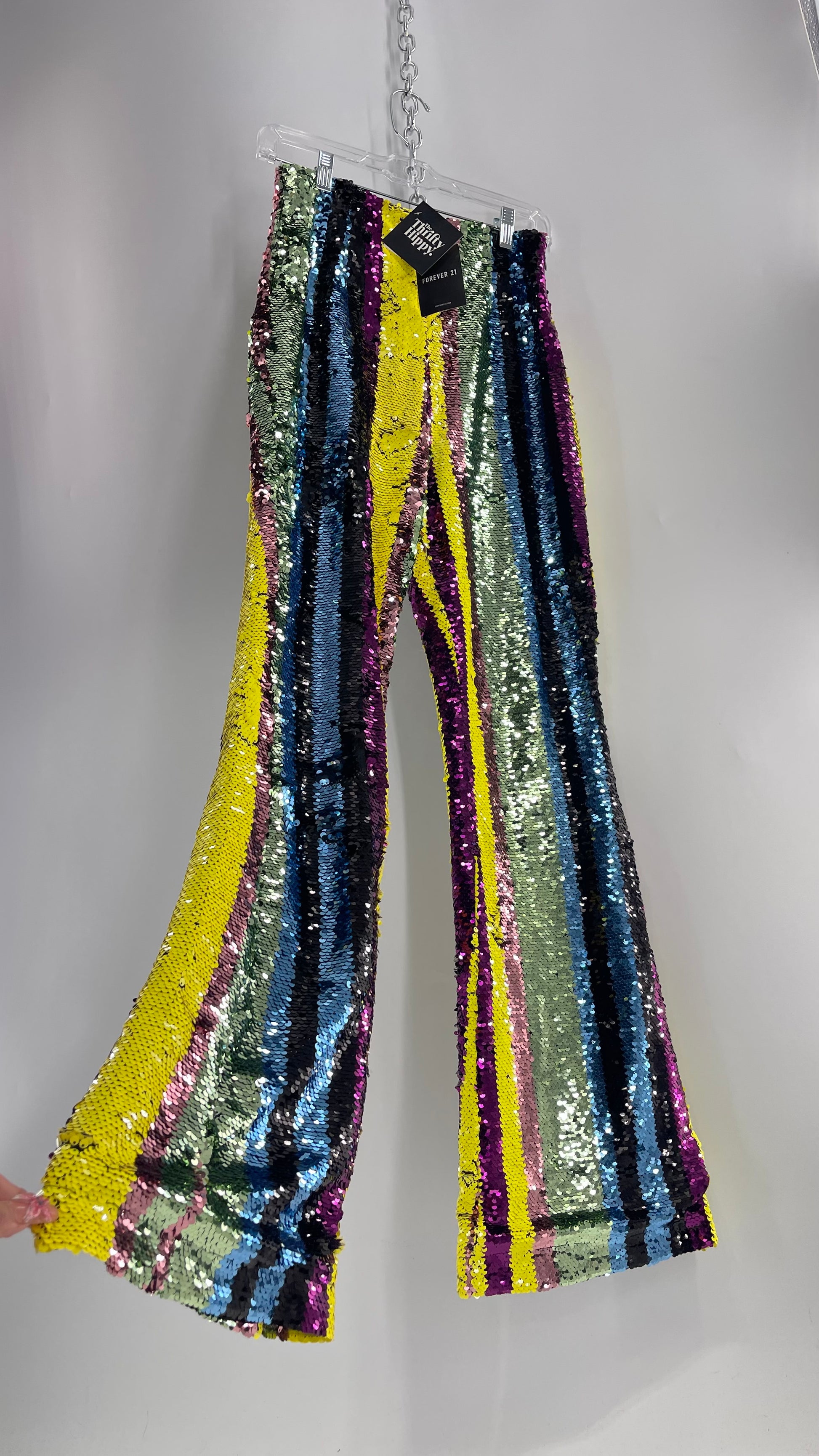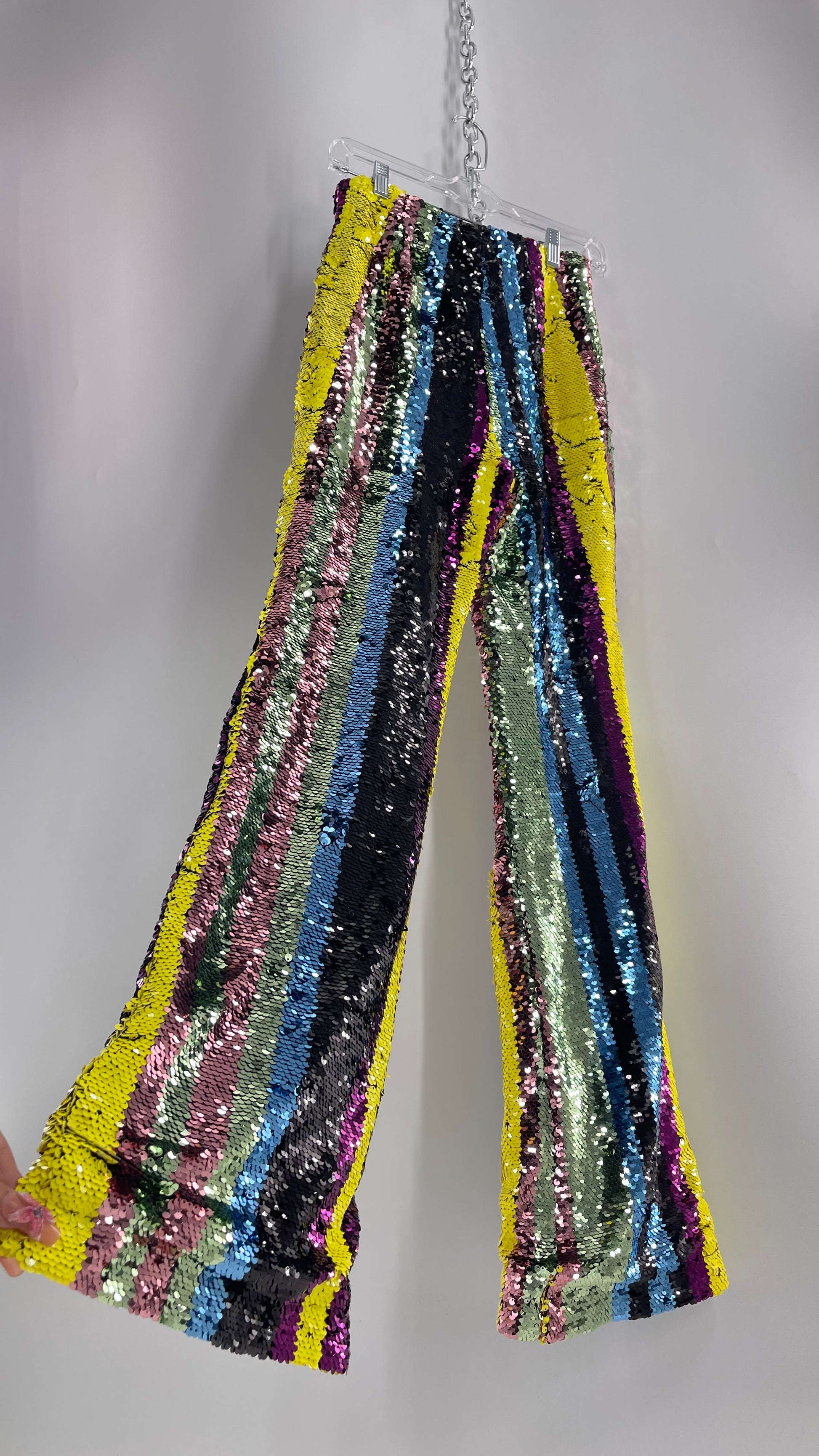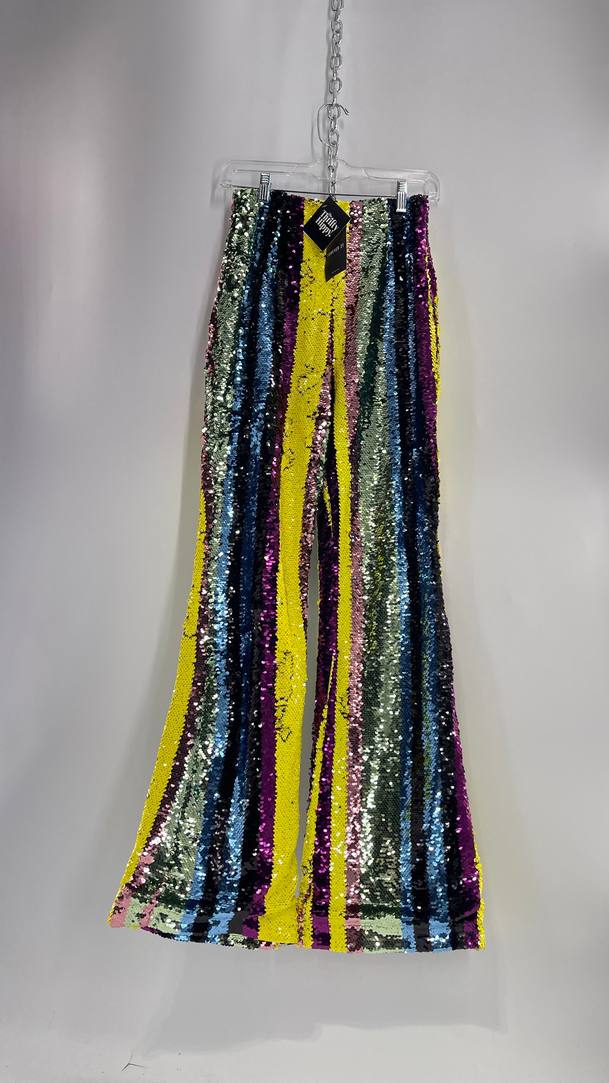 Deadstock Forever 21 Sequin Striped Colorful Festival Flare Pants (Small)