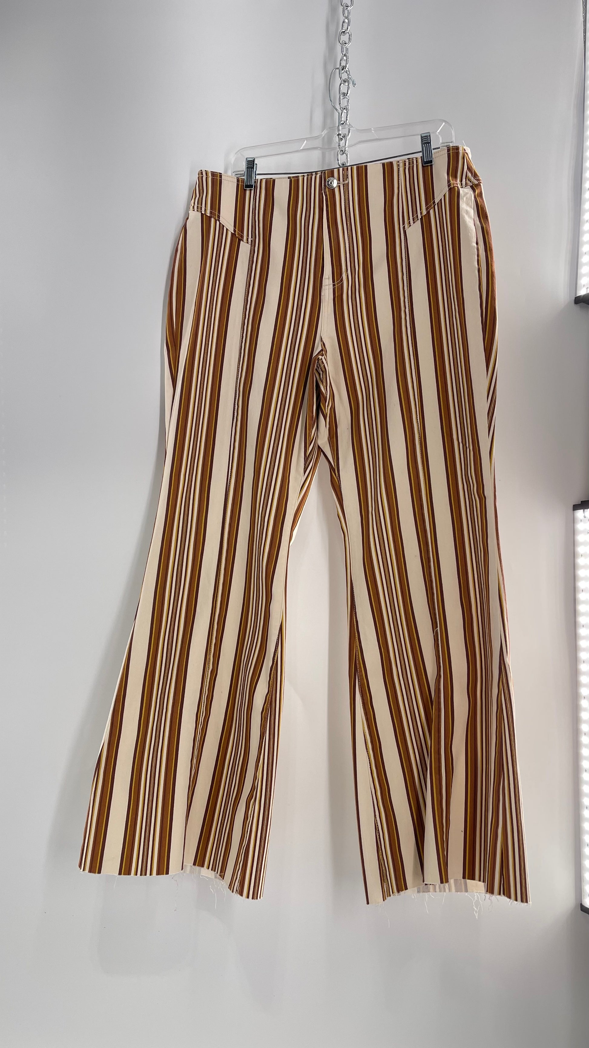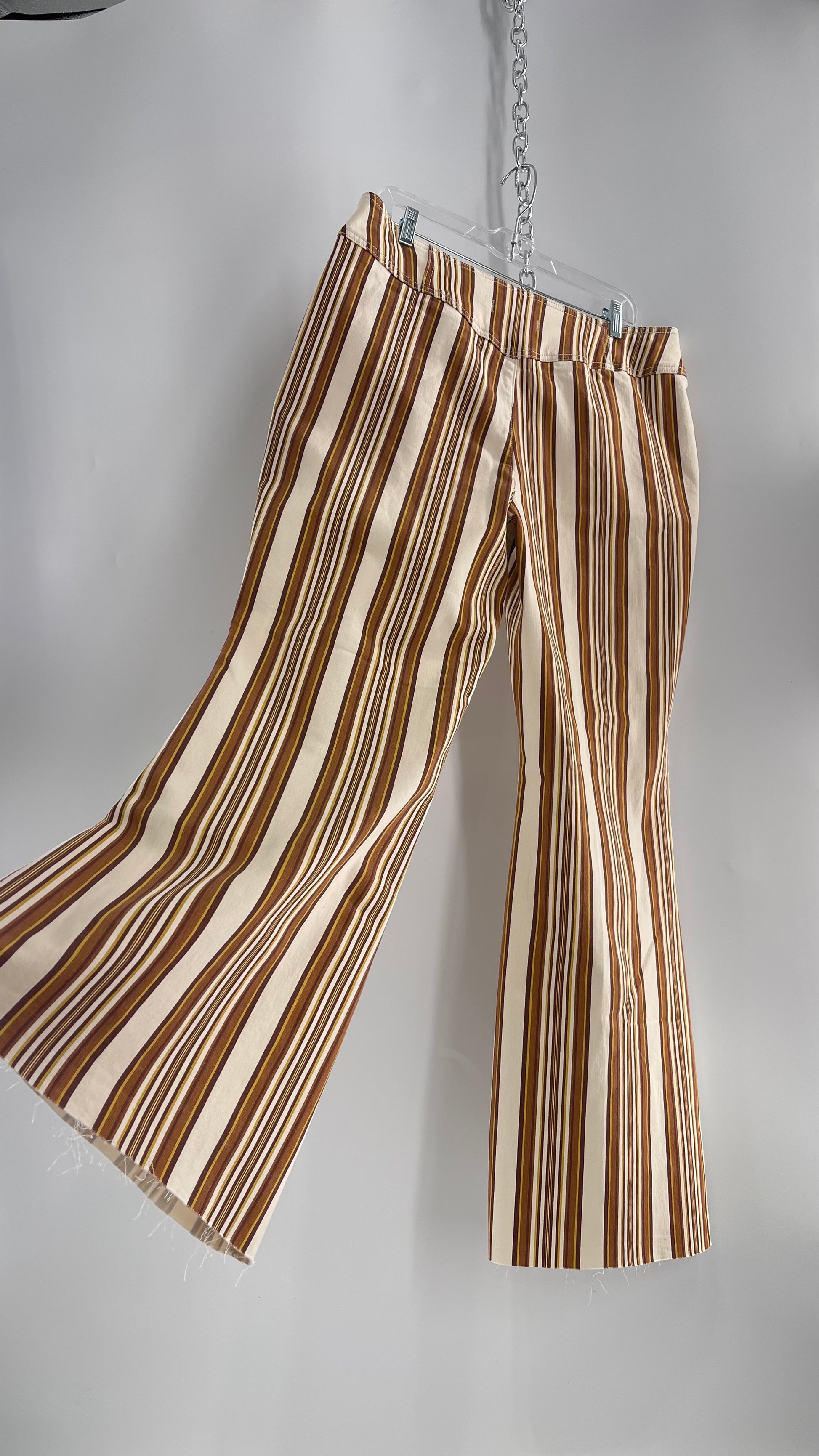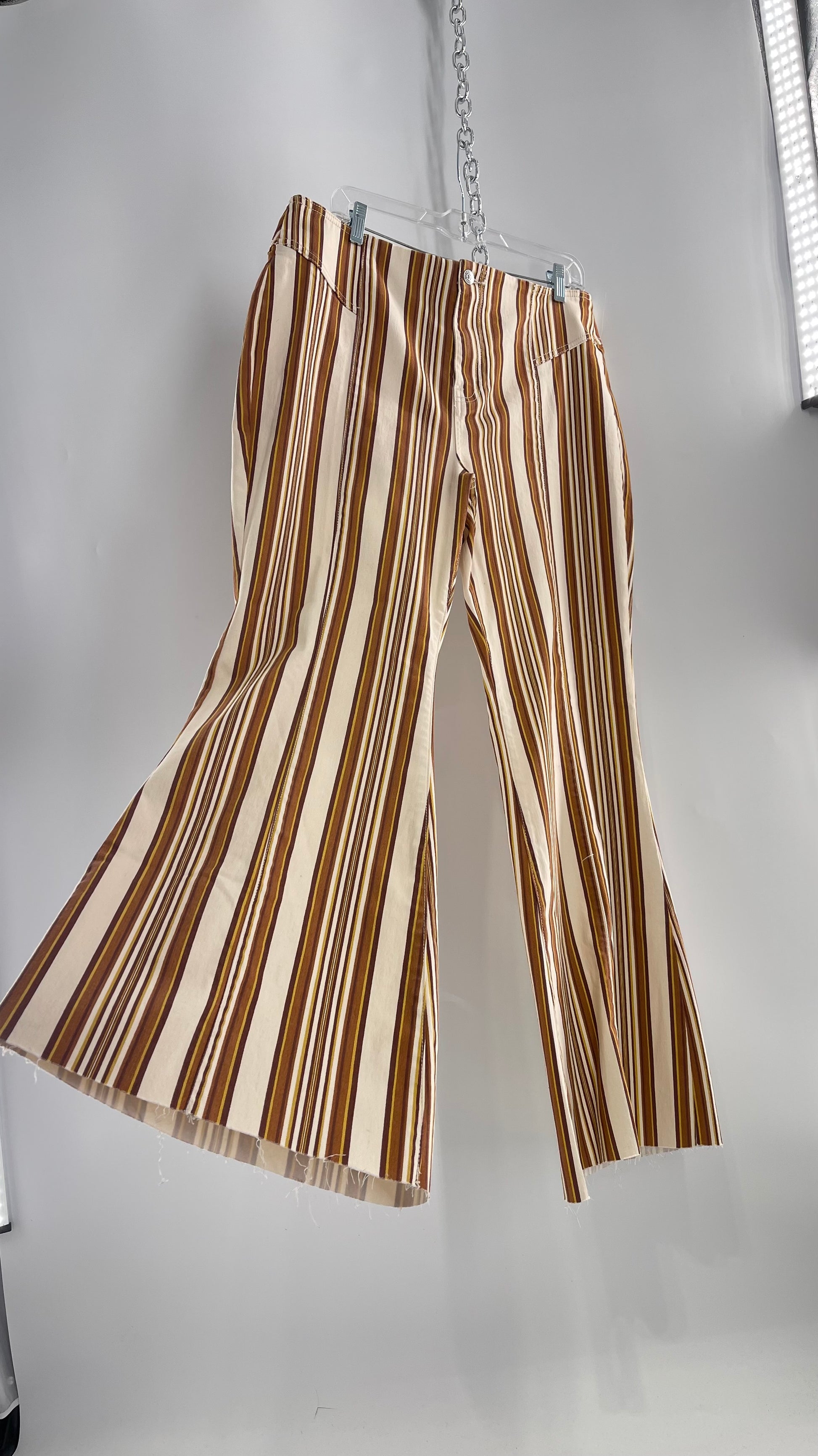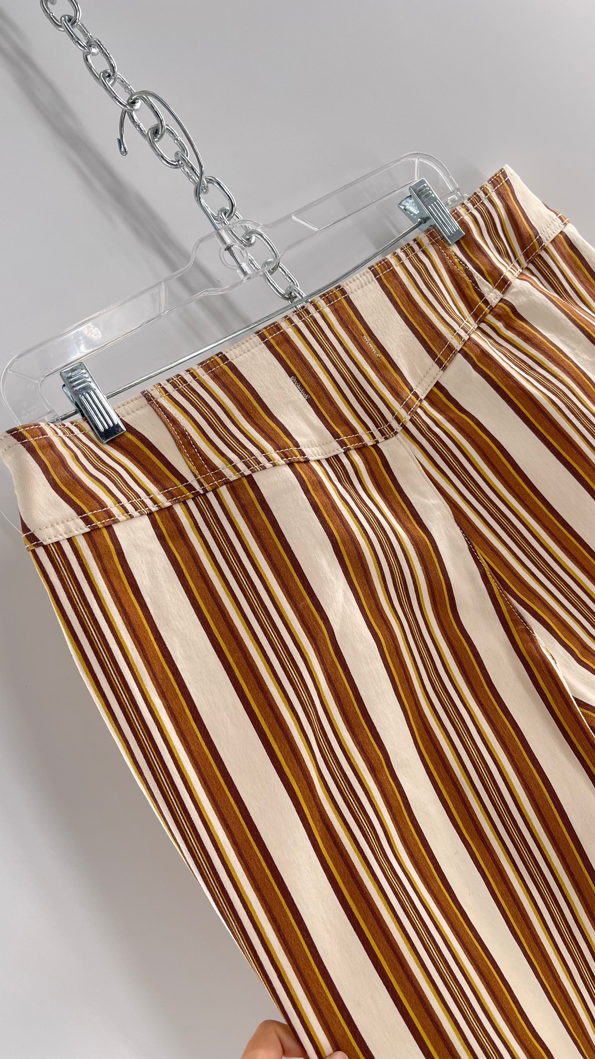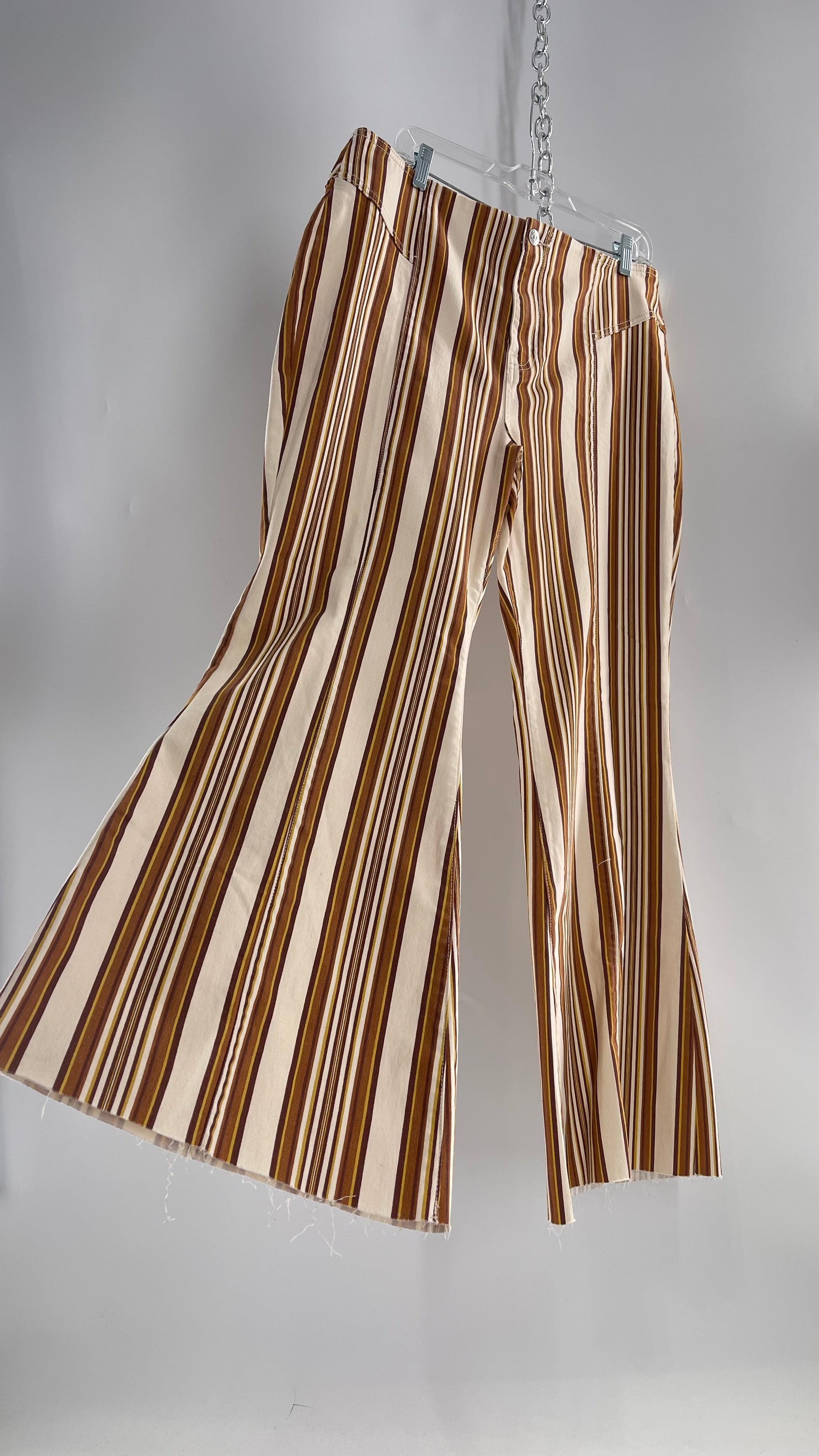Free People 70s Striped Mustard and Rust Tones Flare Leg Bell Bottoms (33)