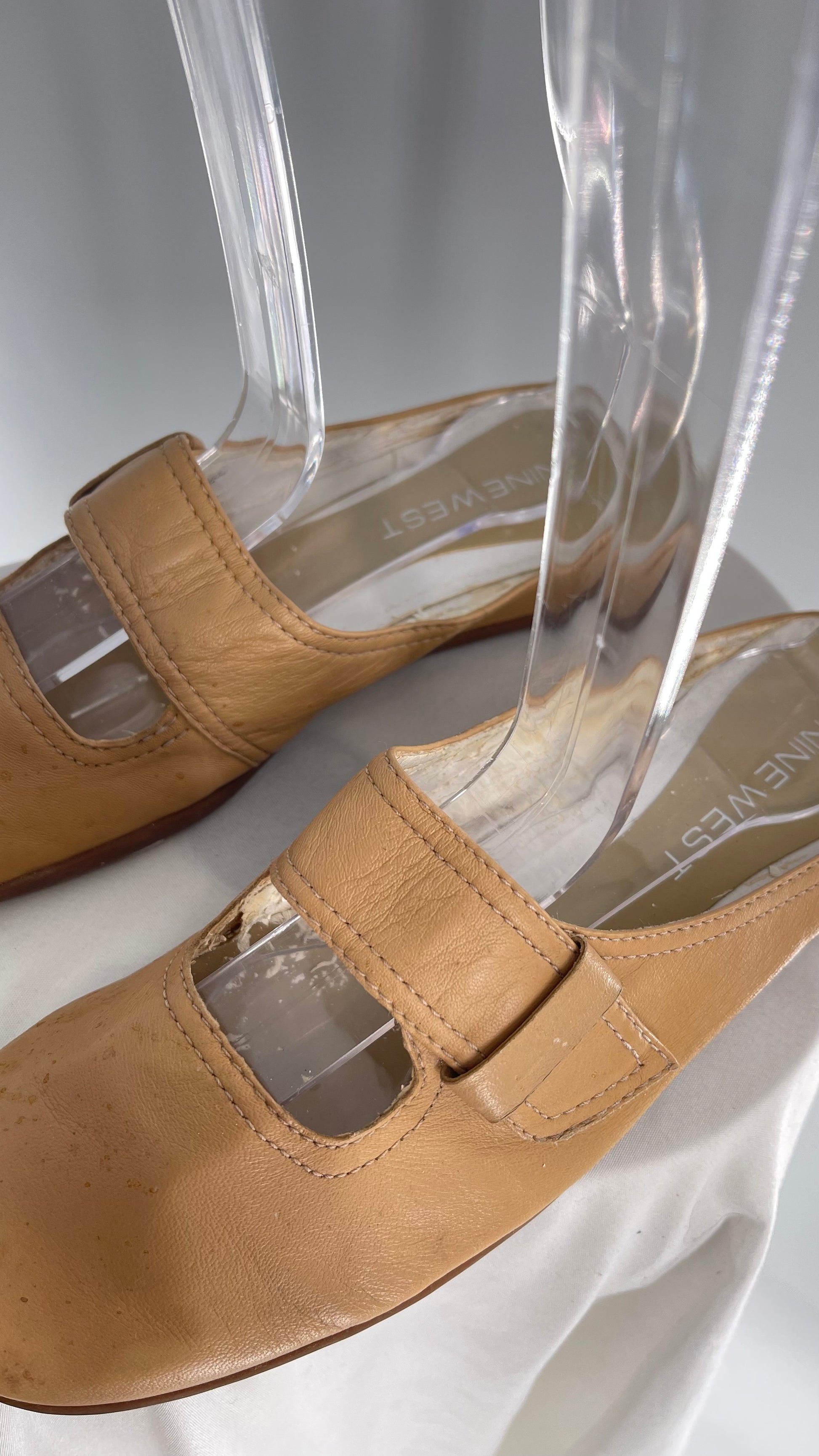 Vintage Nine West Tan Leather Mary Jane Flats (6.5)