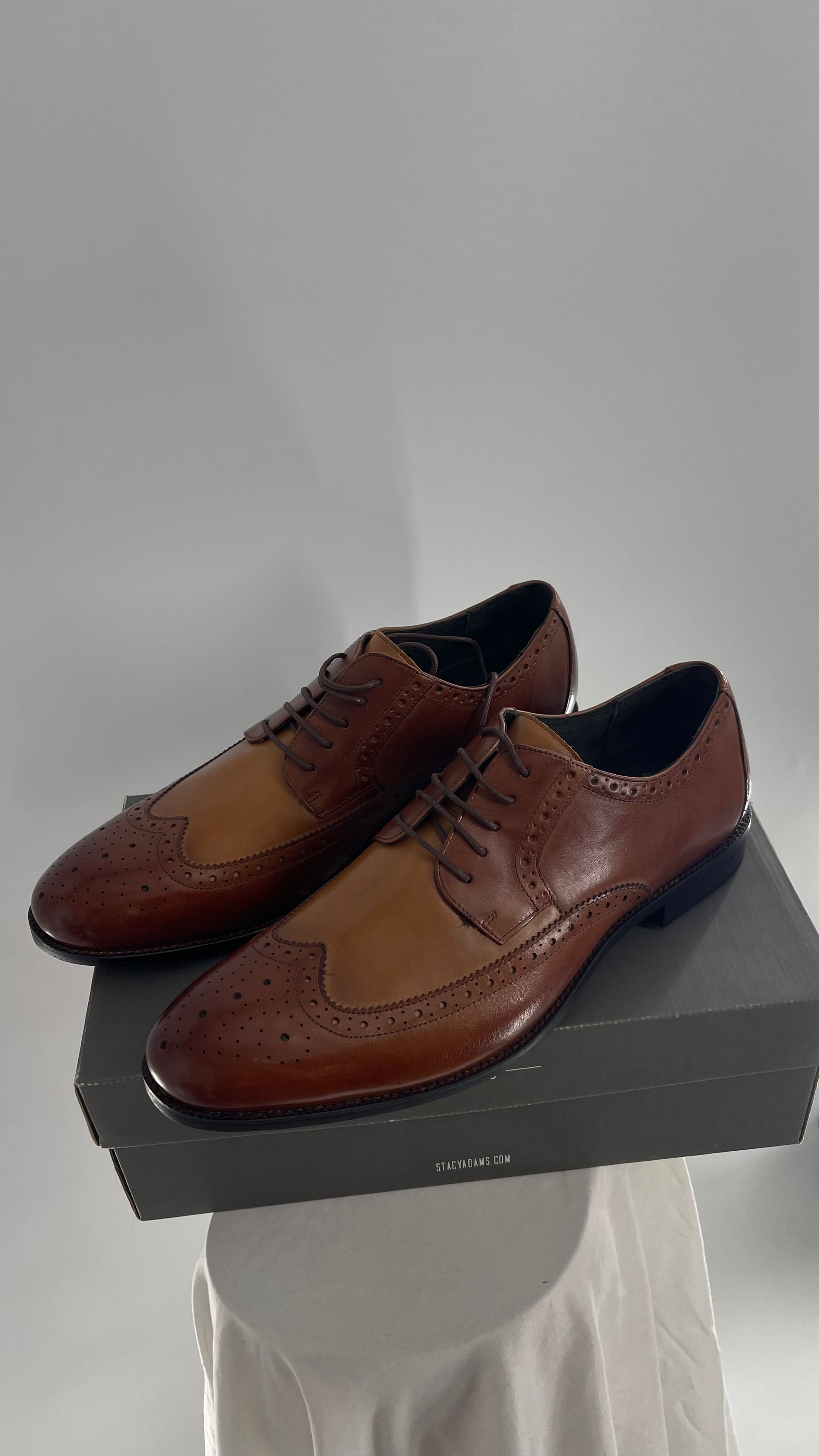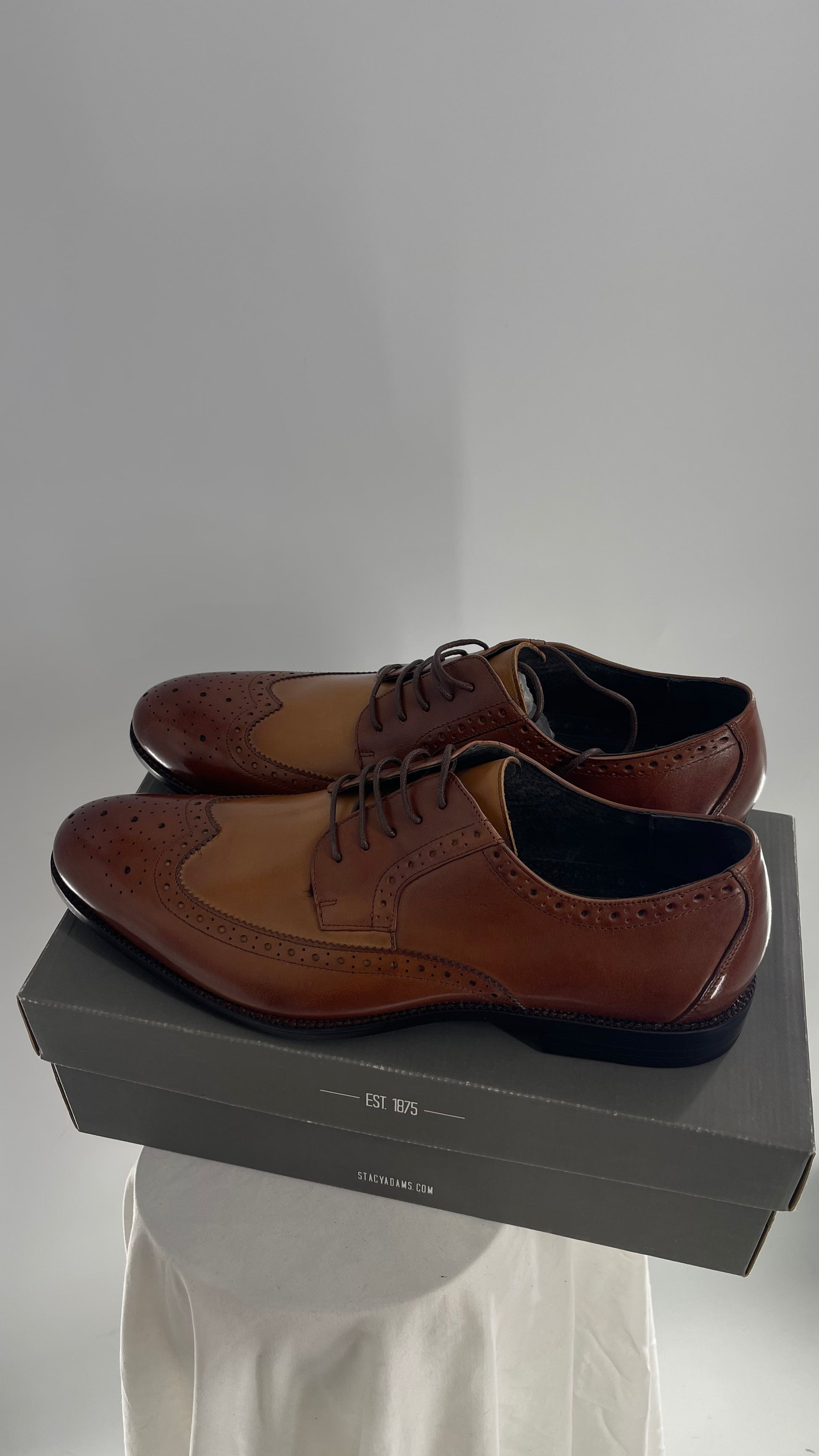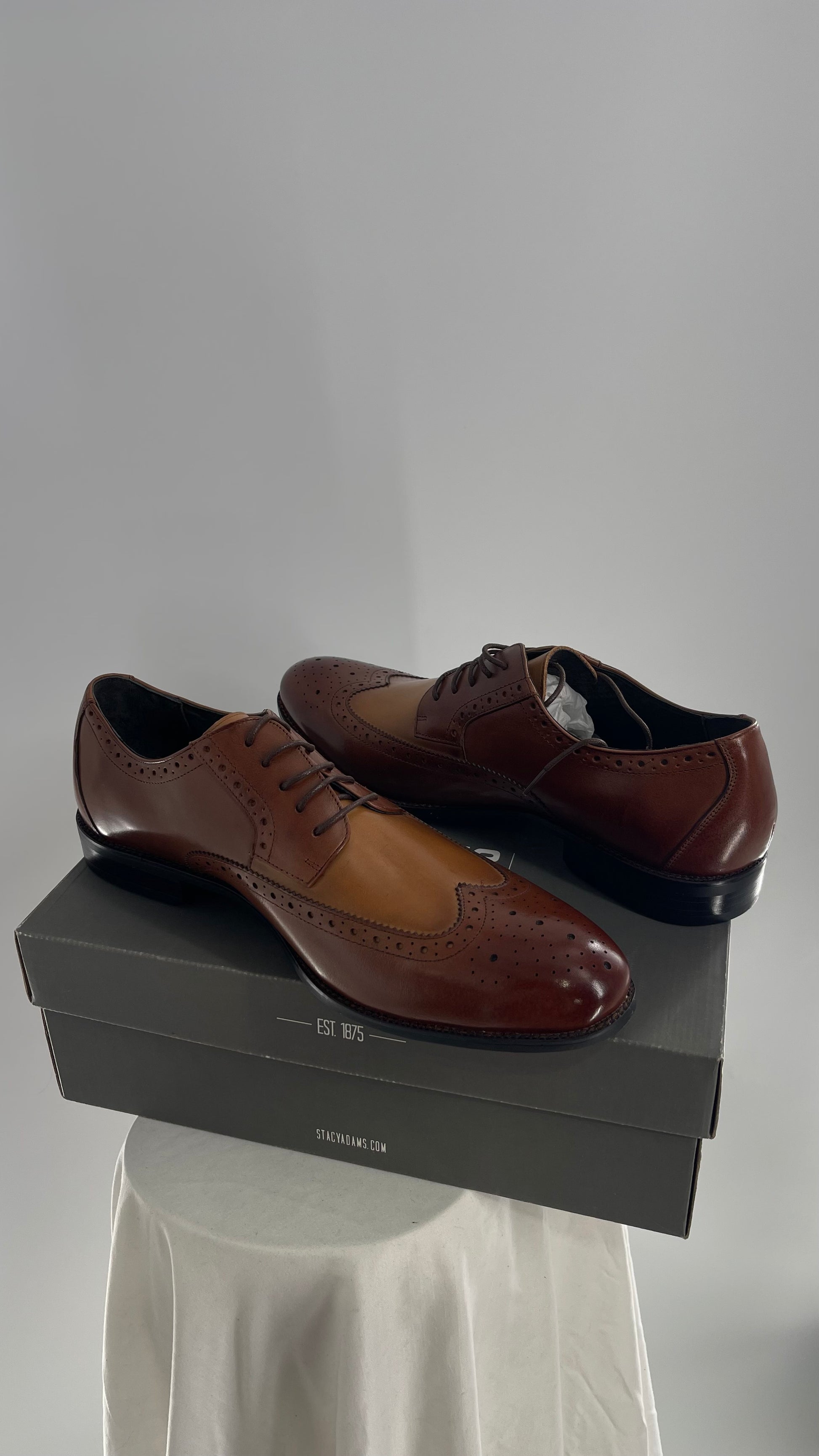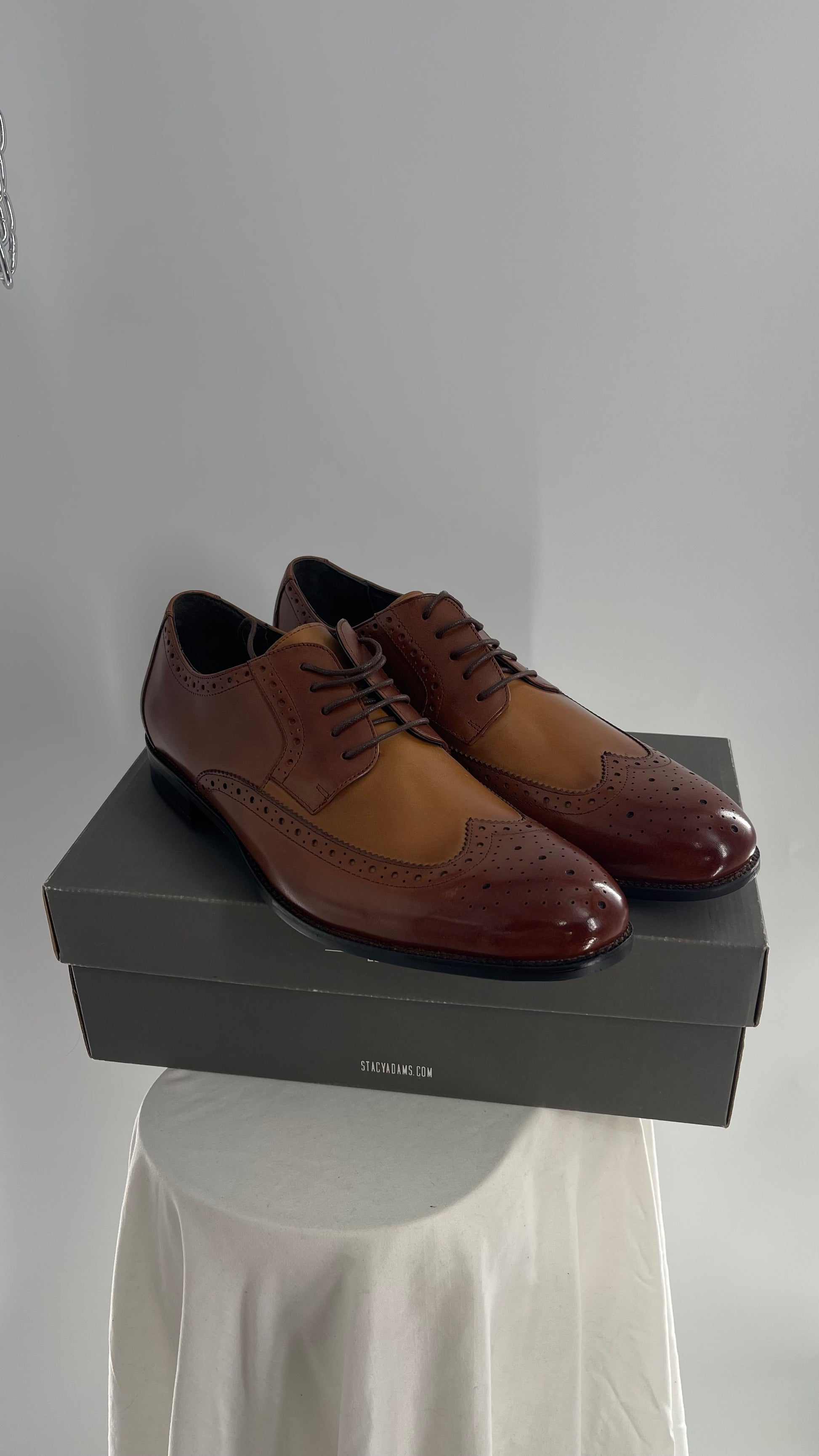 STACY ADAMS Brown and Tan Patent Leather Oxfords