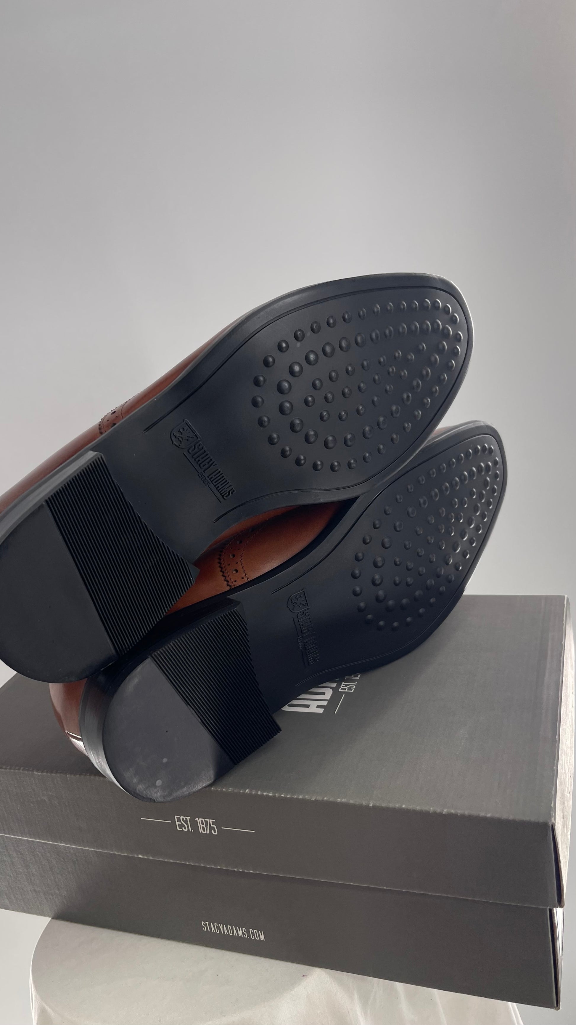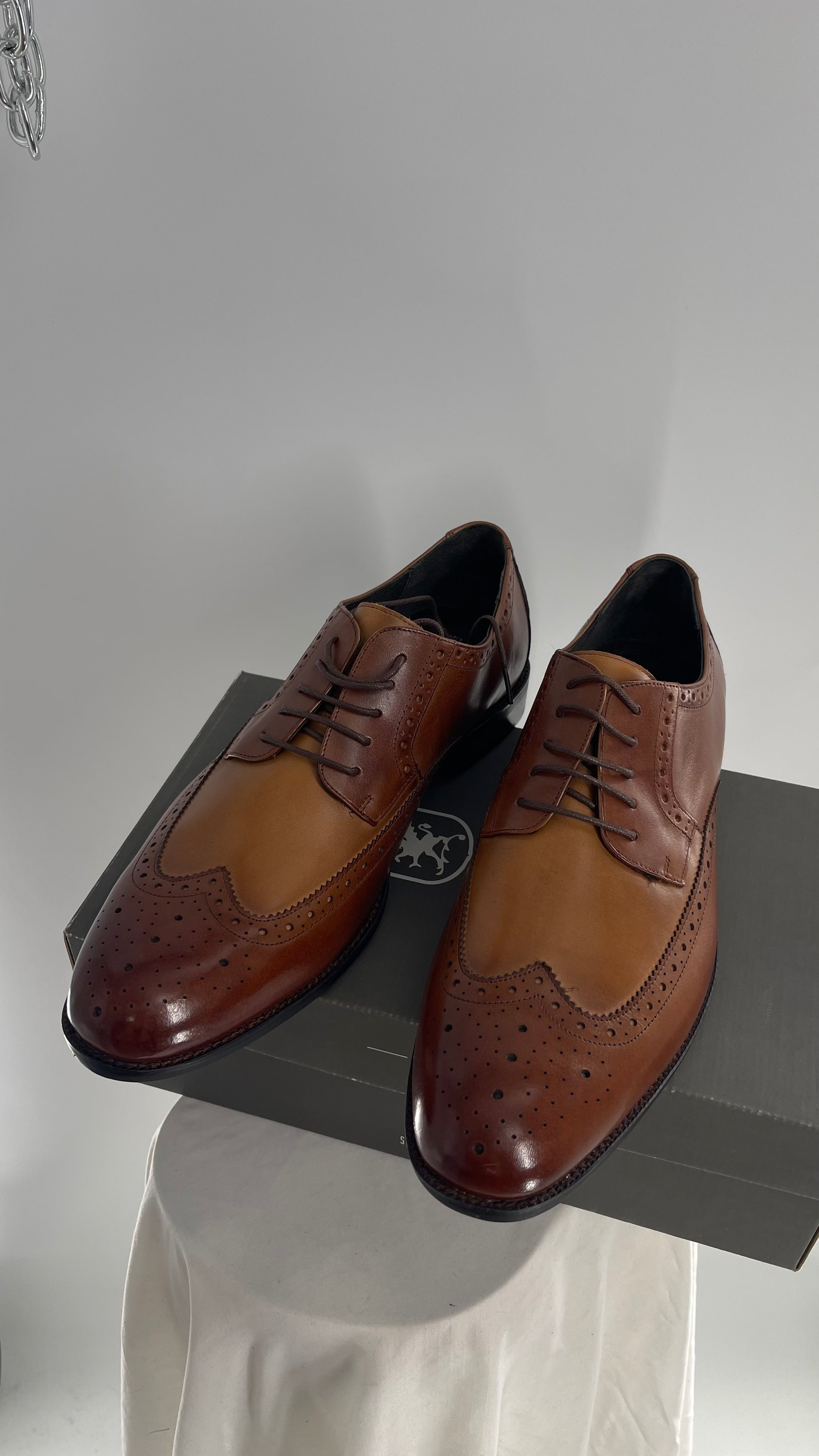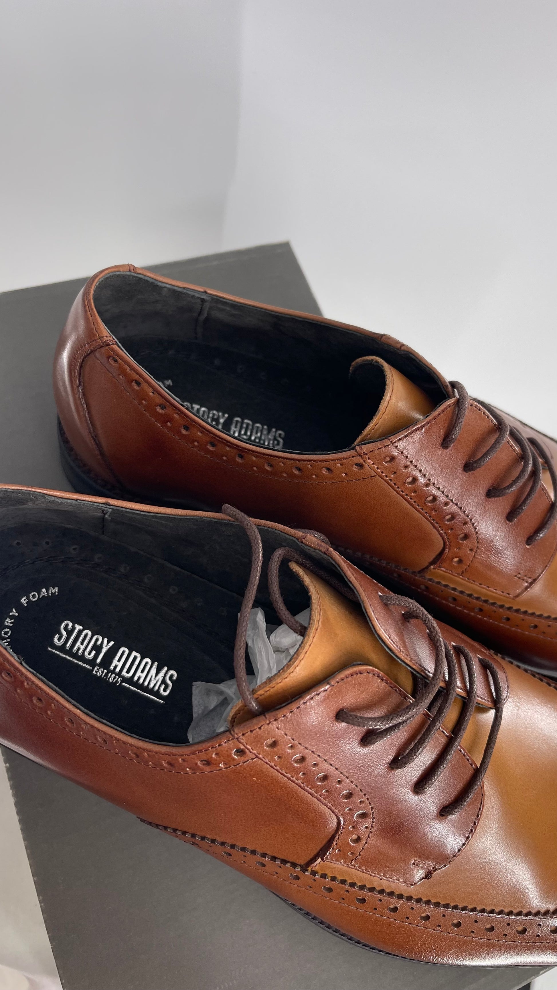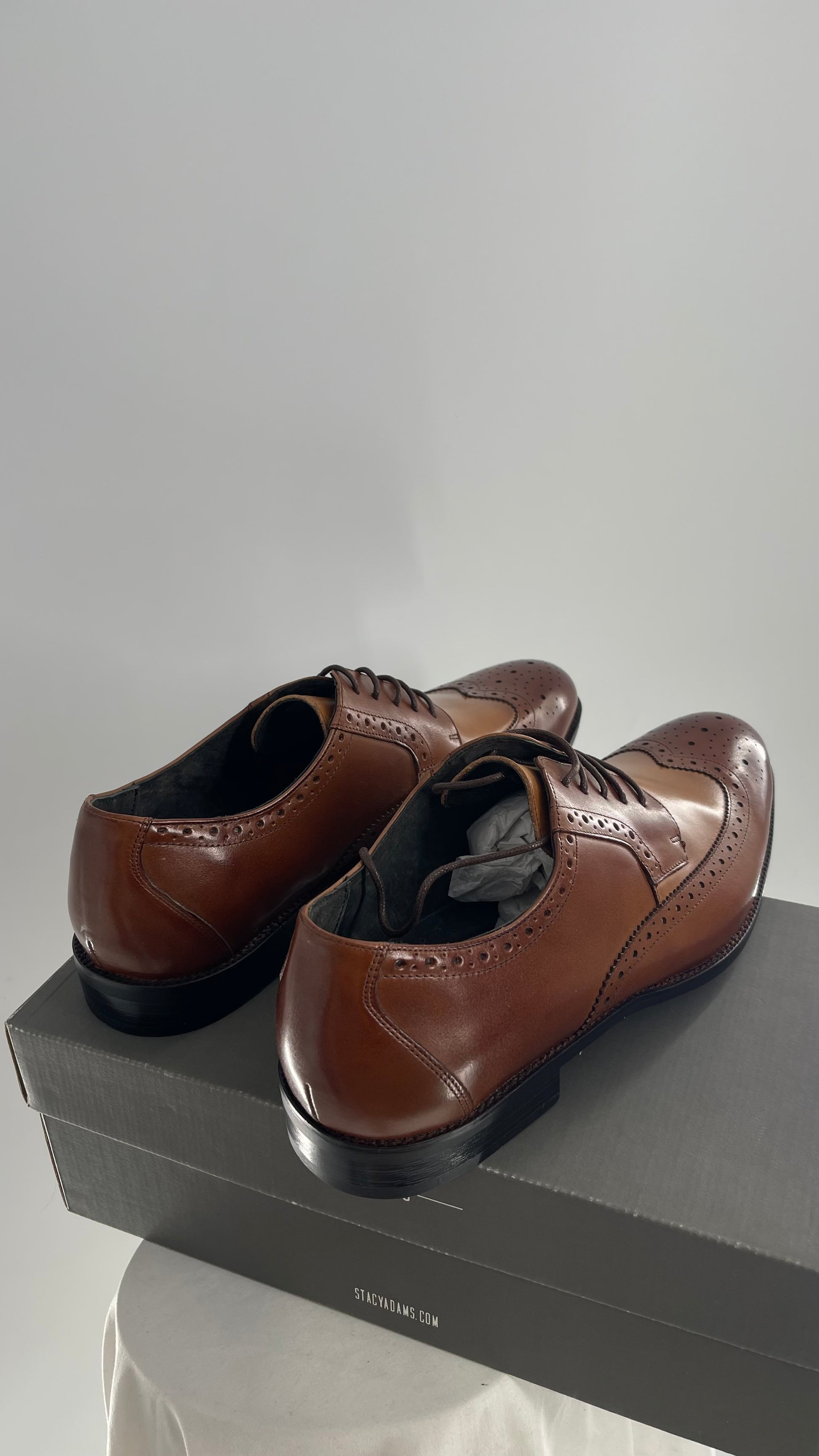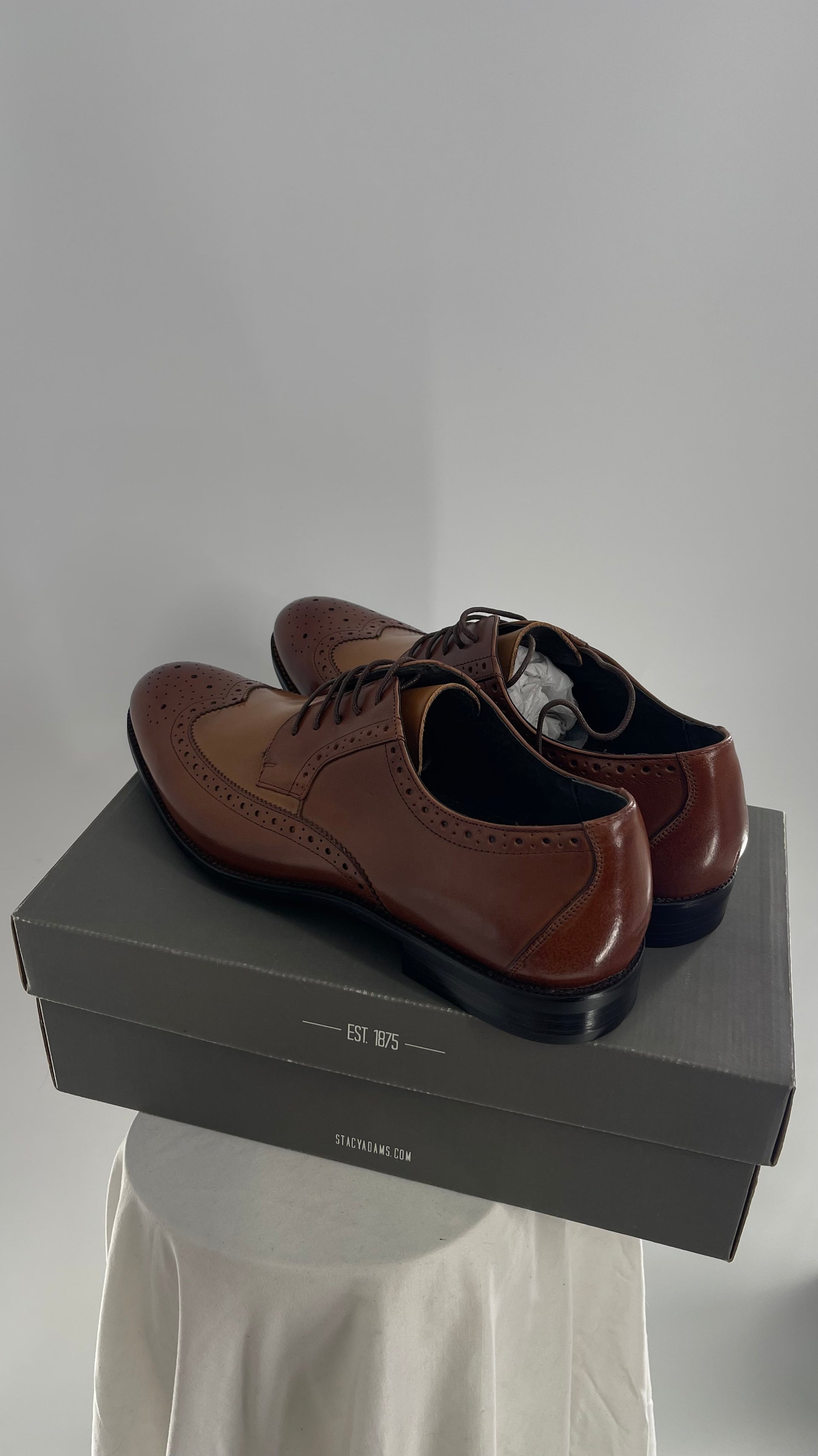 STACY ADAMS Brown and Tan Patent Leather Oxfords
