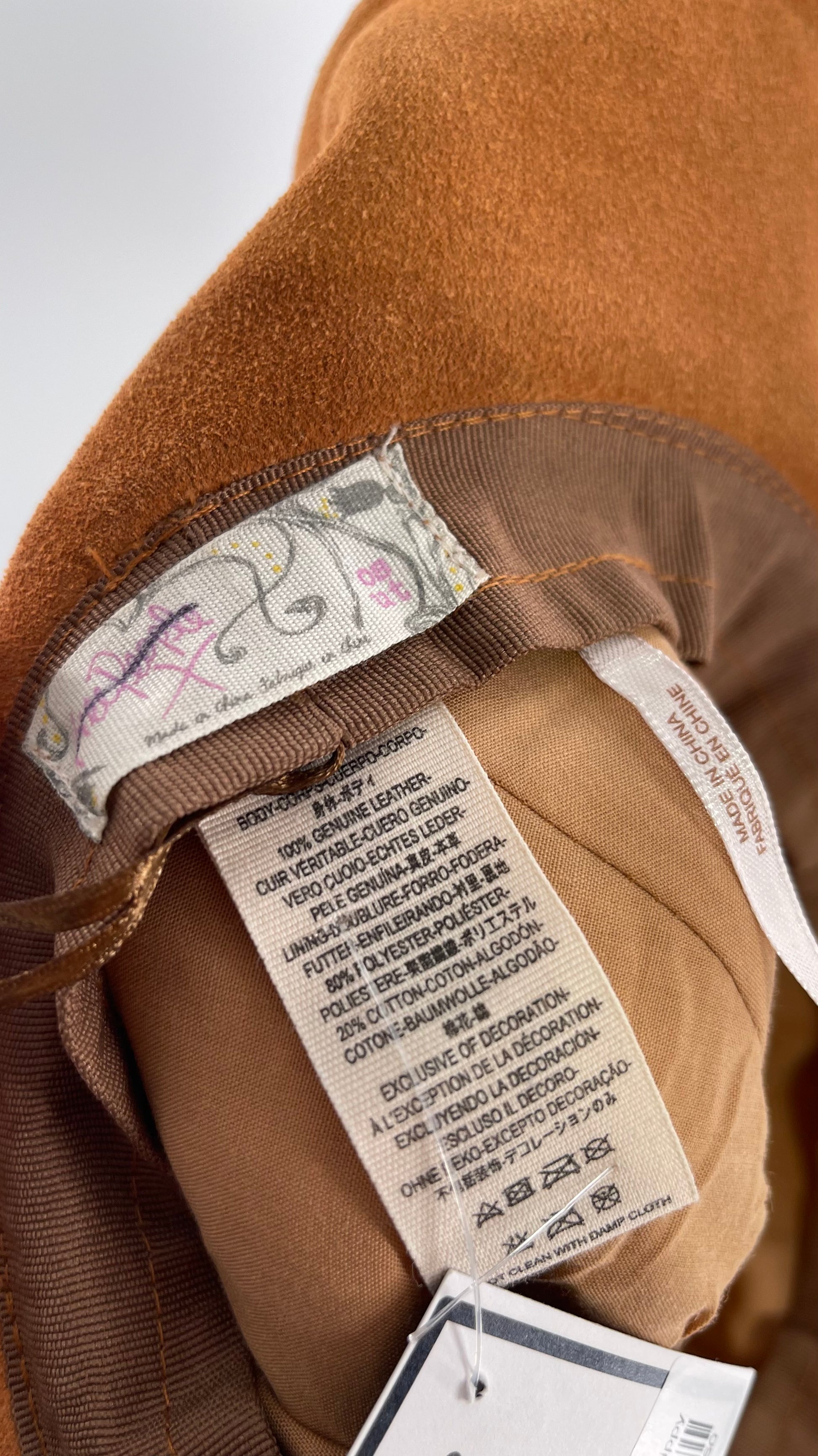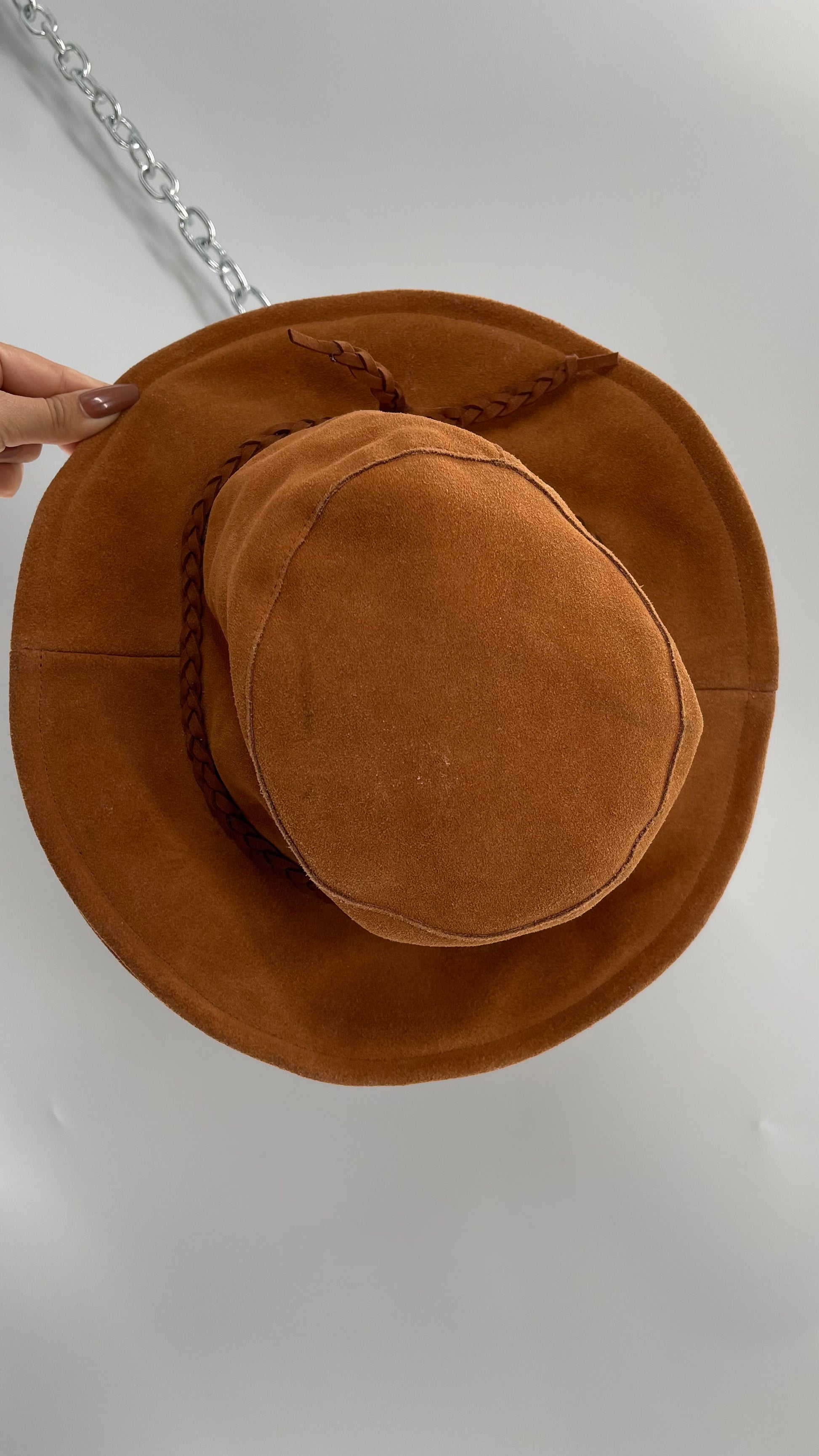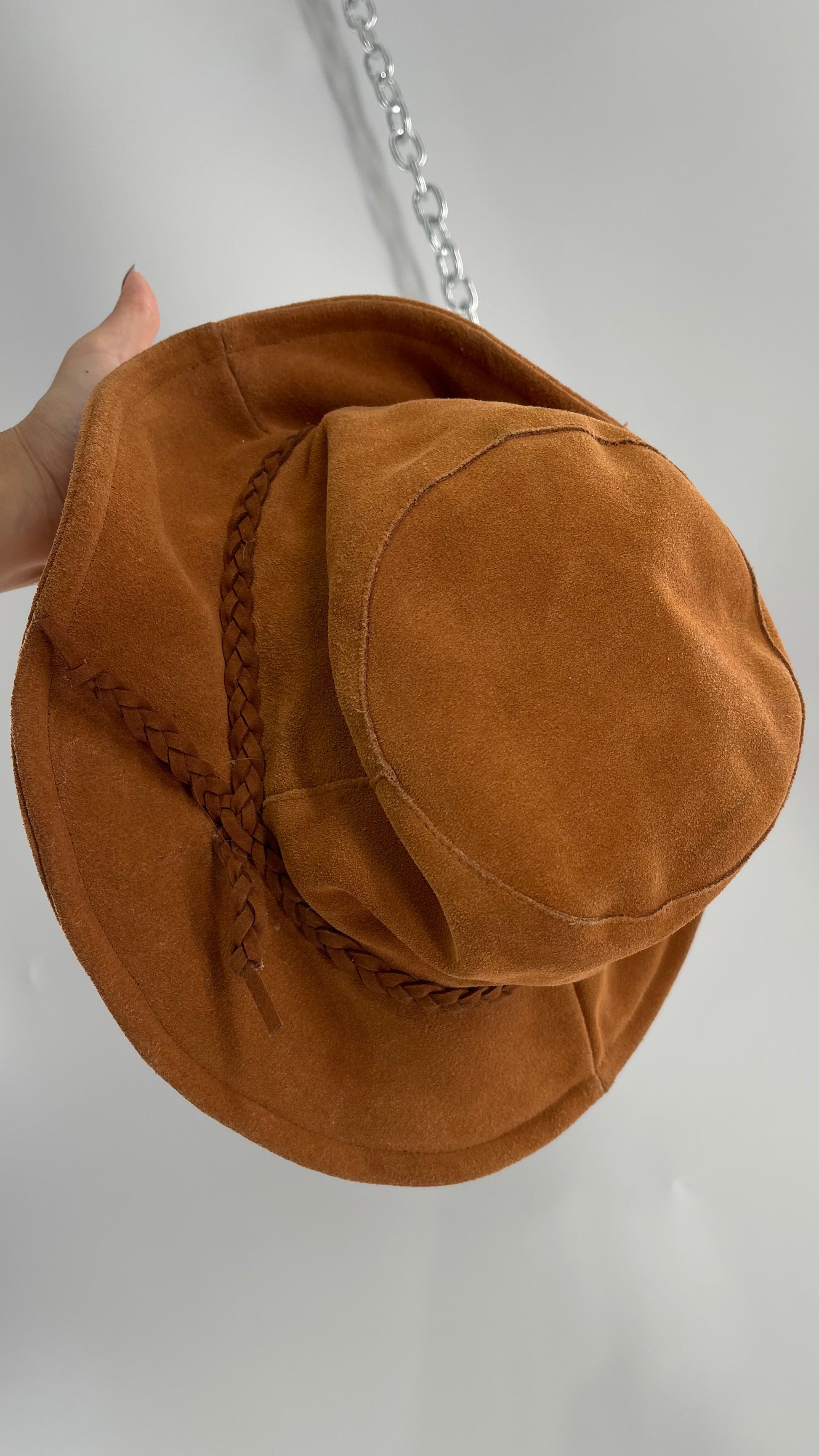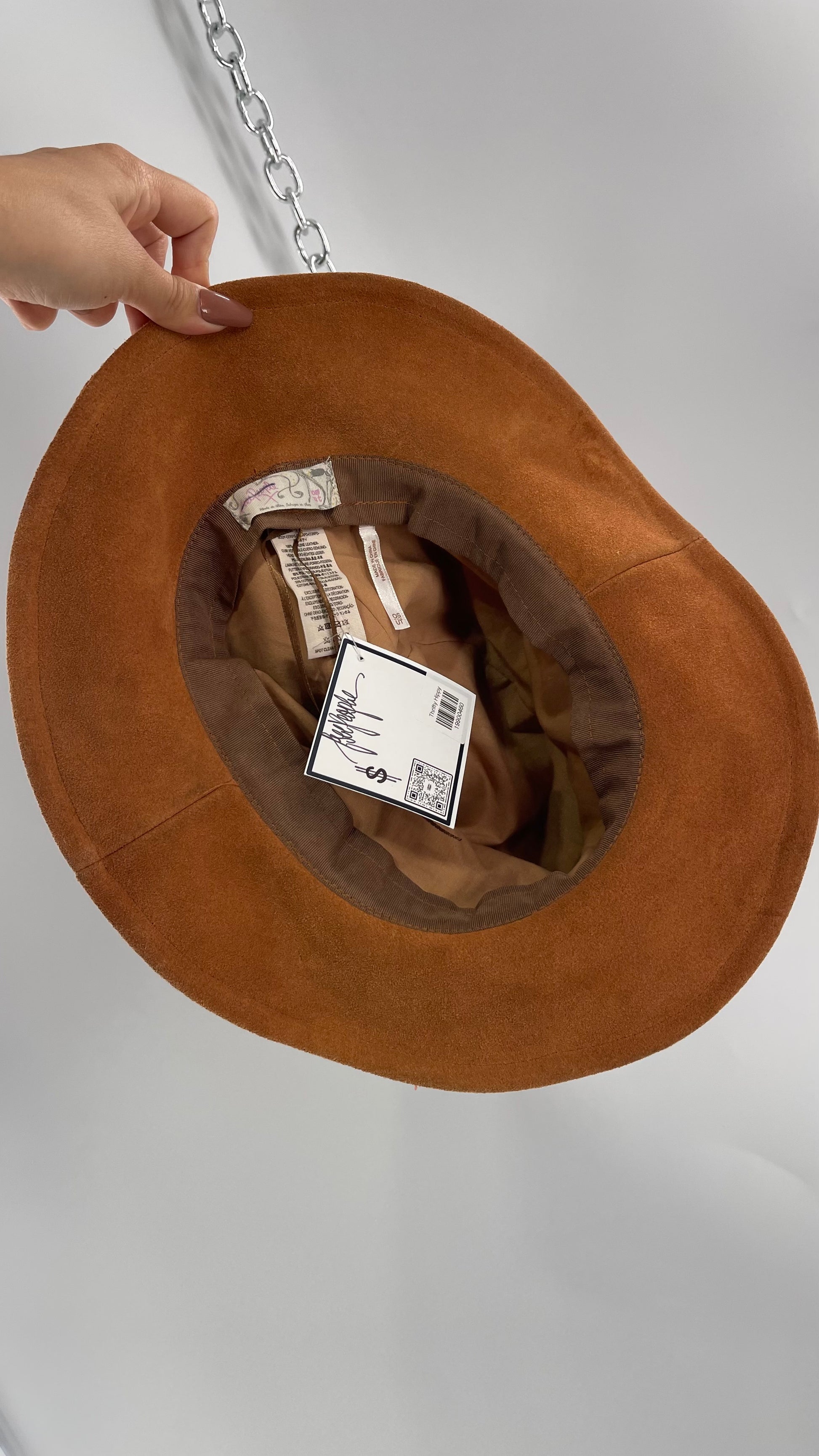 Free People Burnt Orange Suede Genuine Leather Sun Hat with Braided Belt