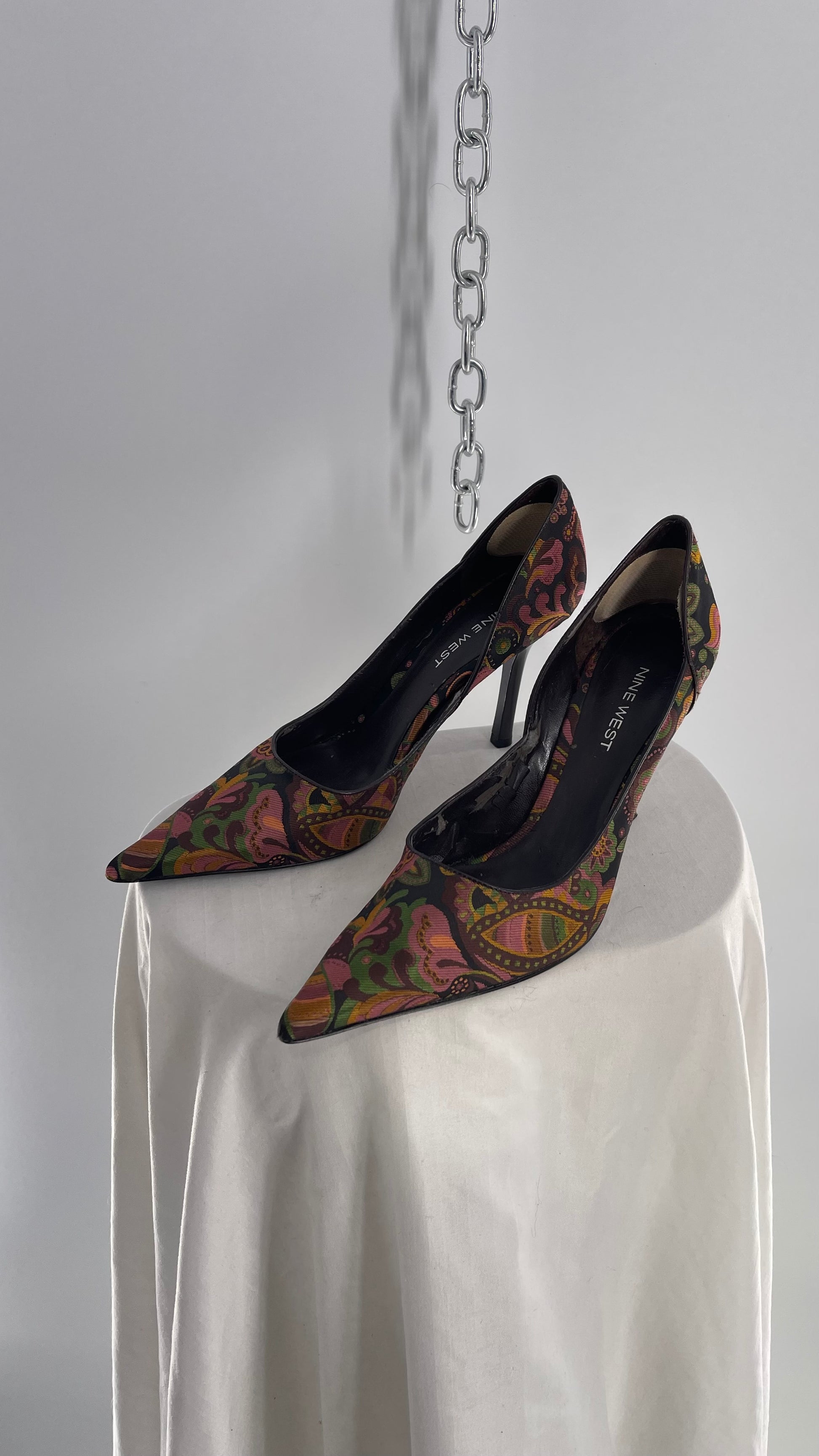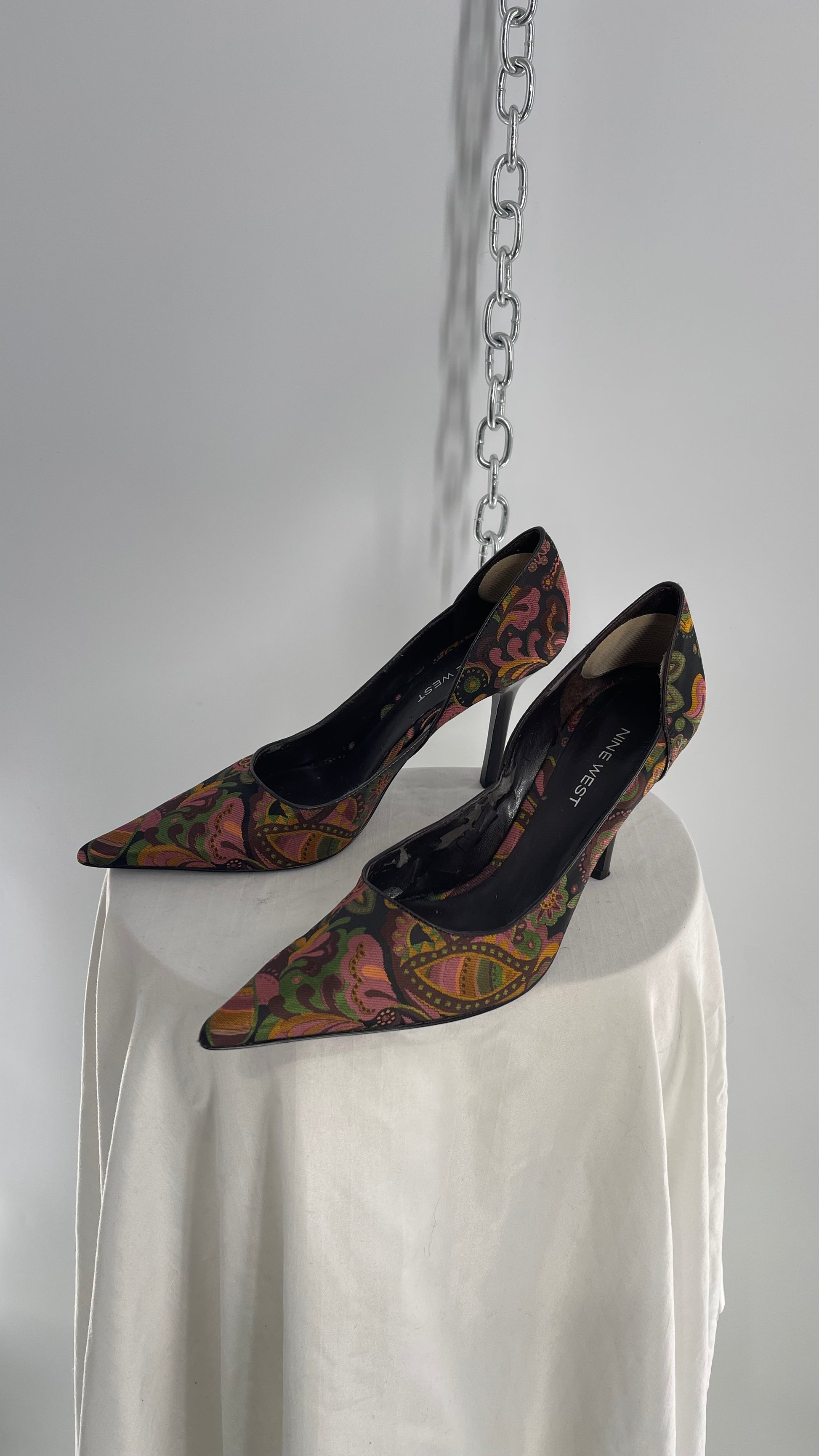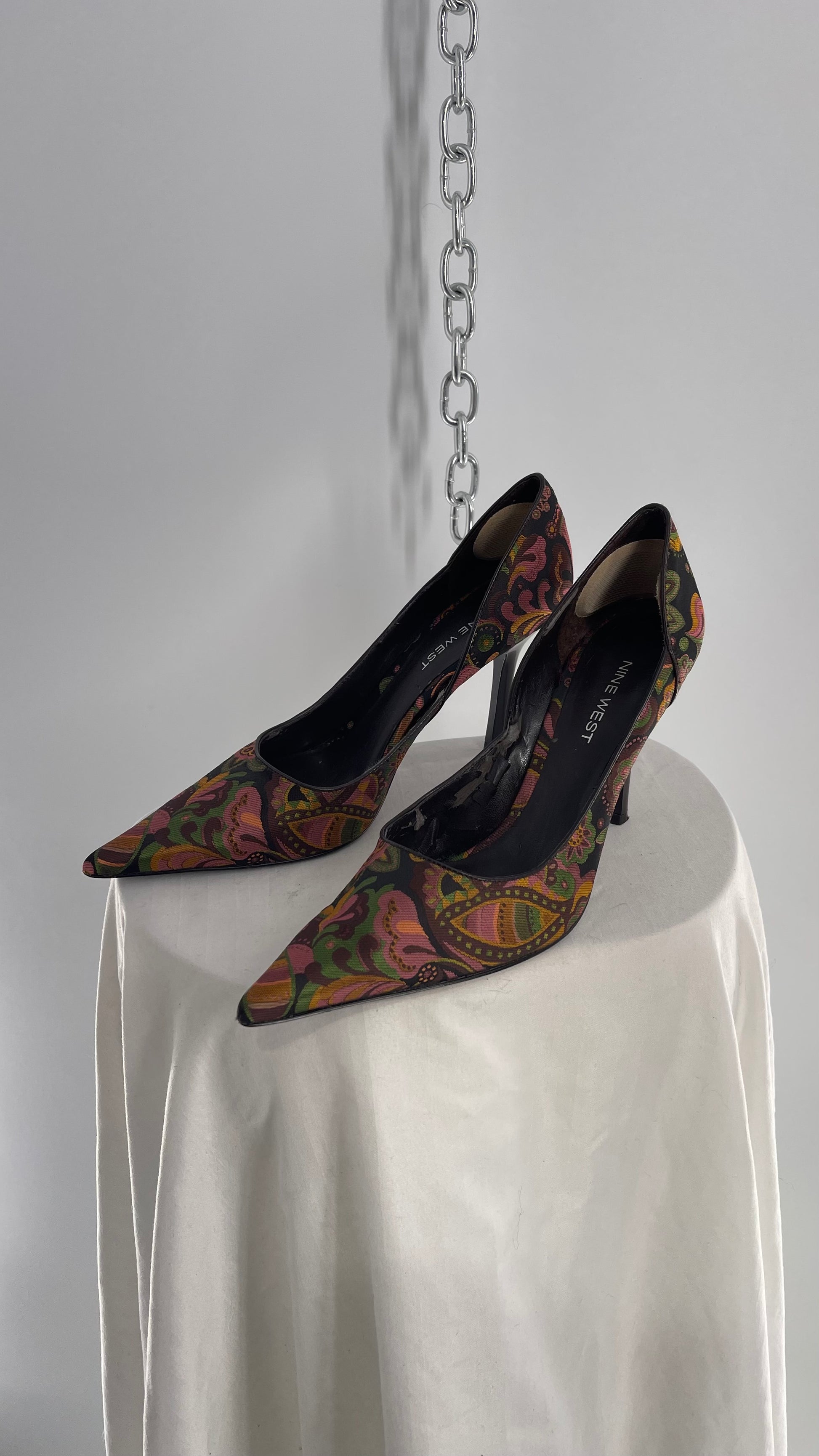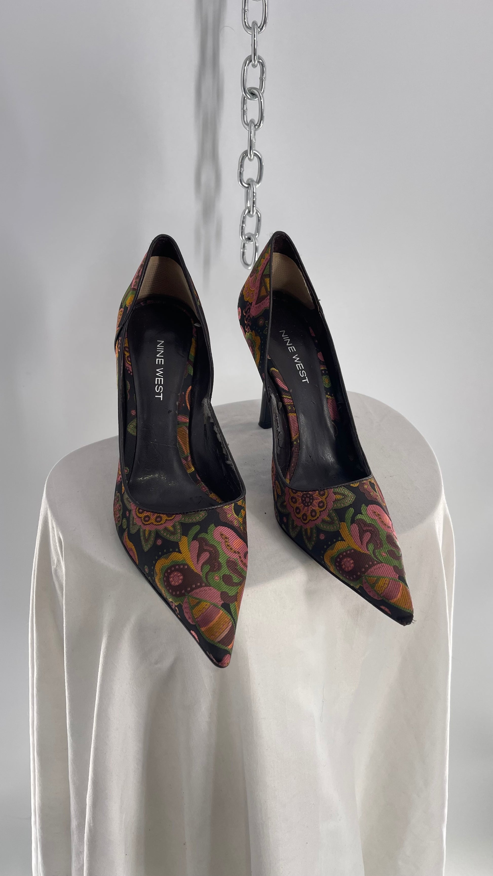 Vintage Nine West Brown Floral Patterned Pointed Toe Heel (8)