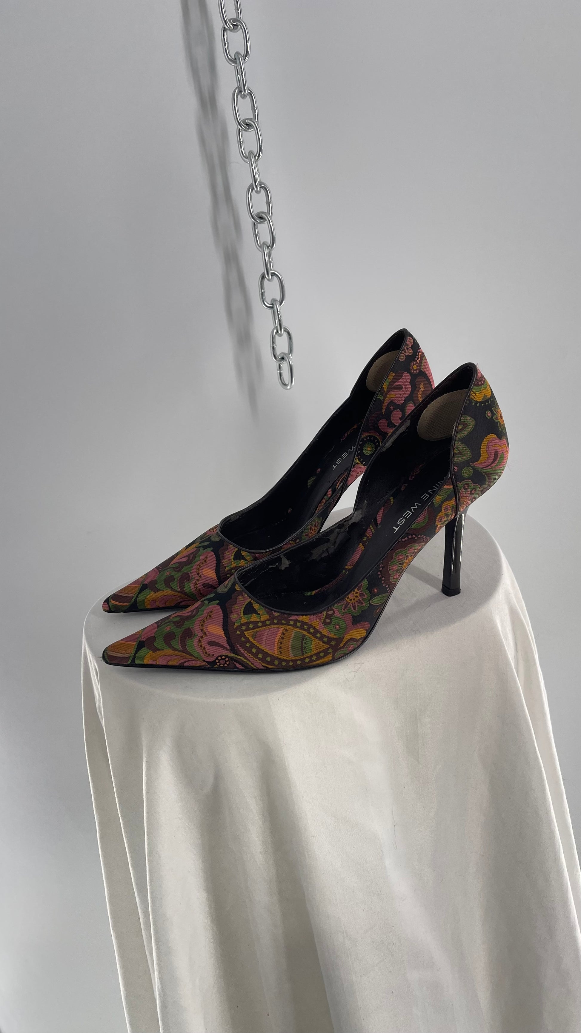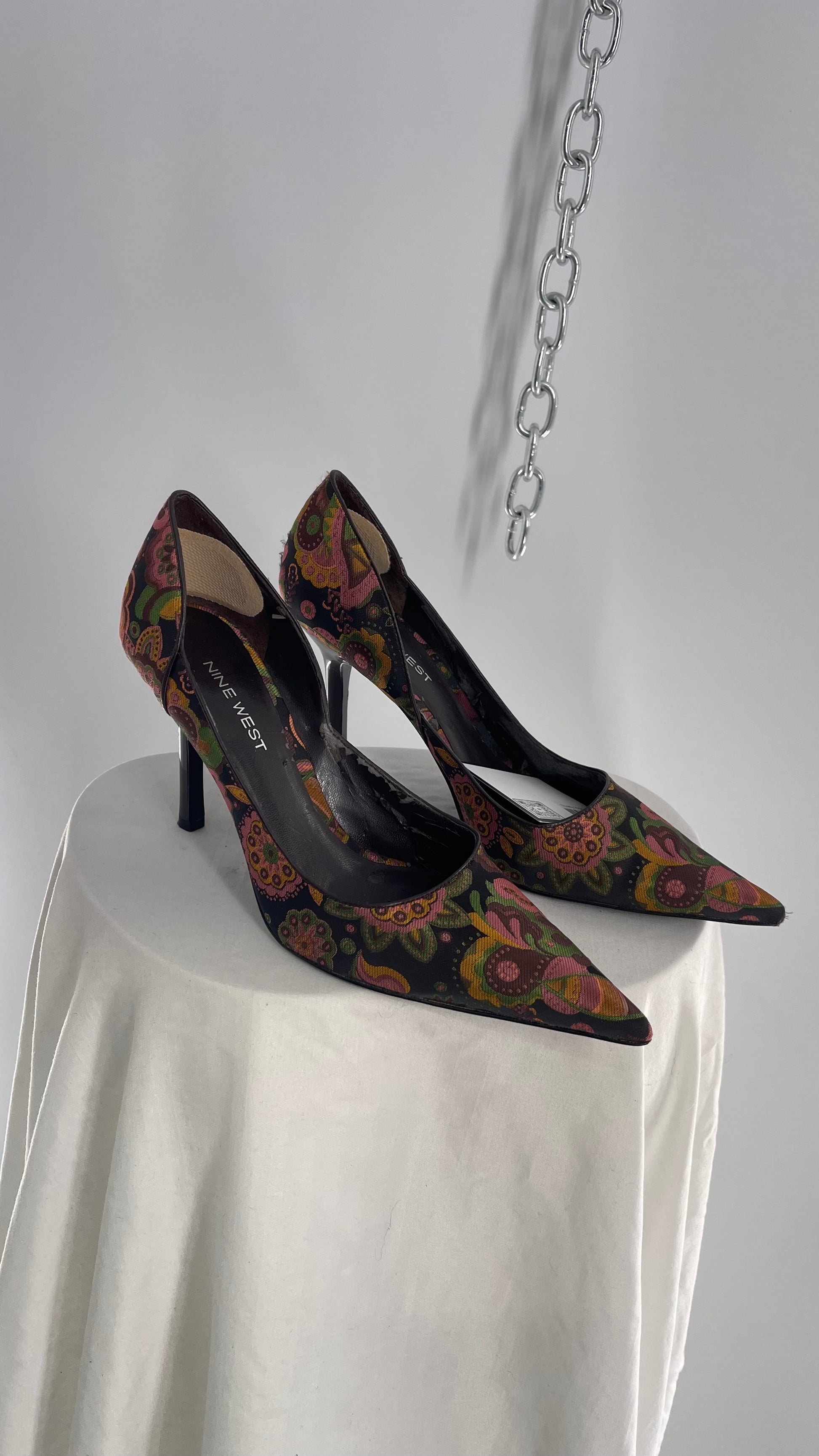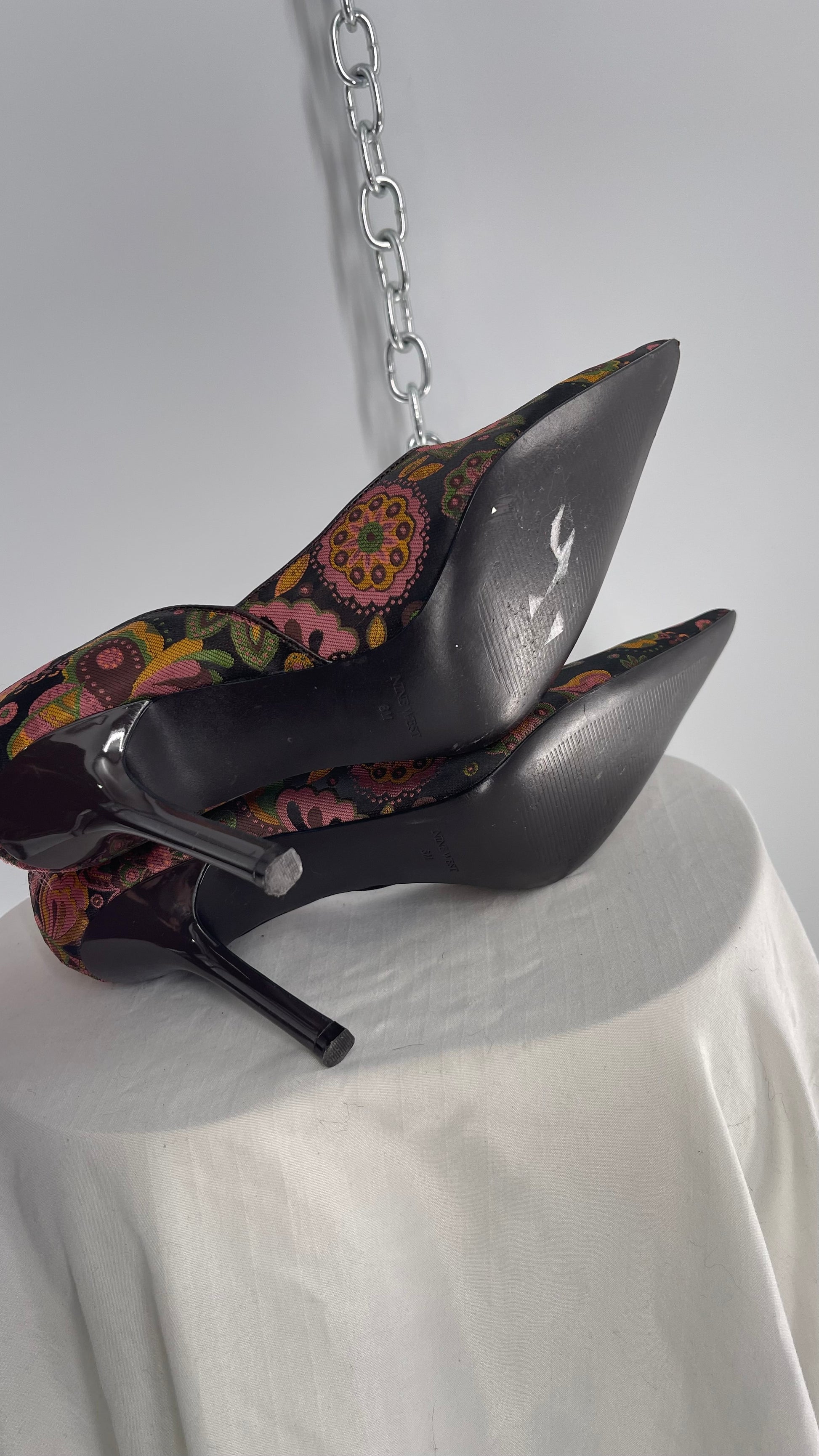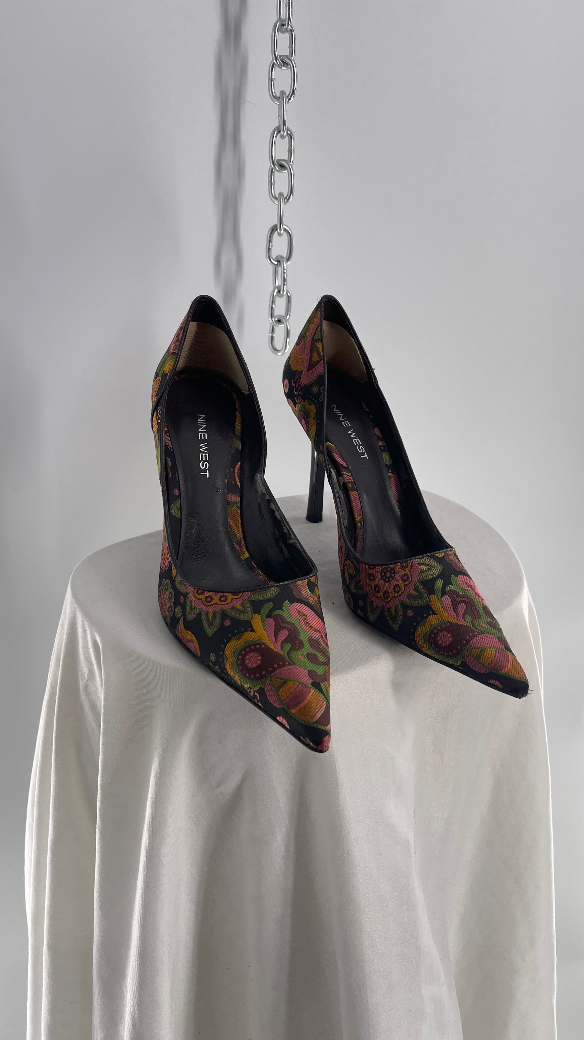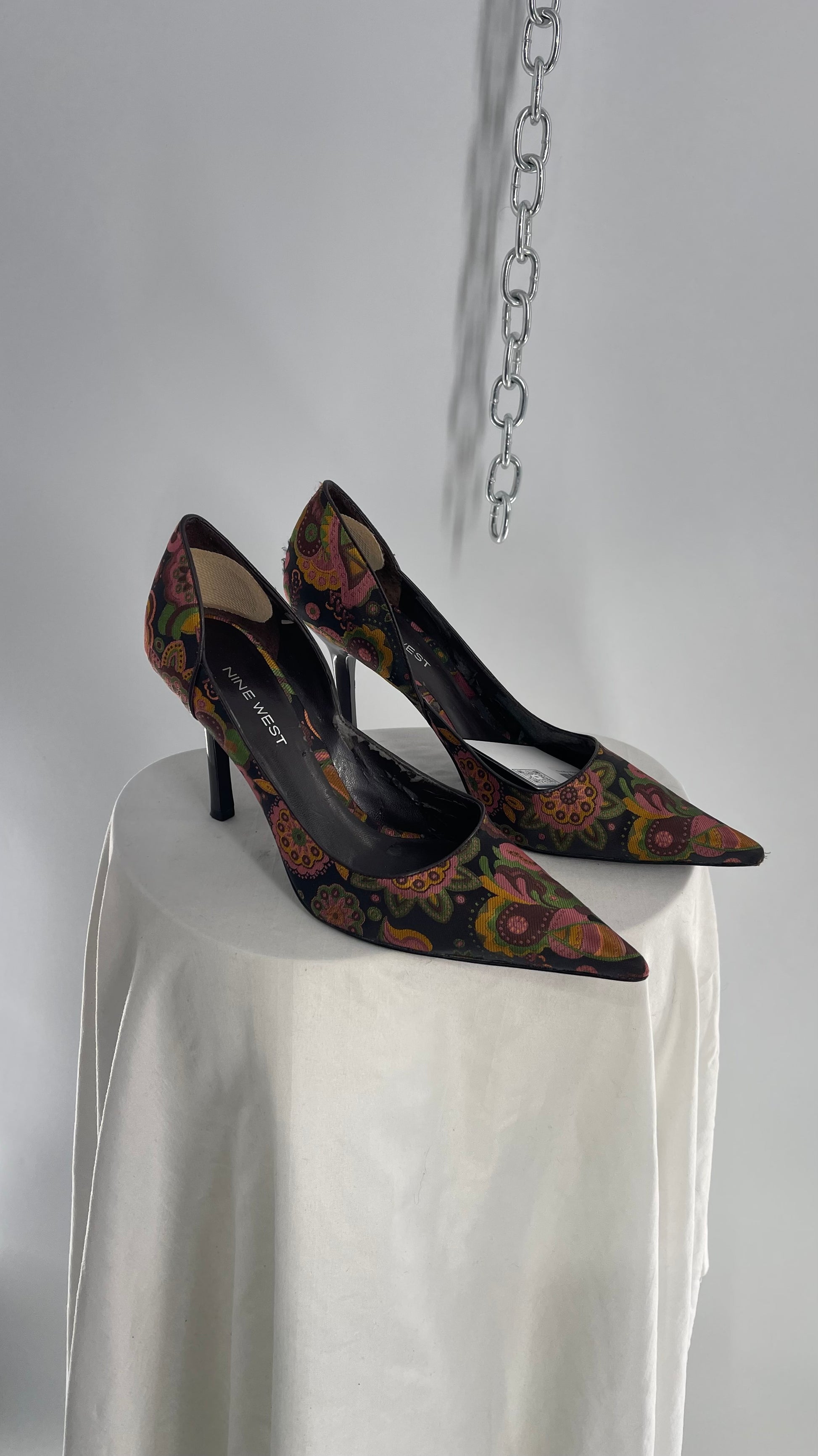 Vintage Nine West Brown Floral Patterned Pointed Toe Heel (8)