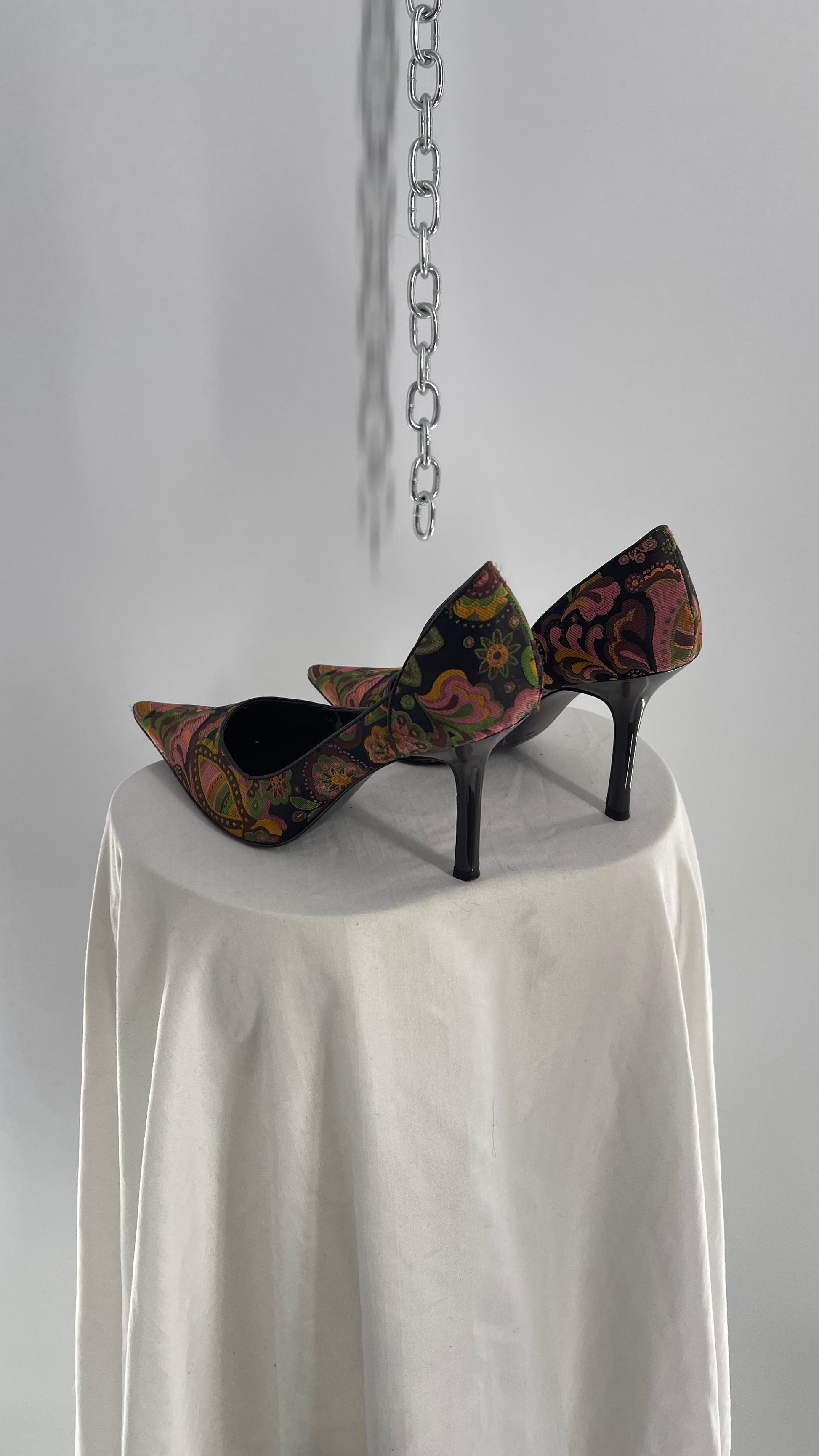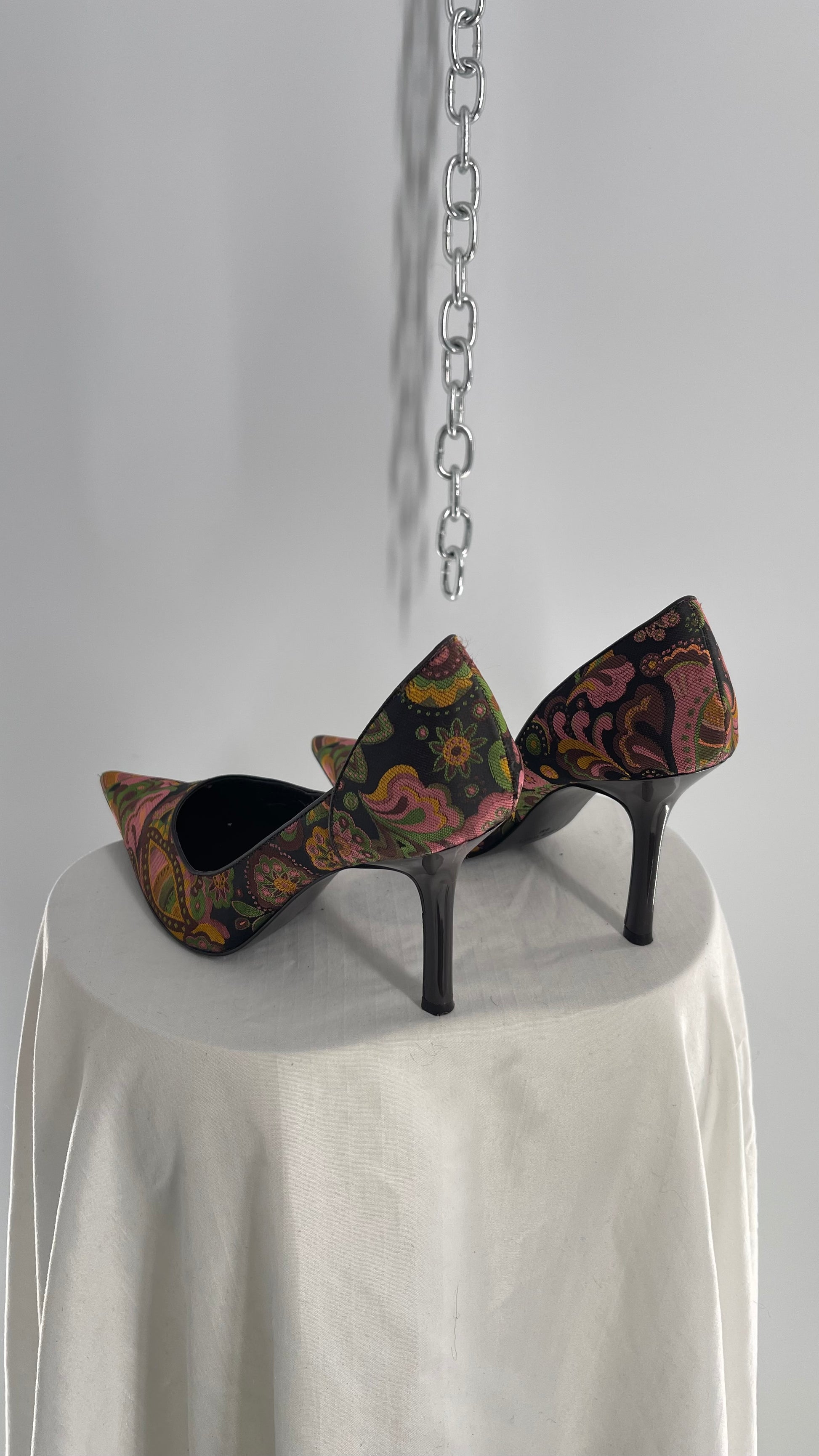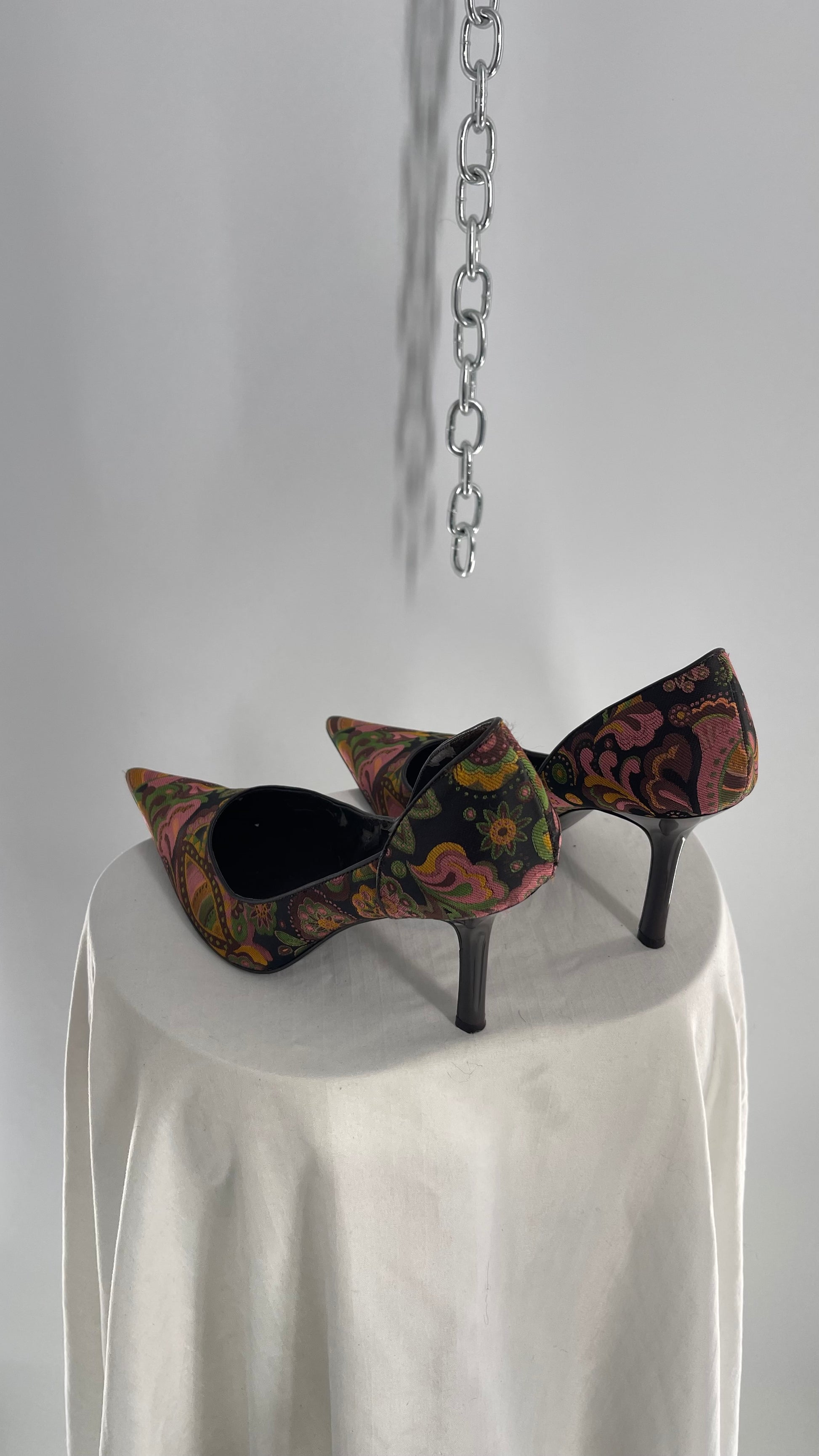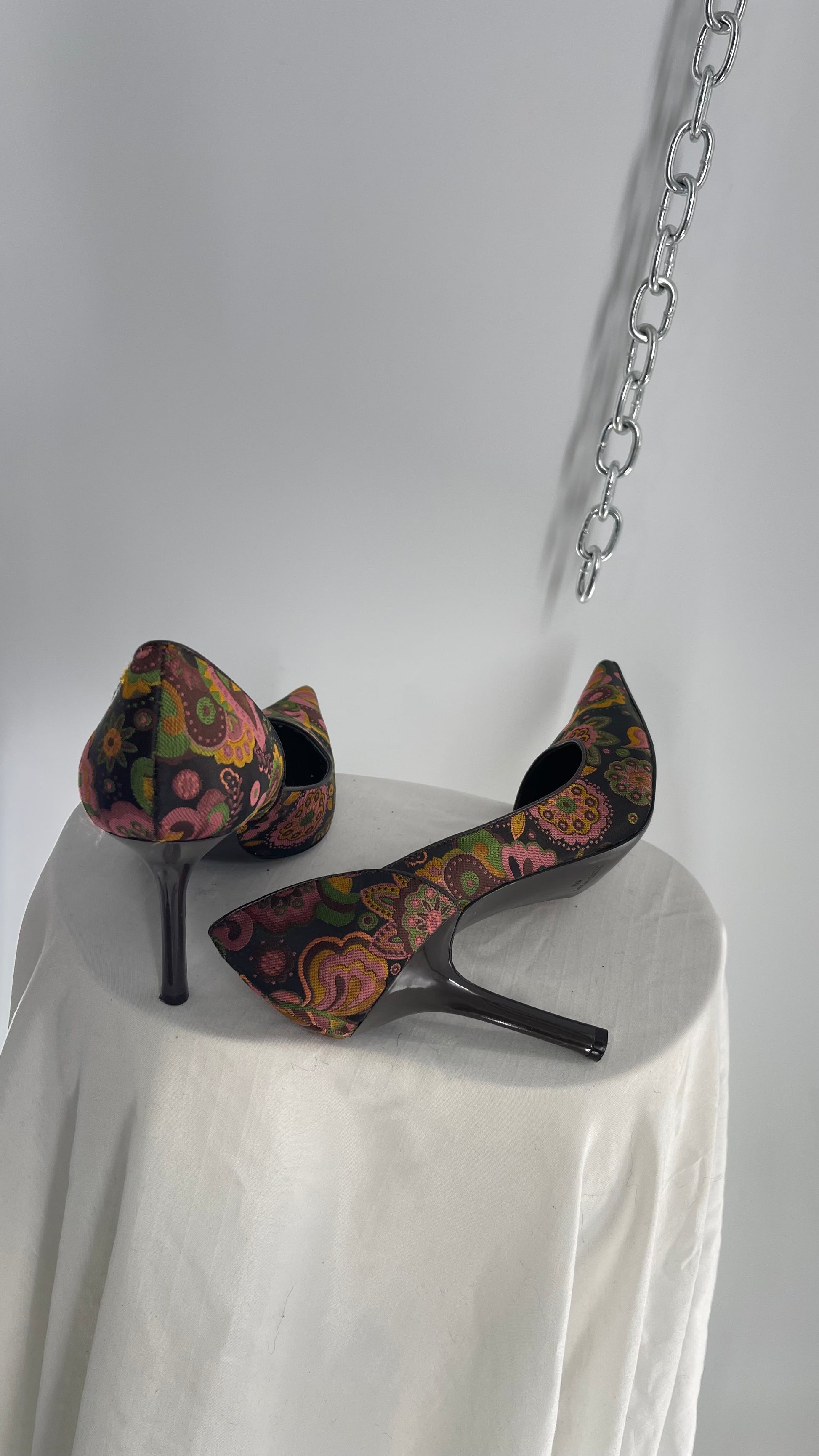 Vintage Nine West Brown Floral Patterned Pointed Toe Heel (8)